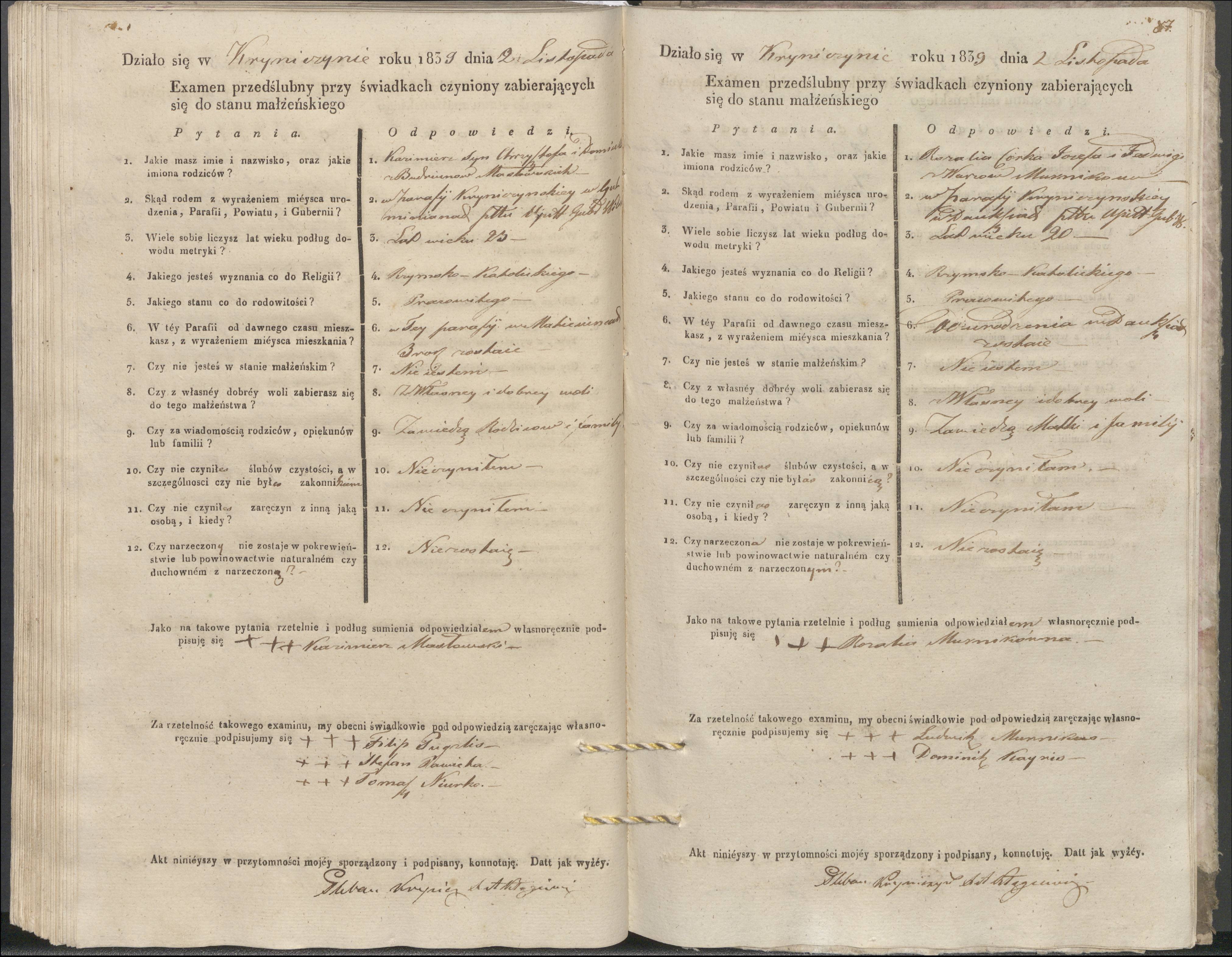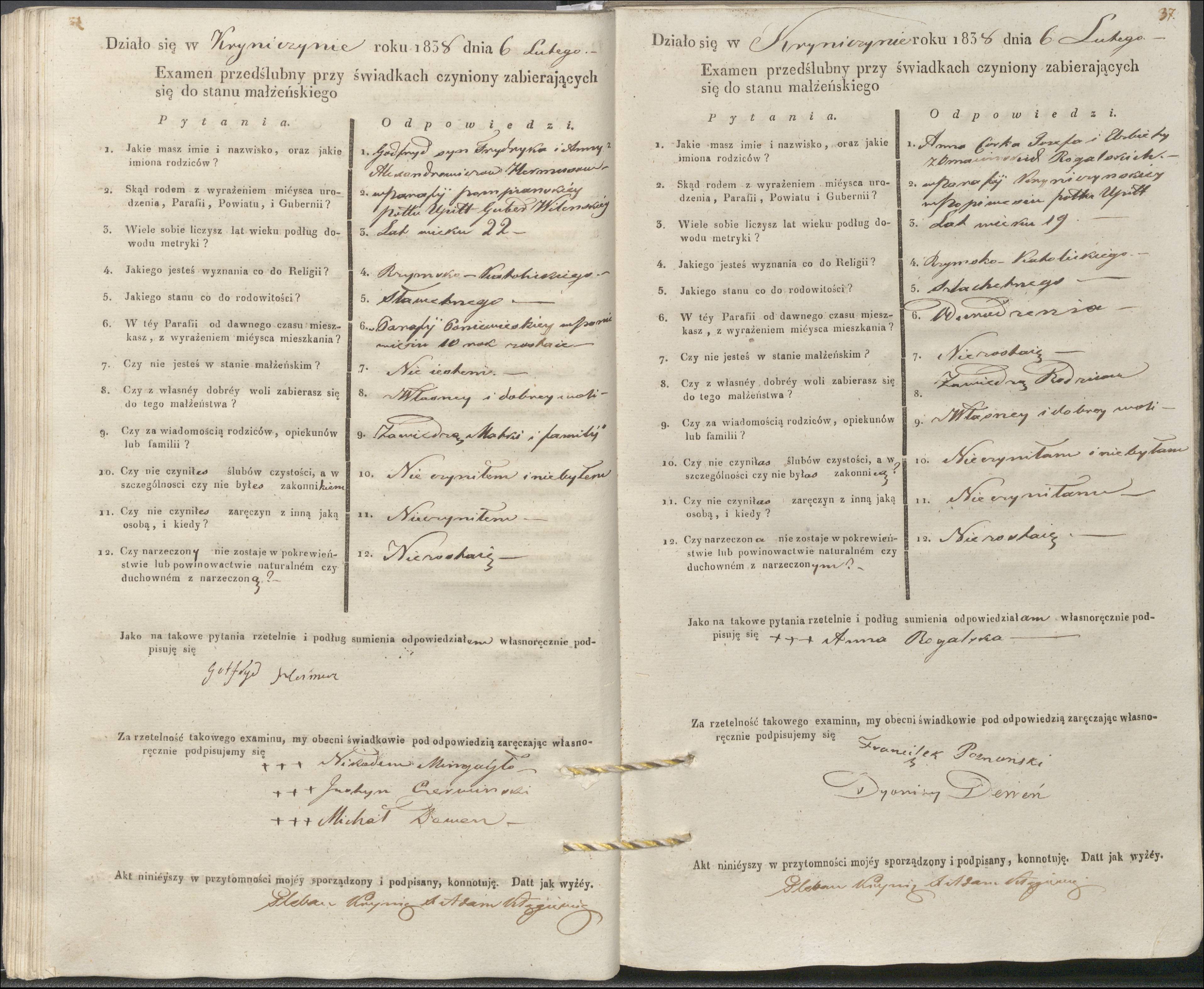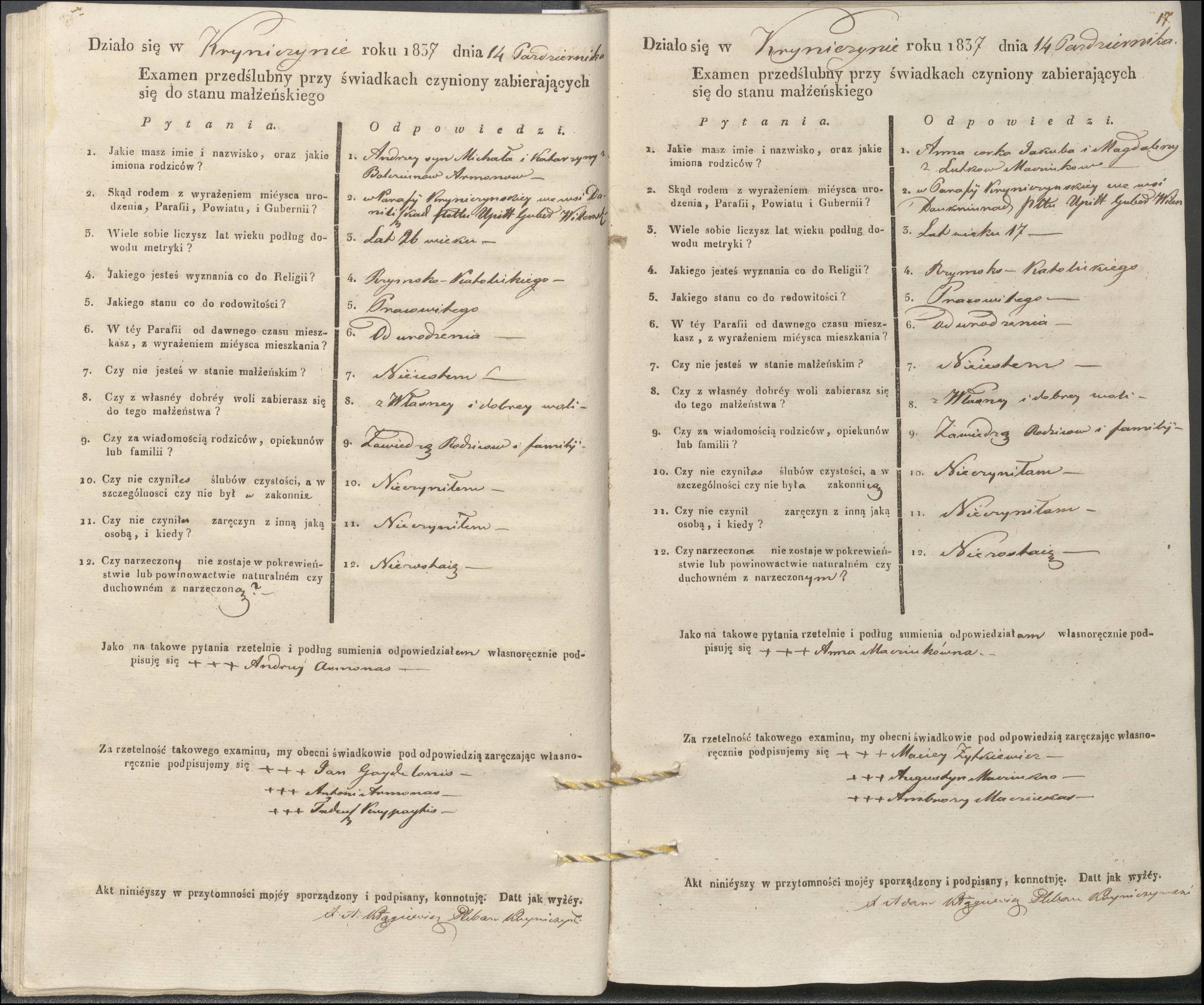 Krinčino Romos katalikų parapijos bažnyčios 1837–1839 metų priešjungtuvinės apklausos knyga