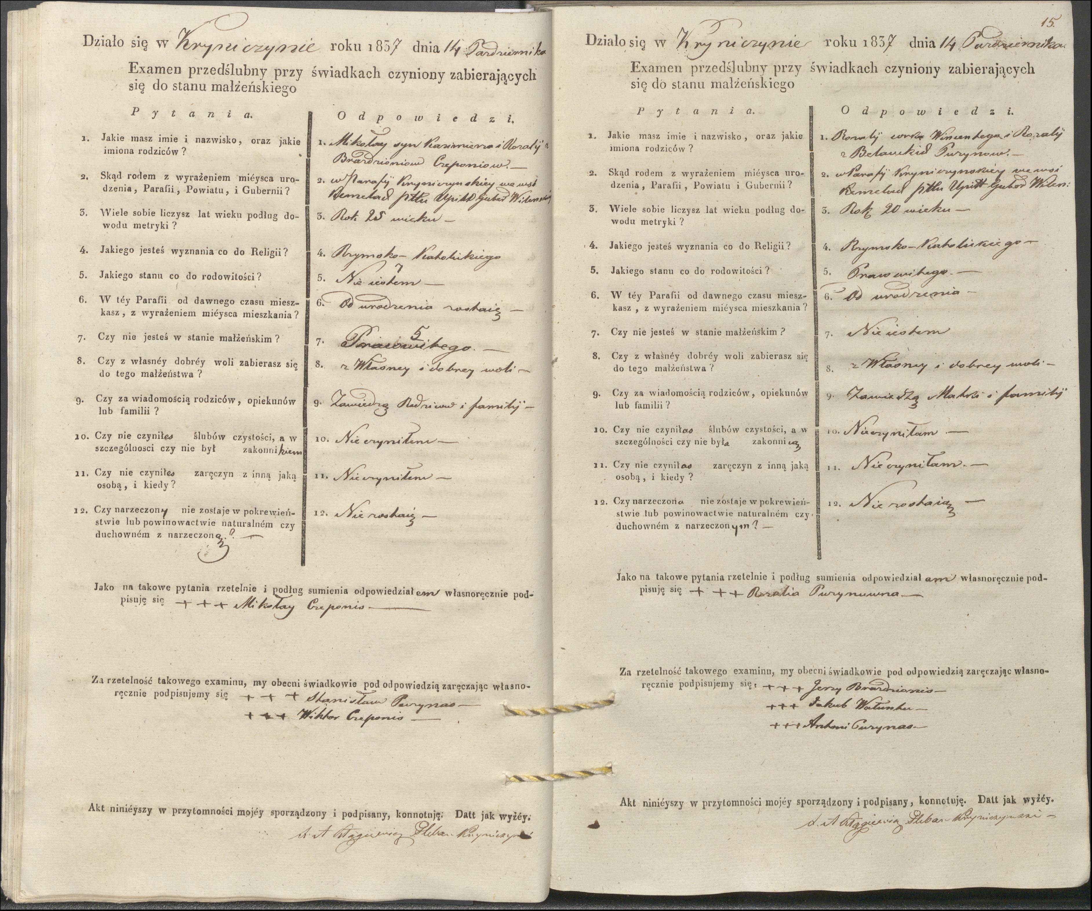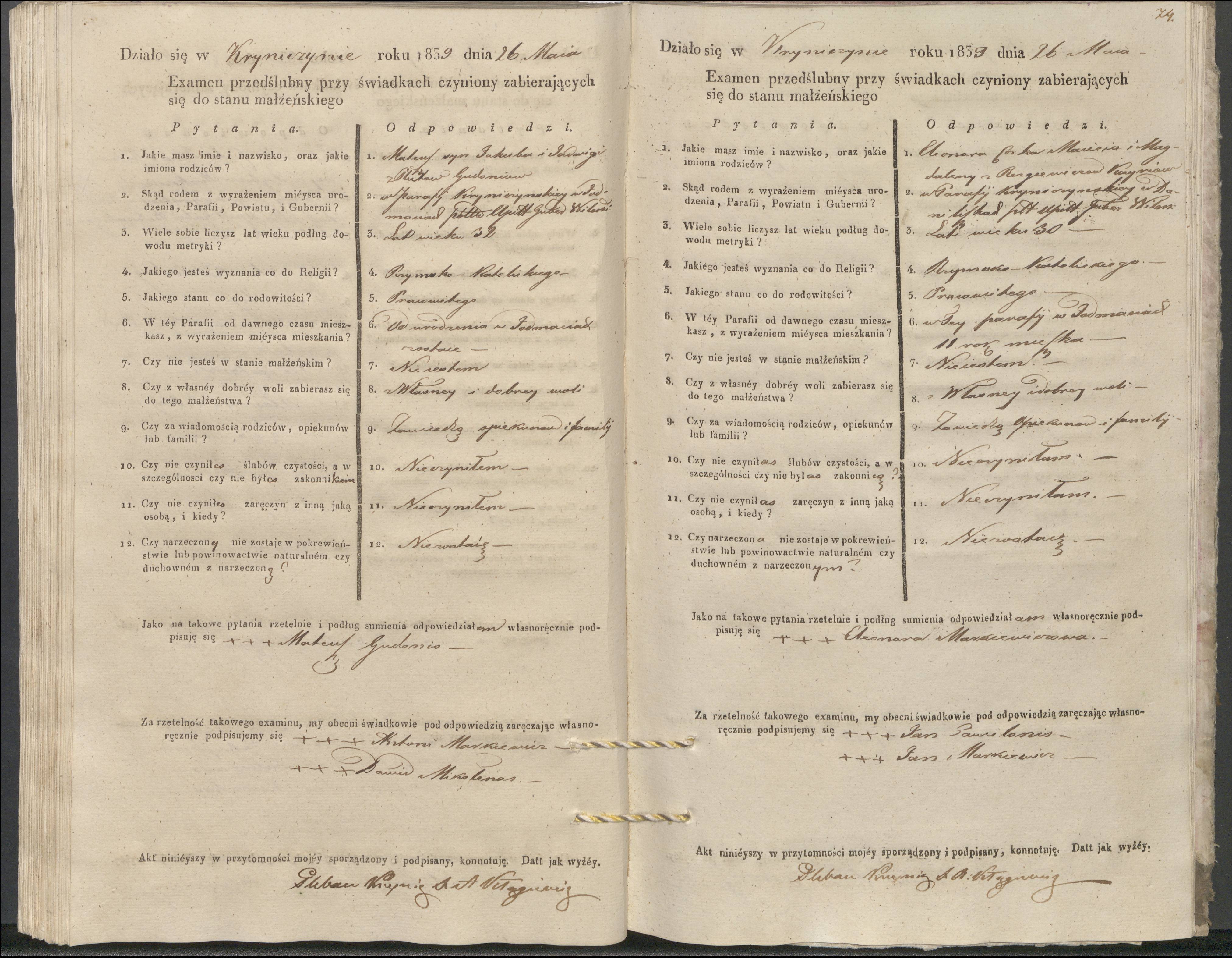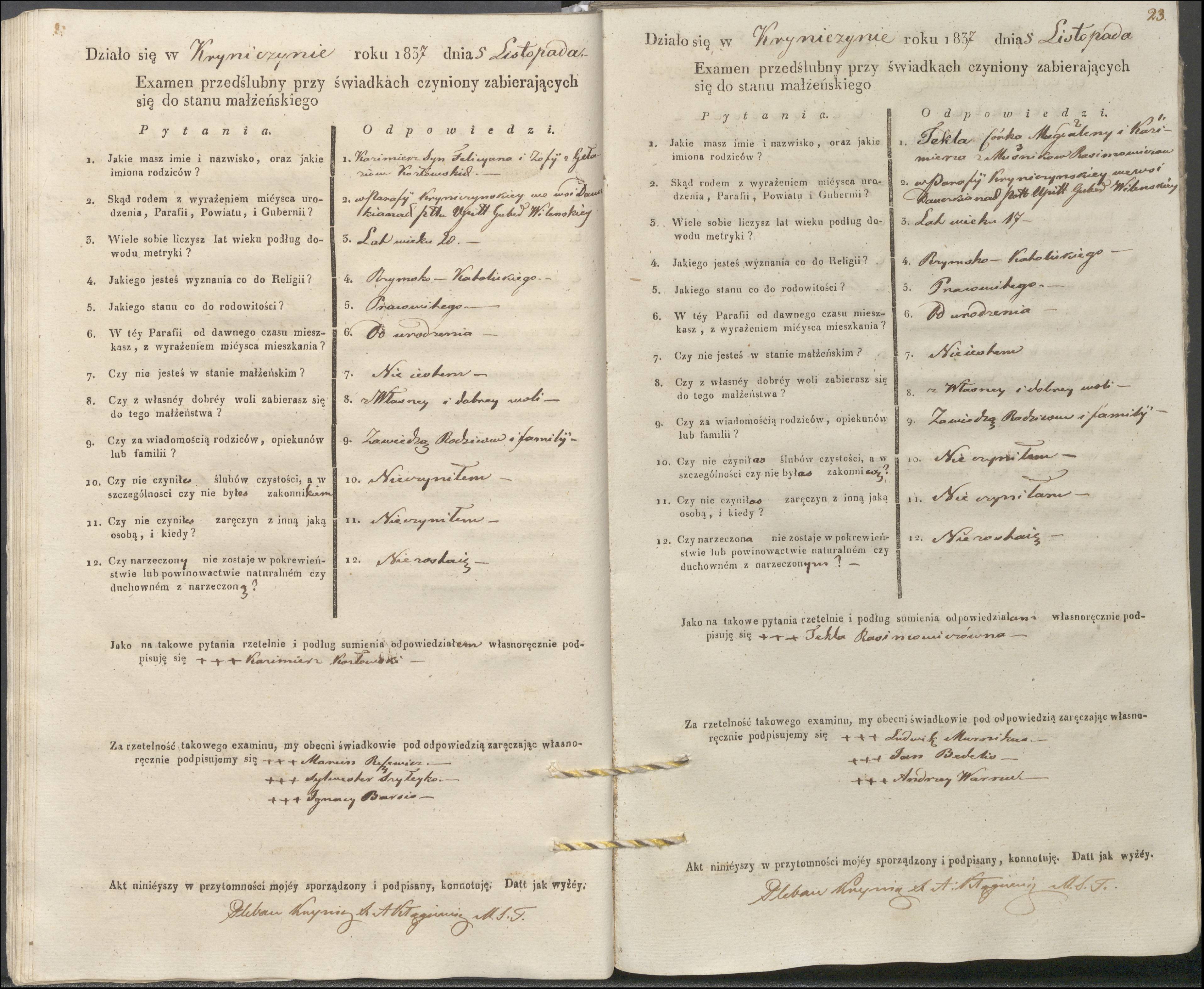Krinčino Romos katalikų parapijos bažnyčios 1837–1839 metų priešjungtuvinės apklausos knyga