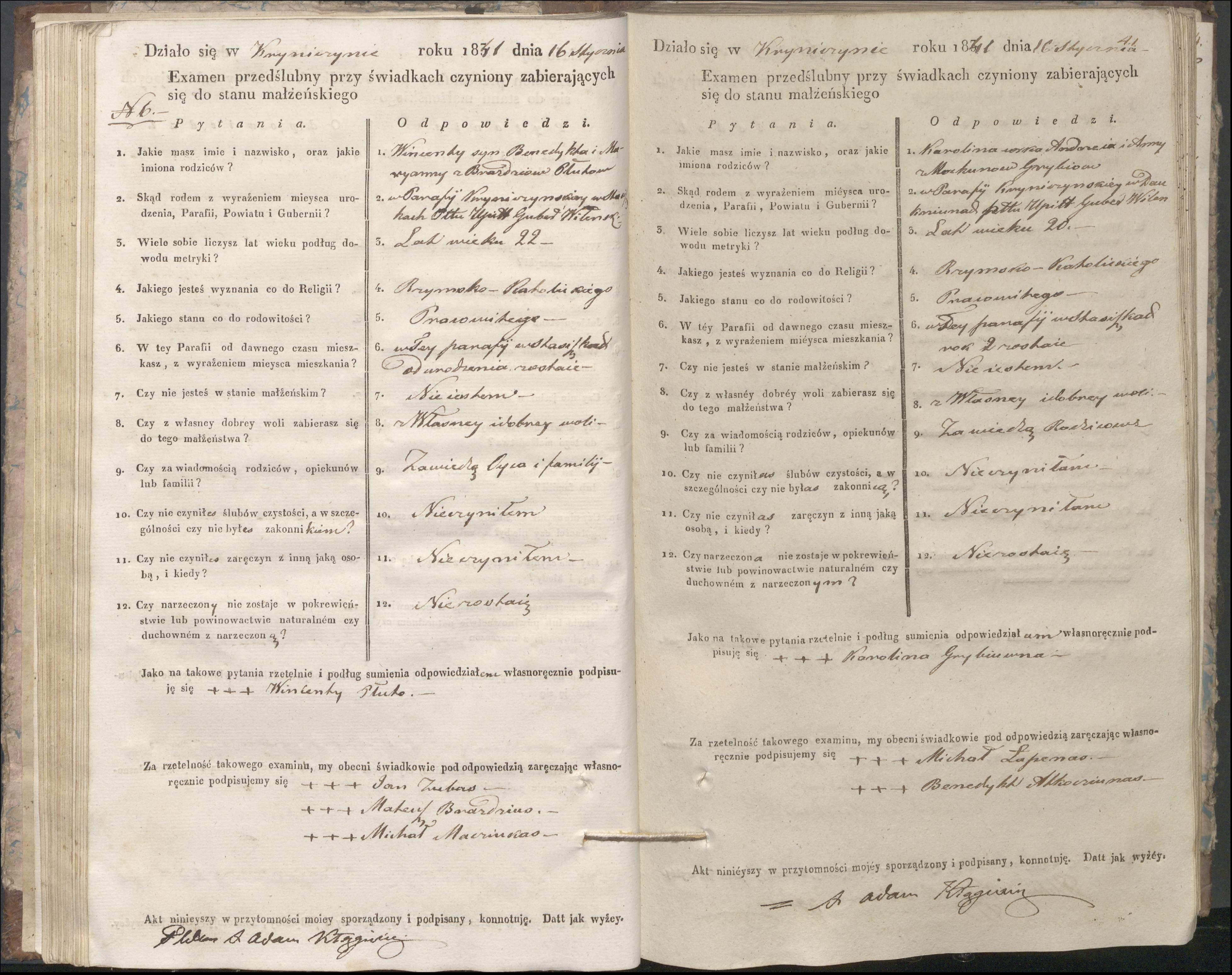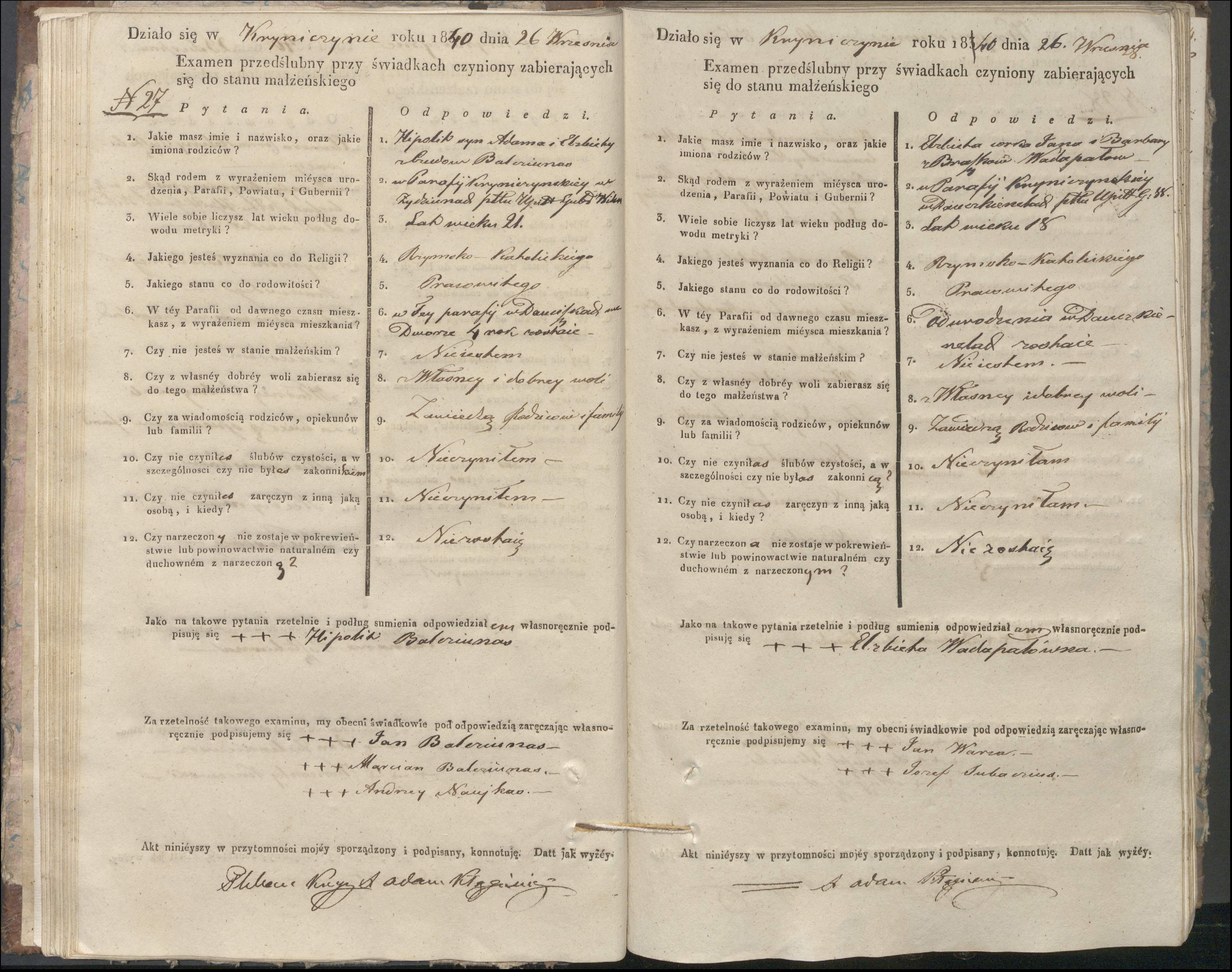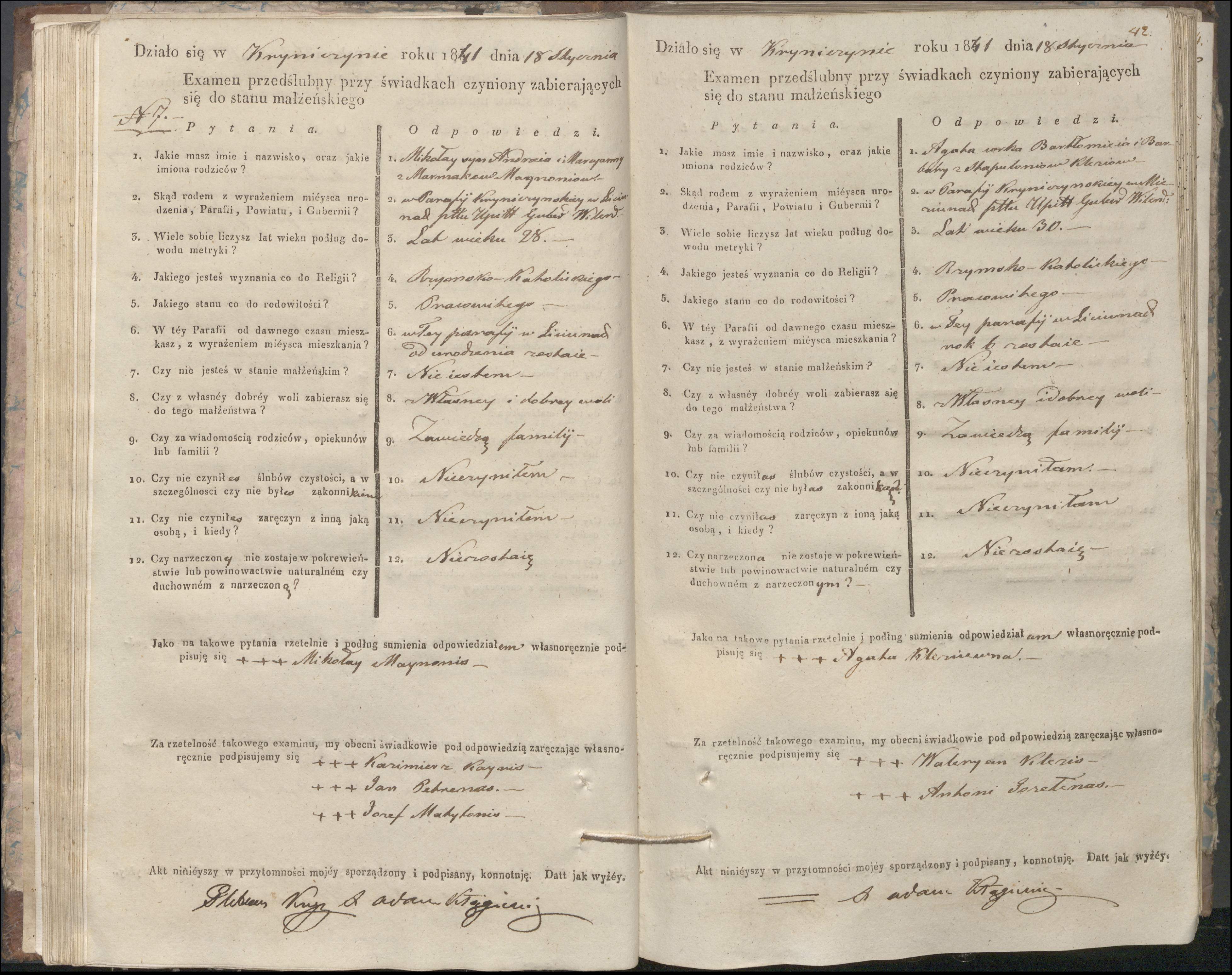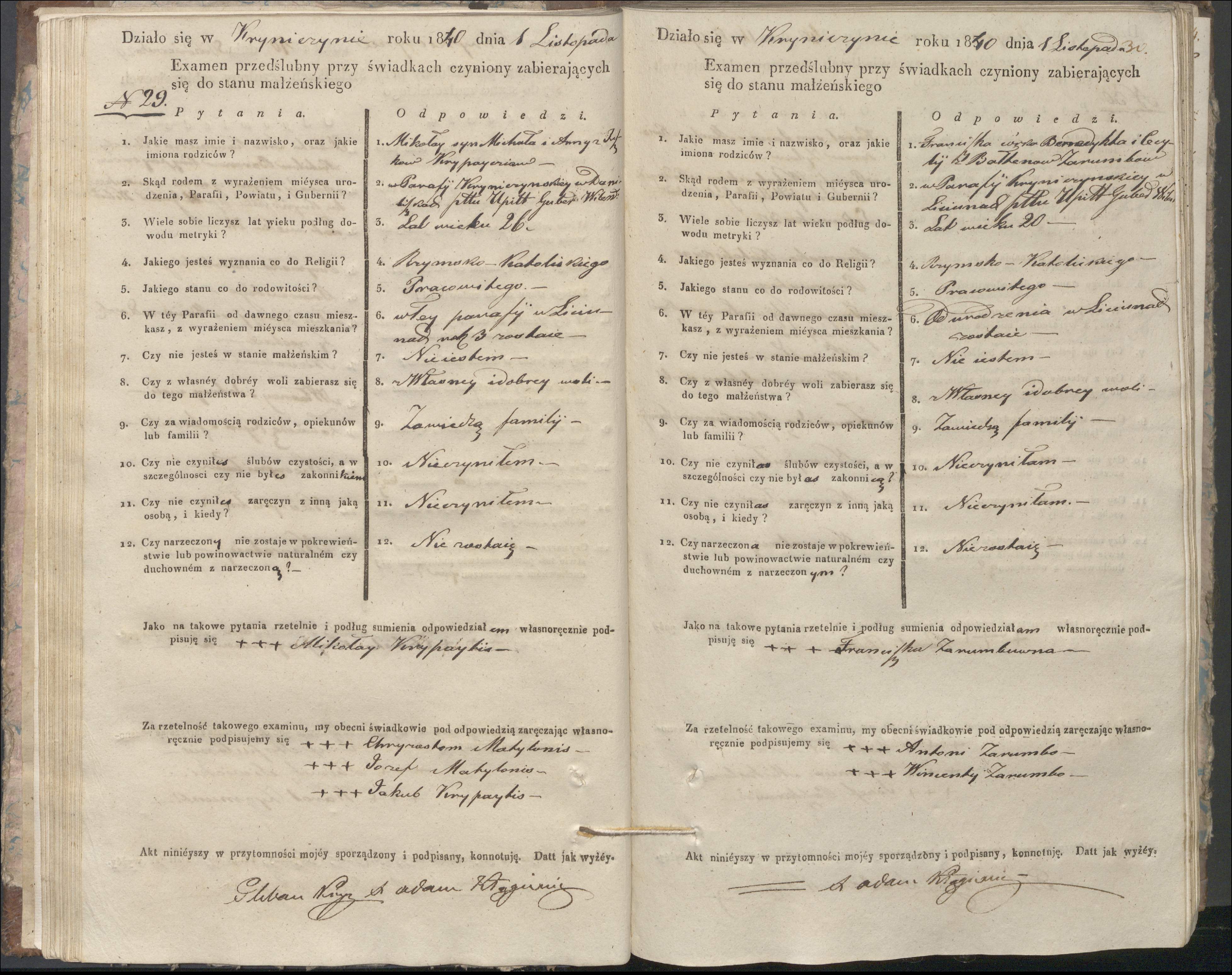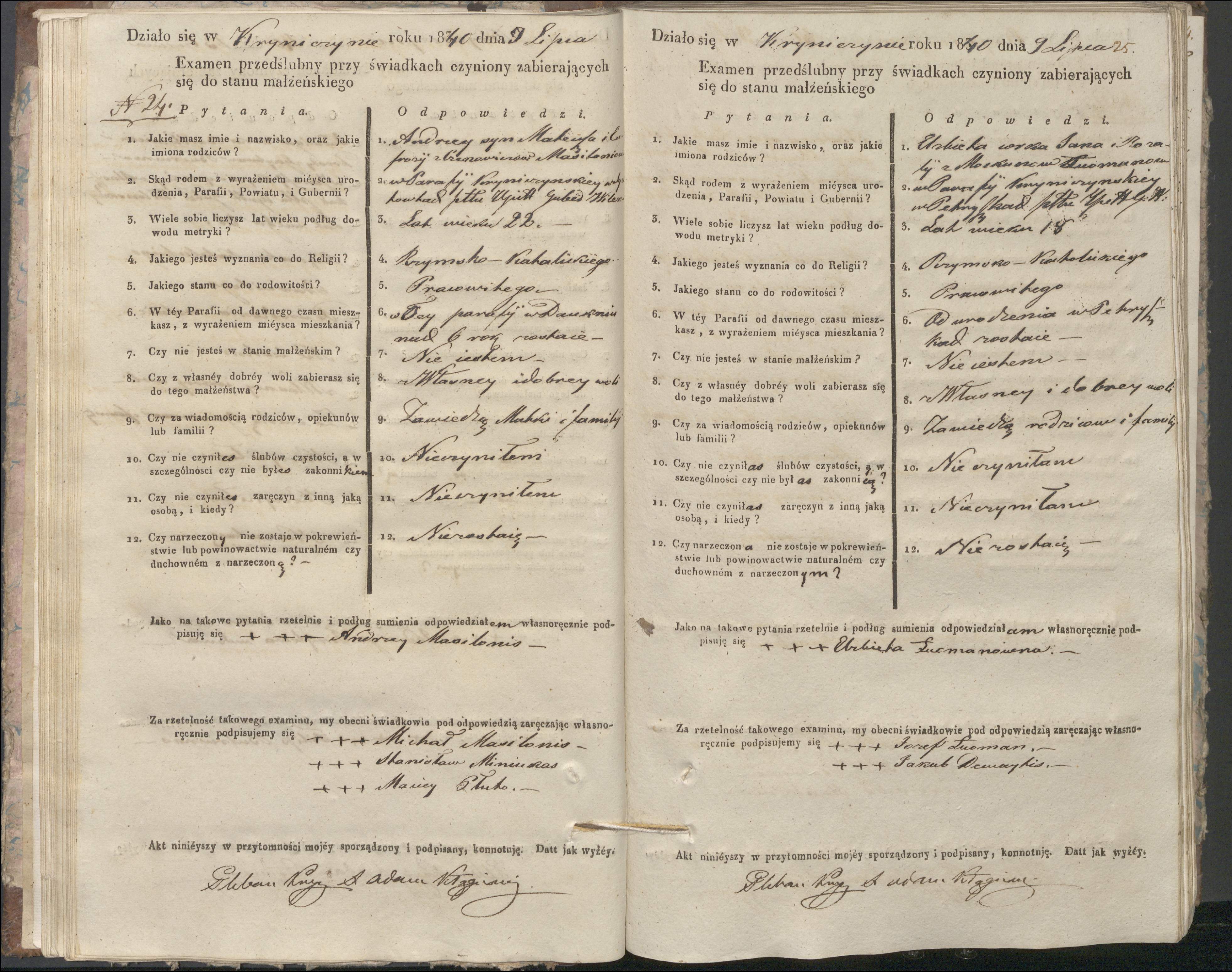 Krinčino Romos katalikų parapijos bažnyčios 1840–1844 metų priešjungtuvinės apklausos knyga