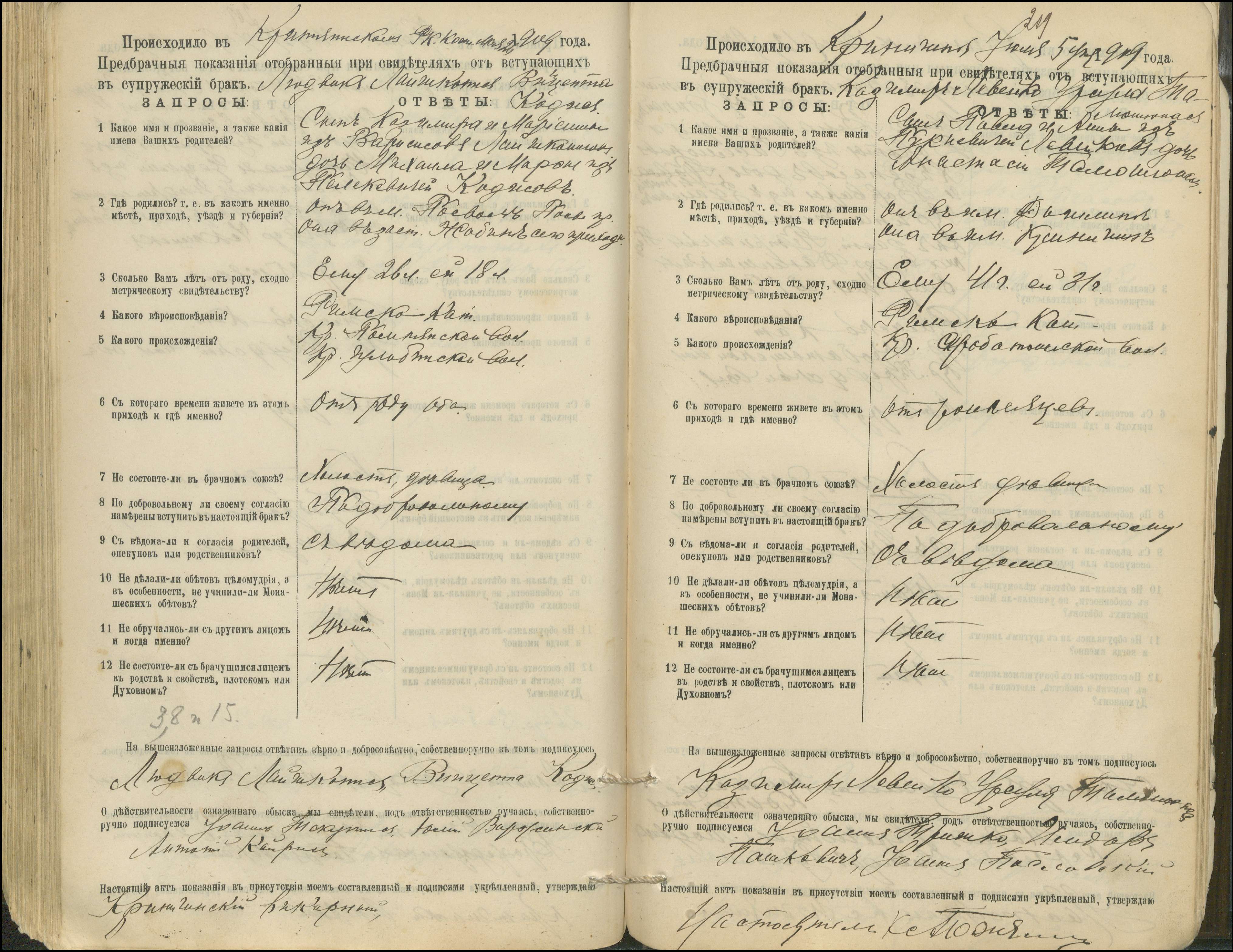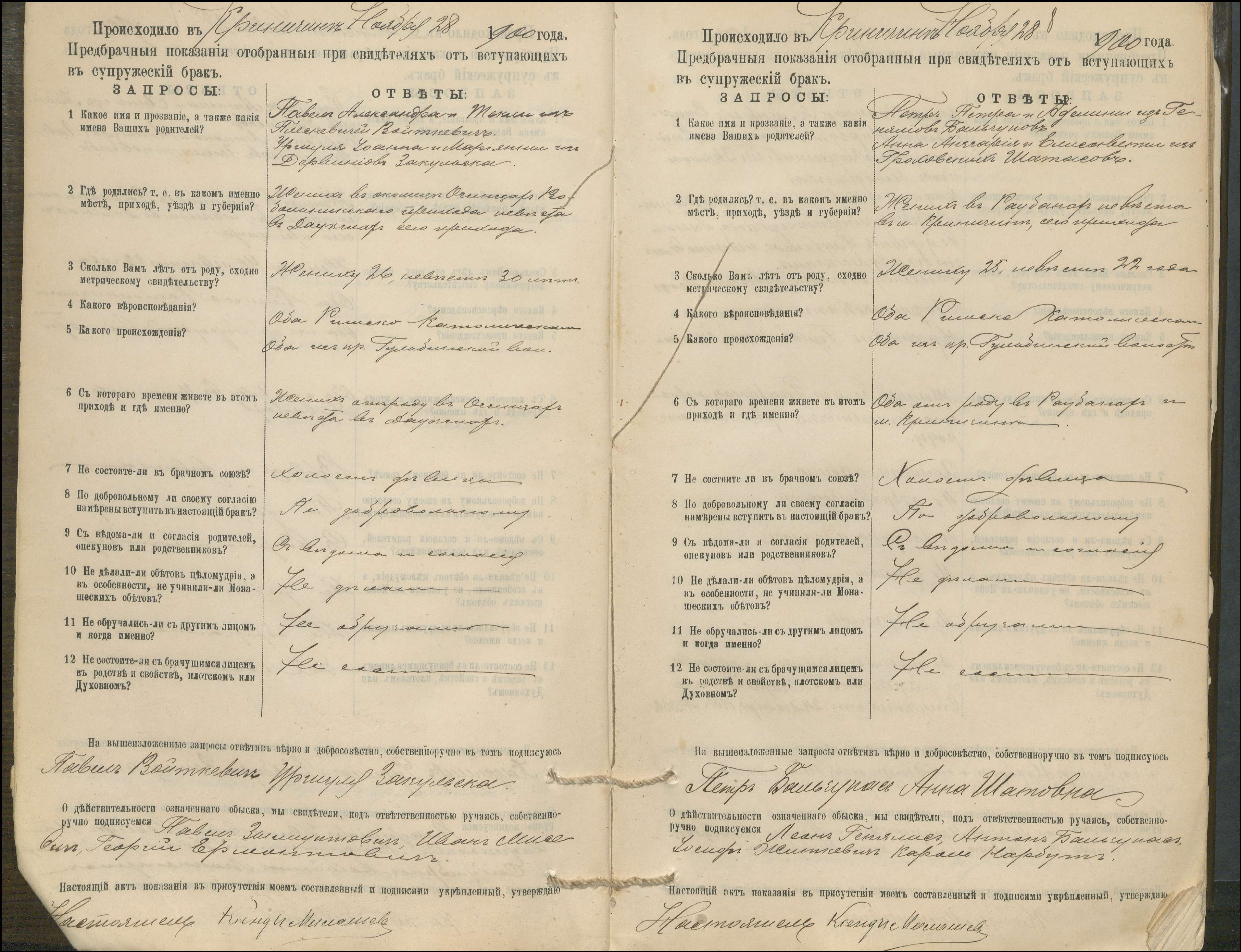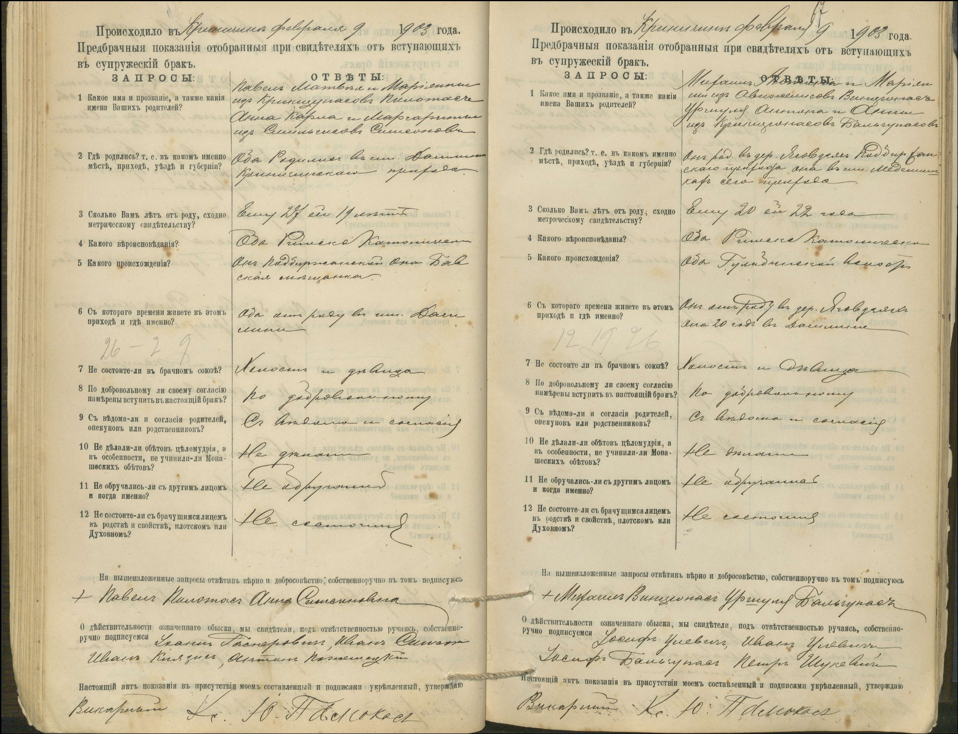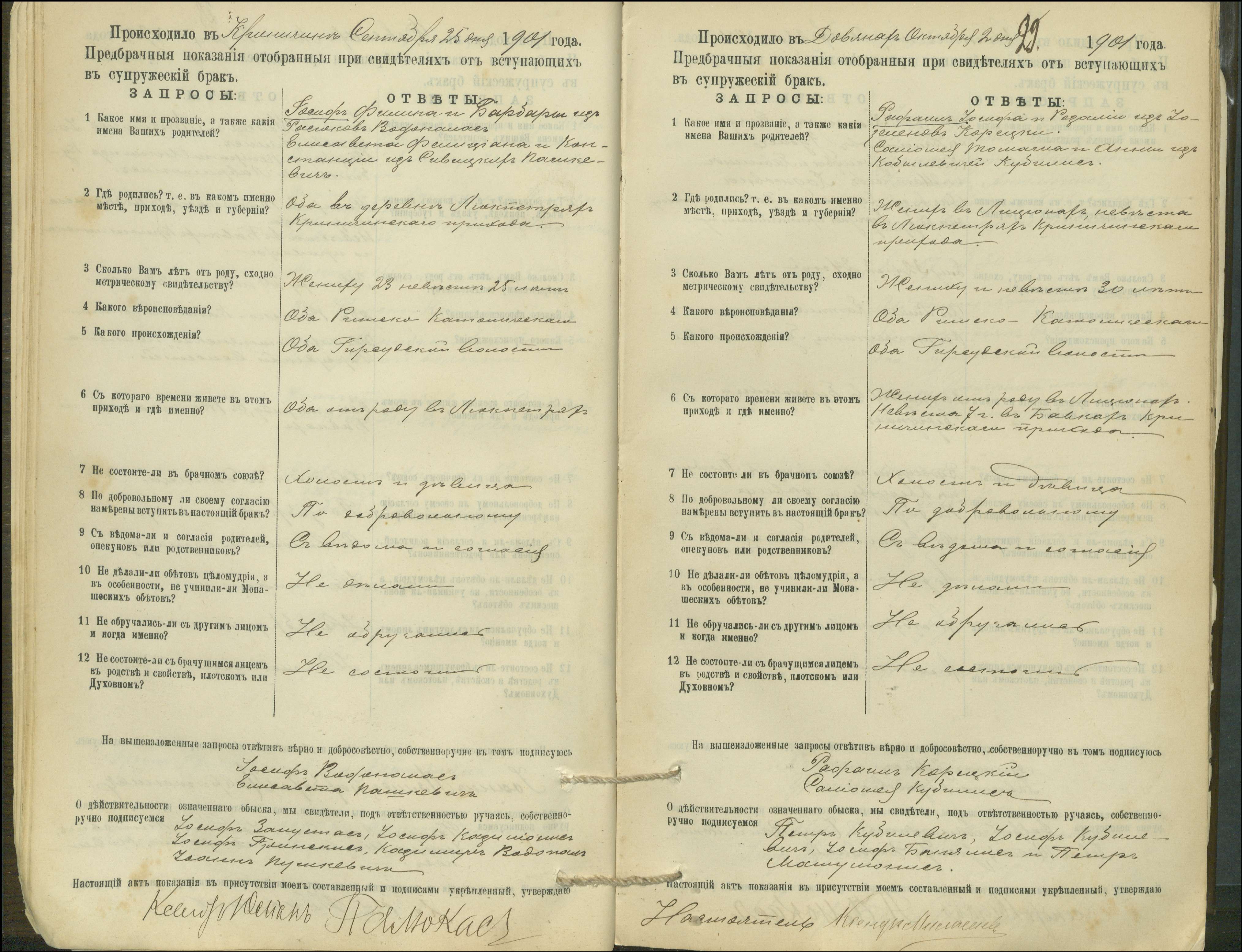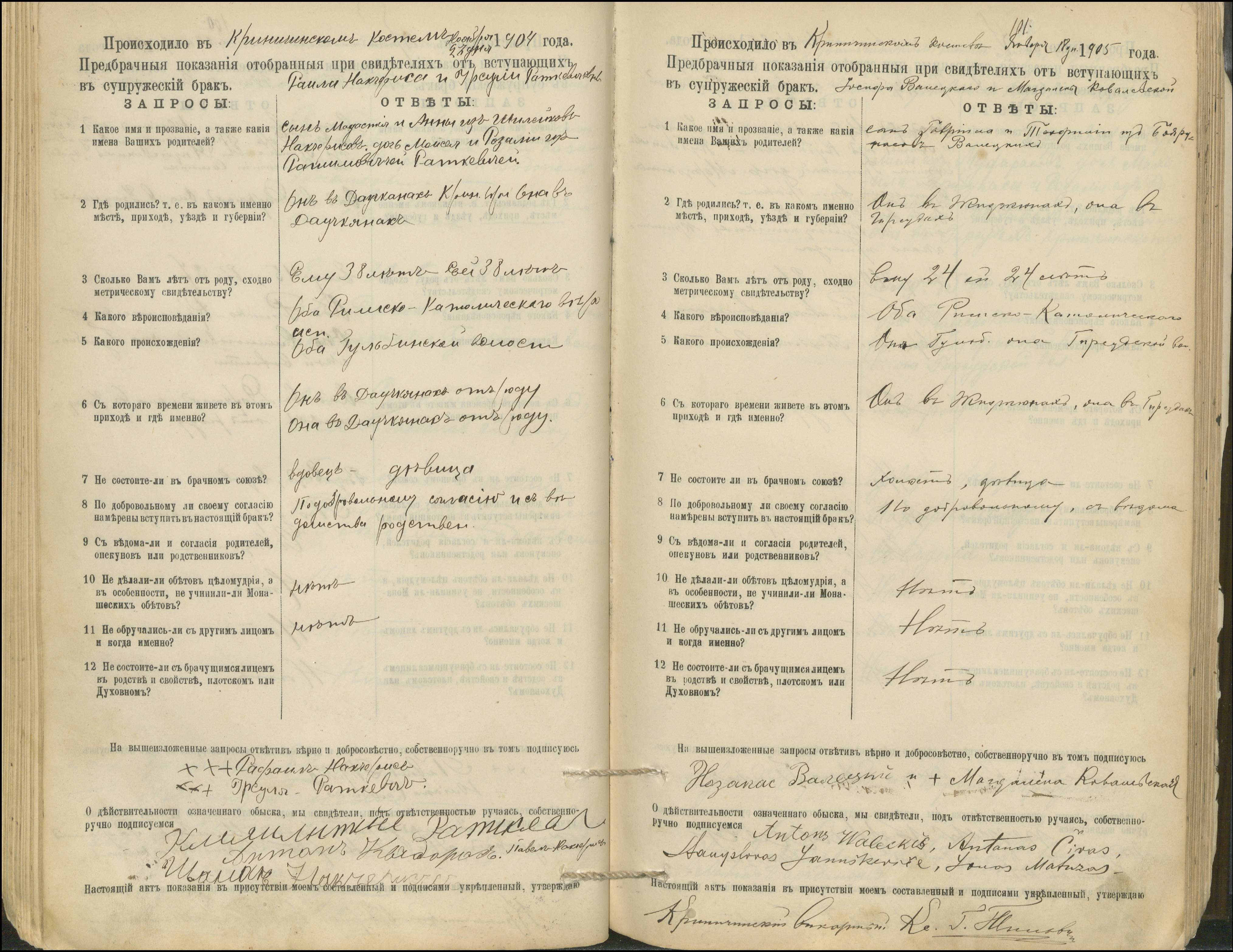 Krinčino Romos katalikų parapijos bažnyčios 1900–1911 metų priešjungtuvinės apklausos knyga
