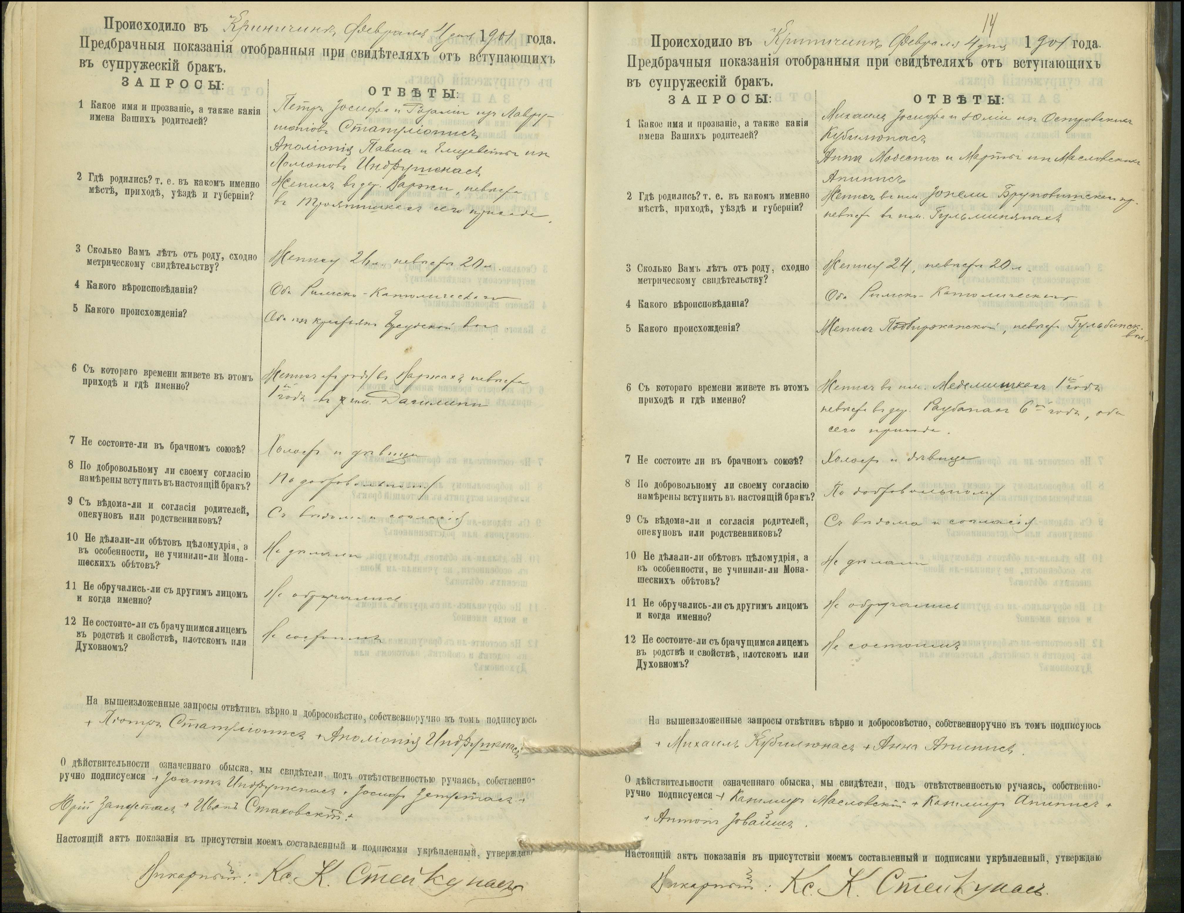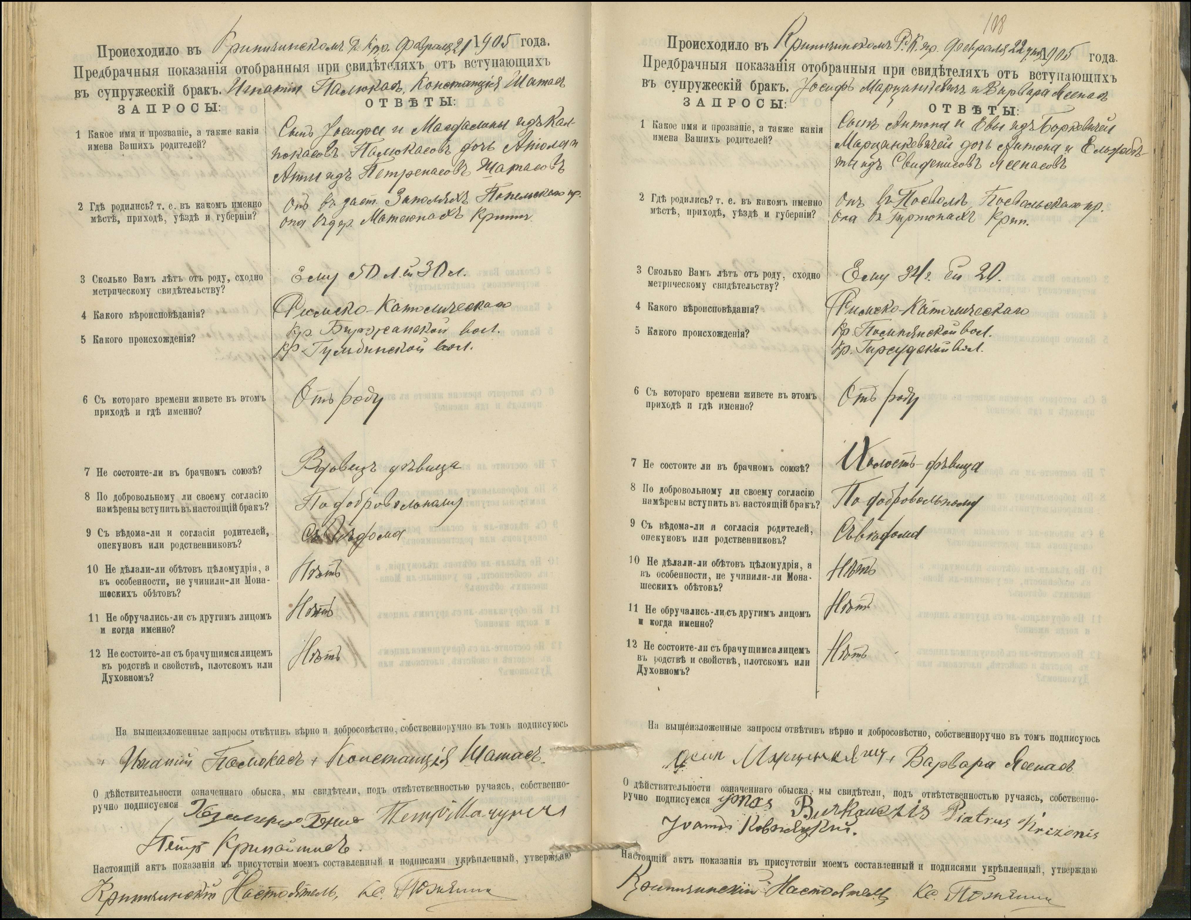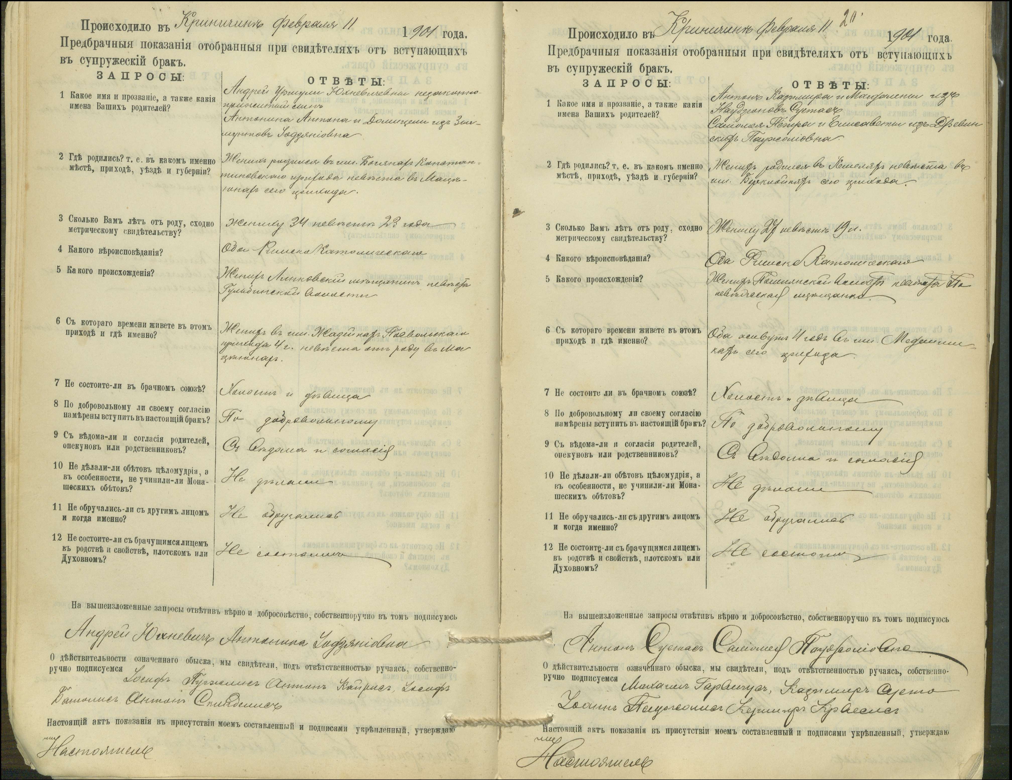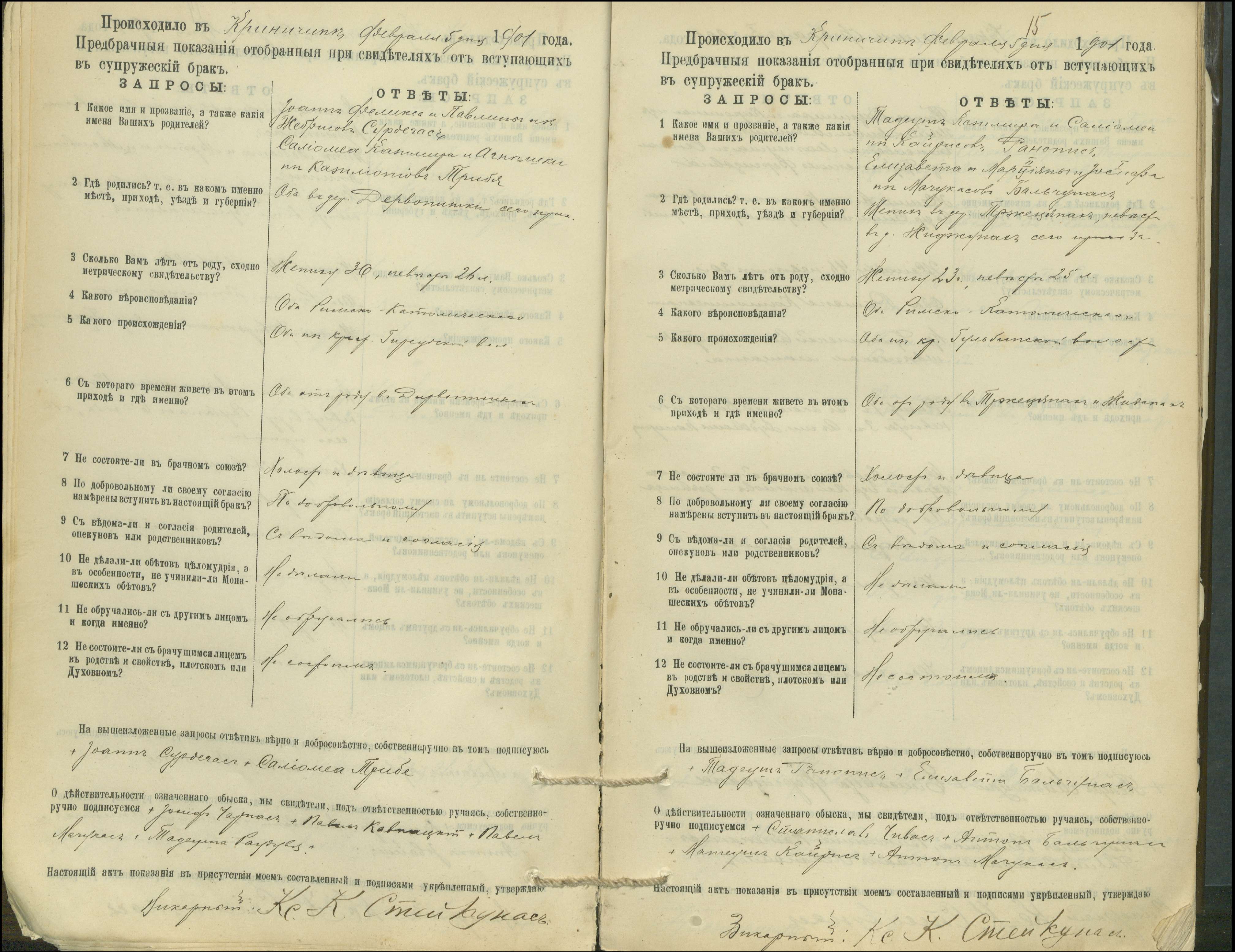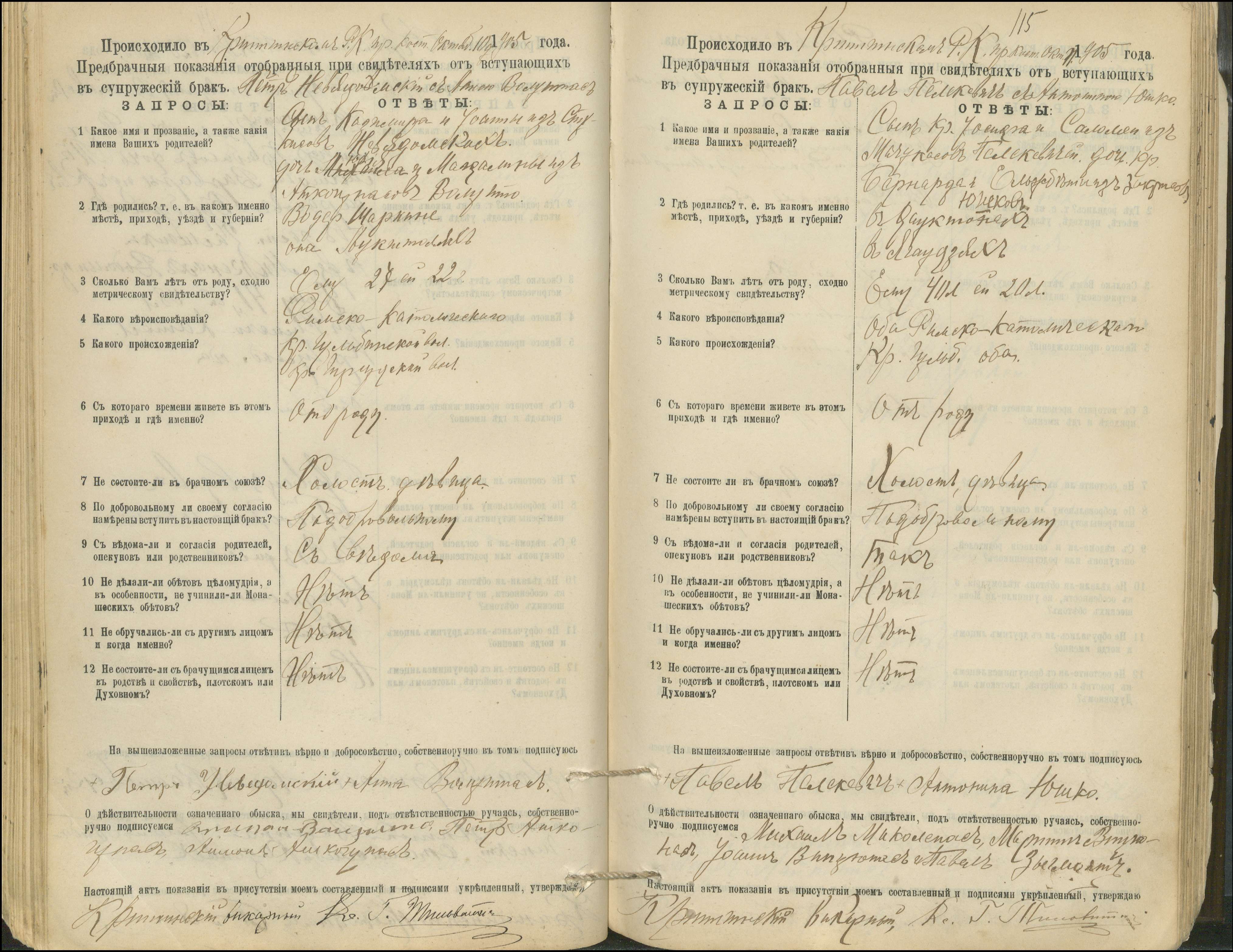 Krinčino Romos katalikų parapijos bažnyčios 1900–1911 metų priešjungtuvinės apklausos knyga