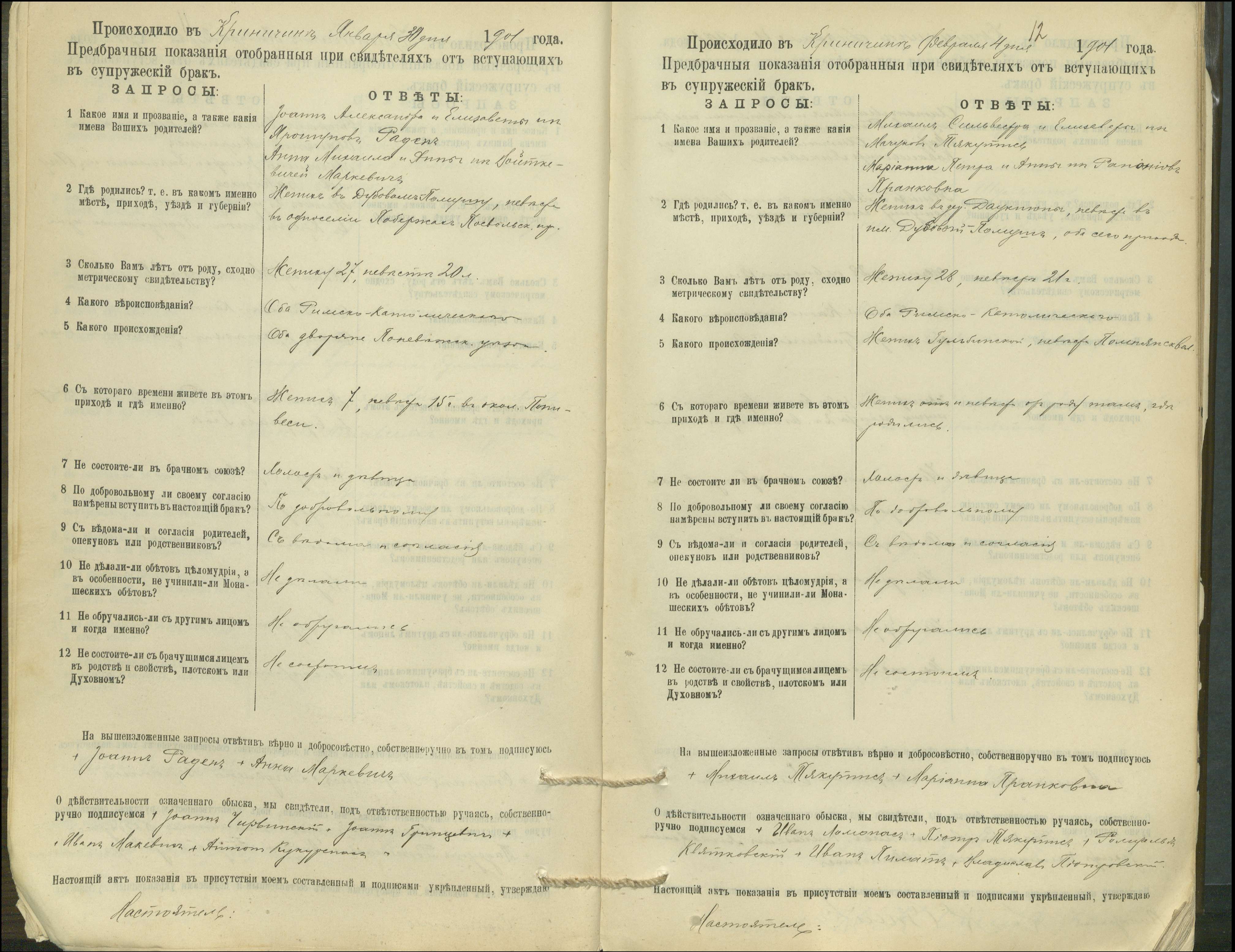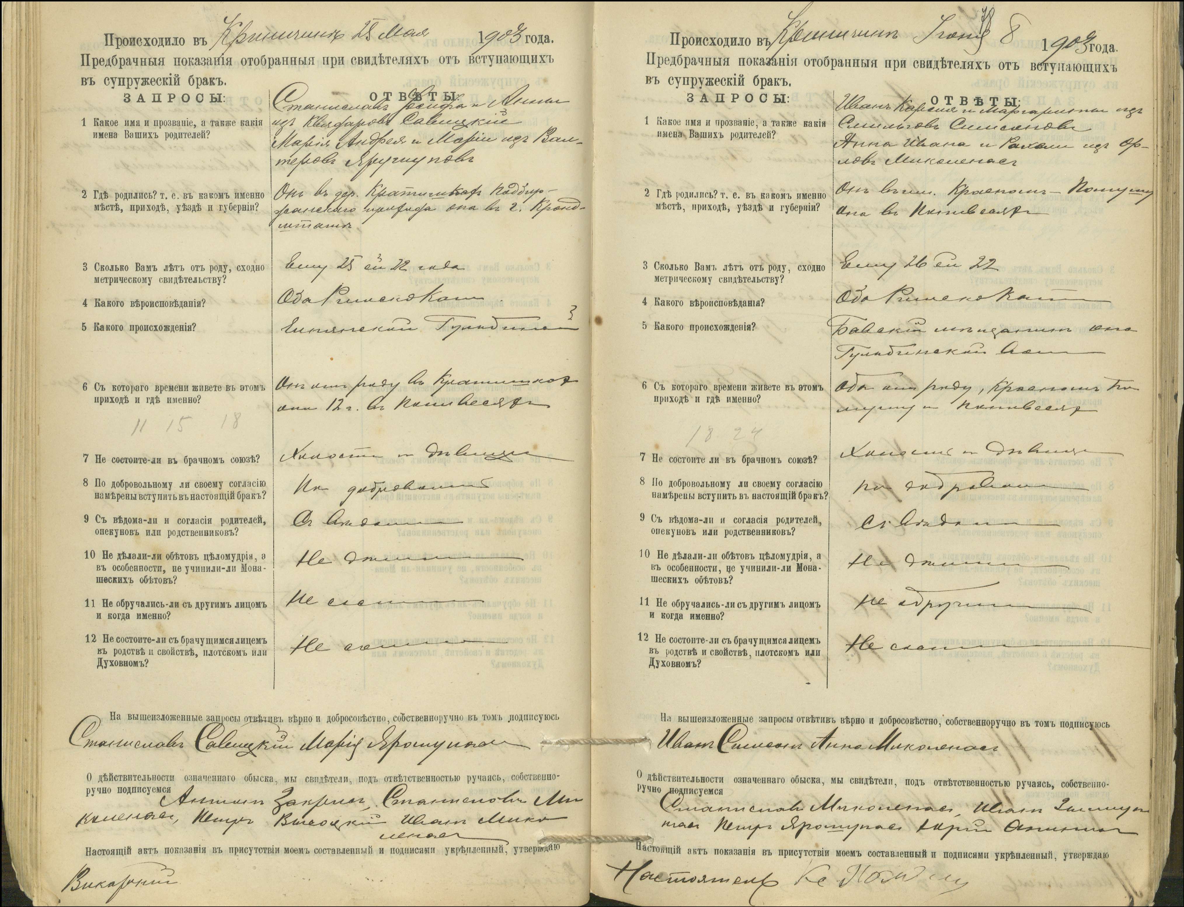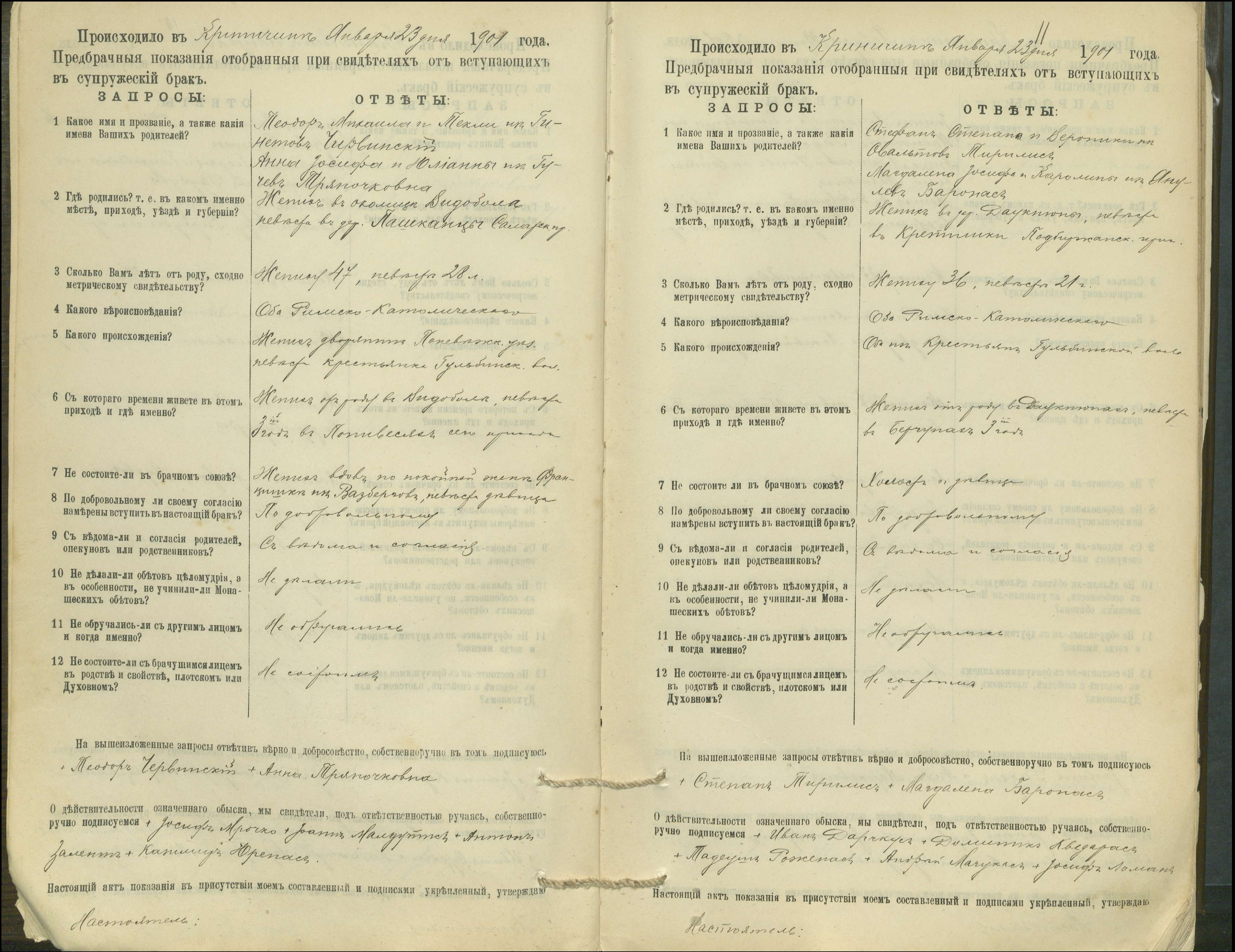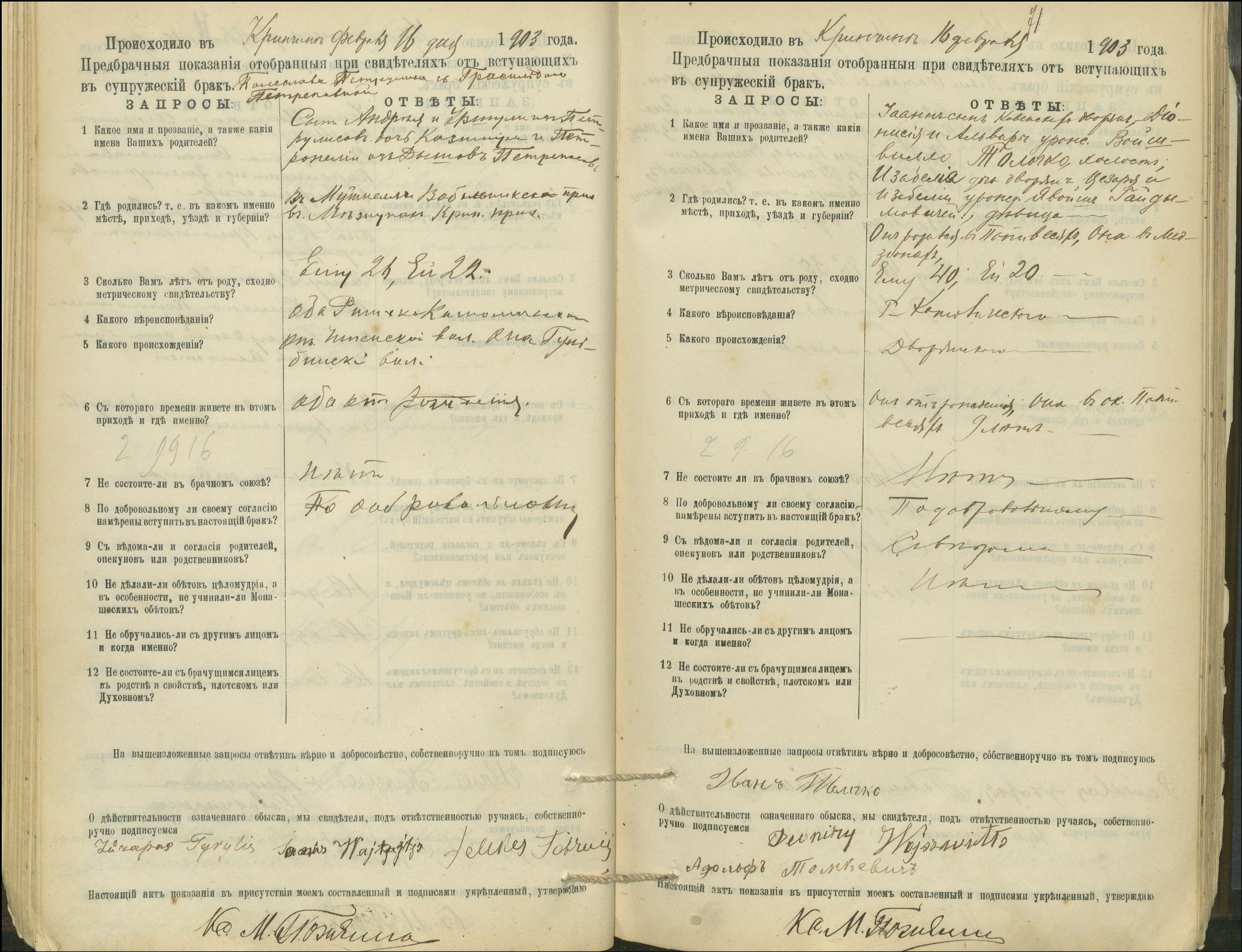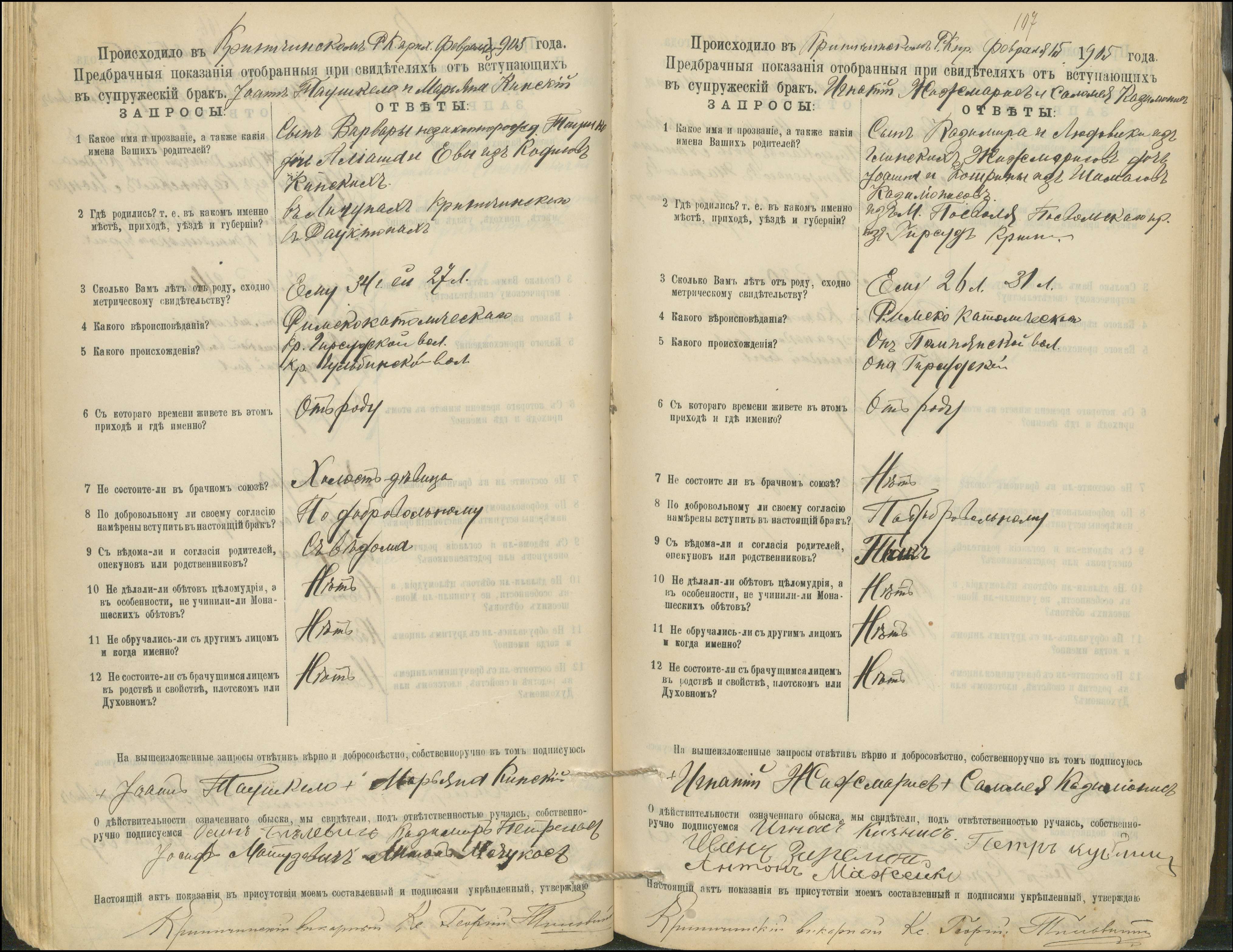 Krinčino Romos katalikų parapijos bažnyčios 1900–1911 metų priešjungtuvinės apklausos knyga