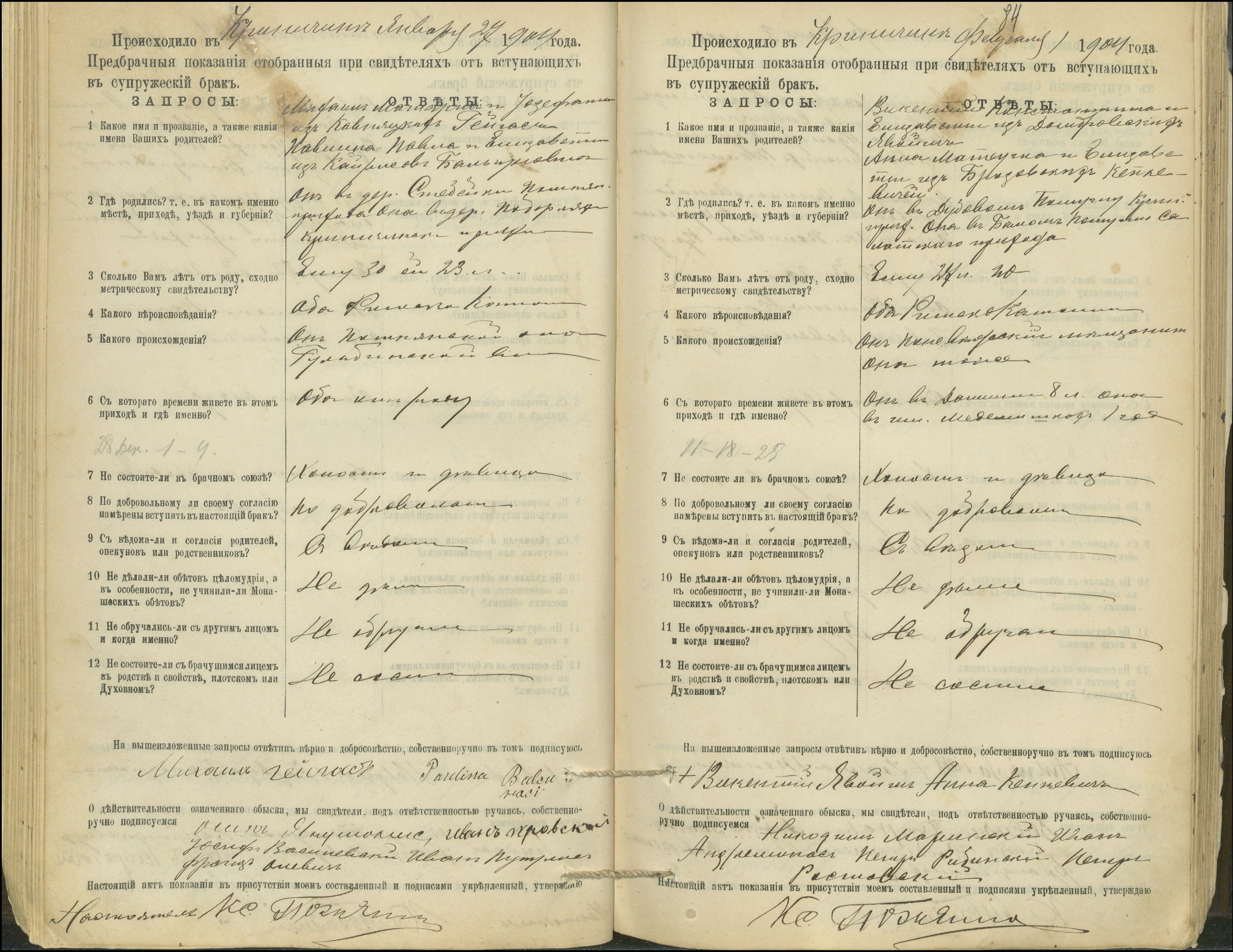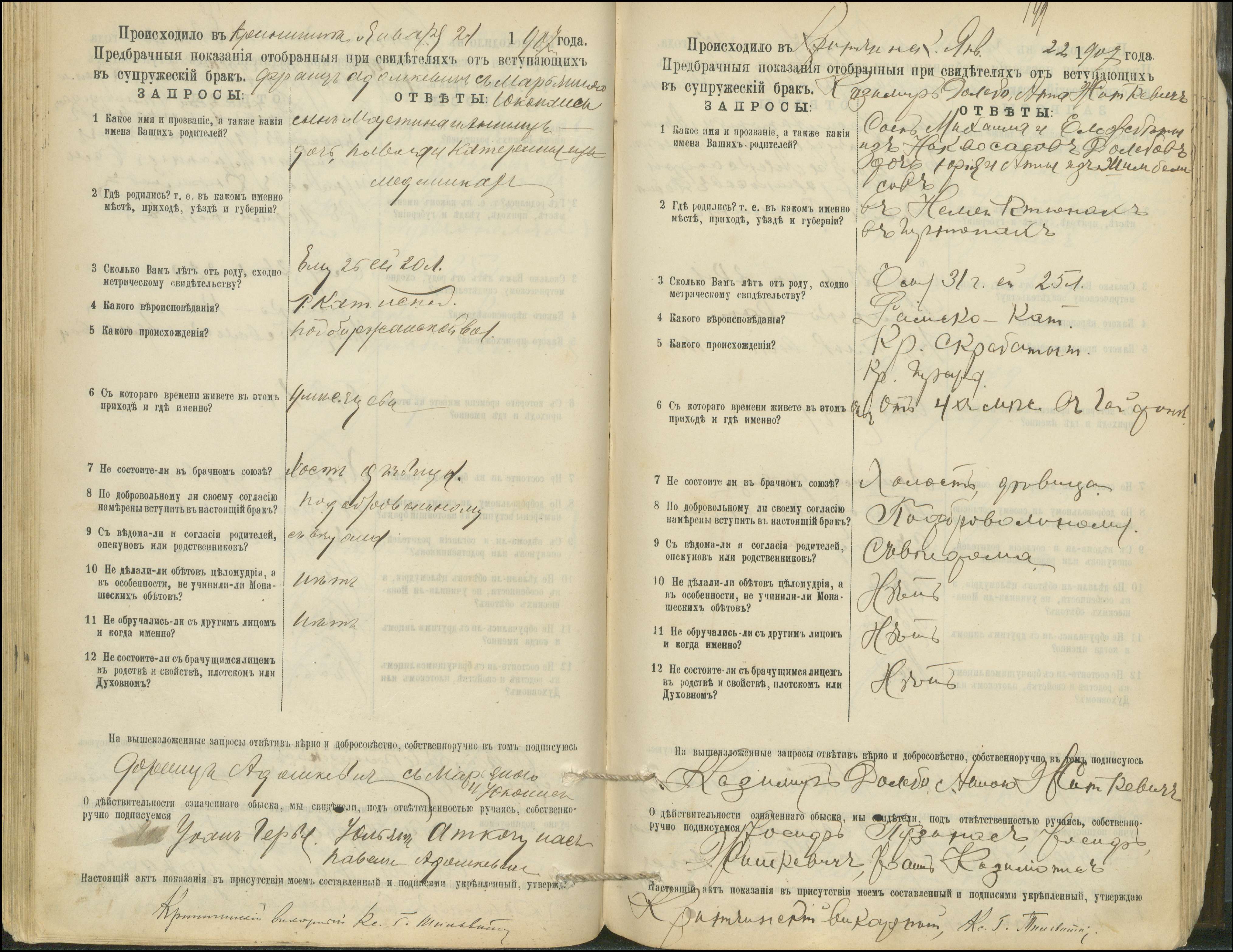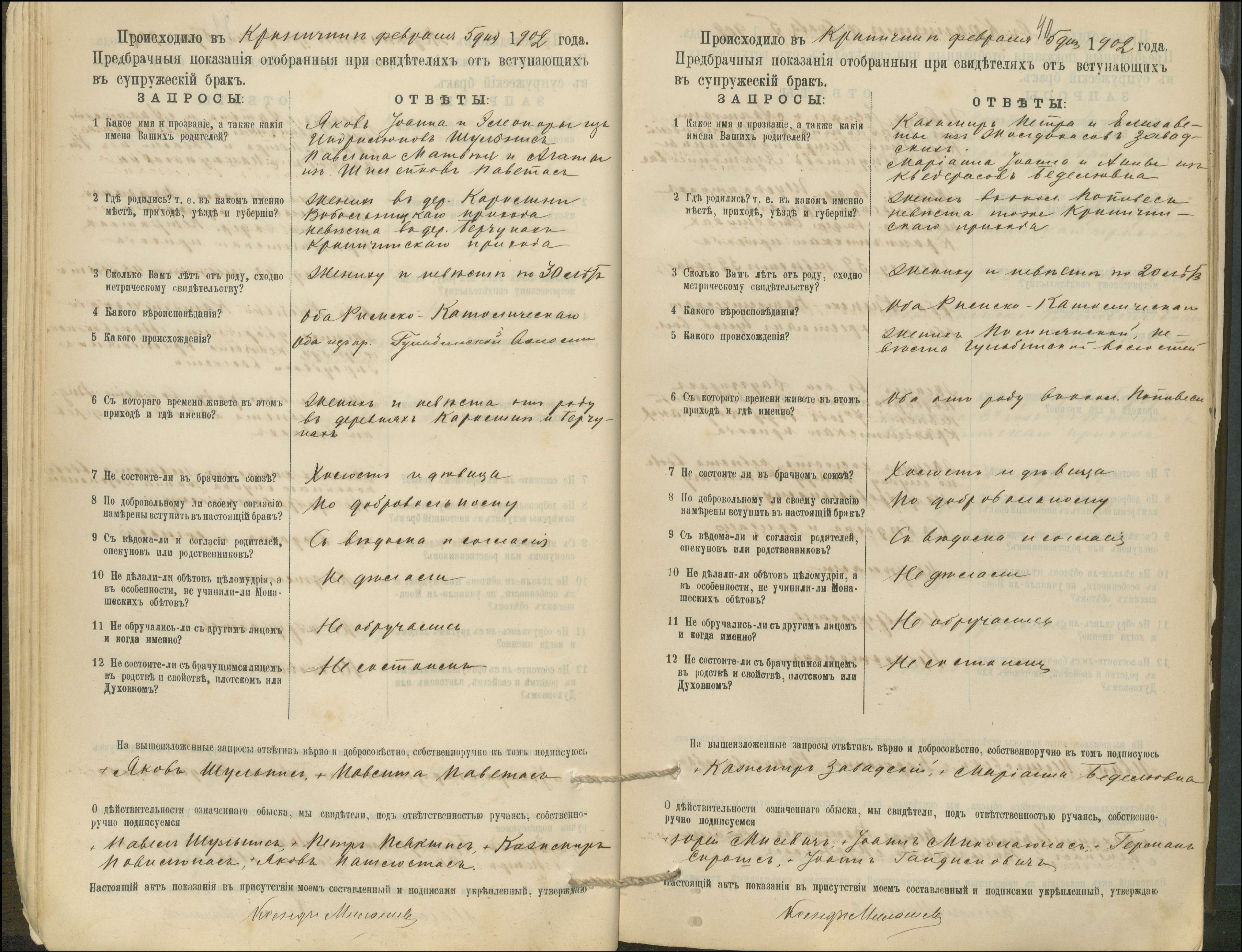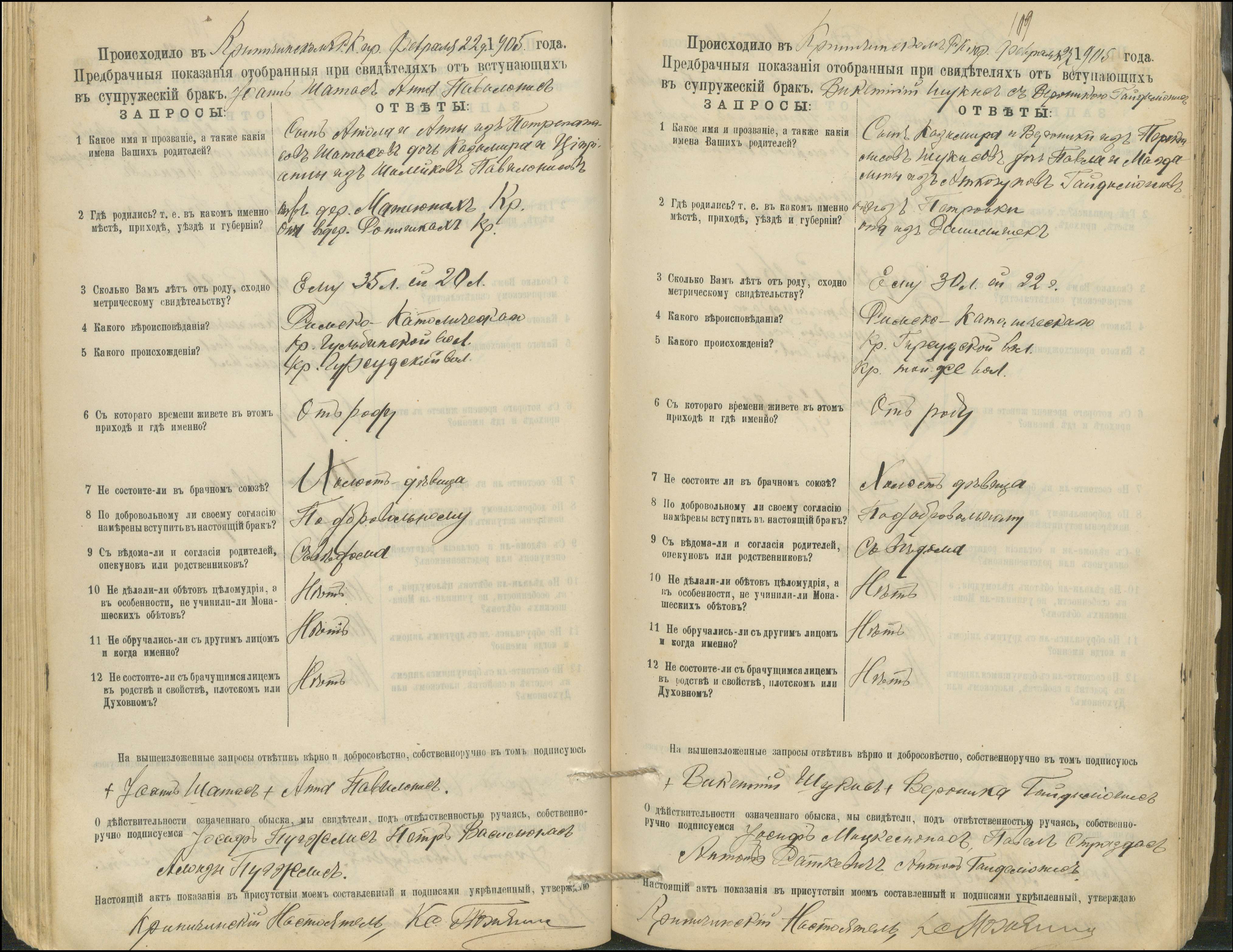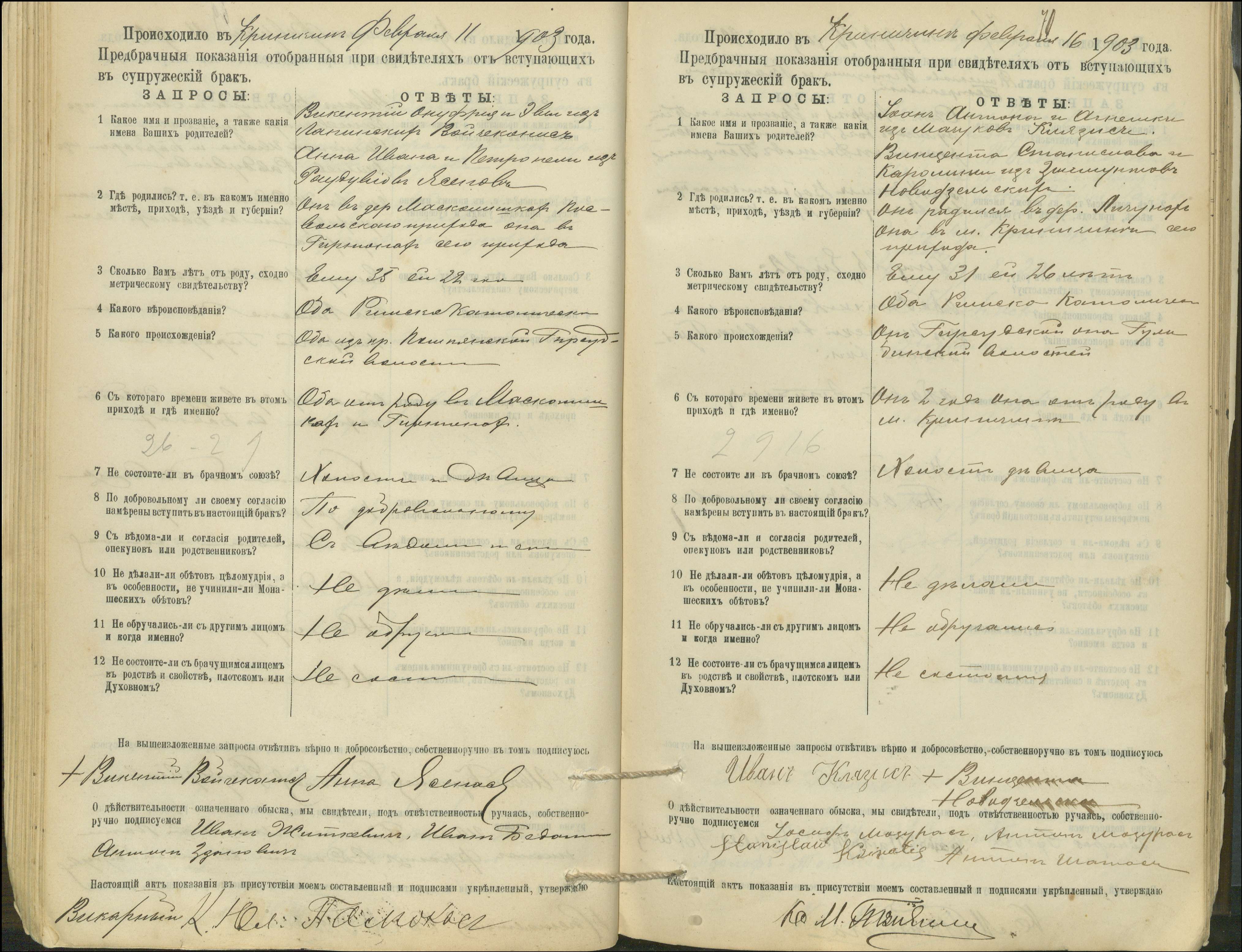 Krinčino Romos katalikų parapijos bažnyčios 1900–1911 metų priešjungtuvinės apklausos knyga