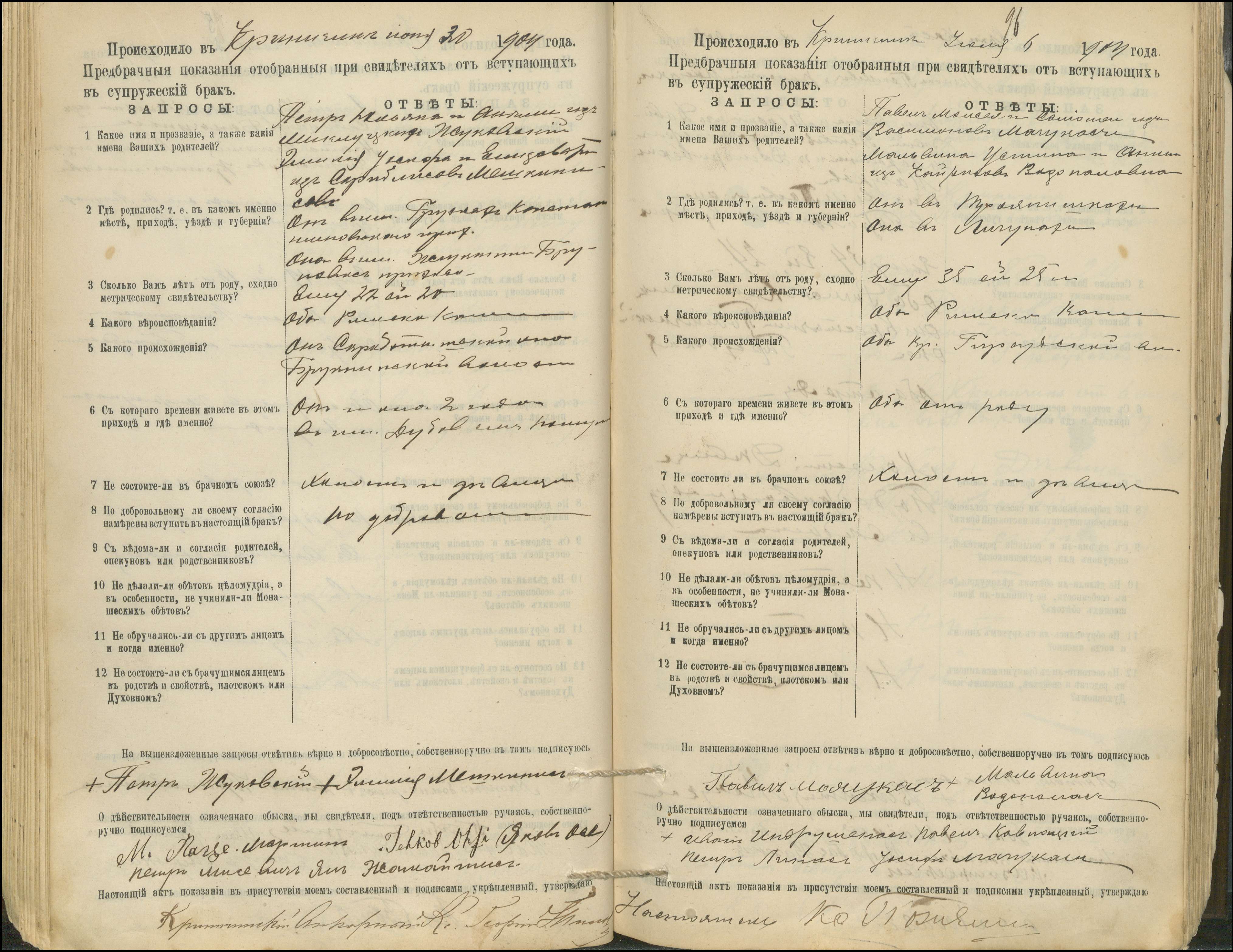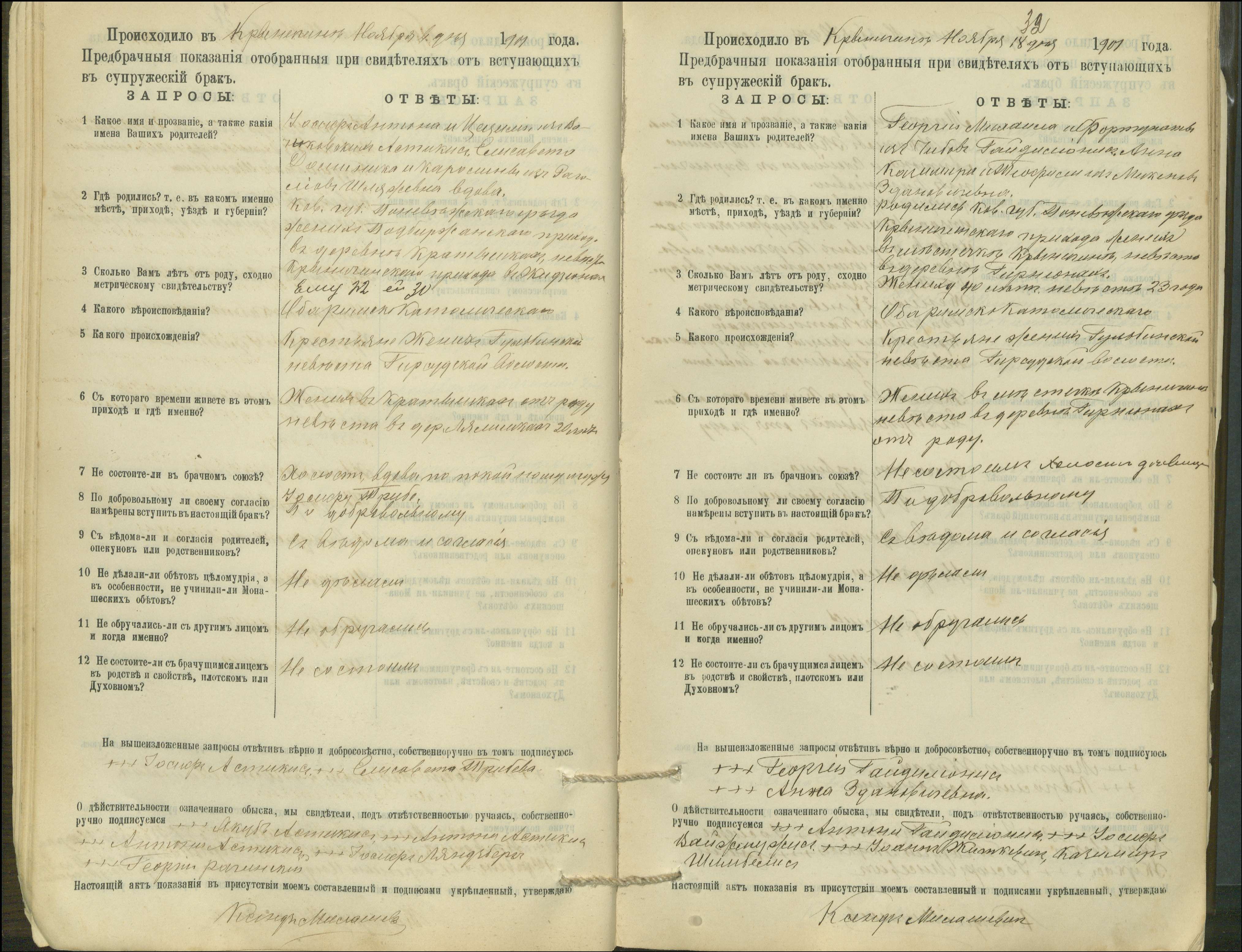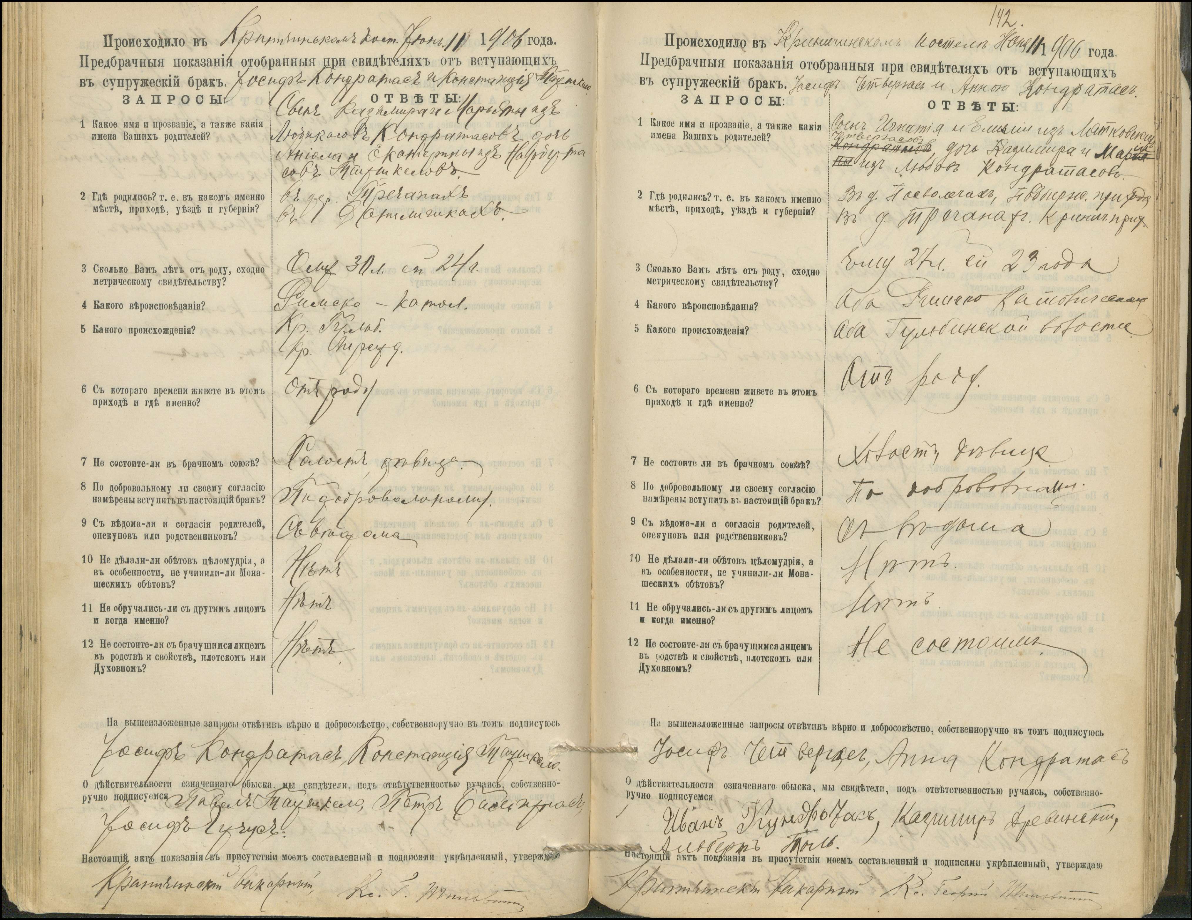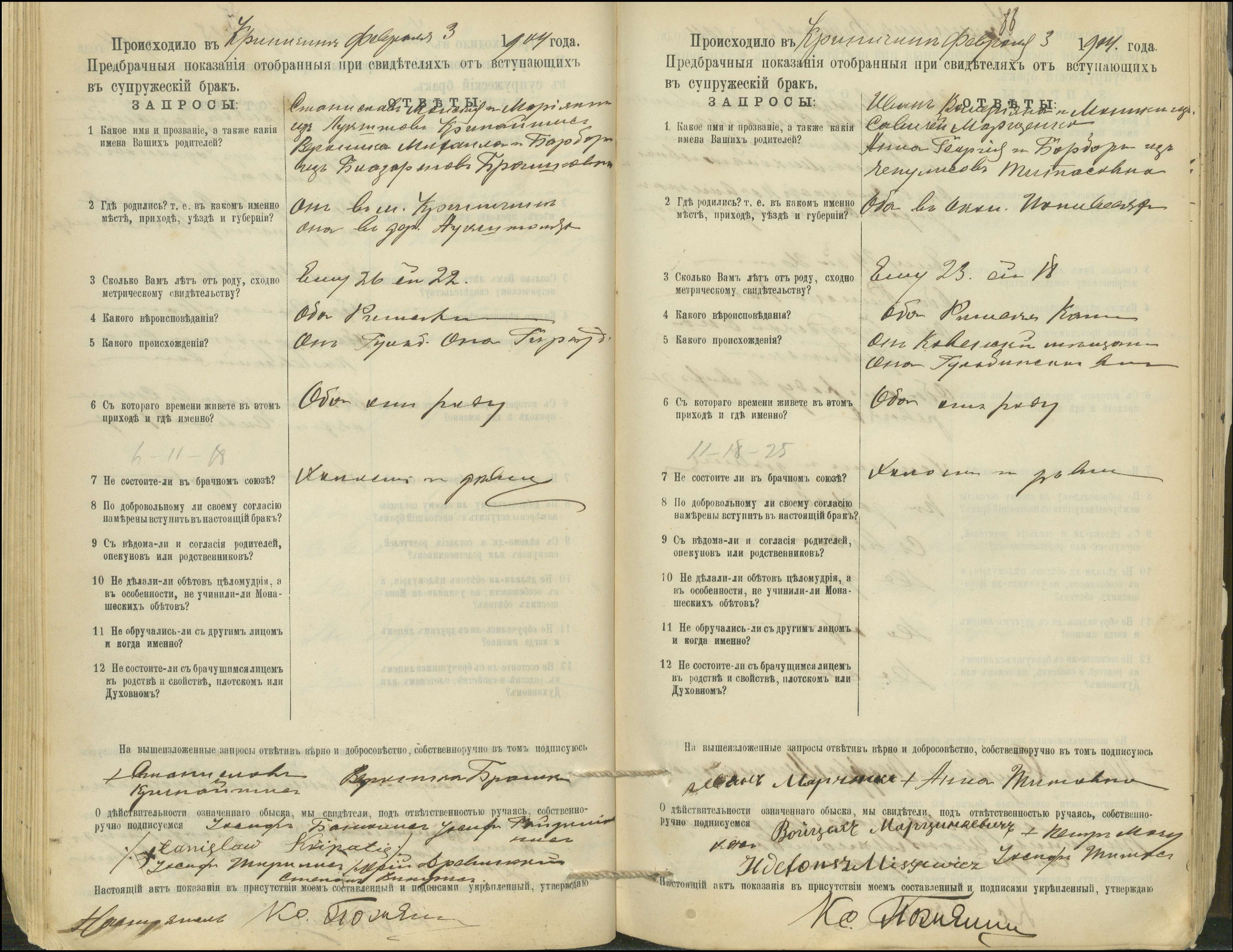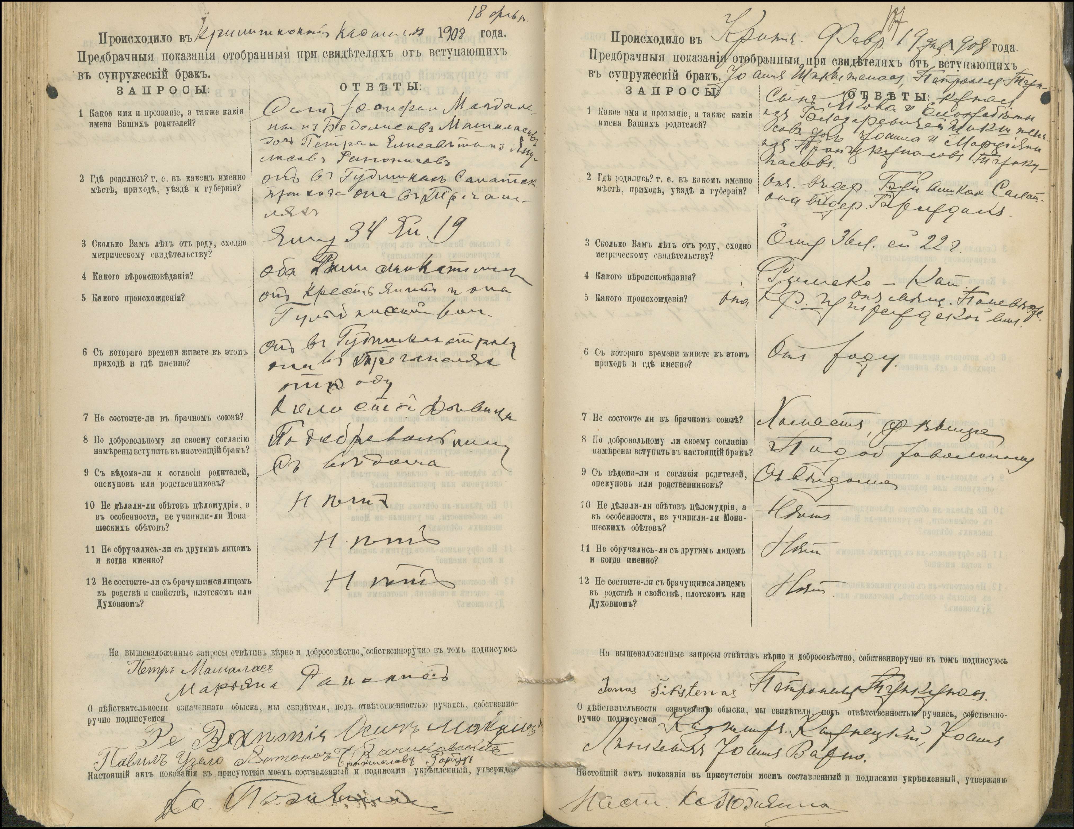 Krinčino Romos katalikų parapijos bažnyčios 1900–1911 metų priešjungtuvinės apklausos knyga