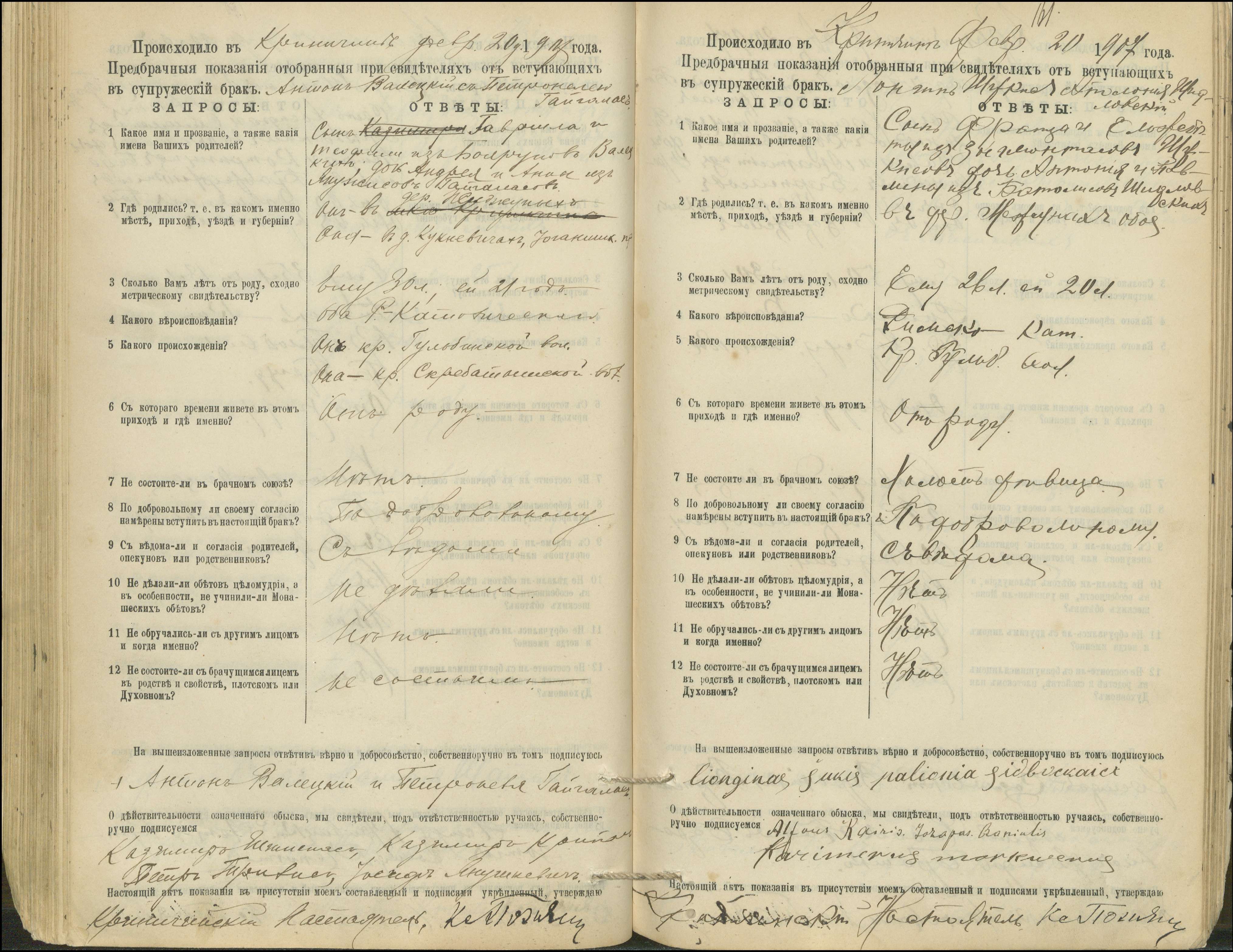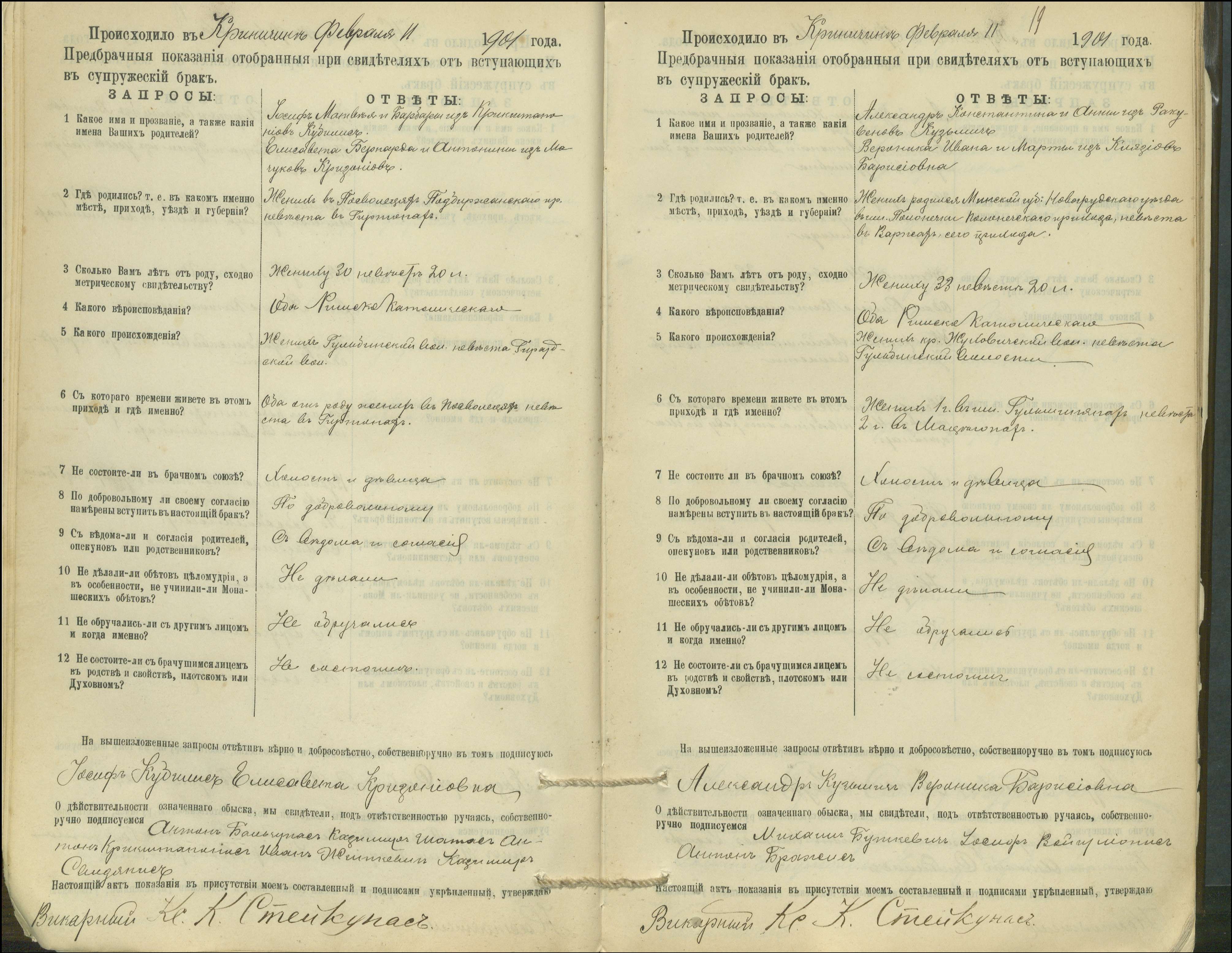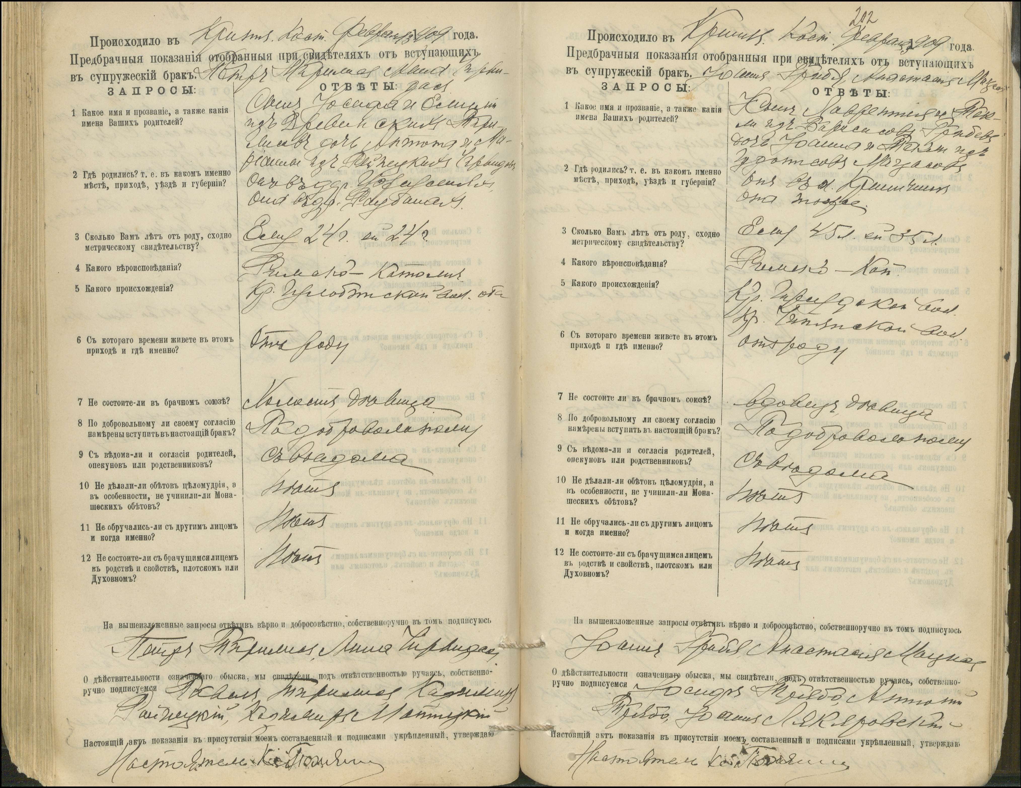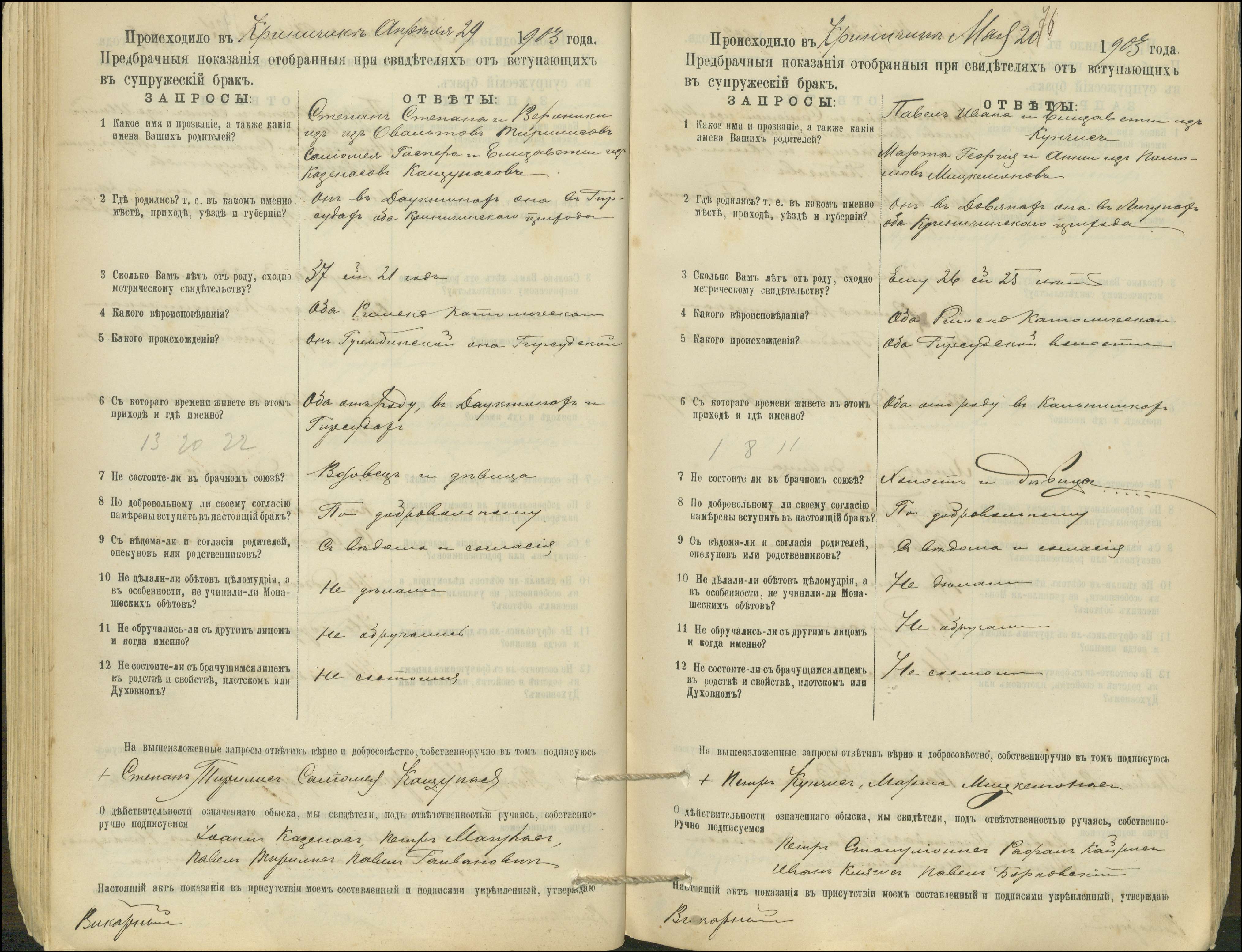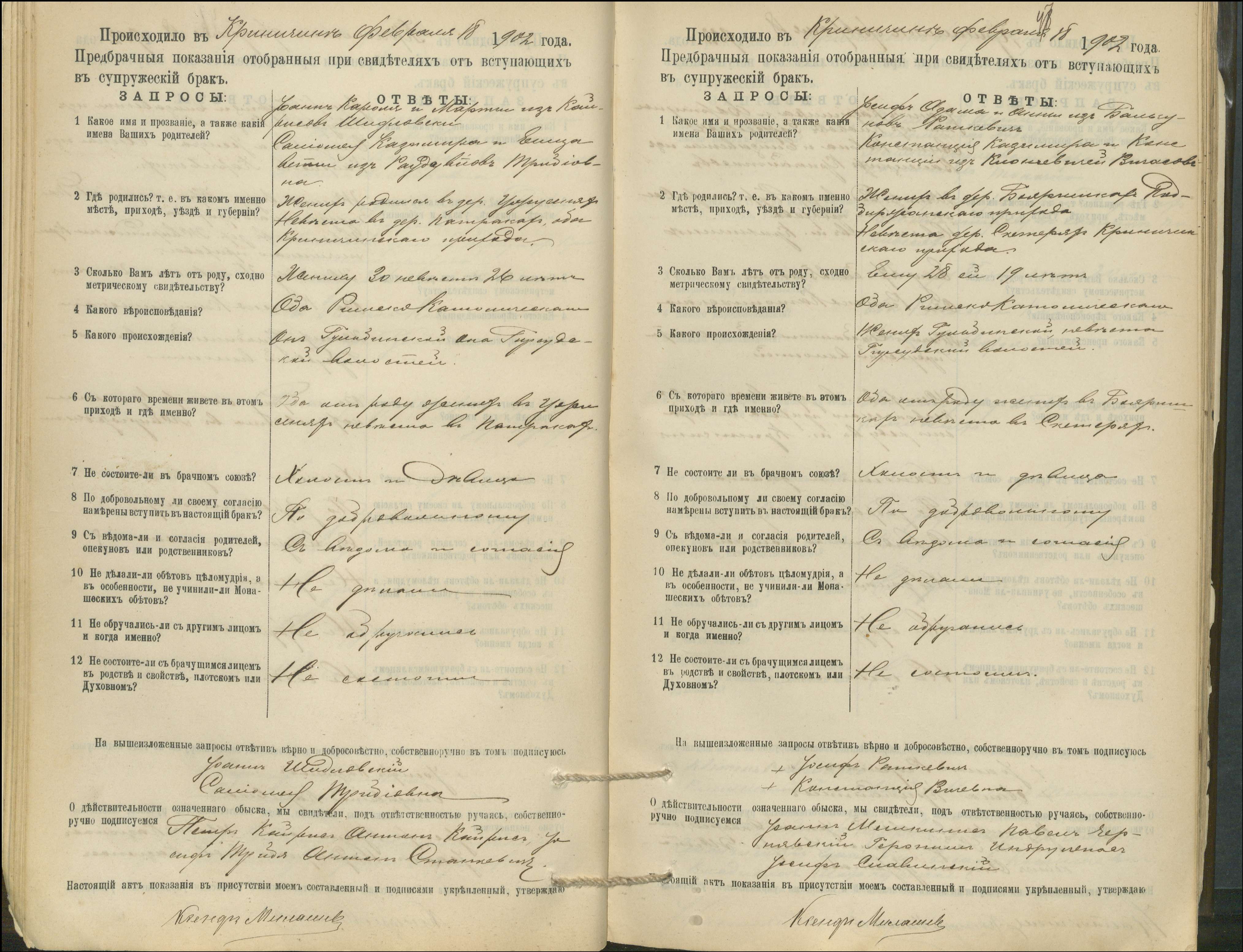 Krinčino Romos katalikų parapijos bažnyčios 1900–1911 metų priešjungtuvinės apklausos knyga