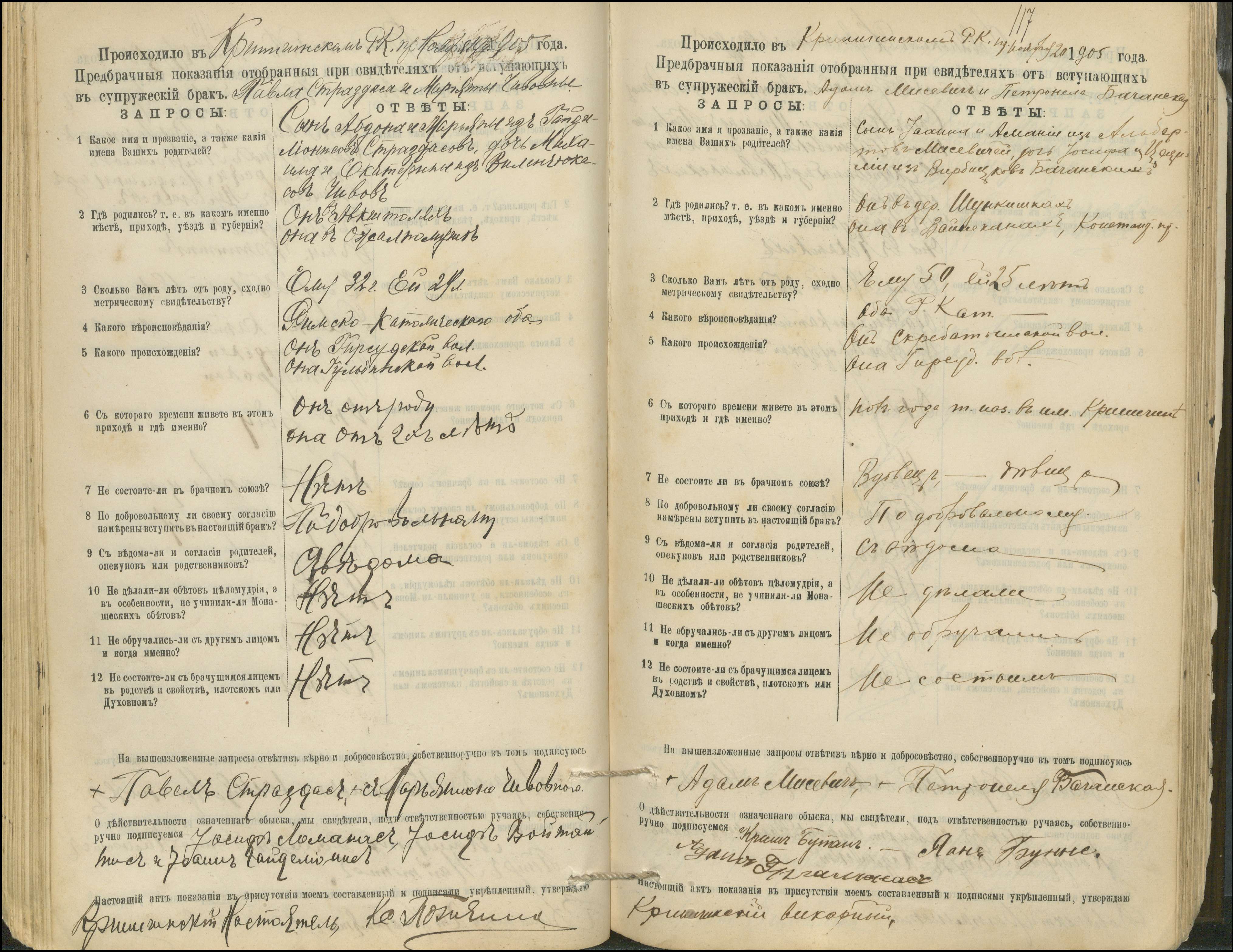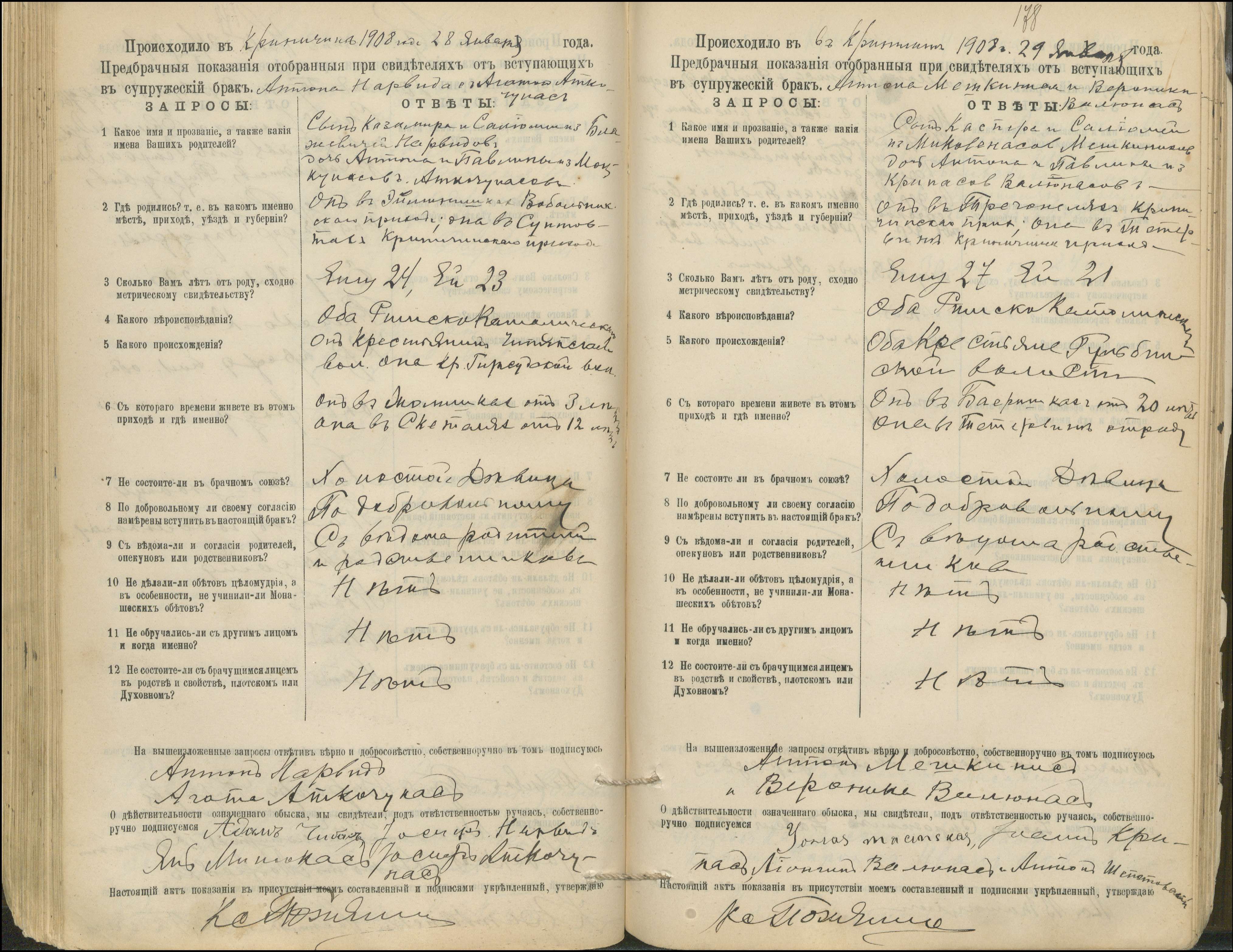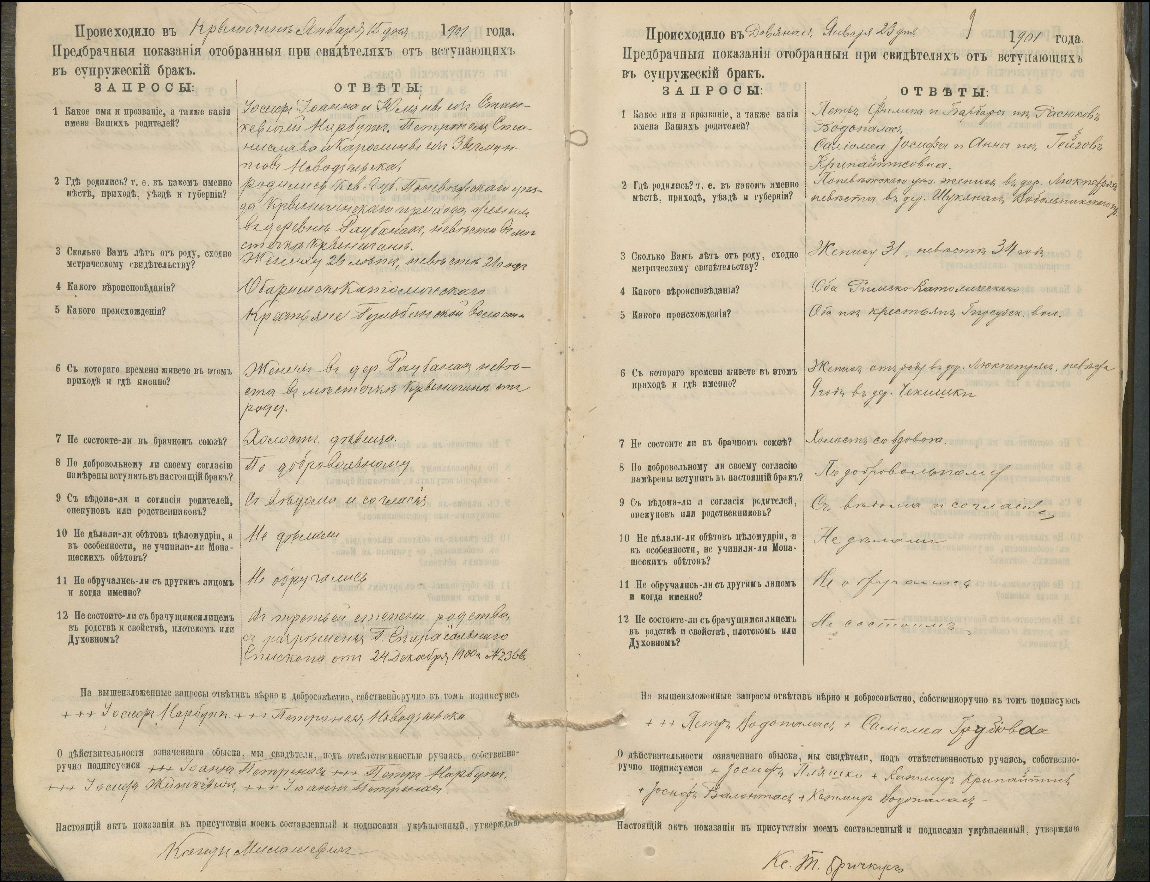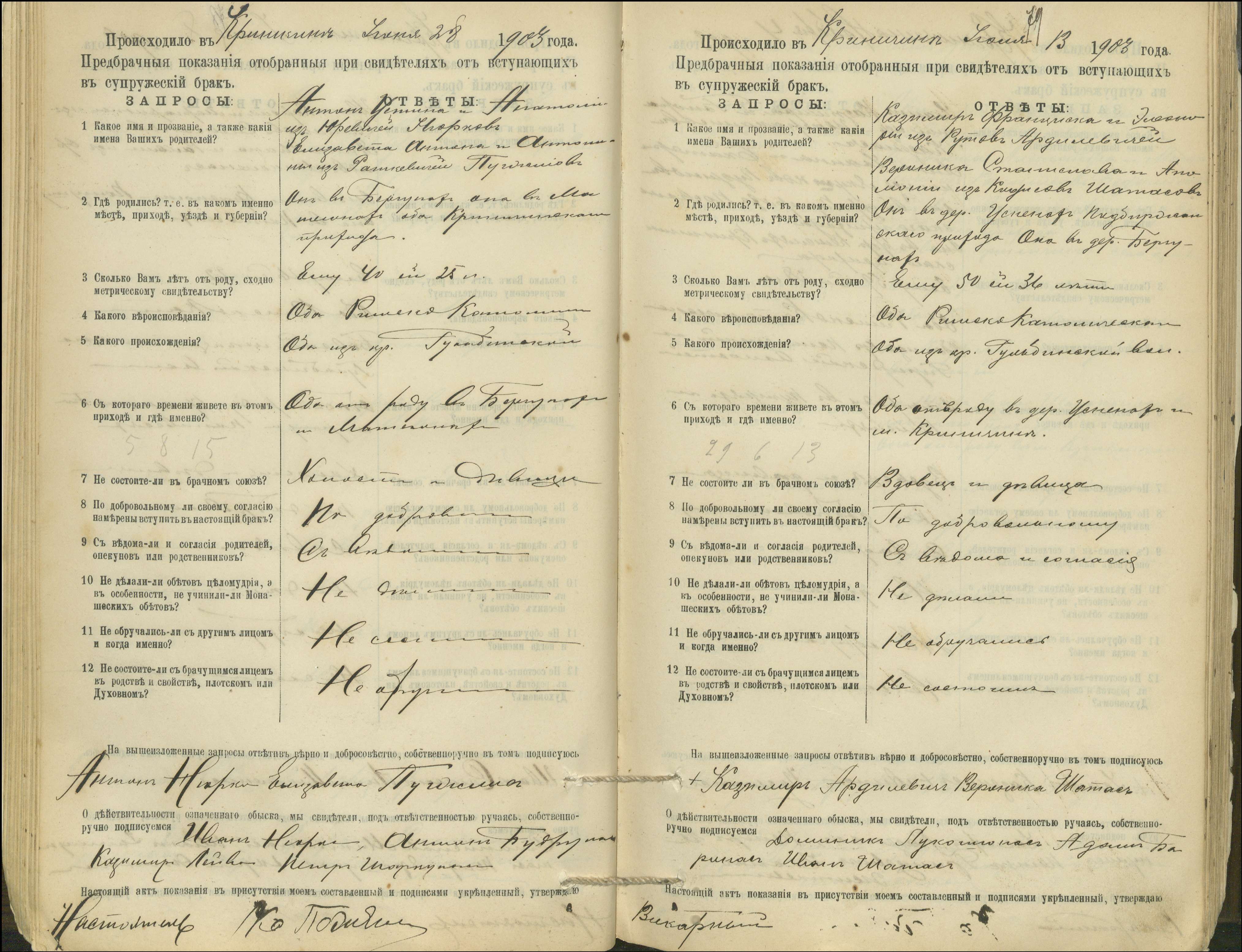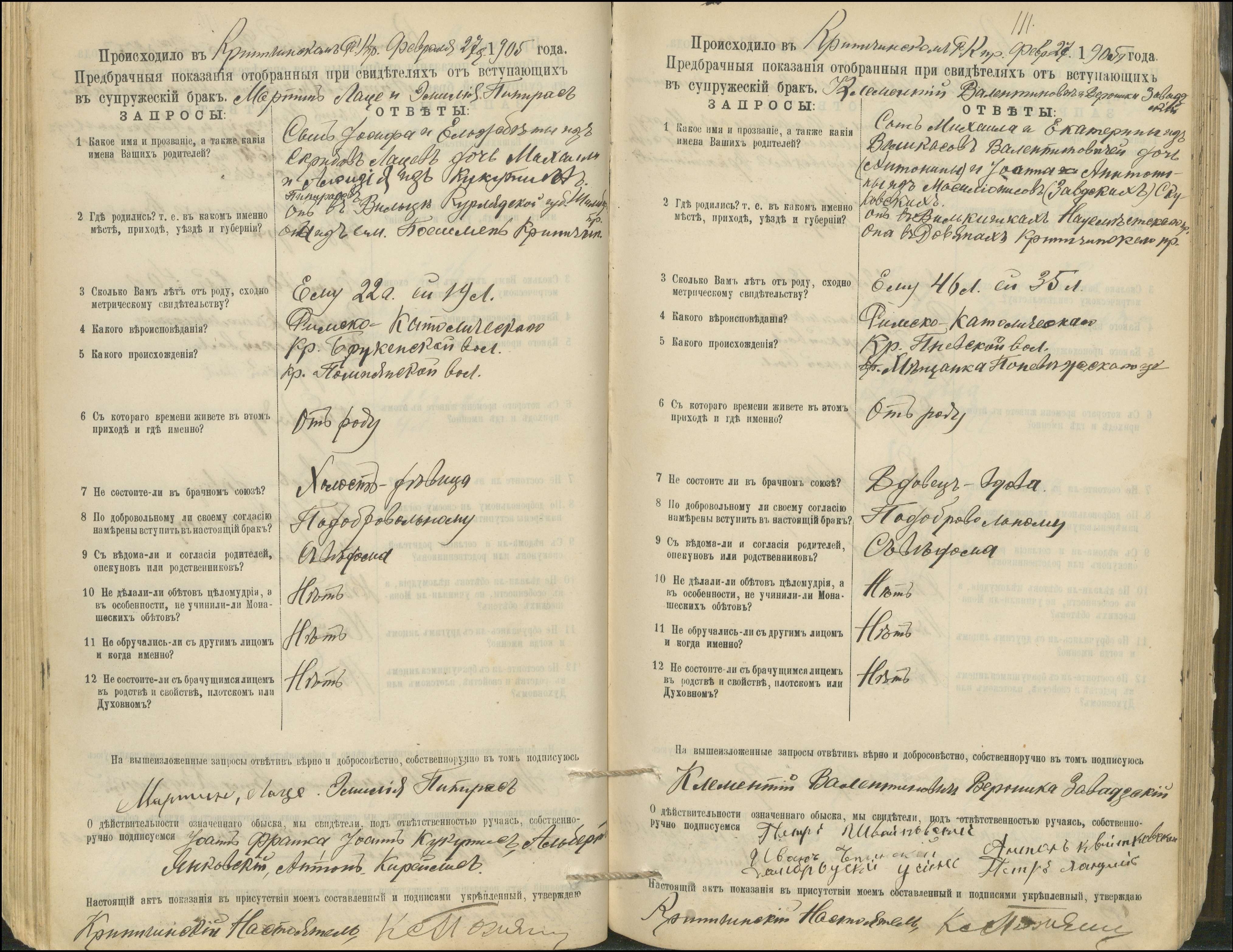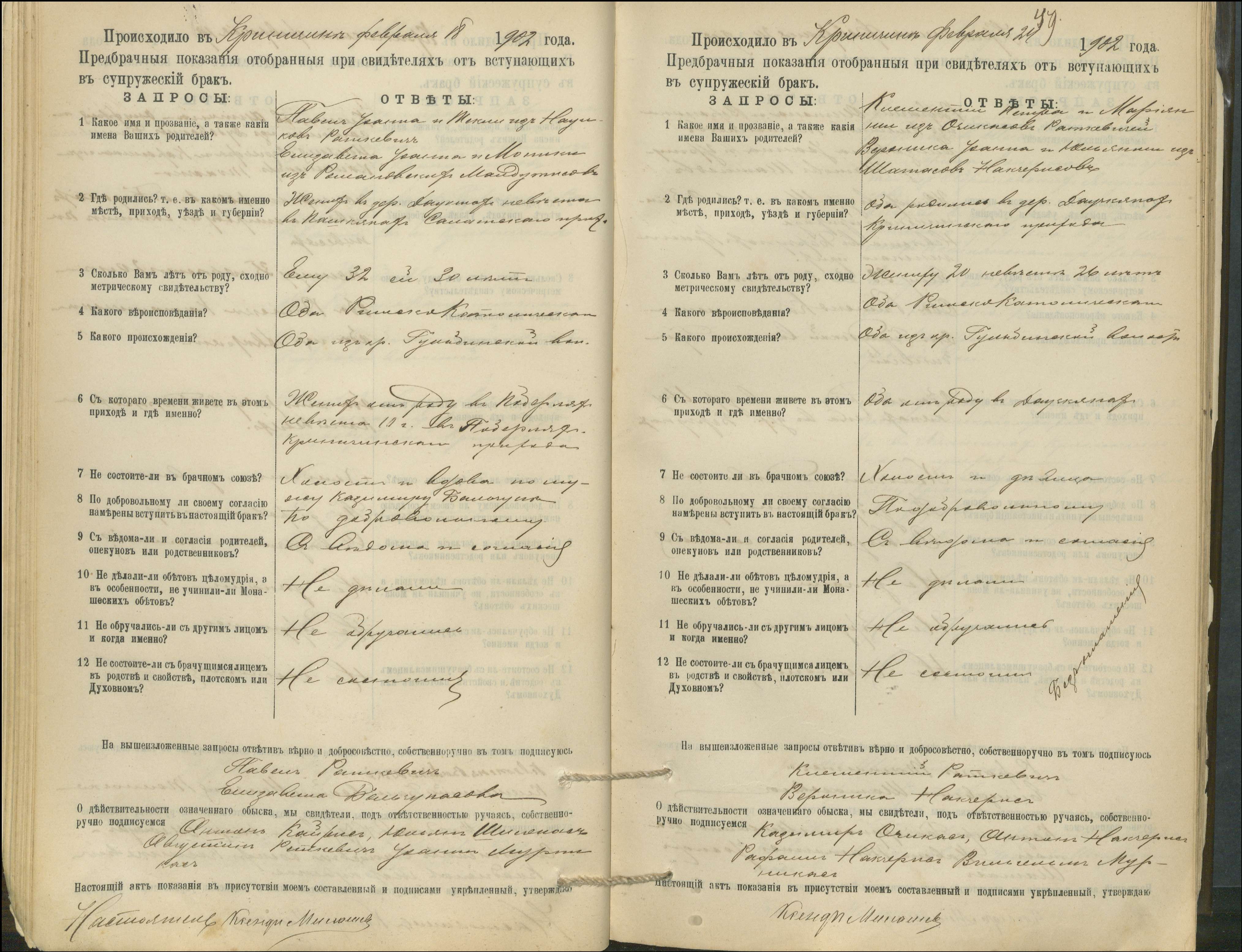 Krinčino Romos katalikų parapijos bažnyčios 1900–1911 metų priešjungtuvinės apklausos knyga