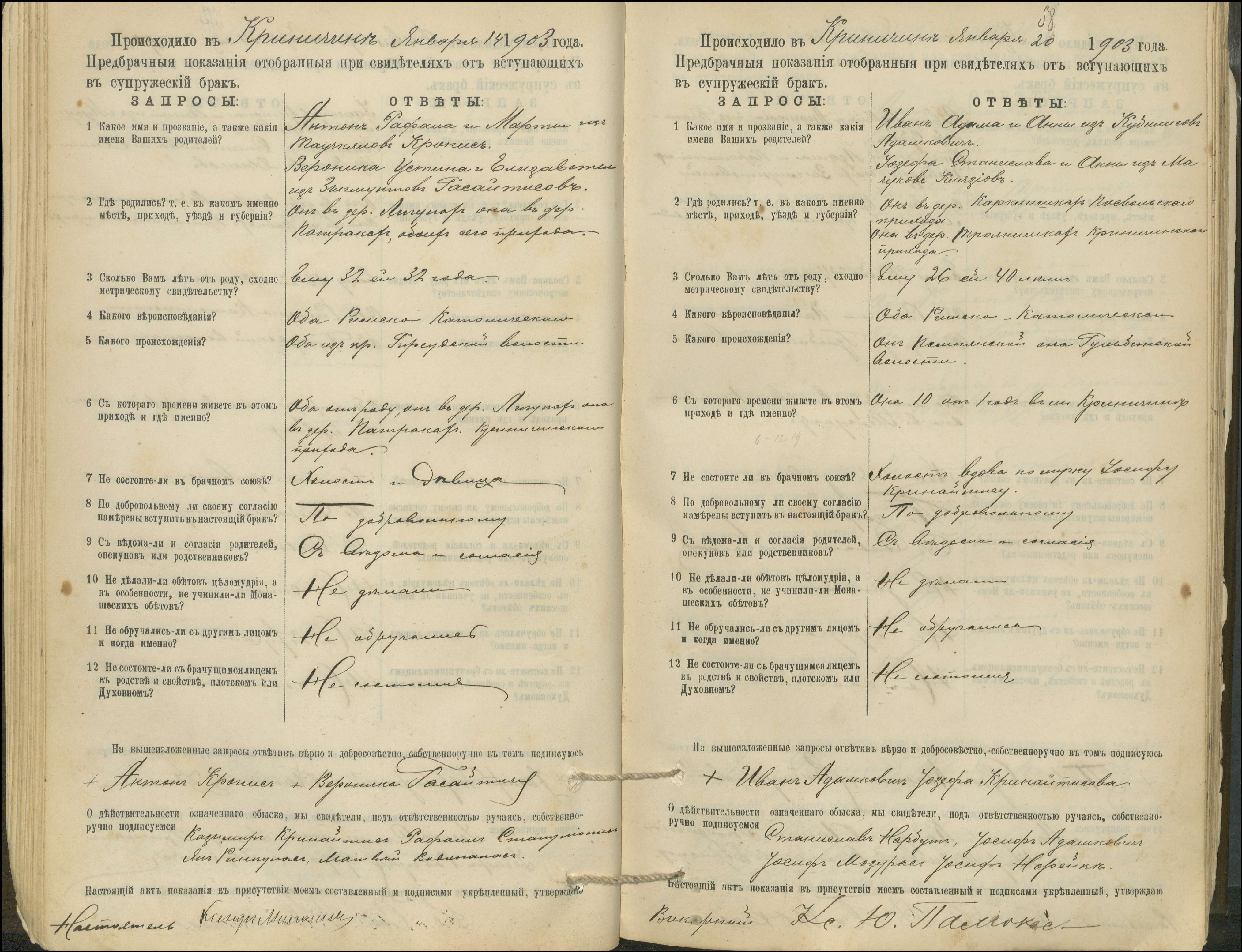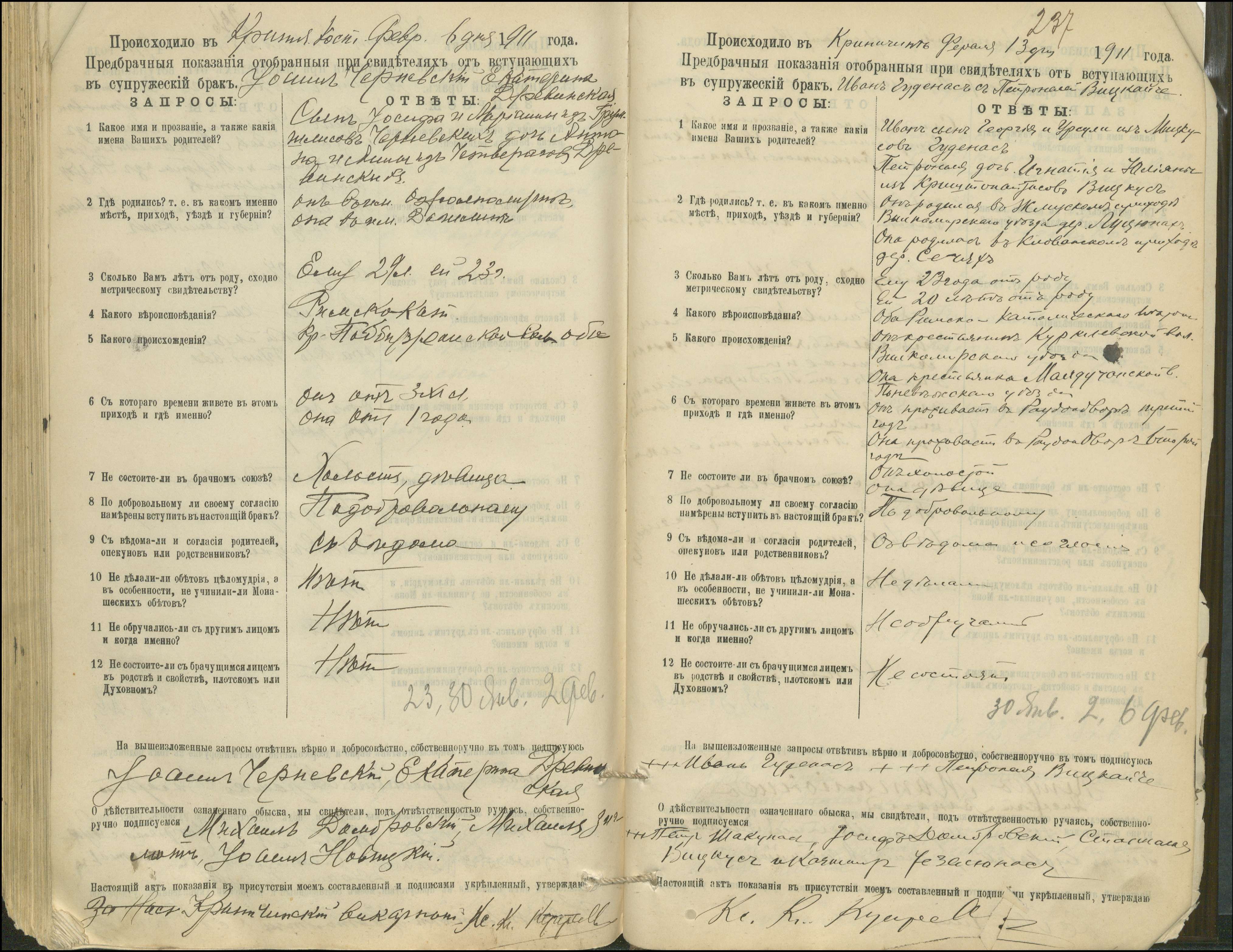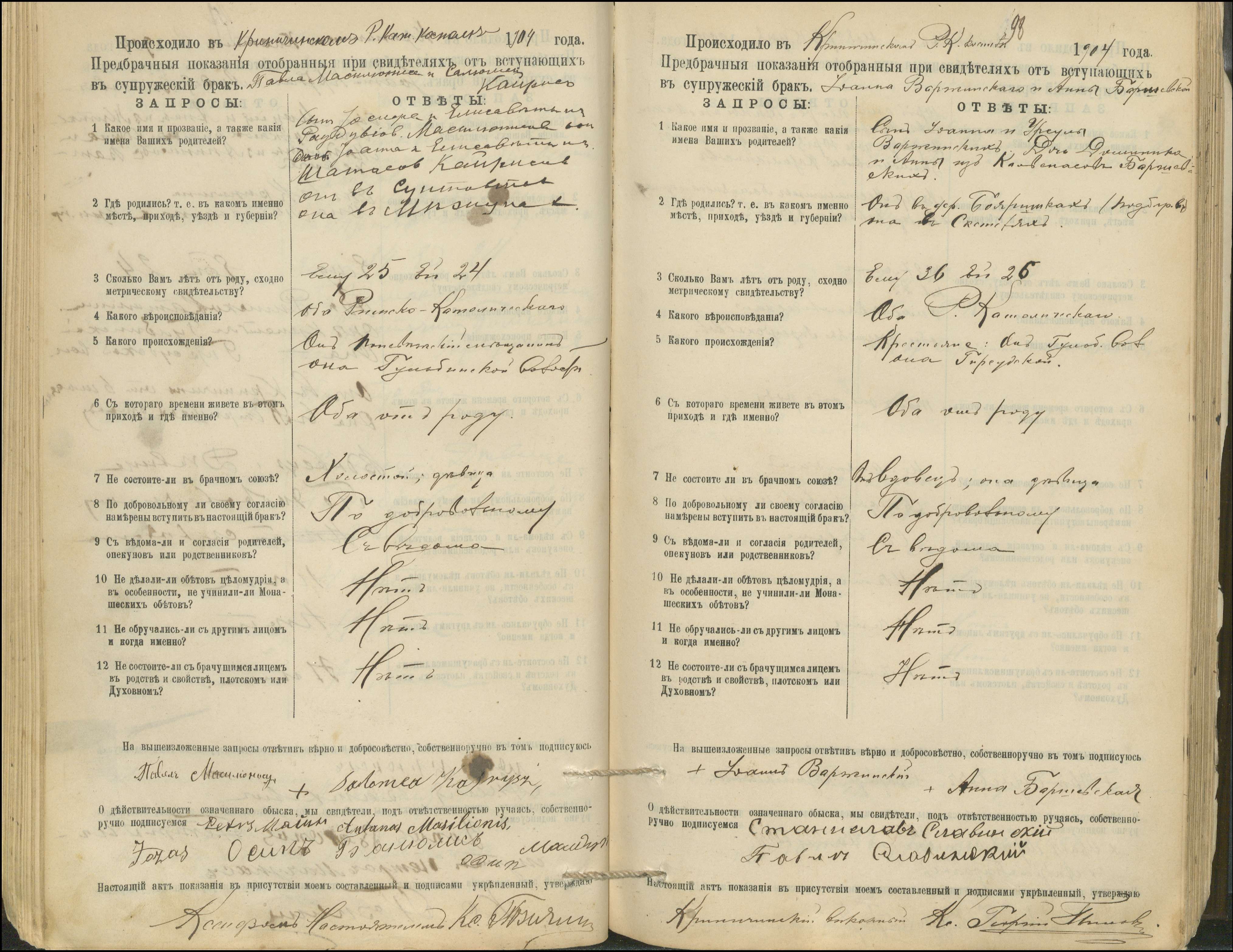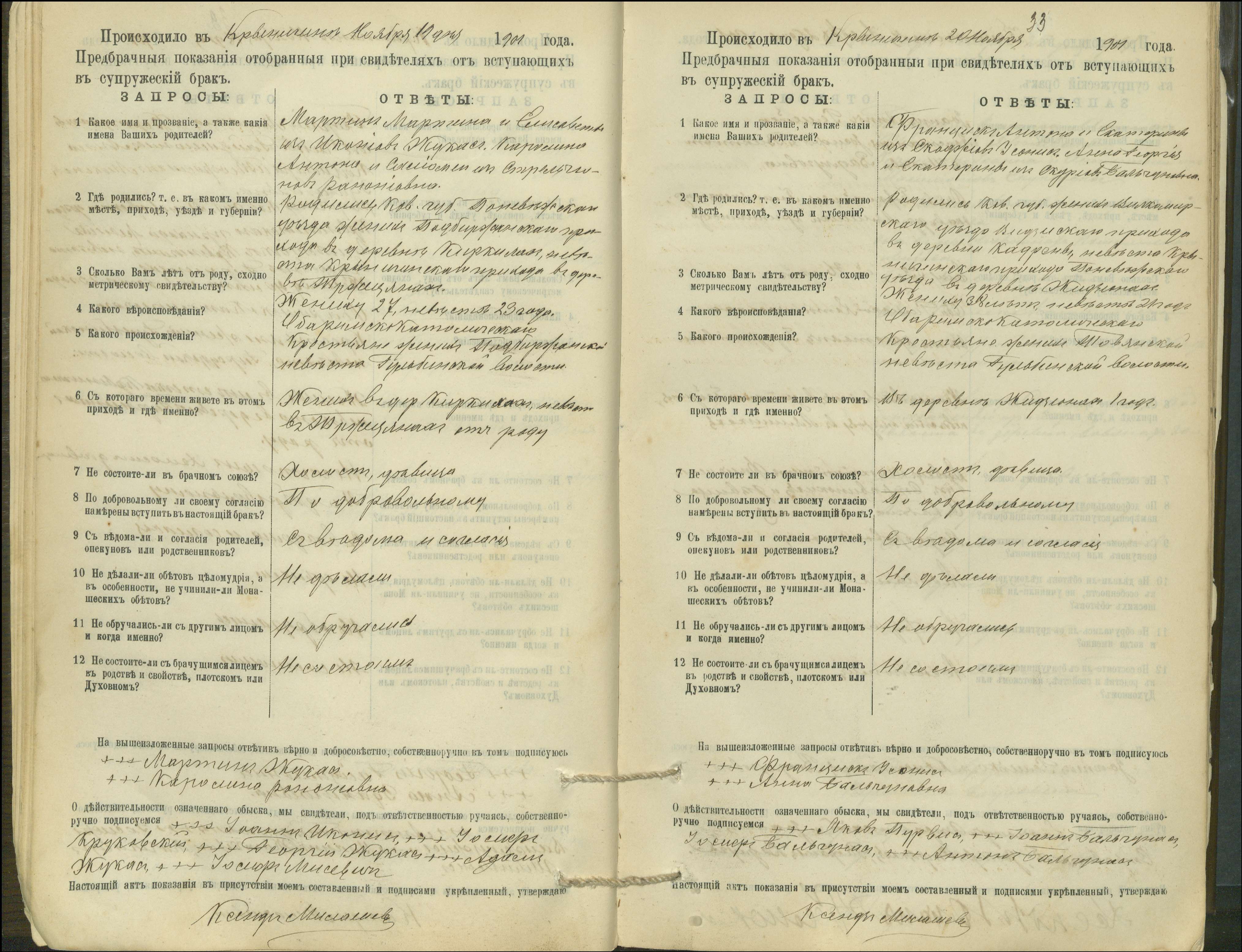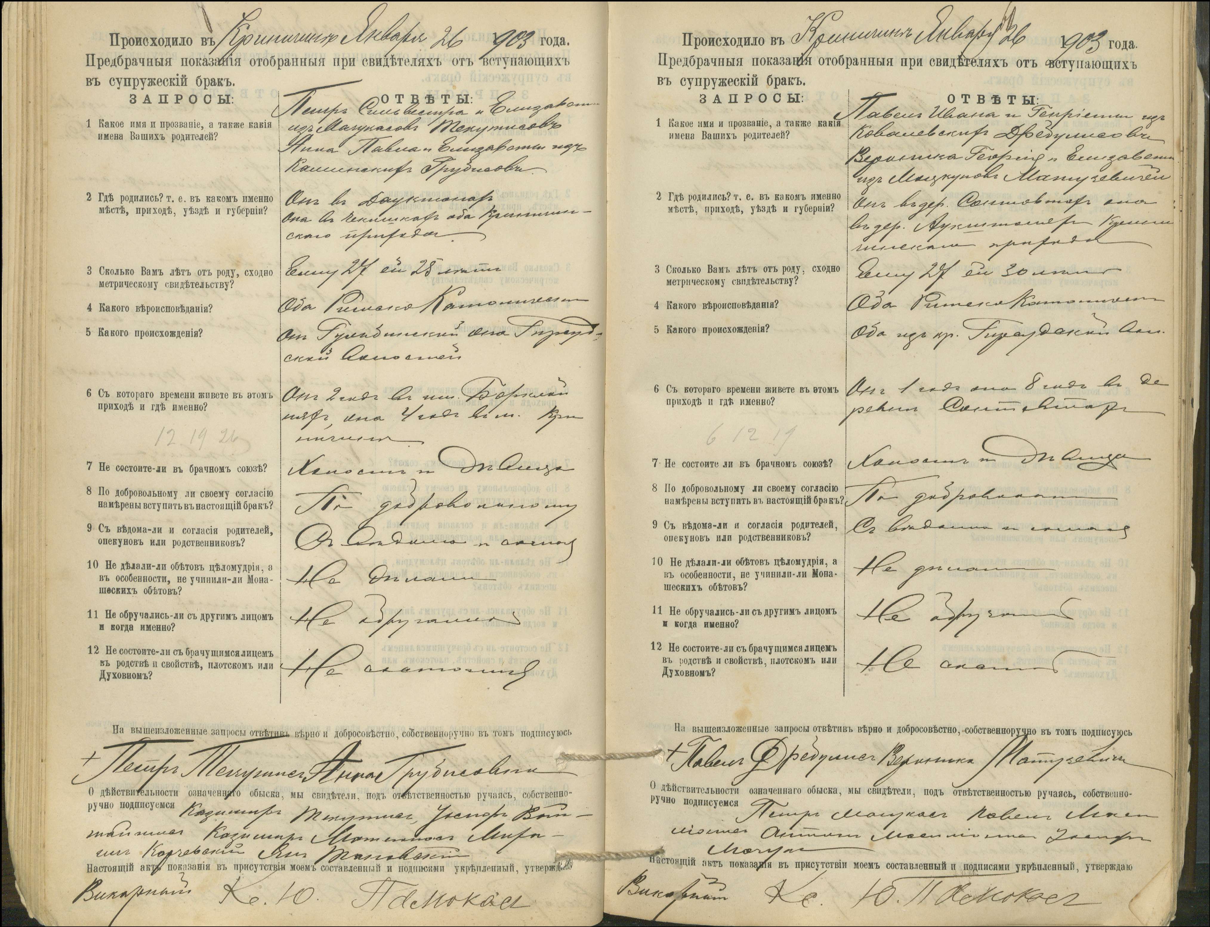 Krinčino Romos katalikų parapijos bažnyčios 1900–1911 metų priešjungtuvinės apklausos knyga