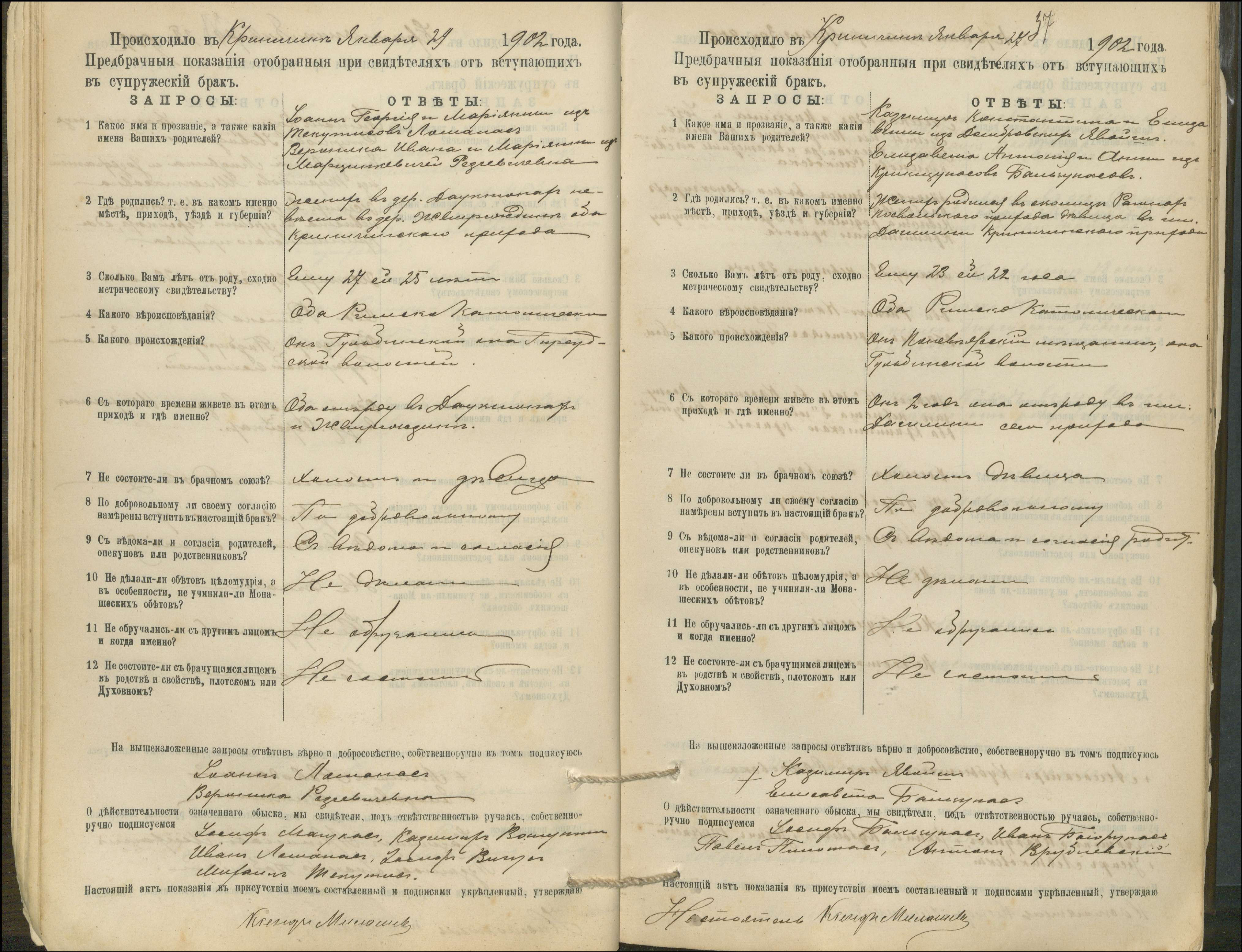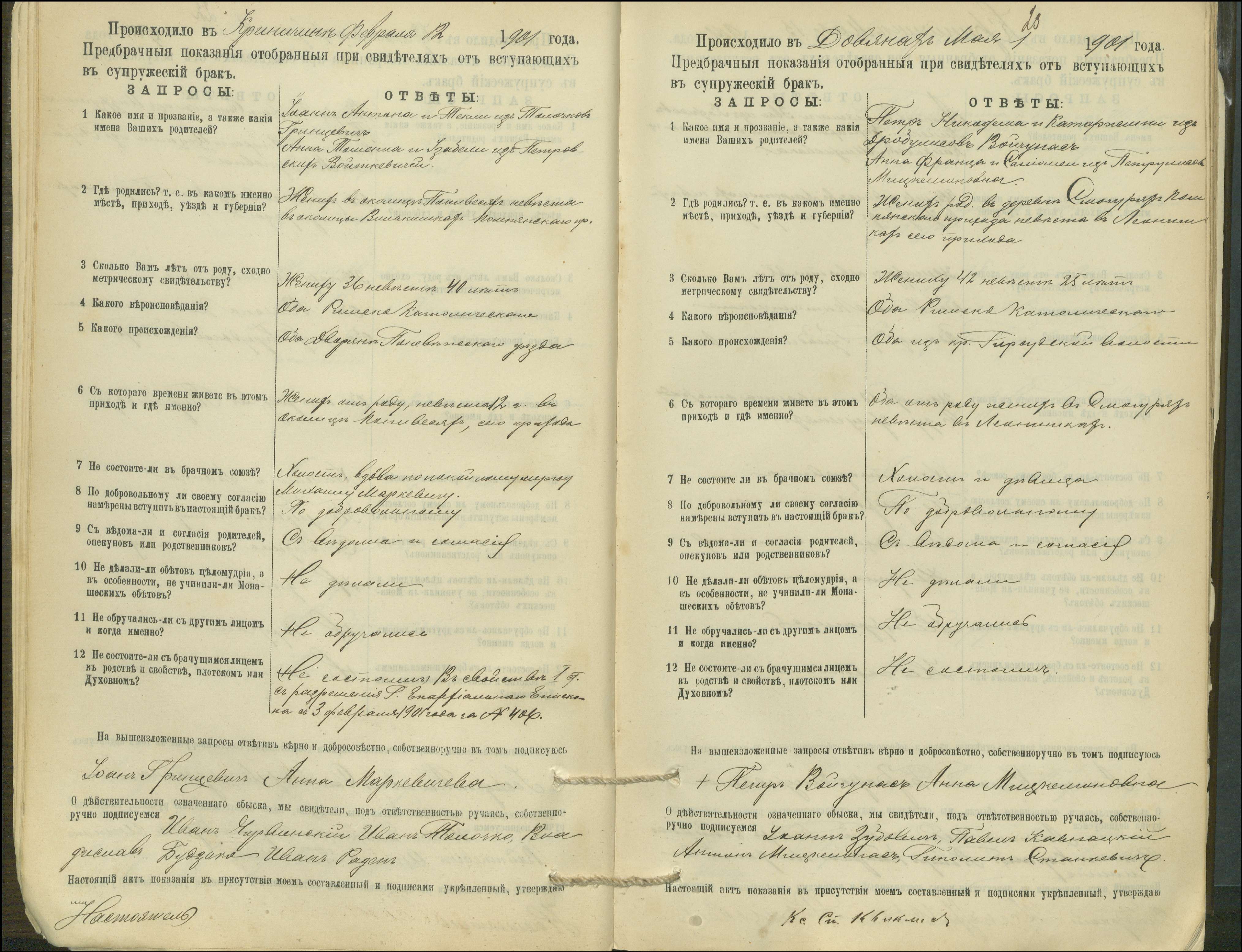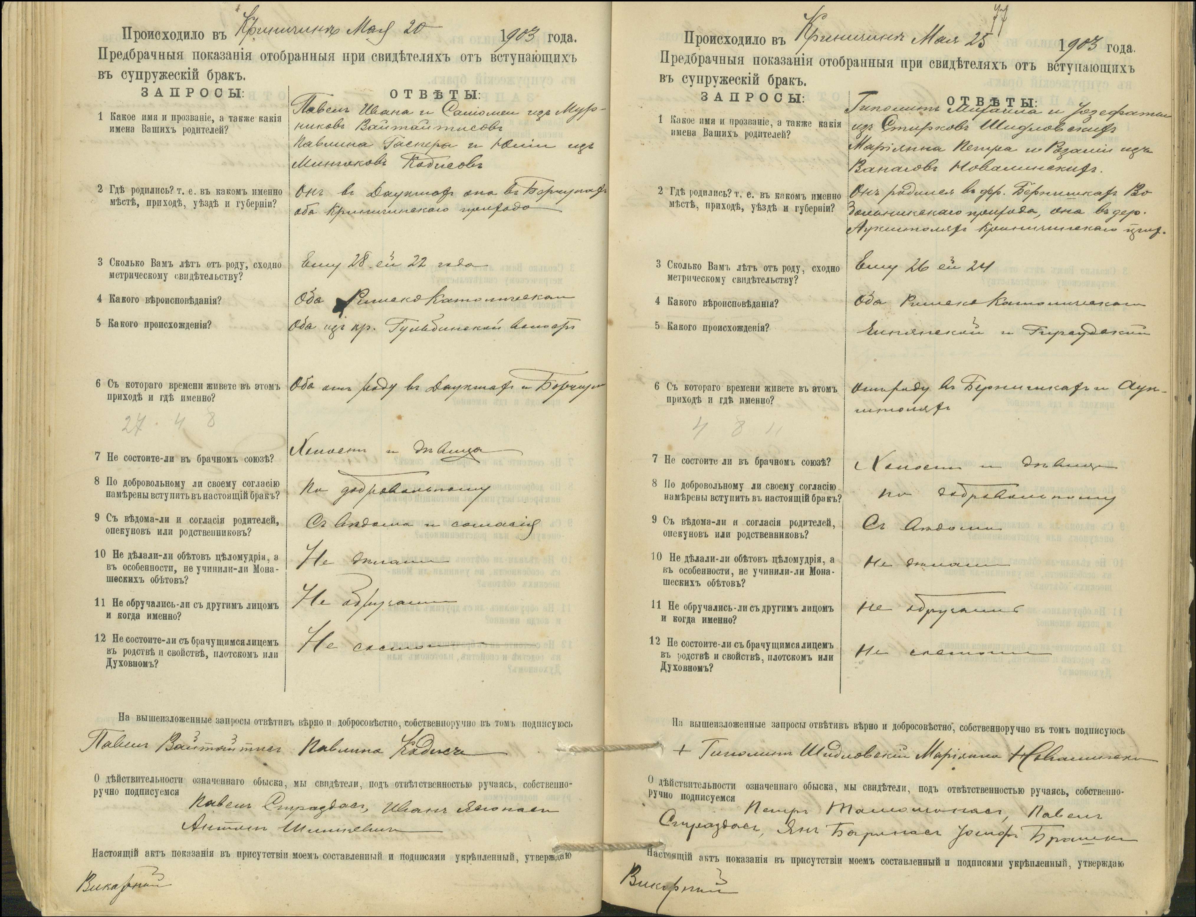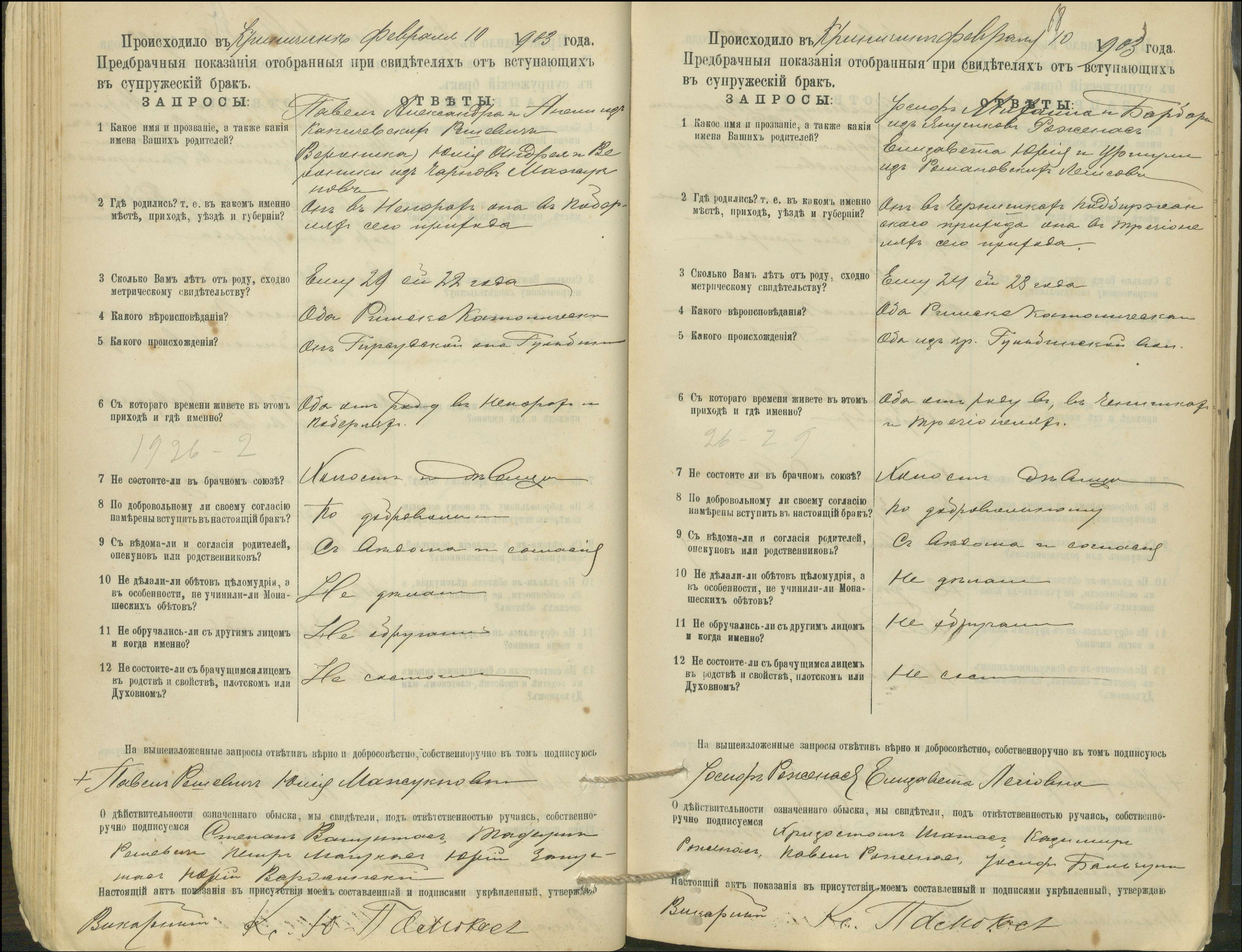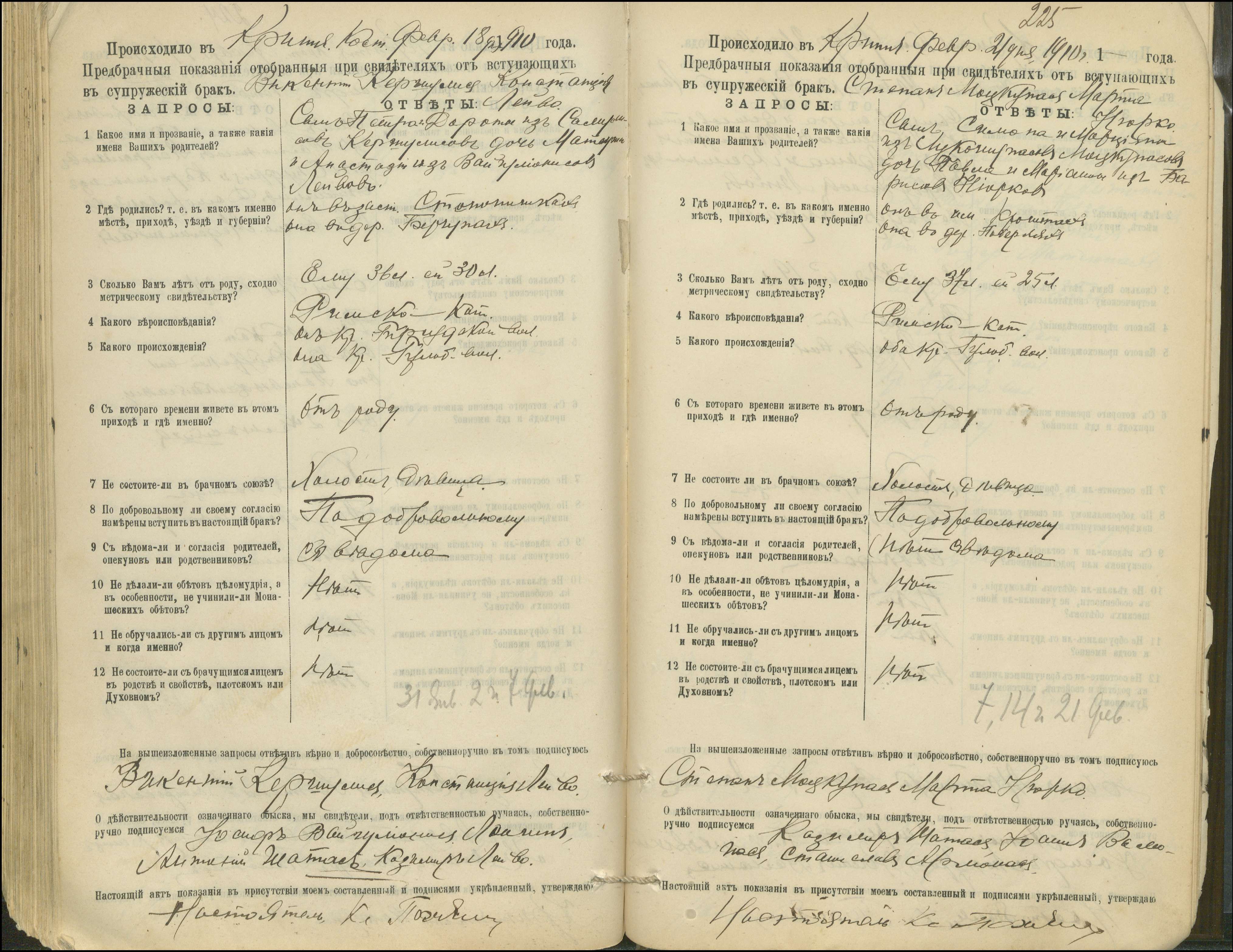 Krinčino Romos katalikų parapijos bažnyčios 1900–1911 metų priešjungtuvinės apklausos knyga