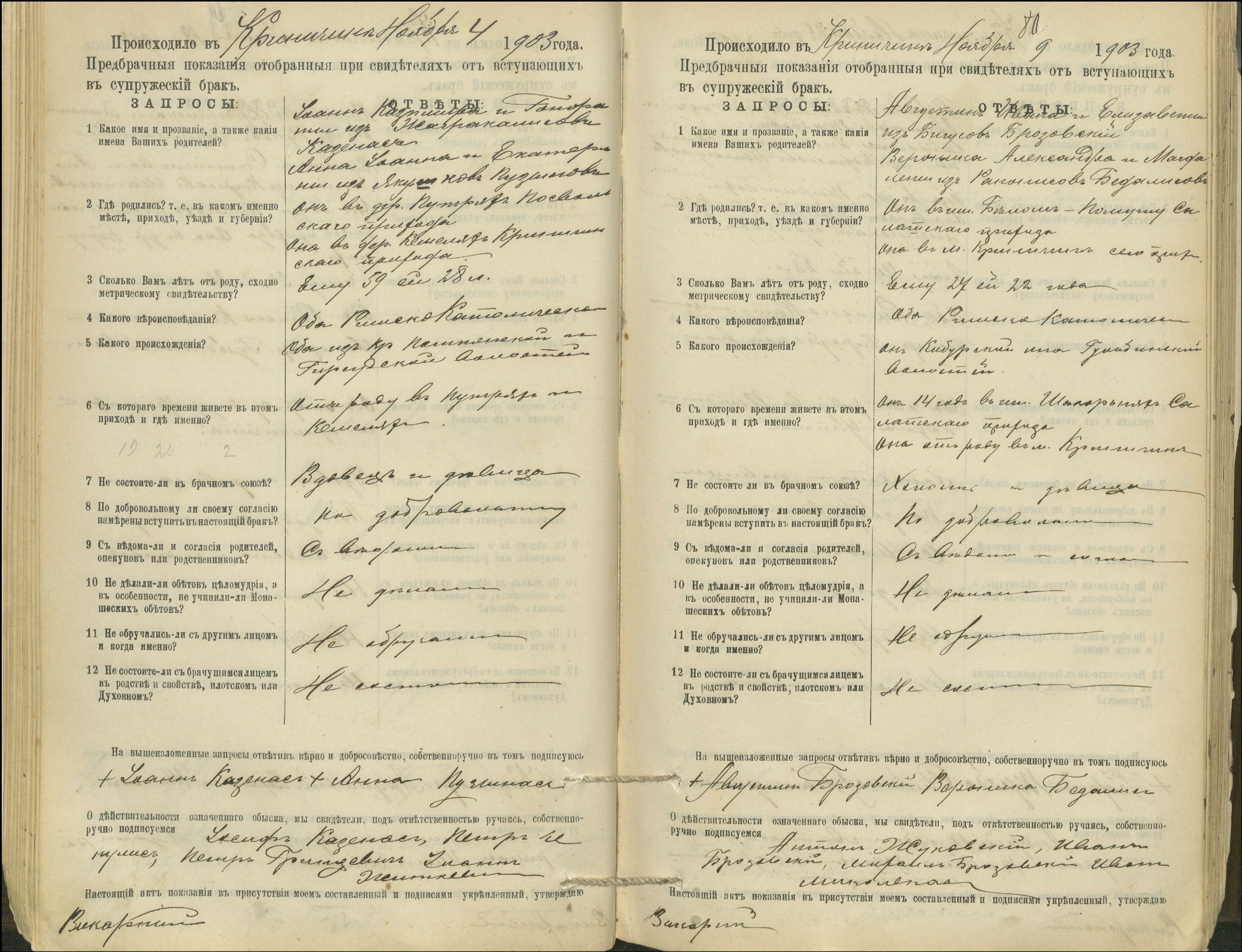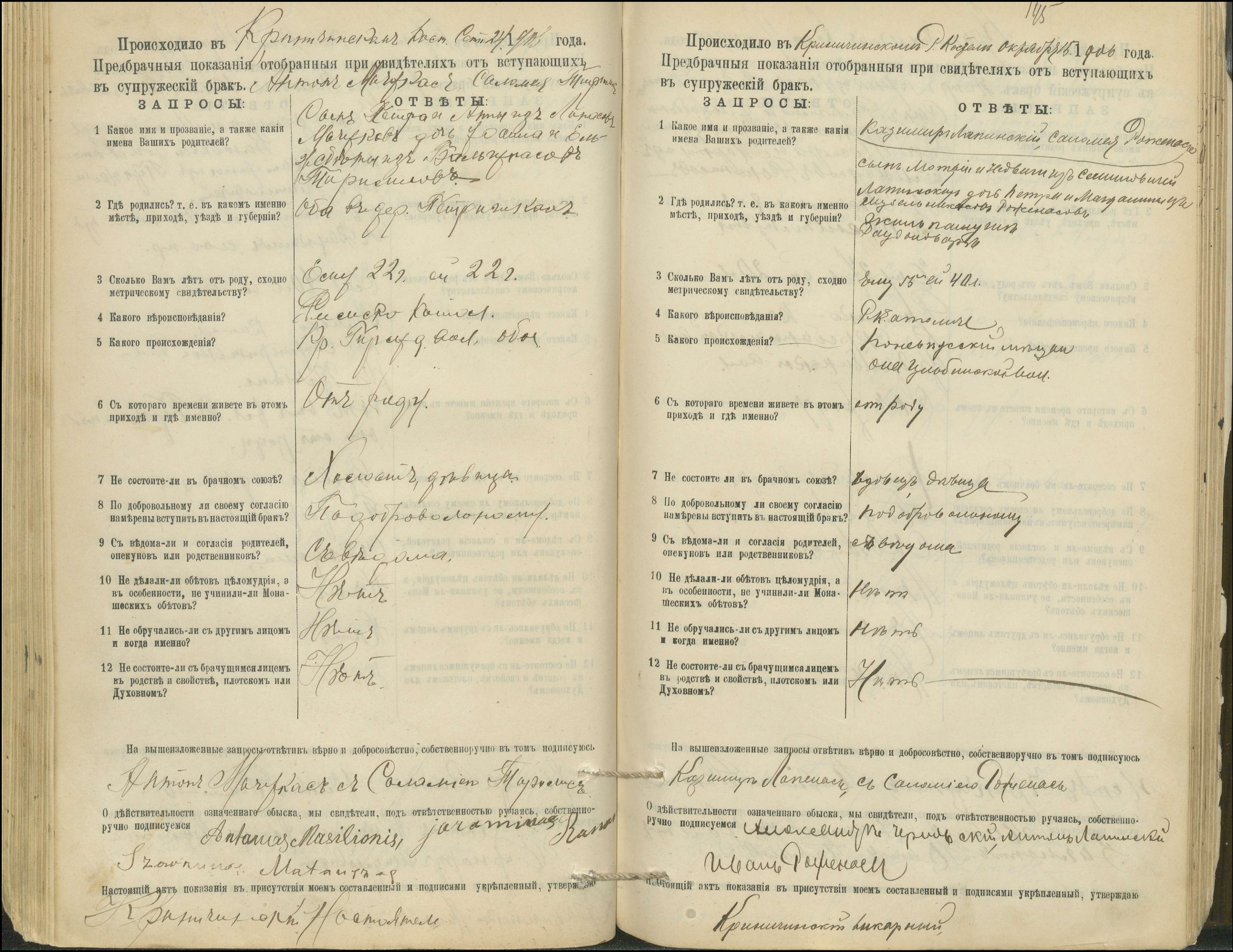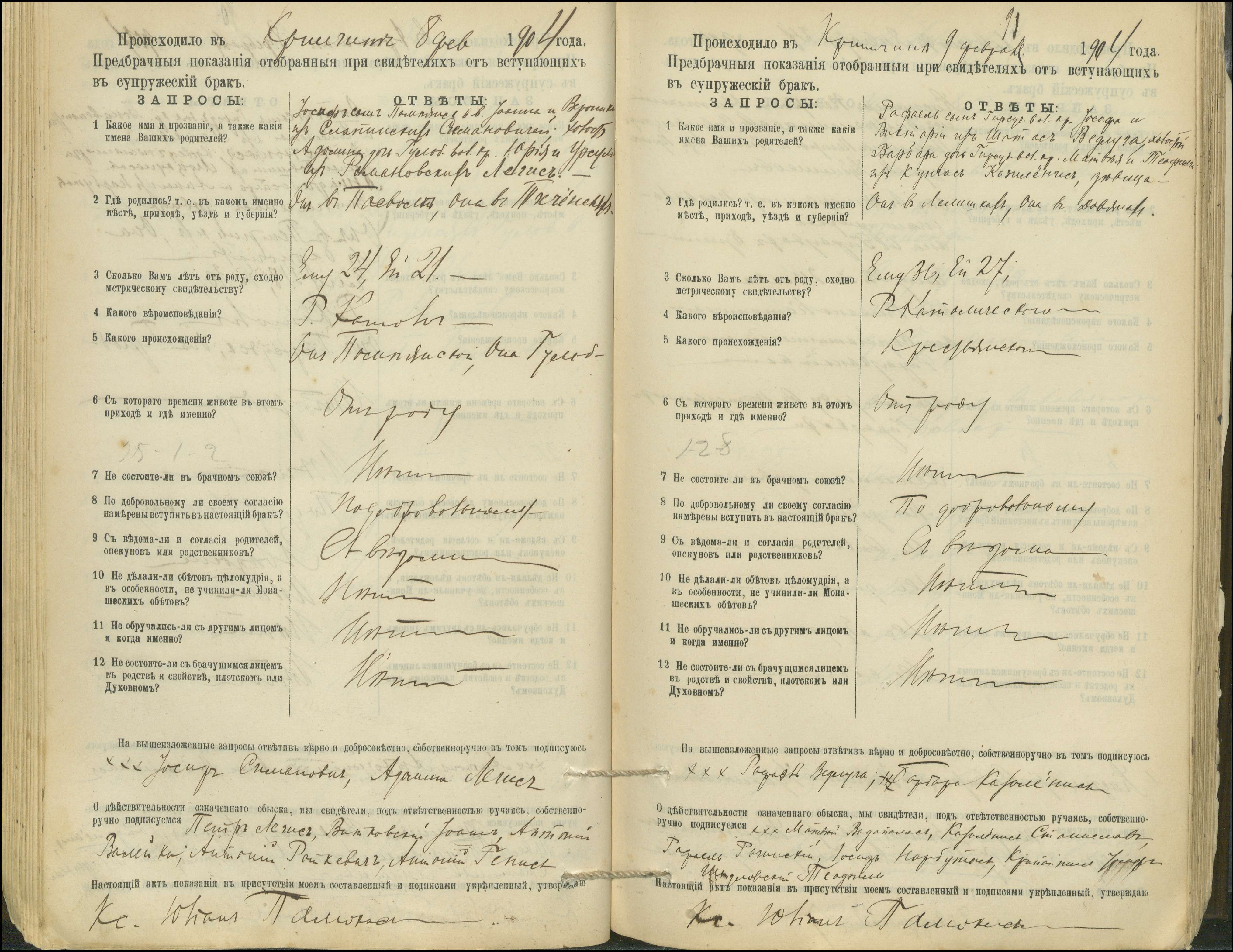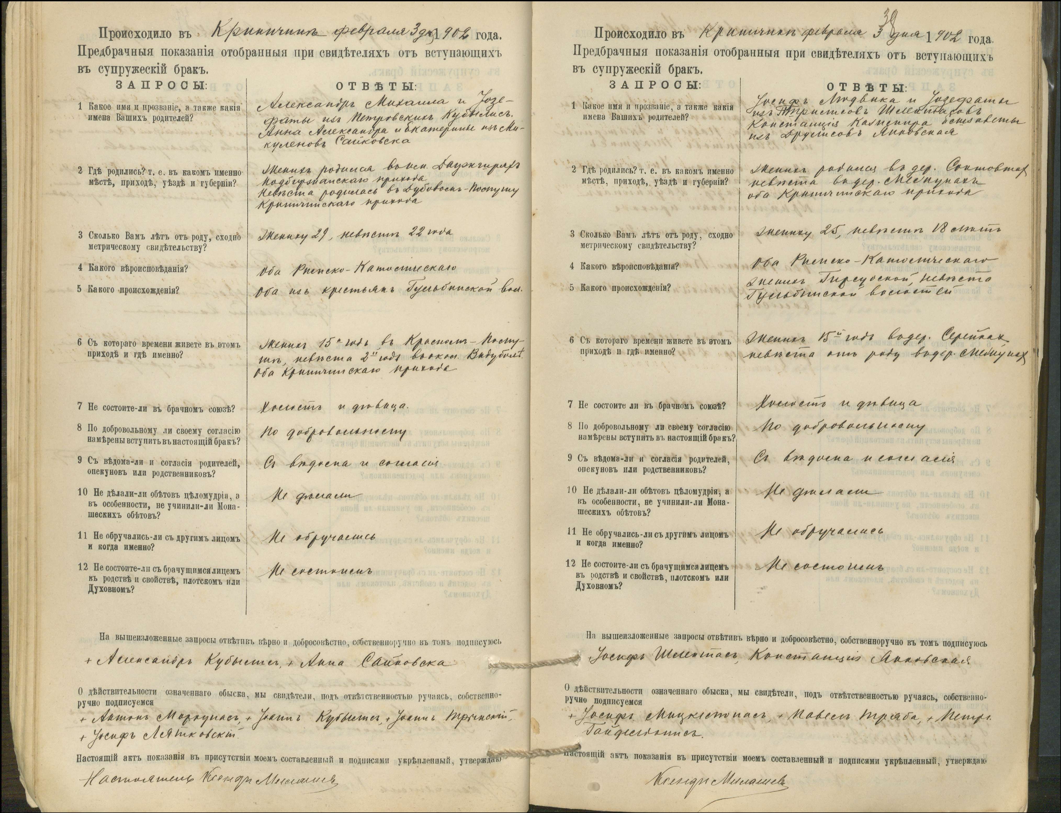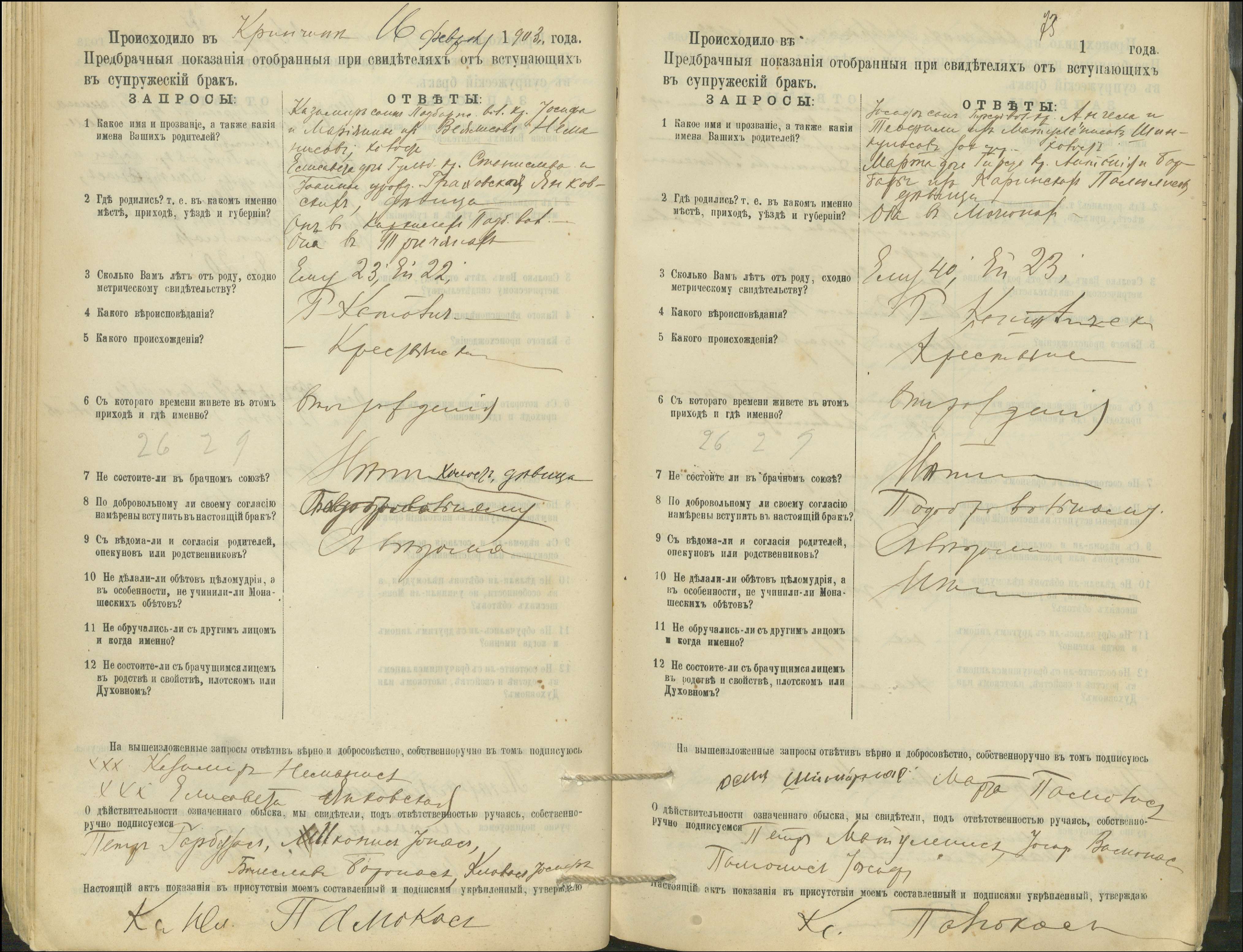 Krinčino Romos katalikų parapijos bažnyčios 1900–1911 metų priešjungtuvinės apklausos knyga