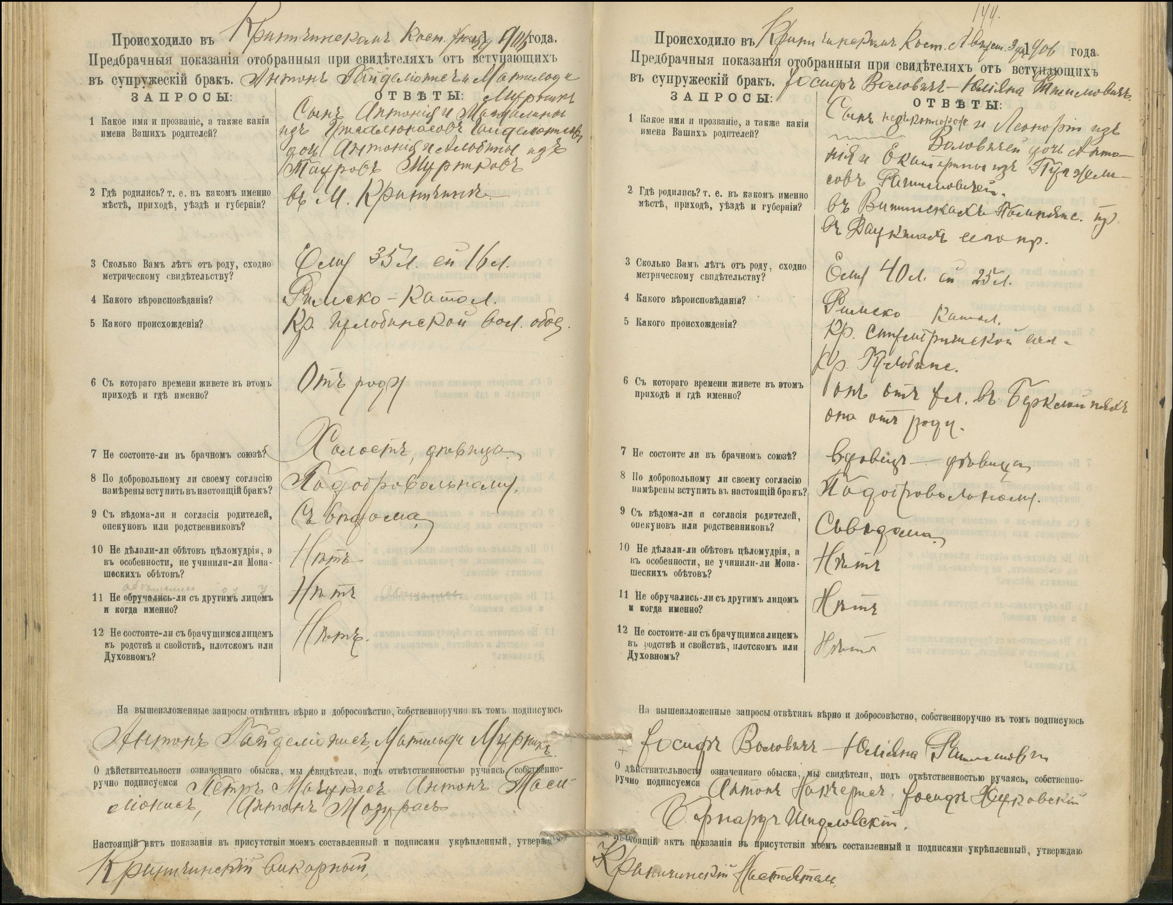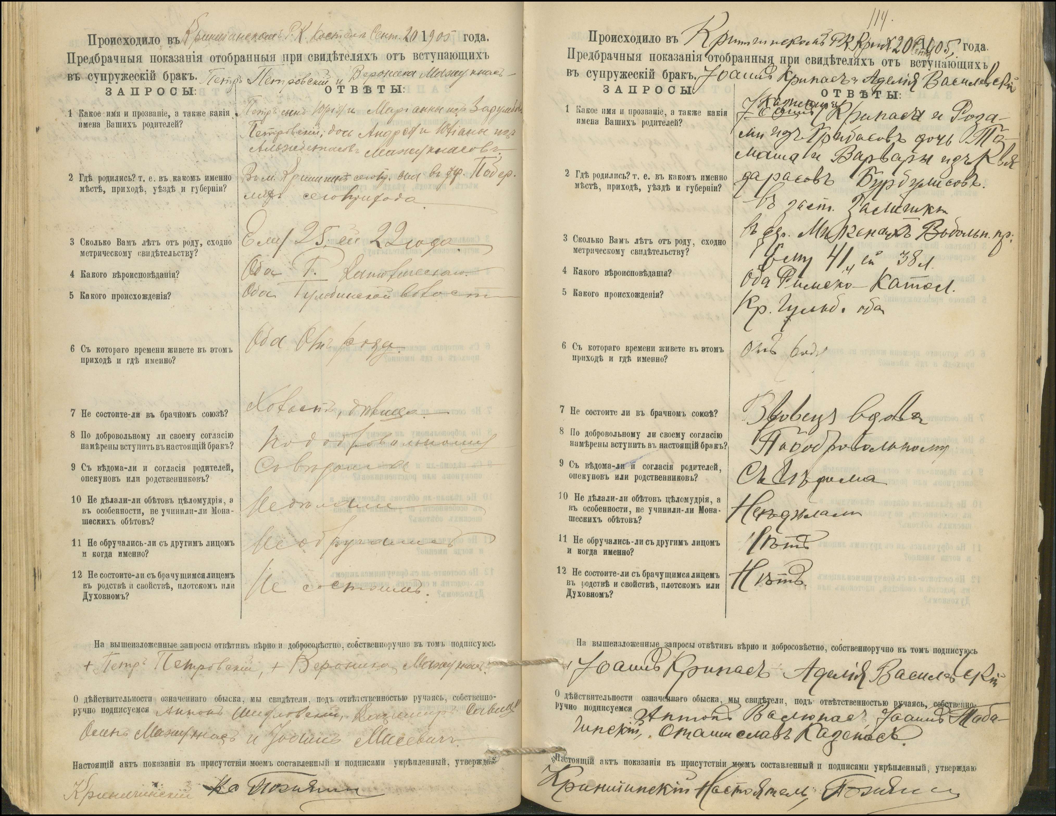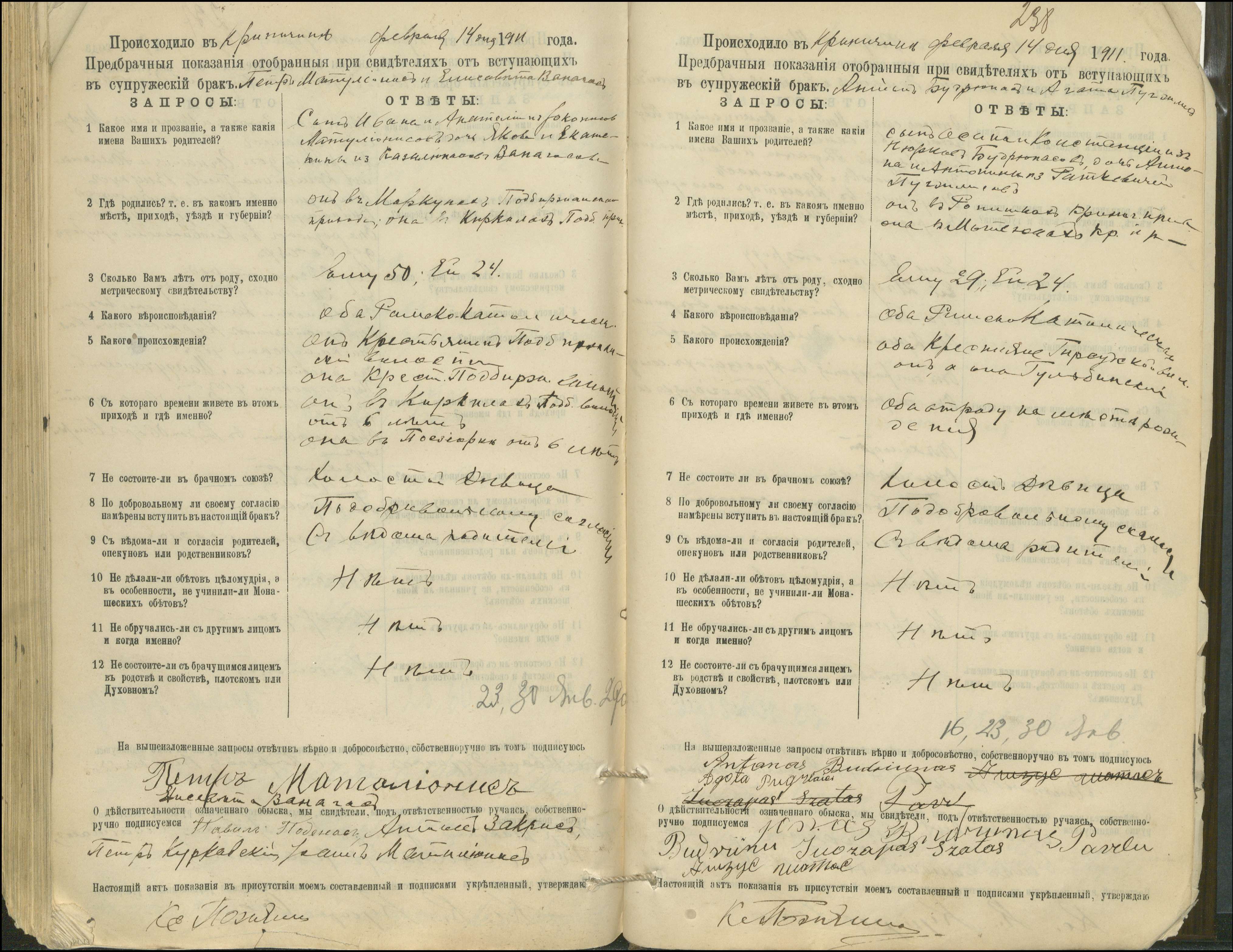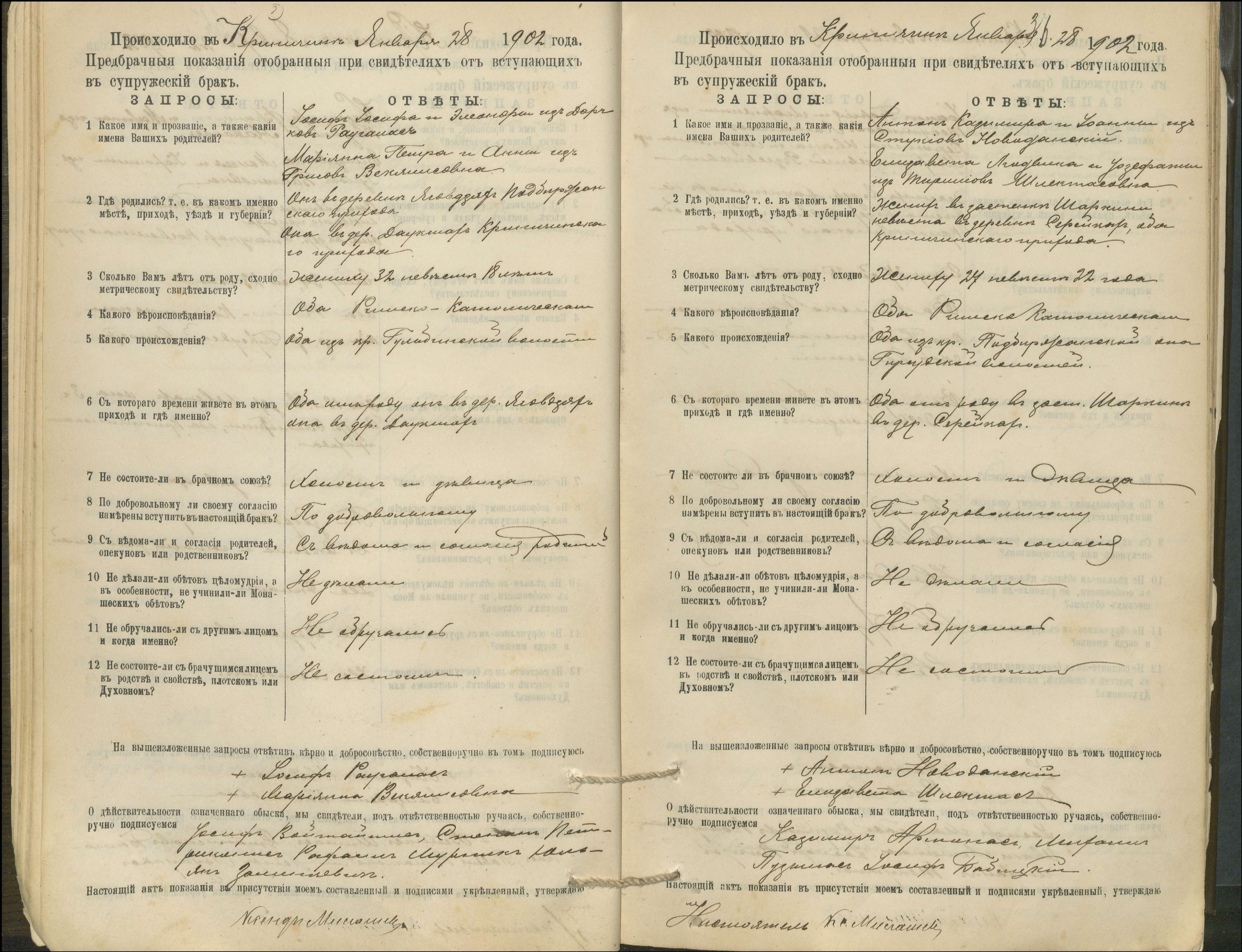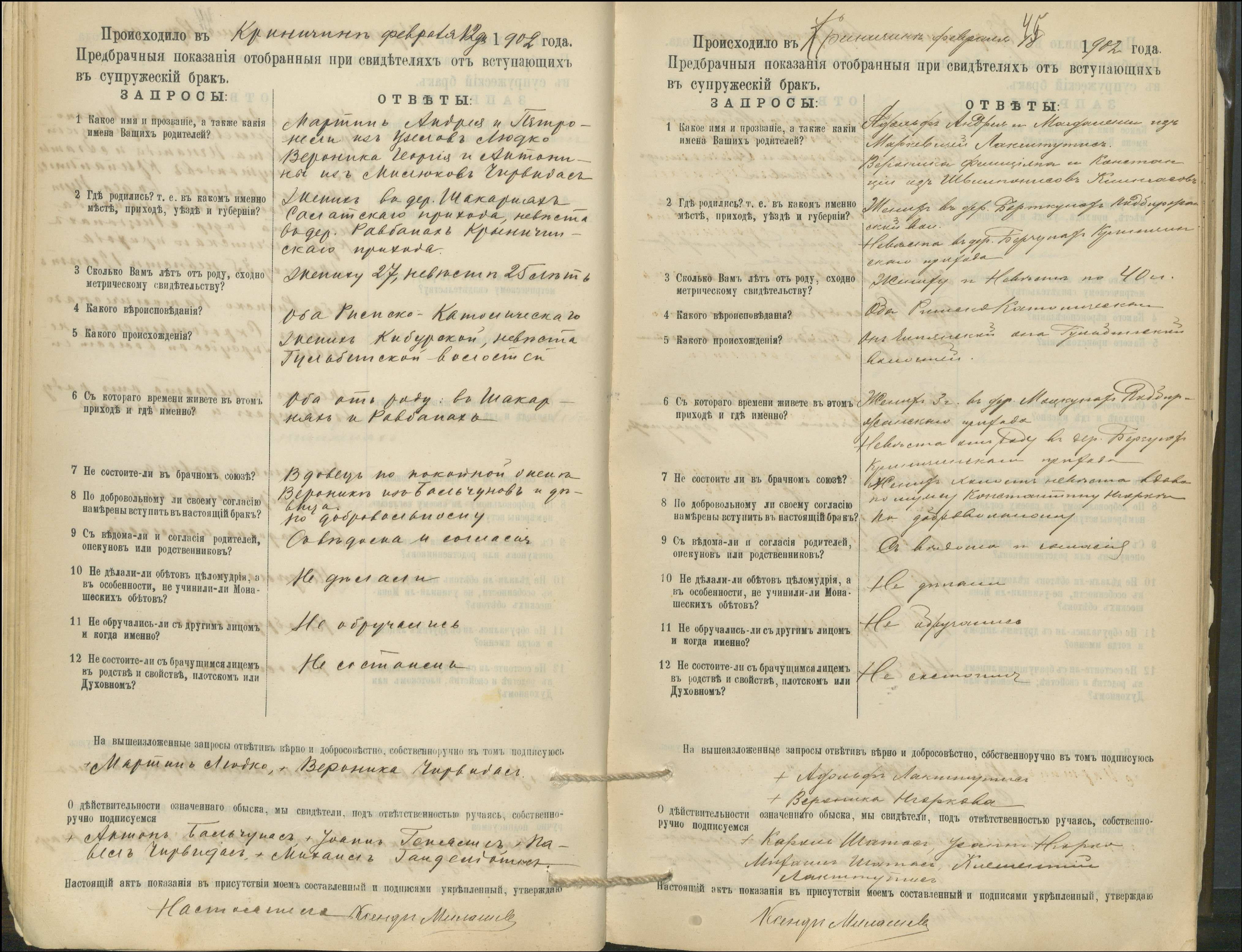 Krinčino Romos katalikų parapijos bažnyčios 1900–1911 metų priešjungtuvinės apklausos knyga