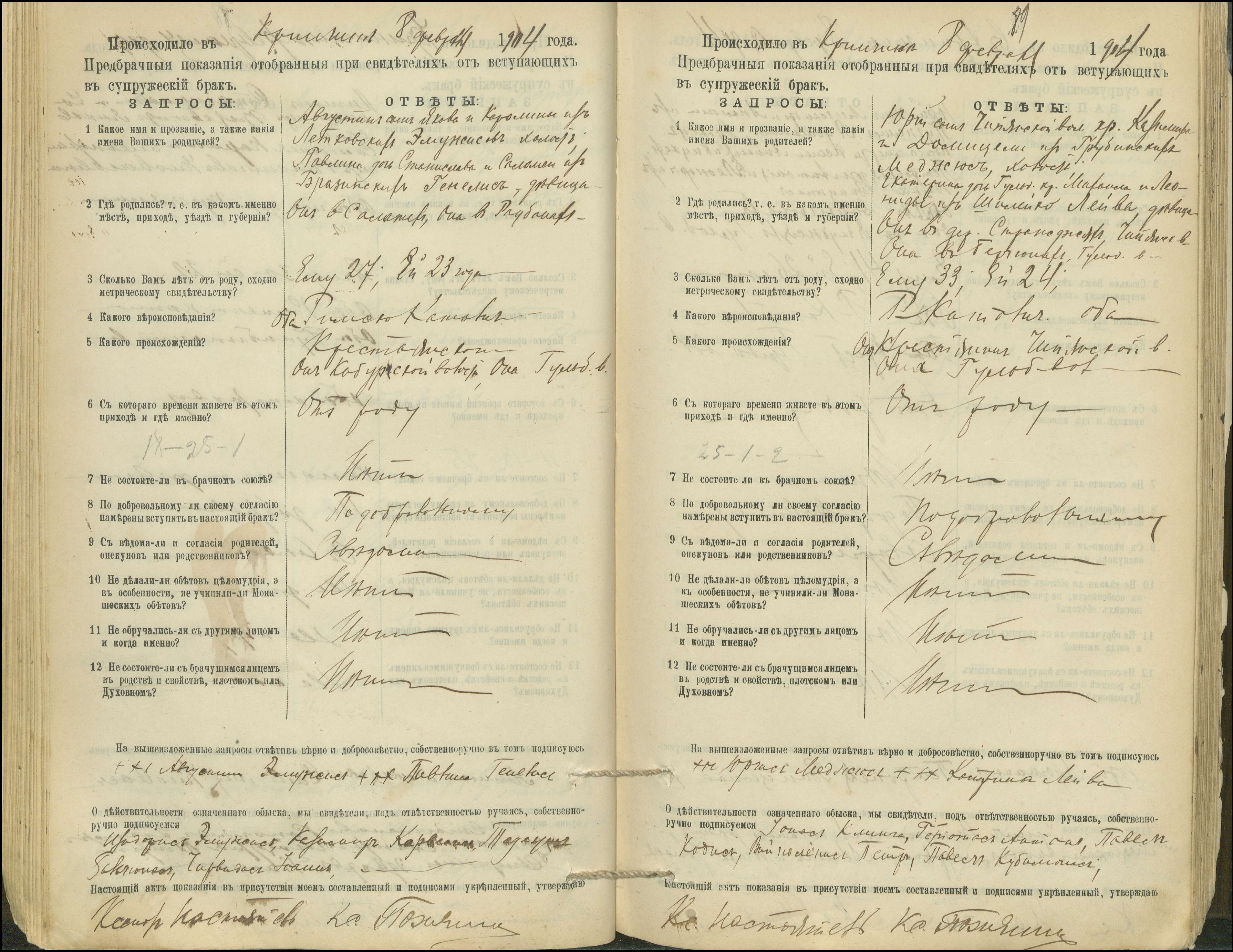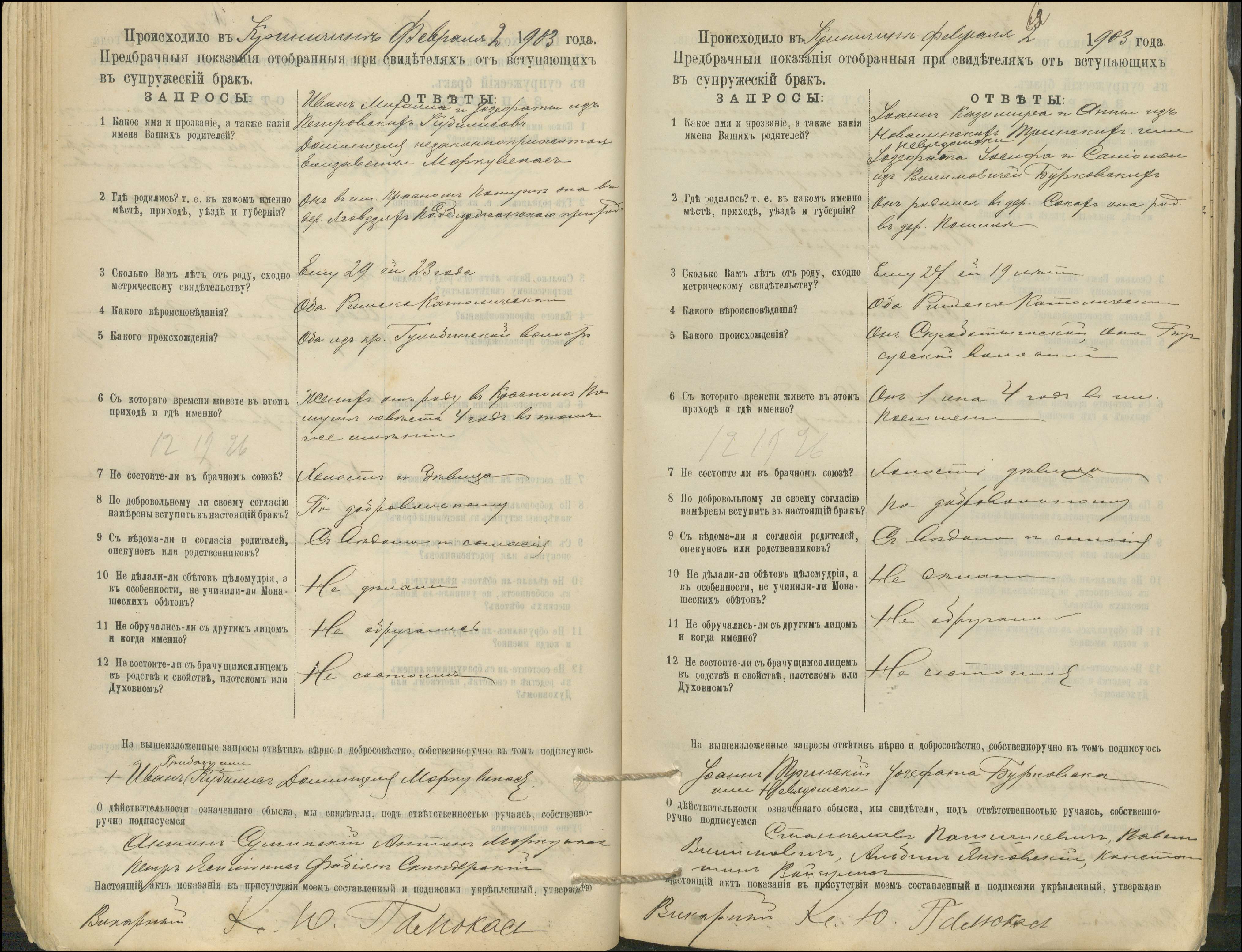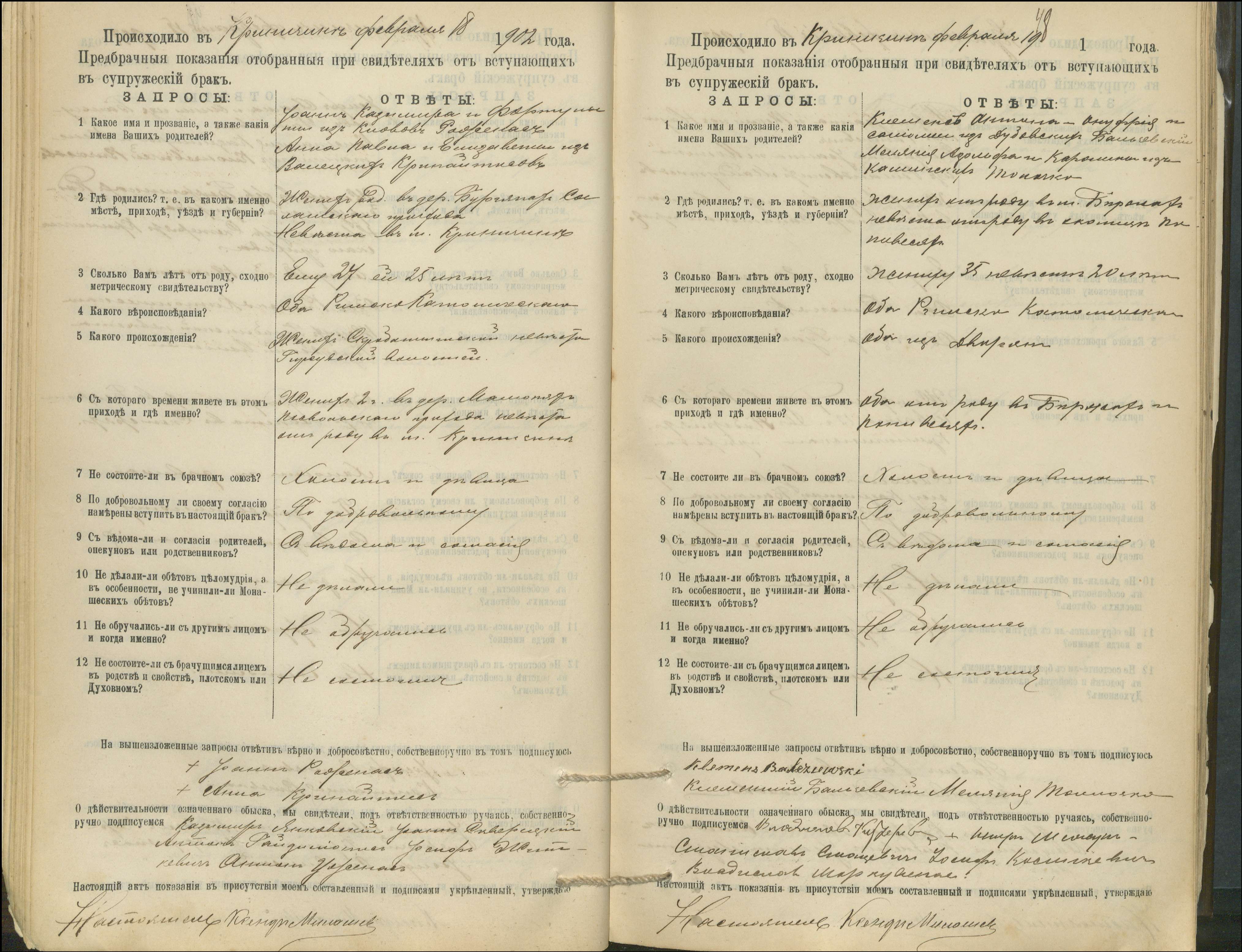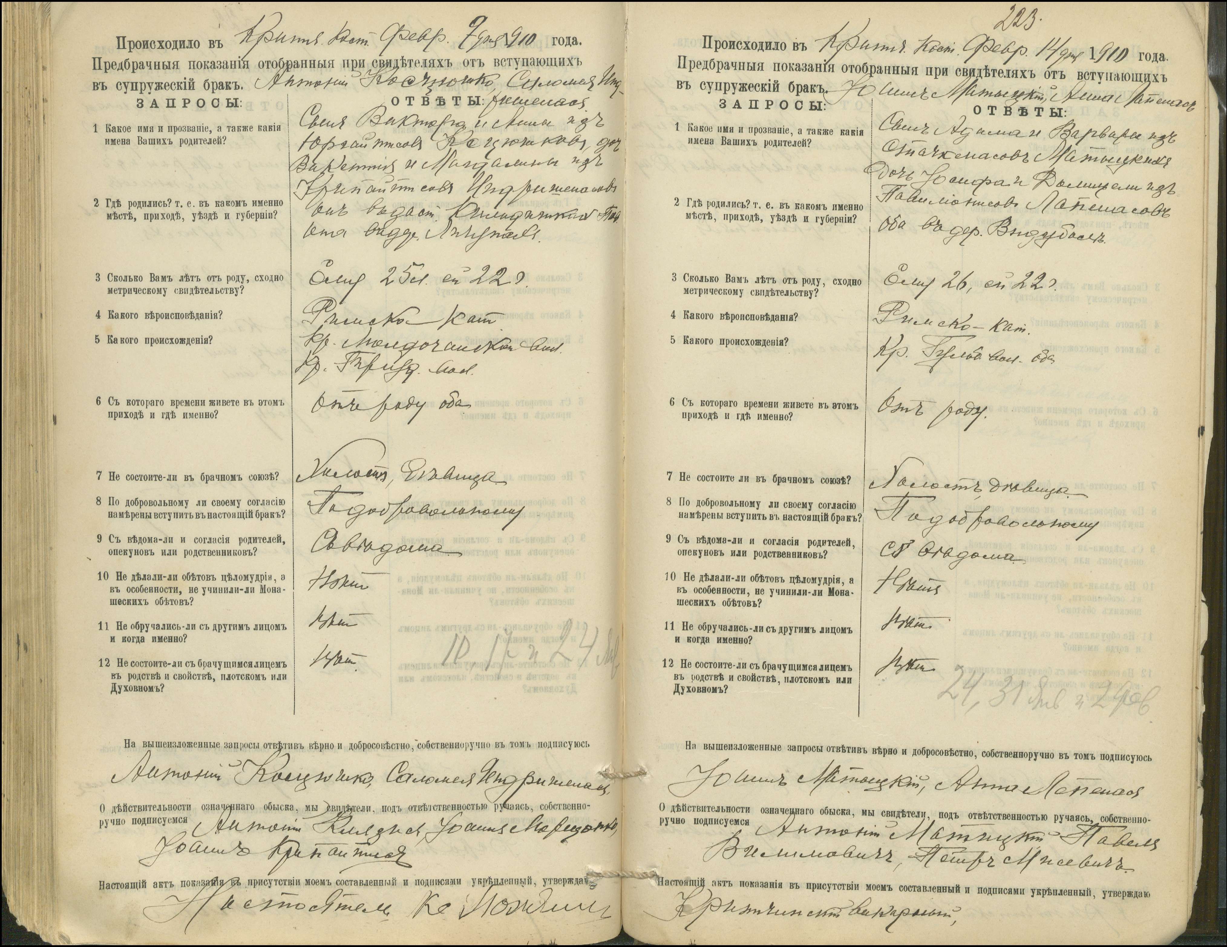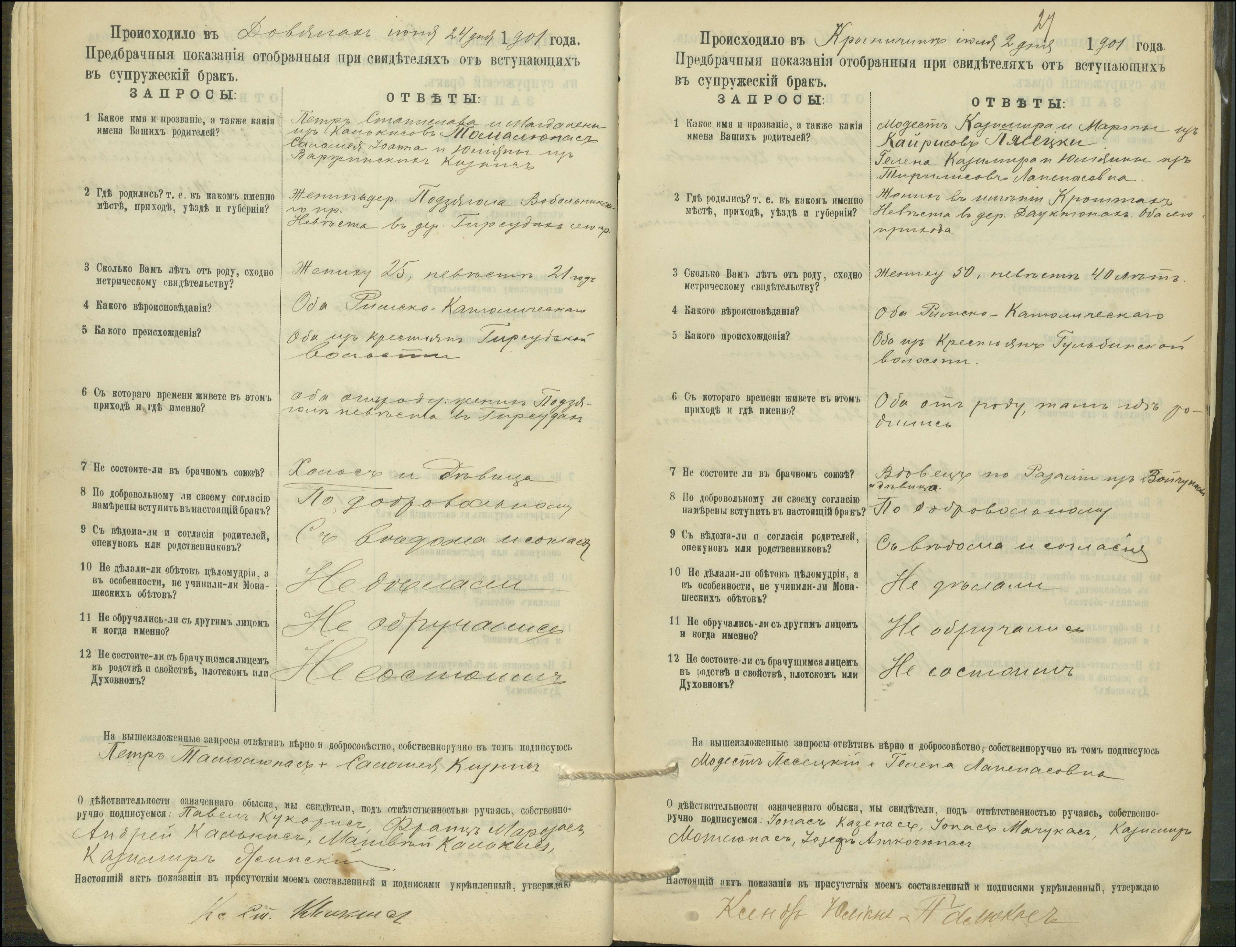Krinčino Romos katalikų parapijos bažnyčios 1900–1911 metų priešjungtuvinės apklausos knyga