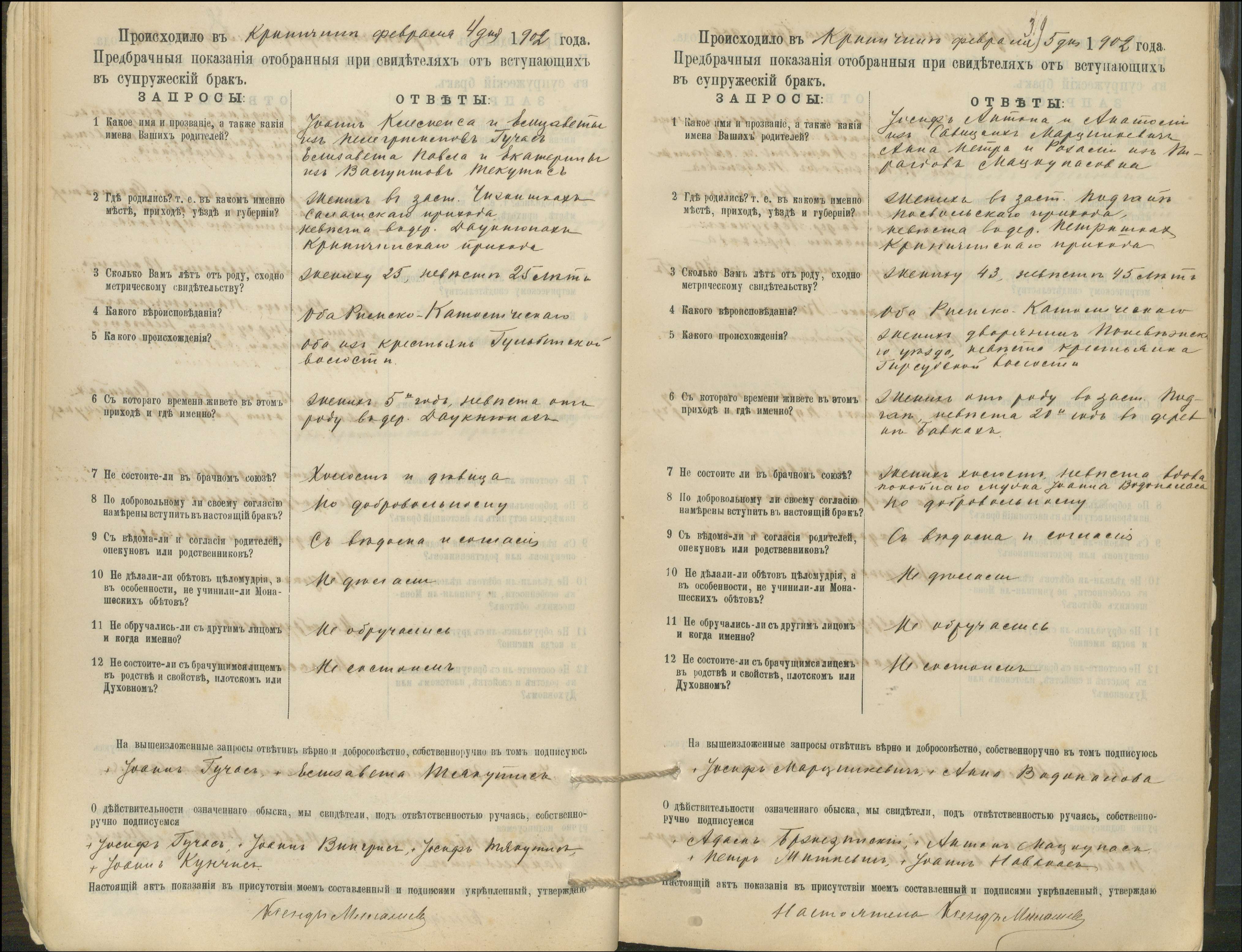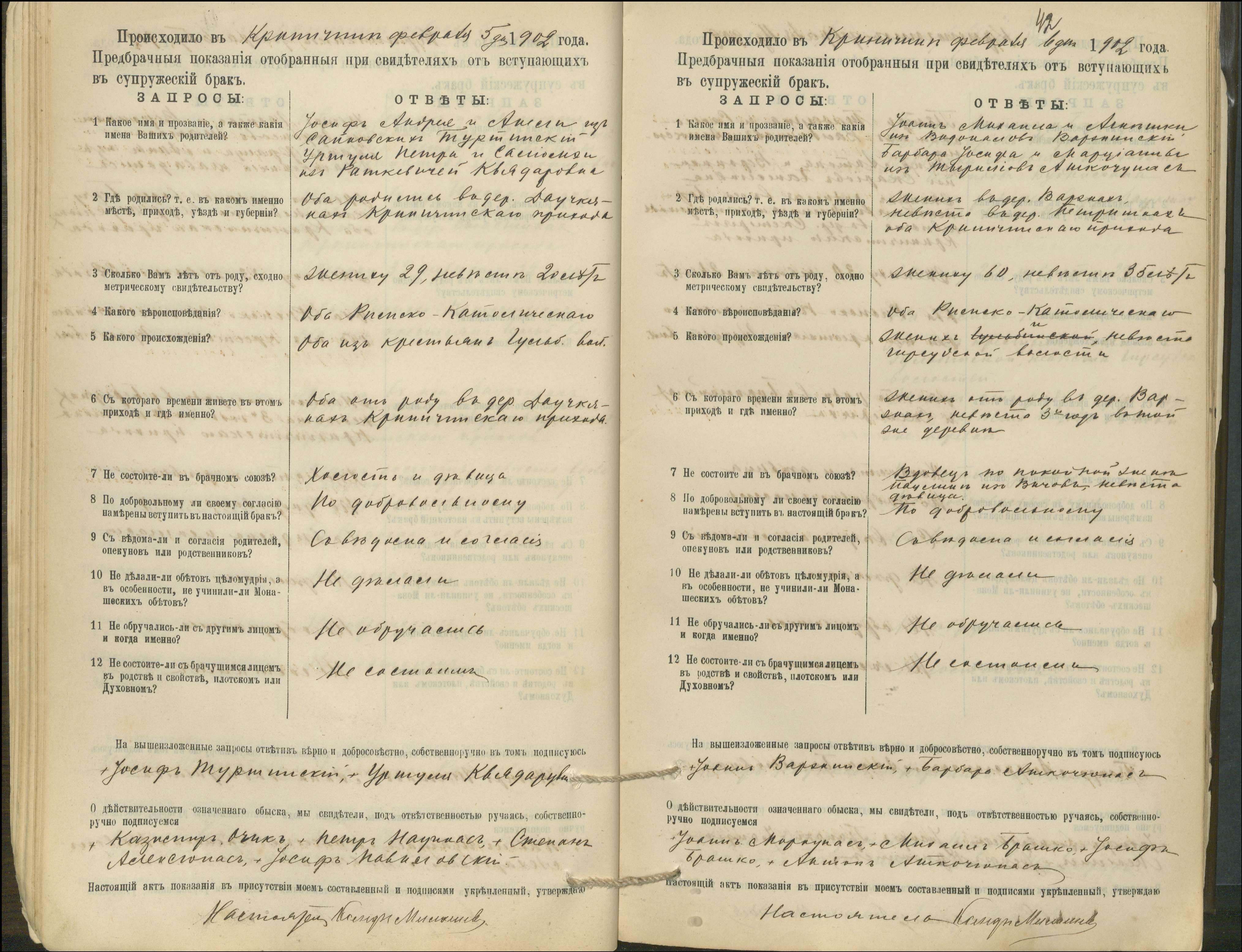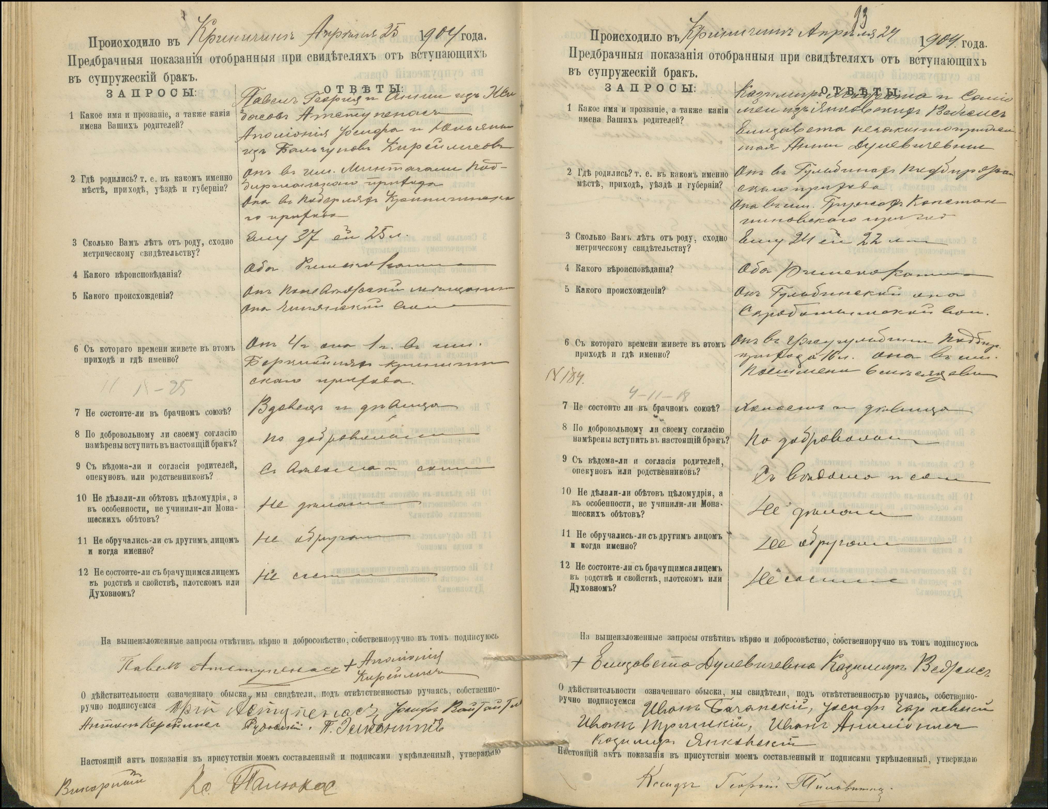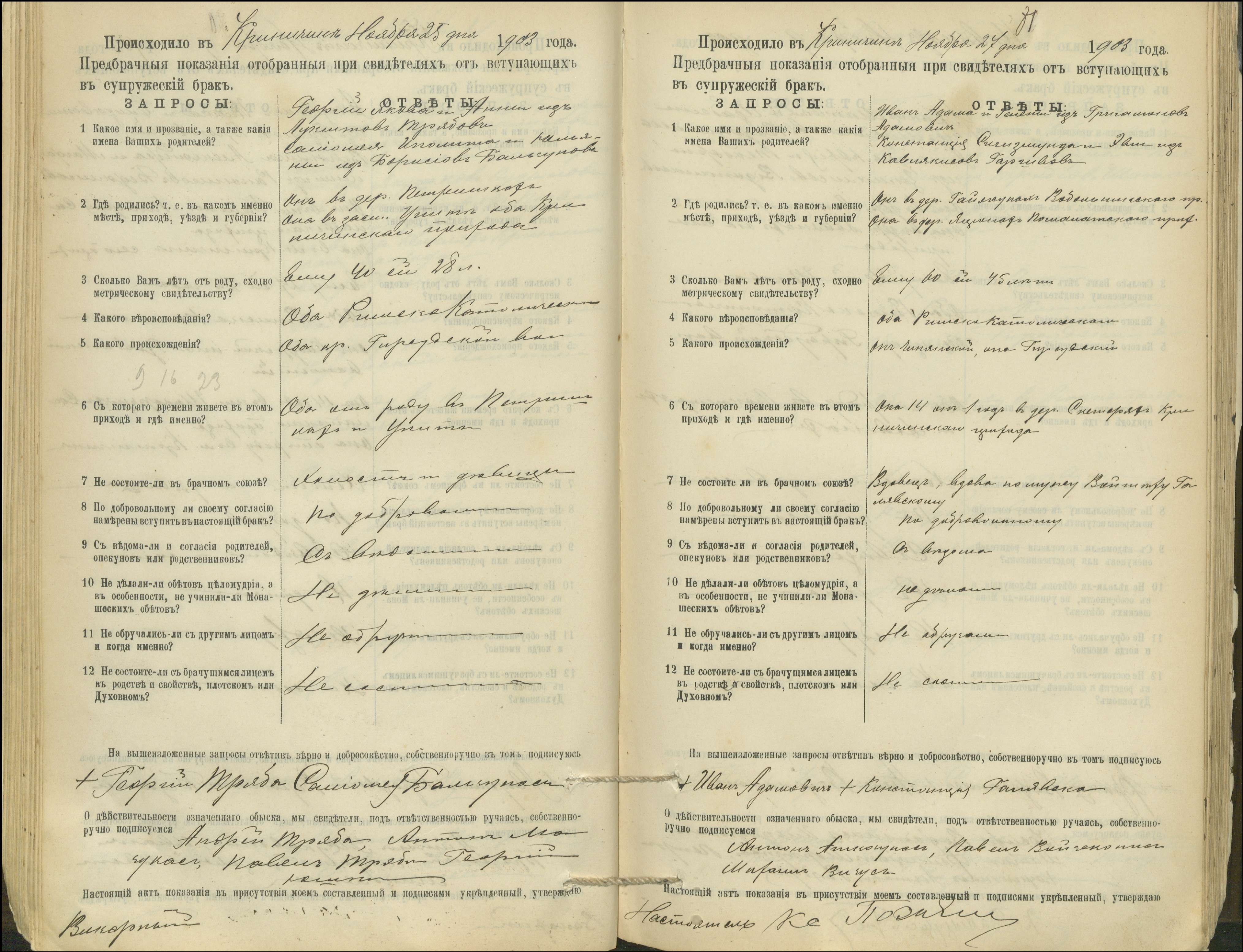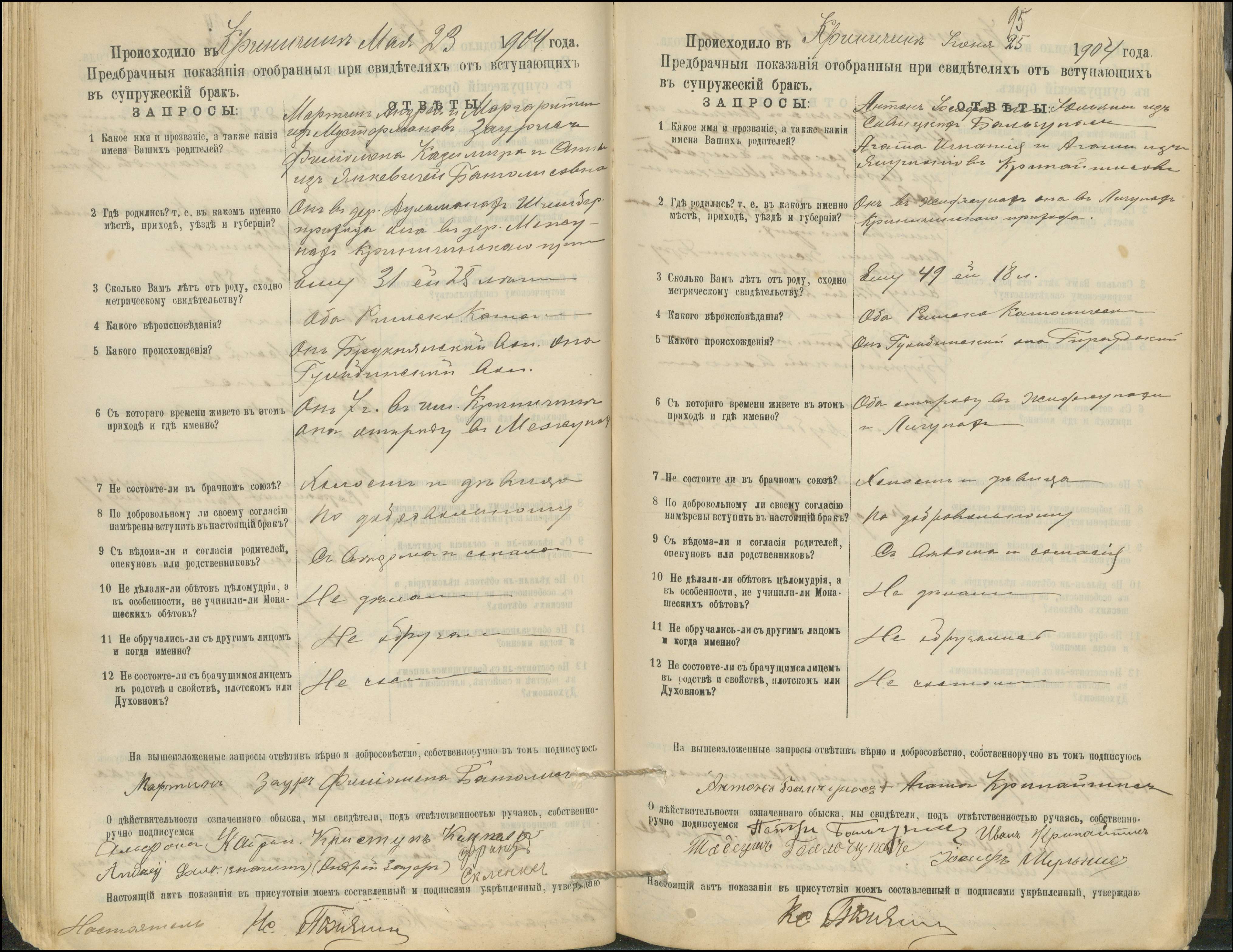 Krinčino Romos katalikų parapijos bažnyčios 1900–1911 metų priešjungtuvinės apklausos knyga