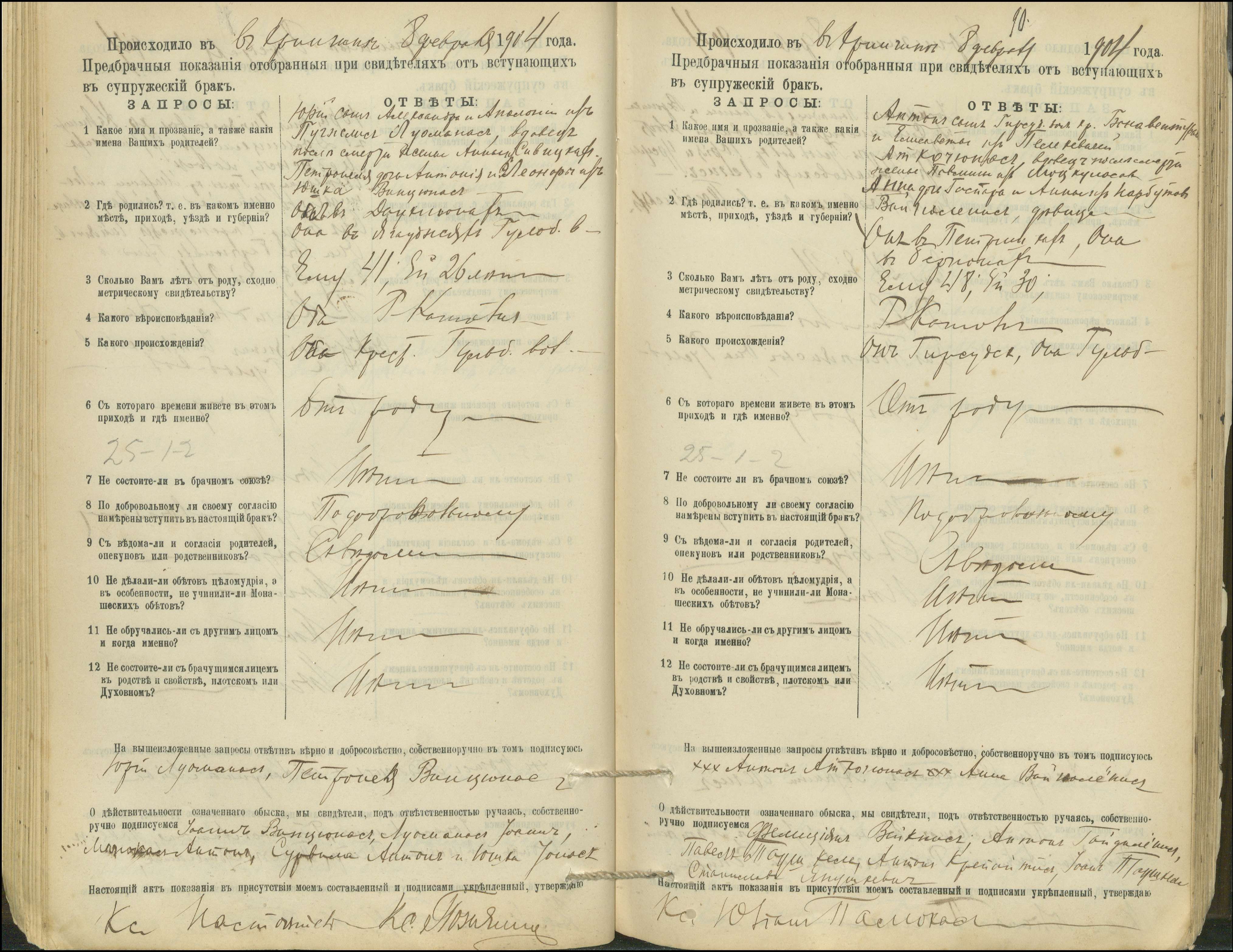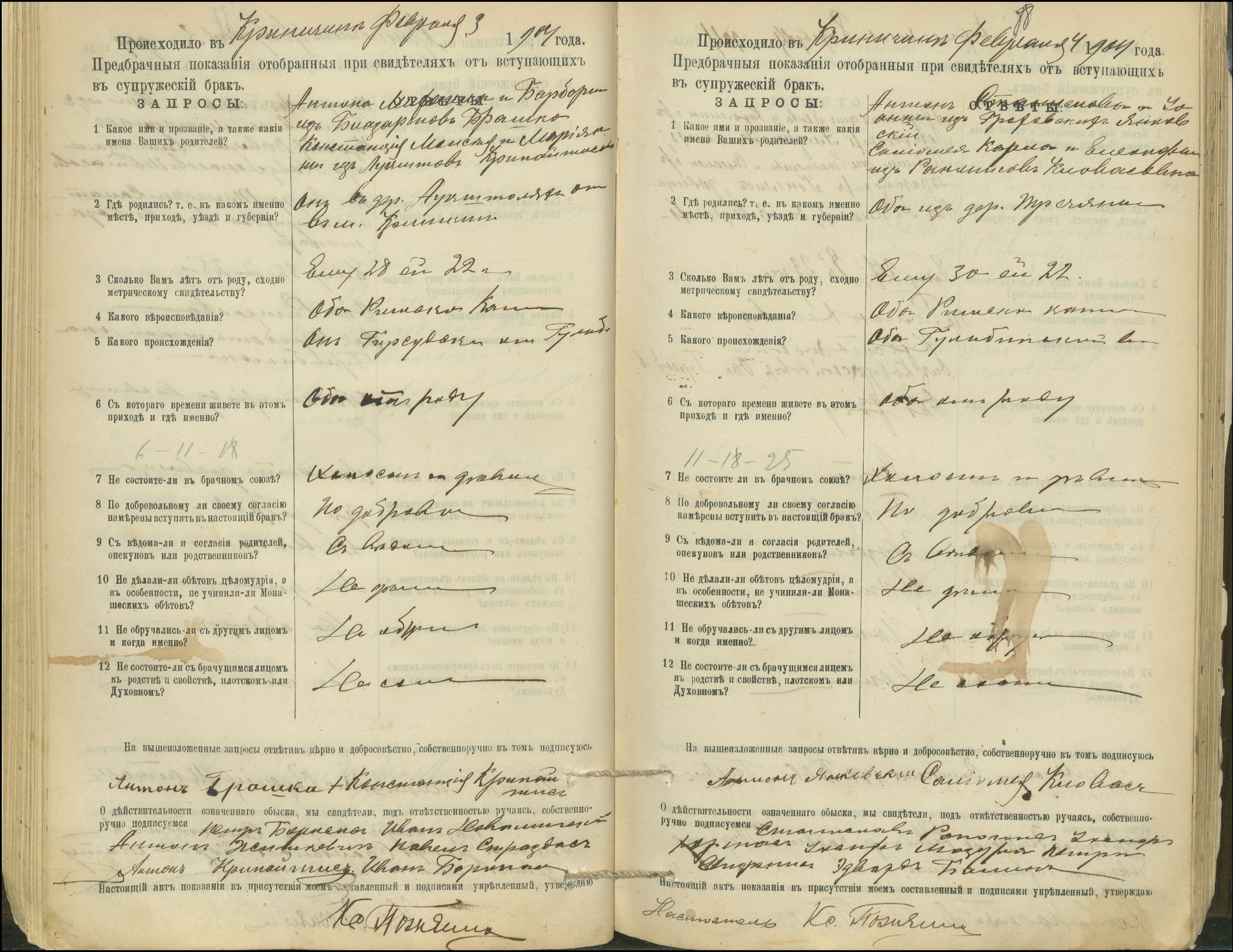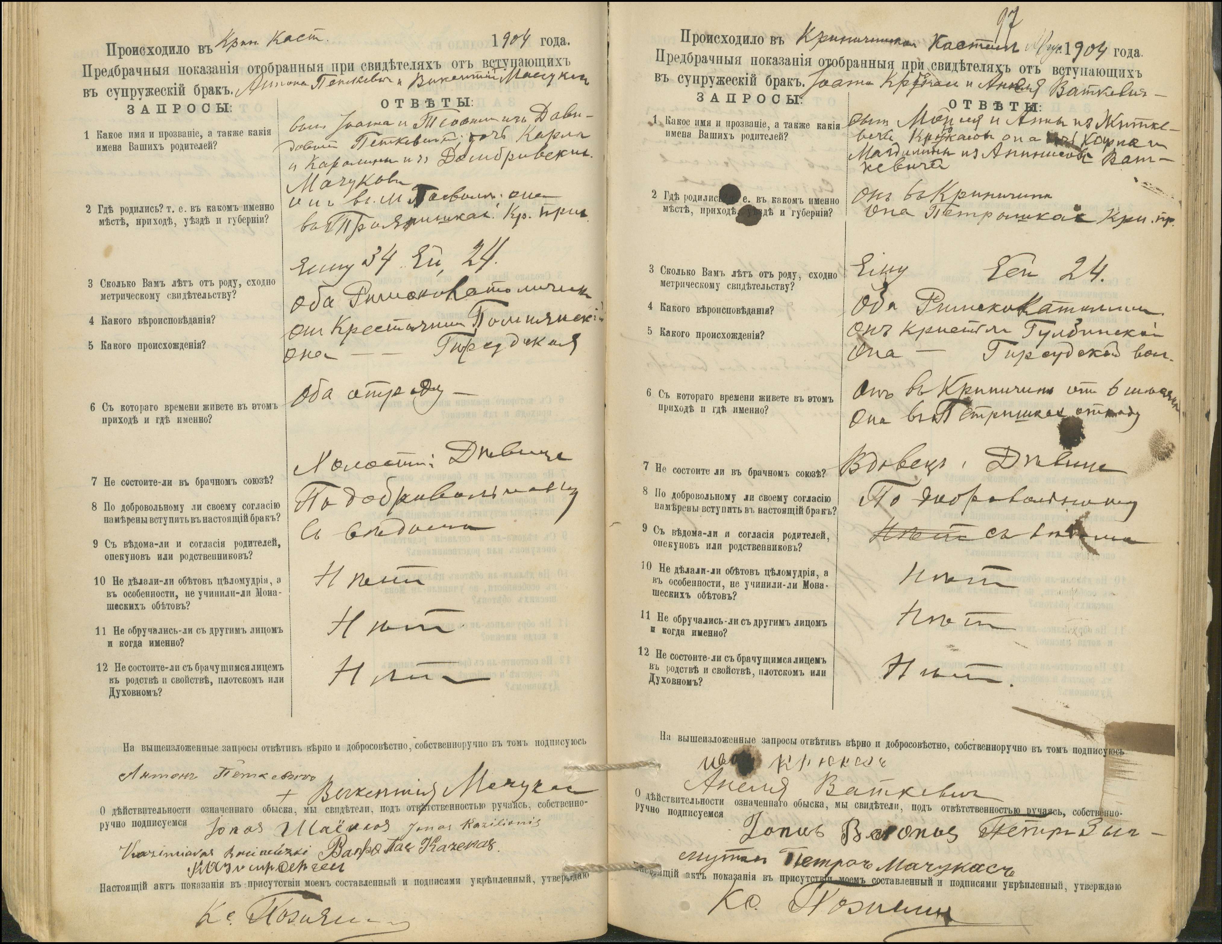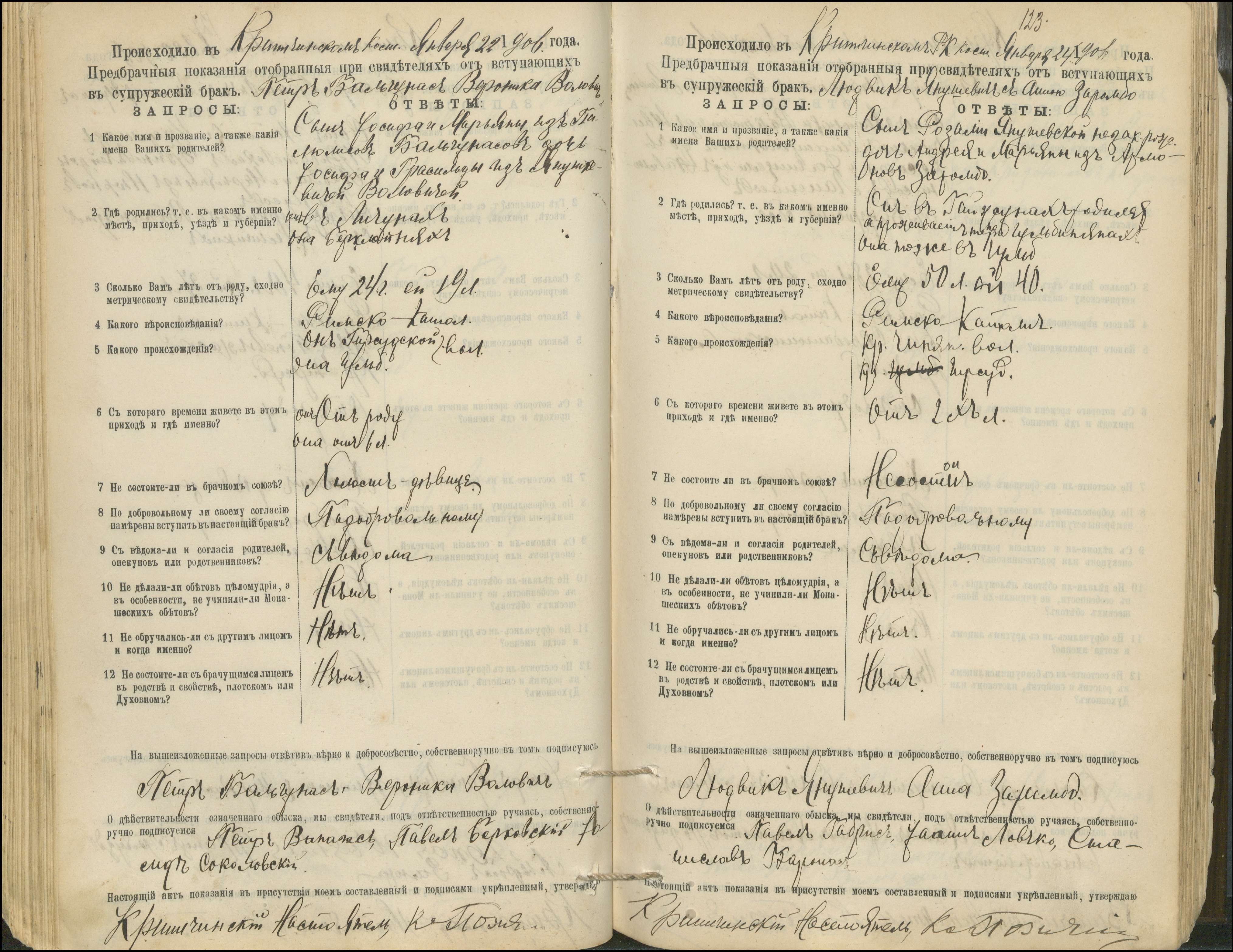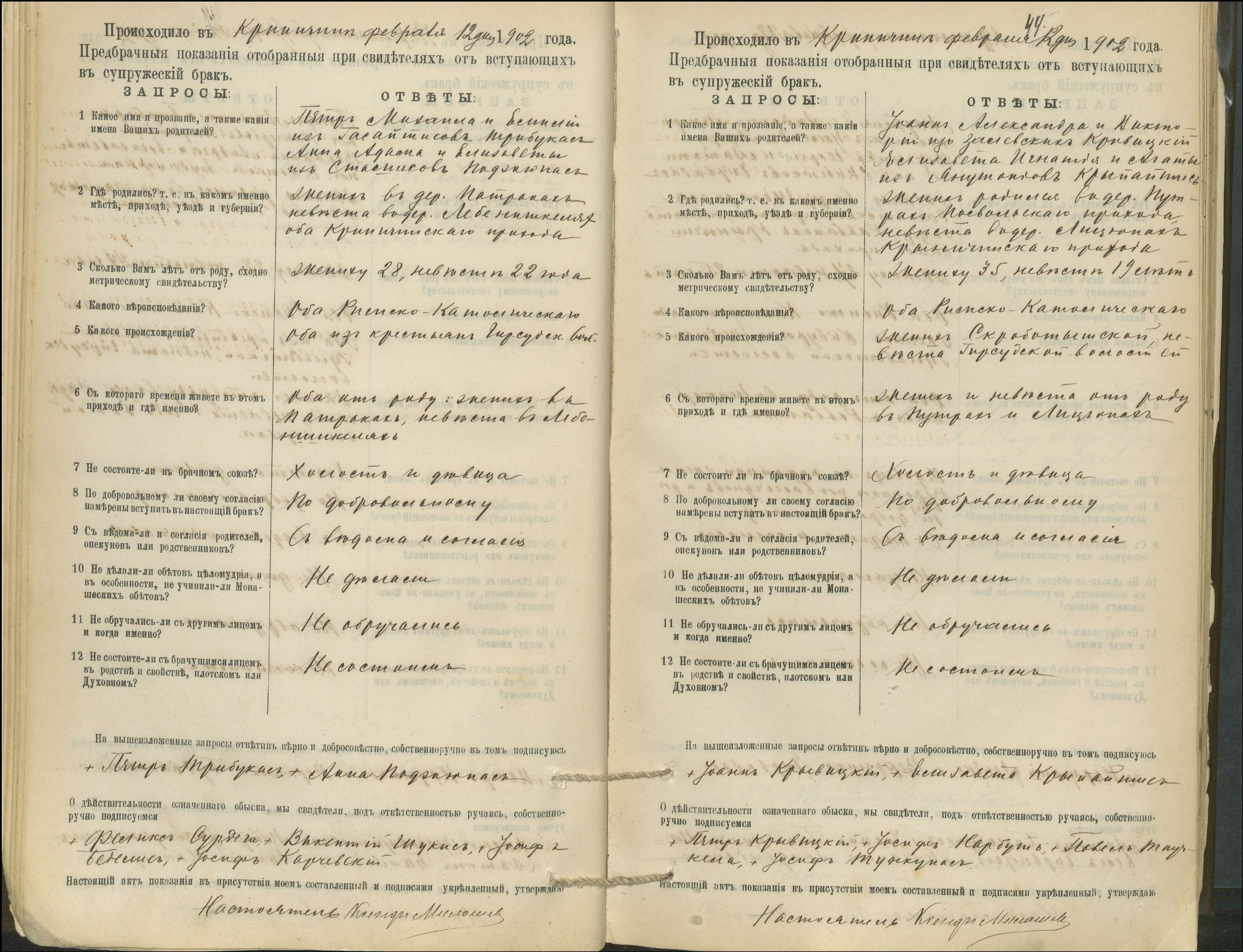 Krinčino Romos katalikų parapijos bažnyčios 1900–1911 metų priešjungtuvinės apklausos knyga