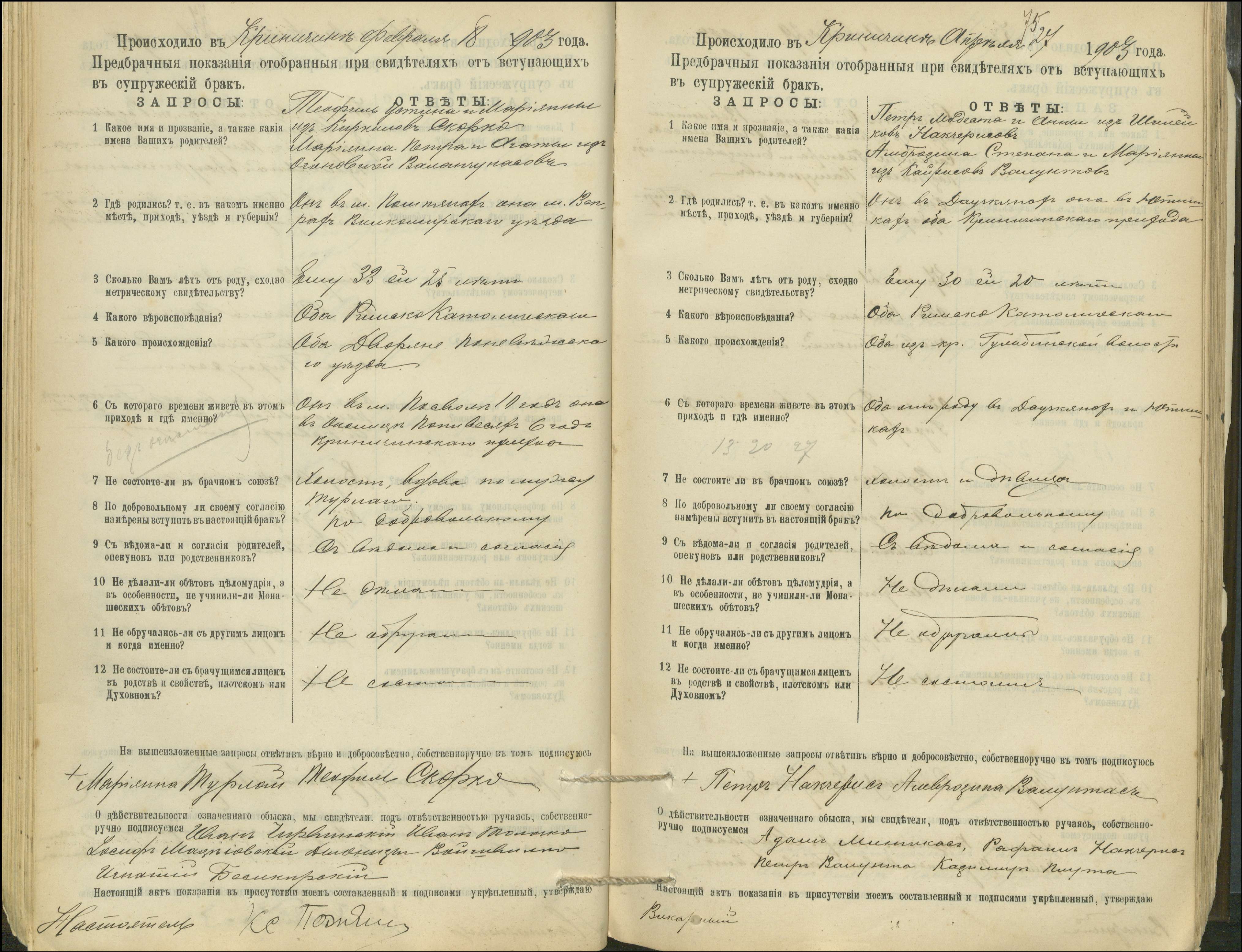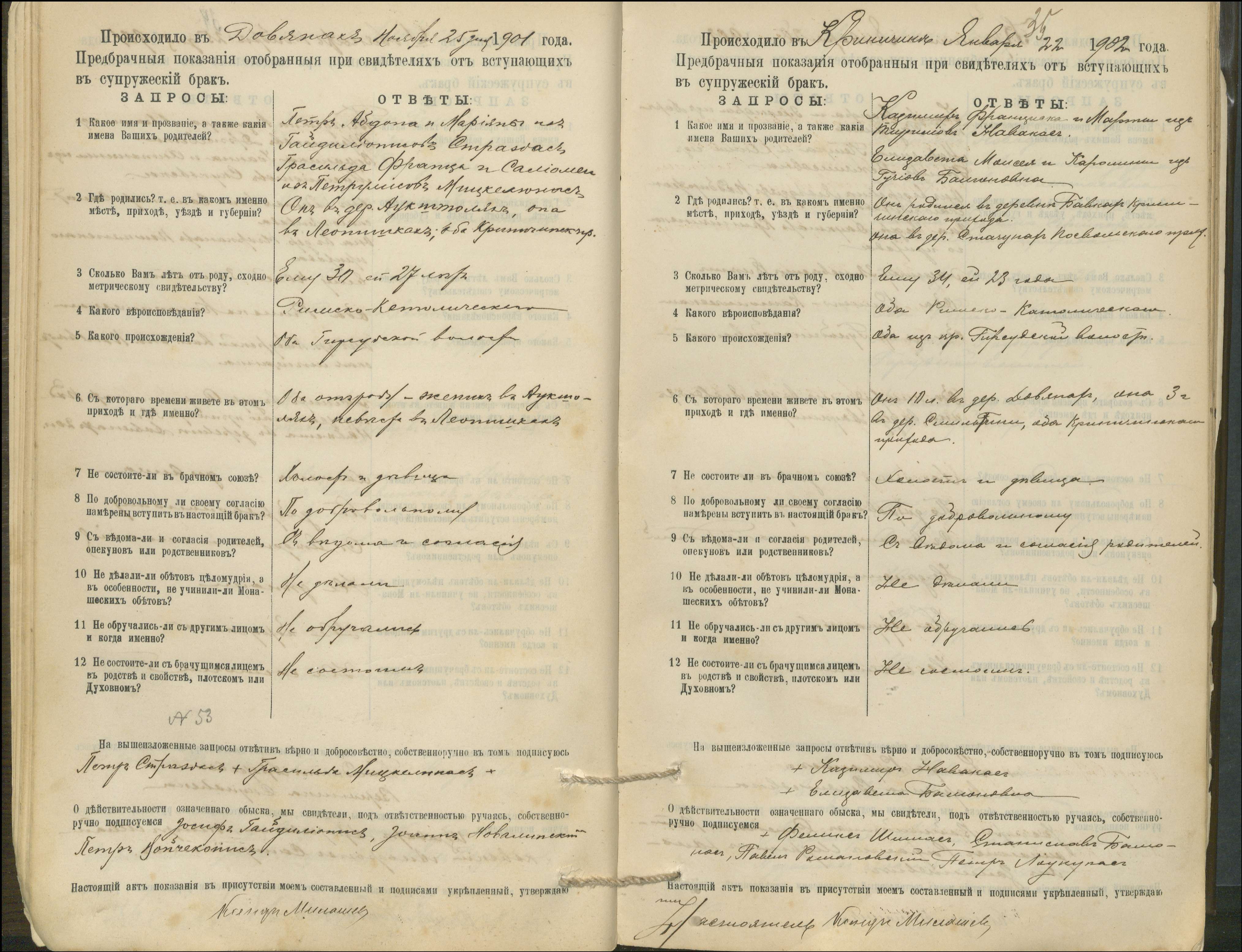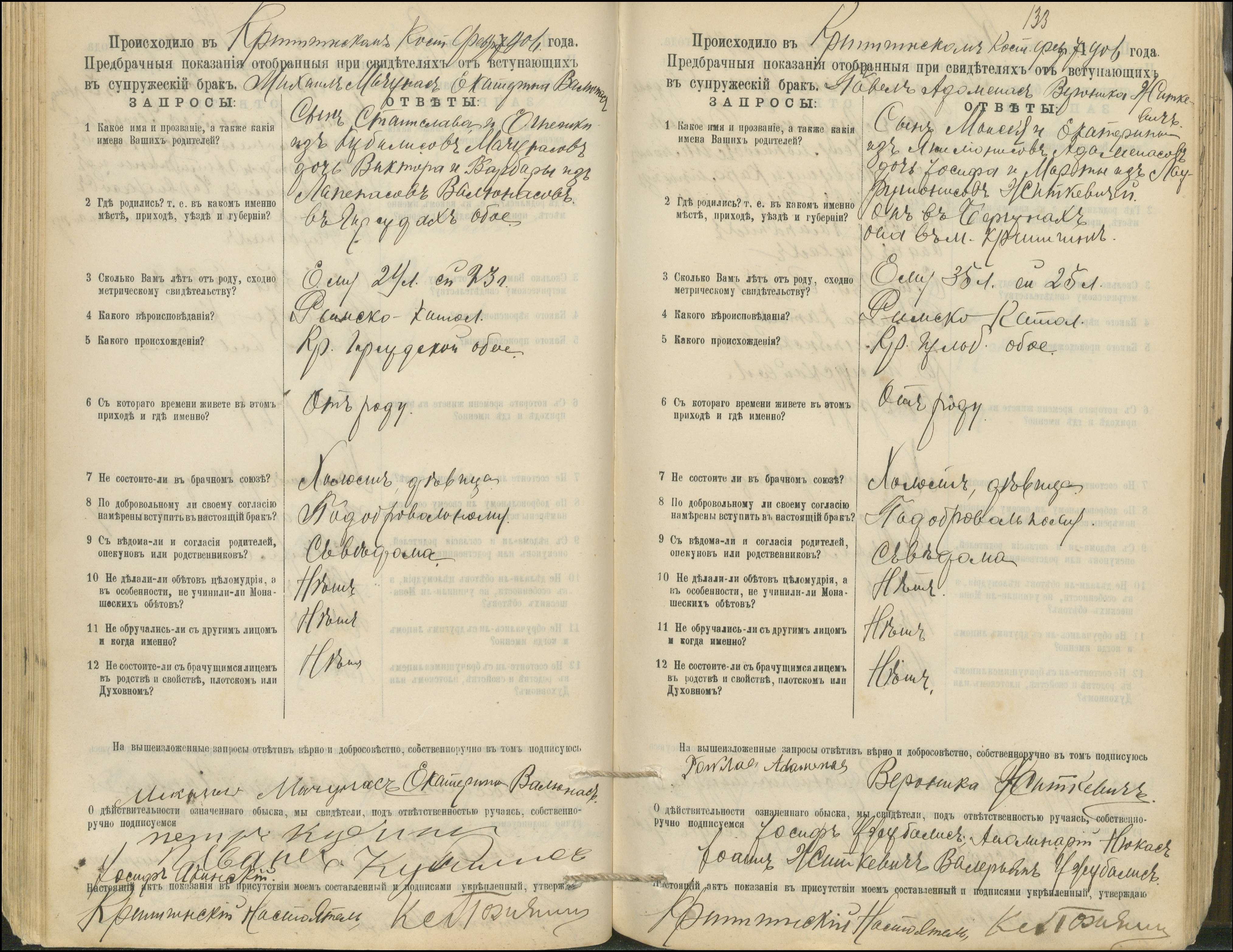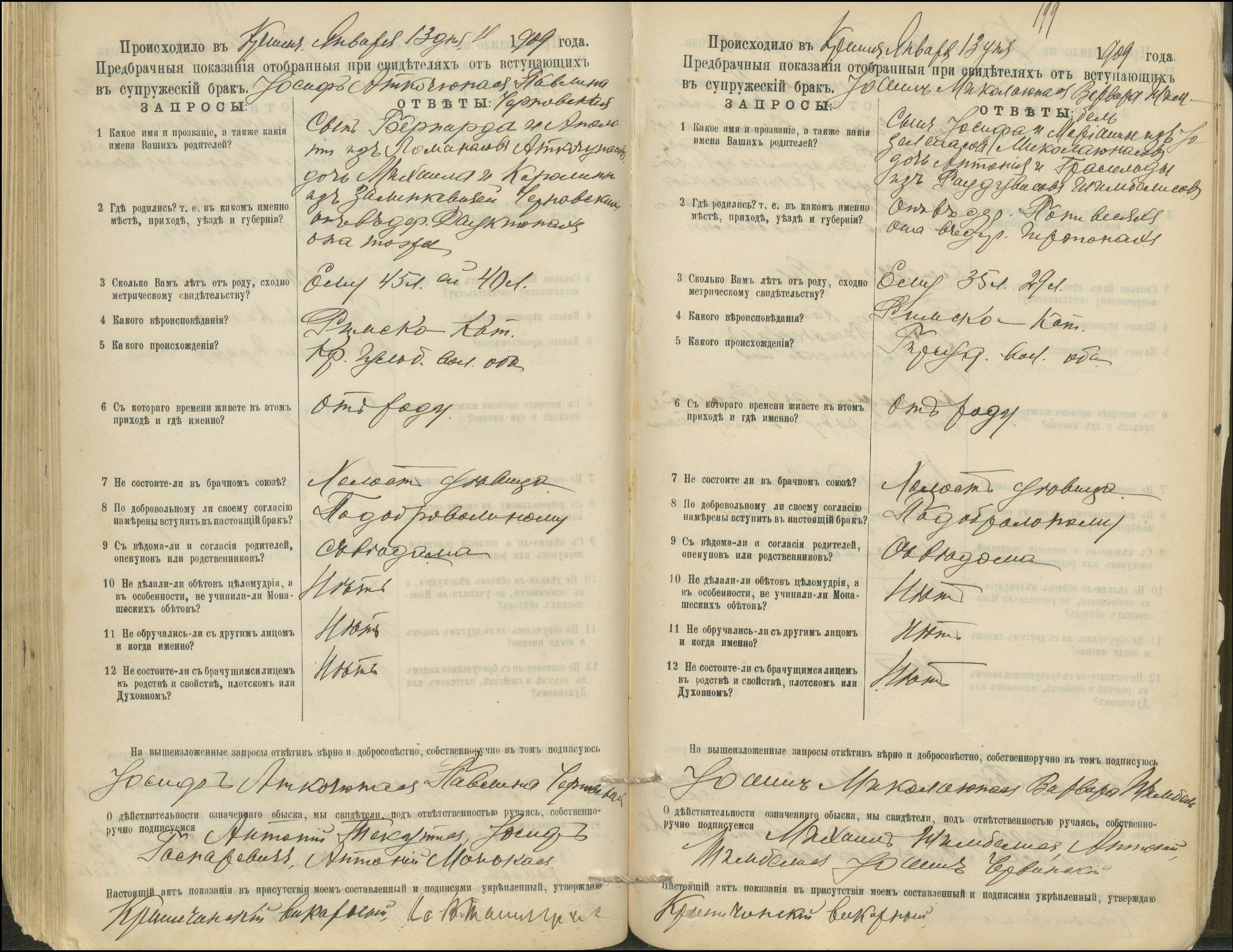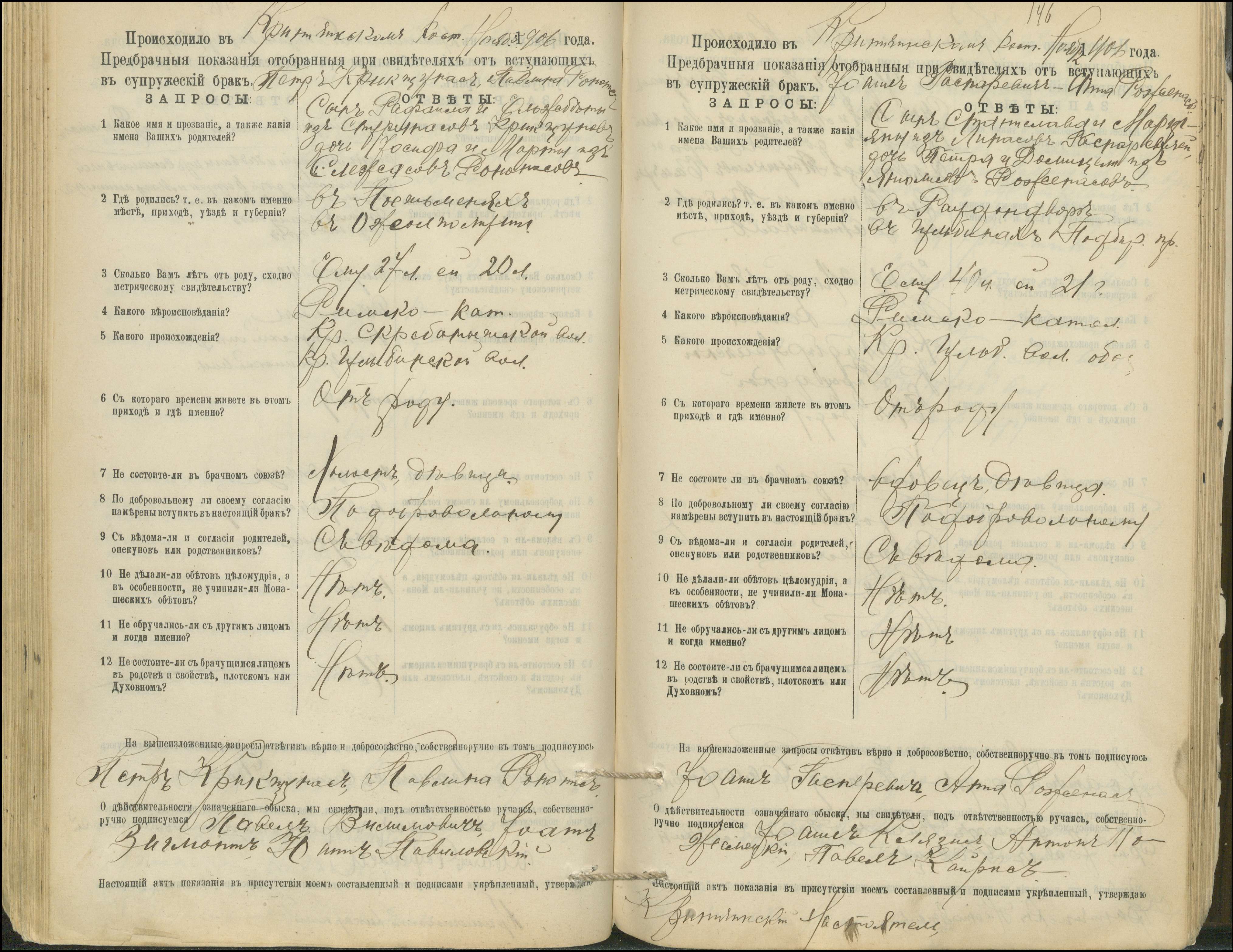 Krinčino Romos katalikų parapijos bažnyčios 1900–1911 metų priešjungtuvinės apklausos knyga