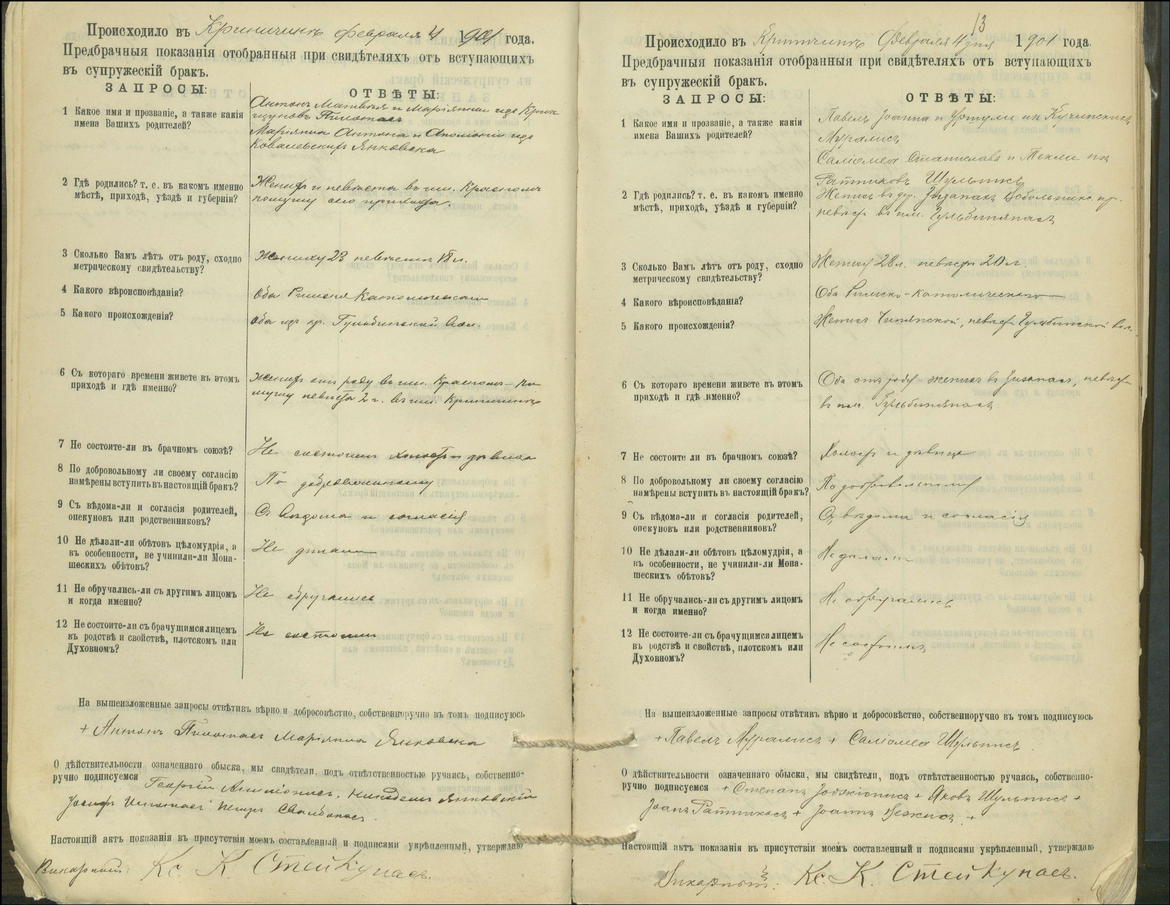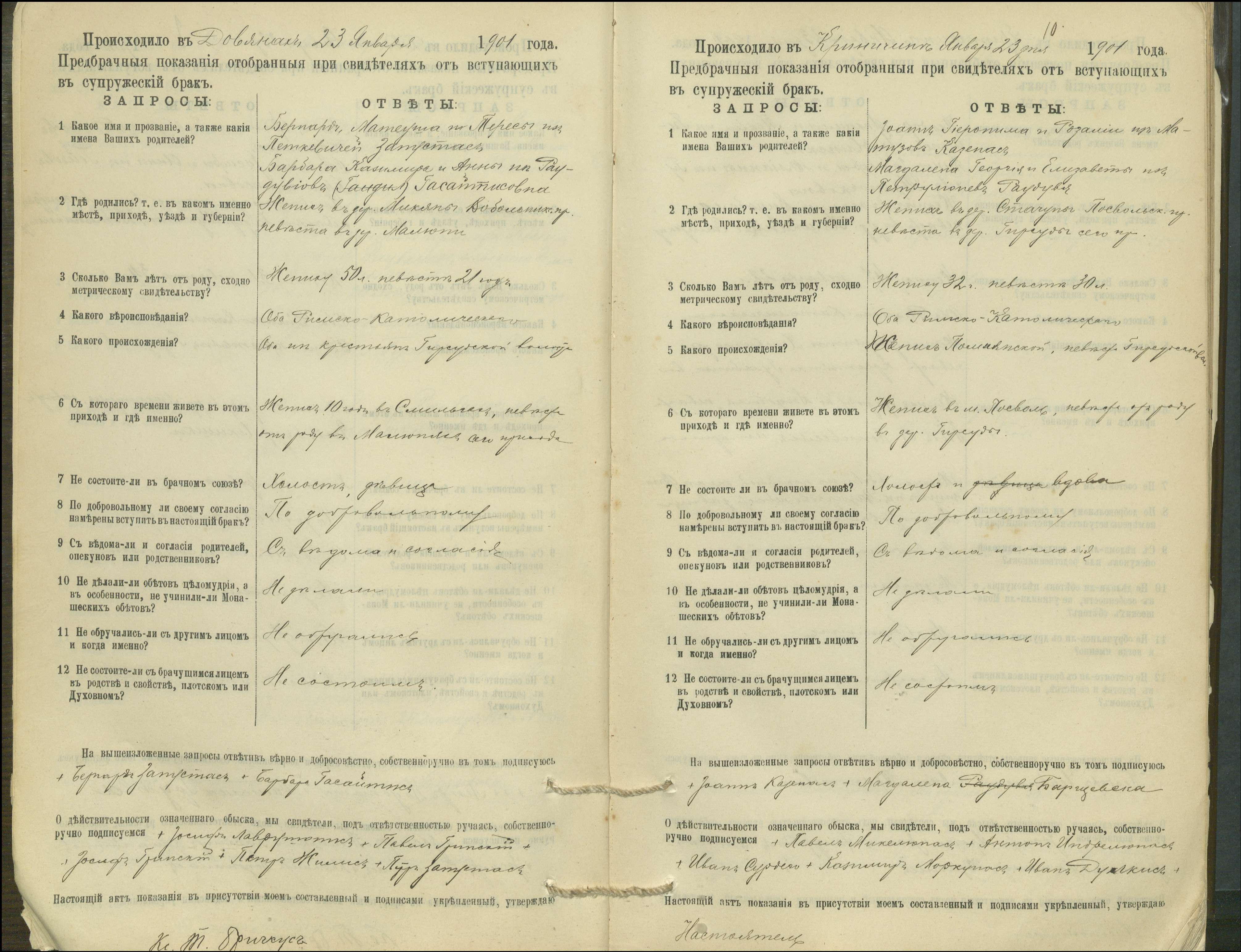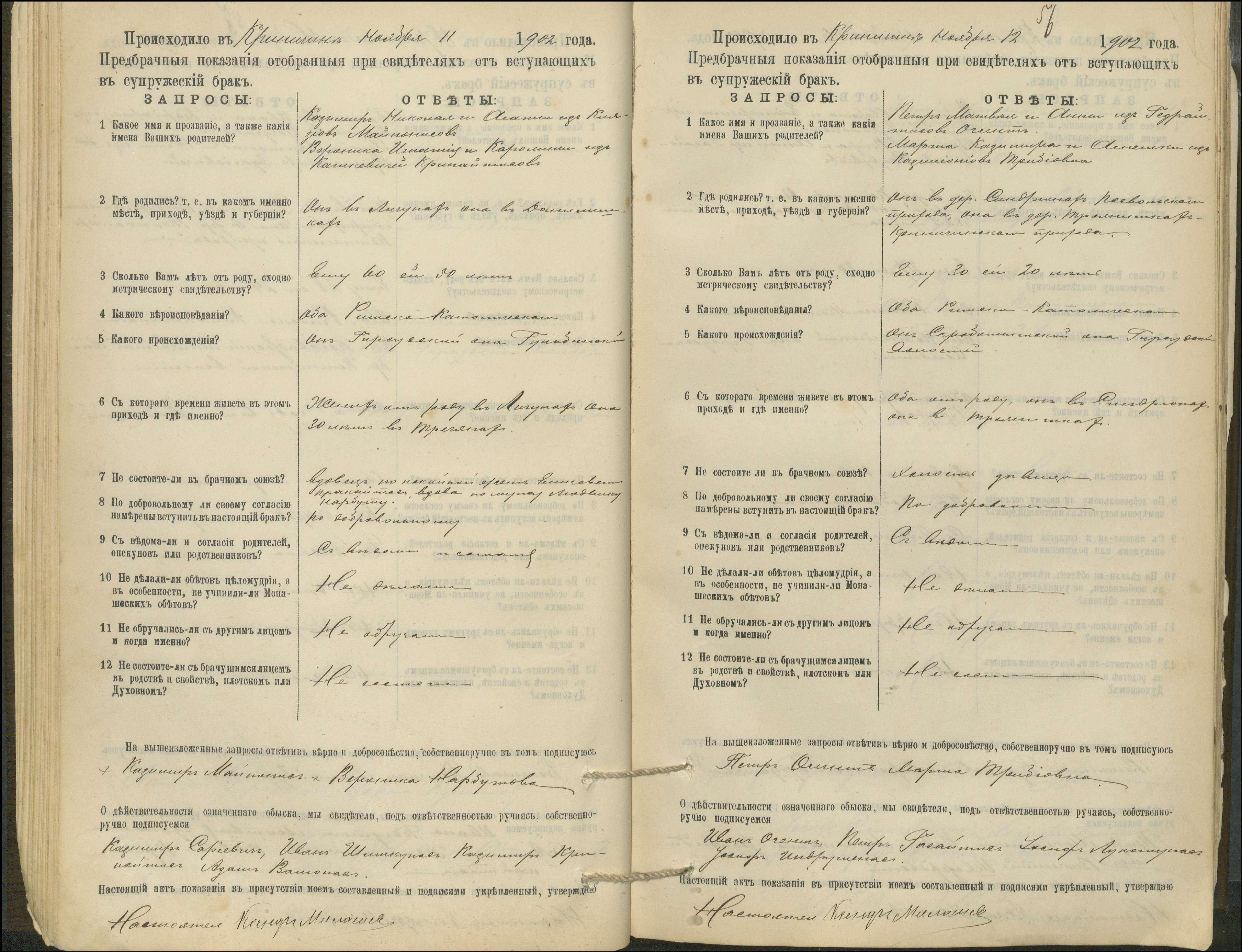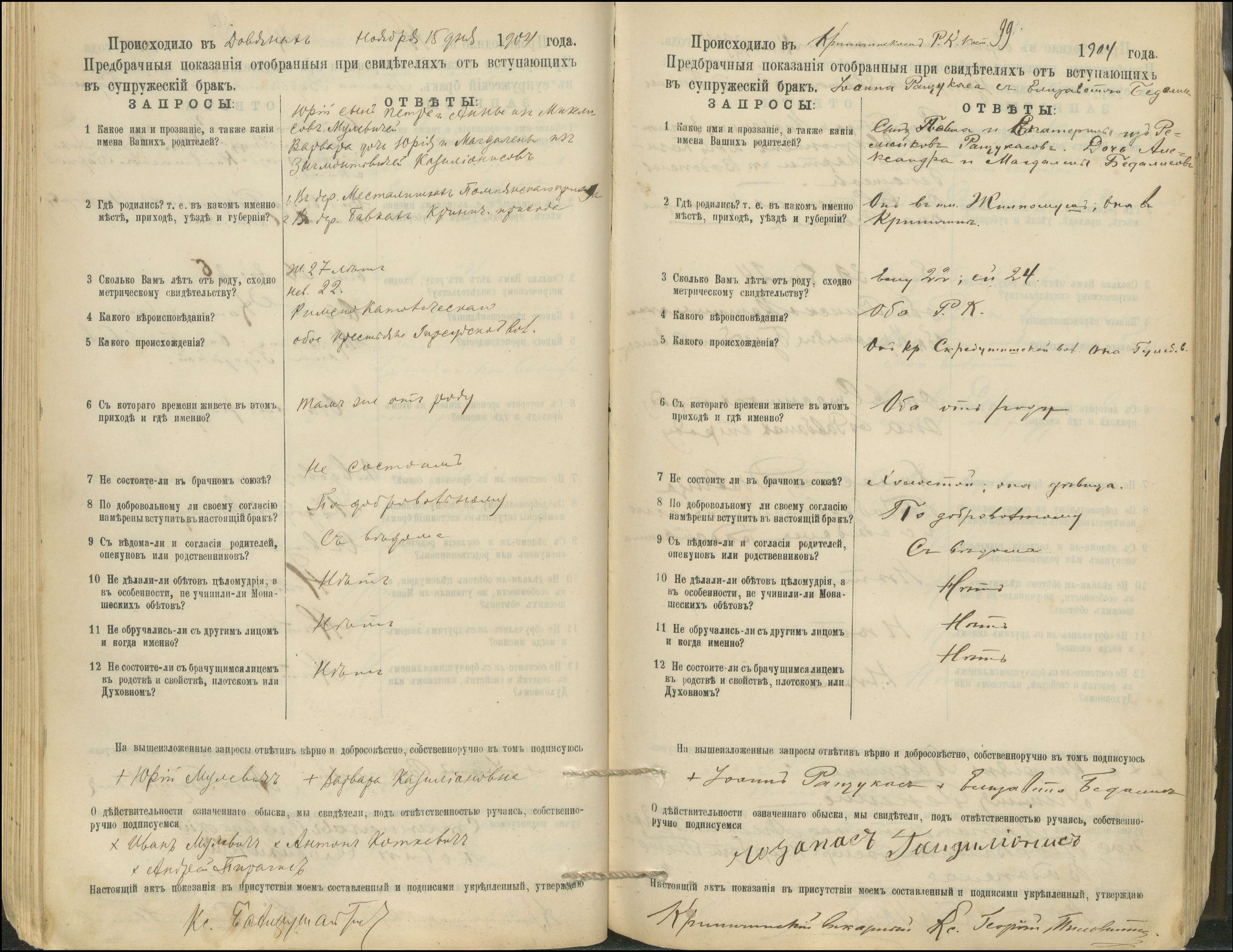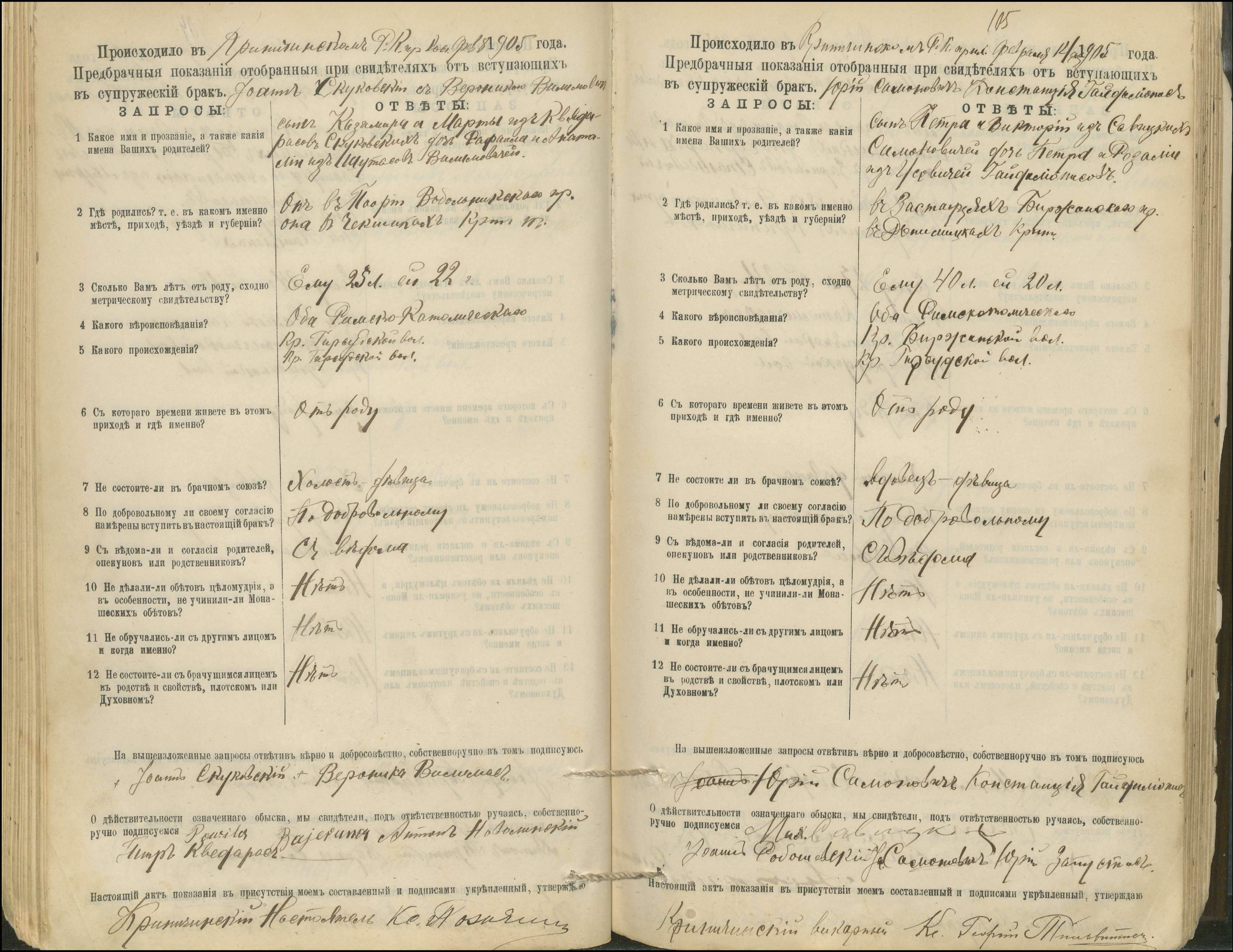 Krinčino Romos katalikų parapijos bažnyčios 1900–1911 metų priešjungtuvinės apklausos knyga
