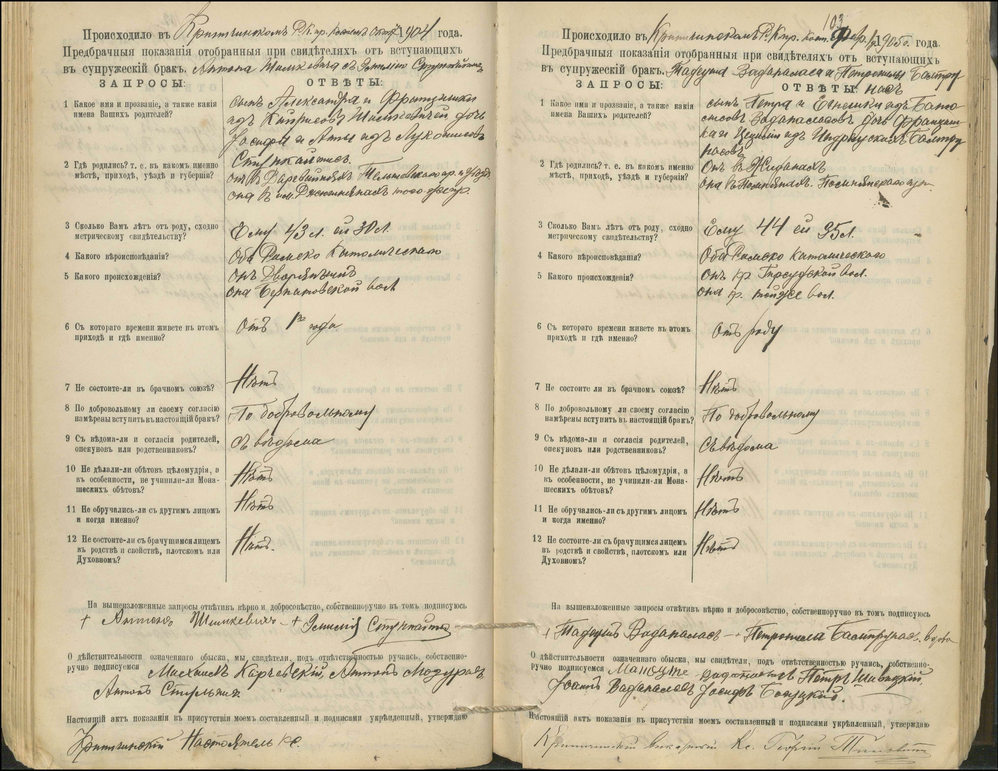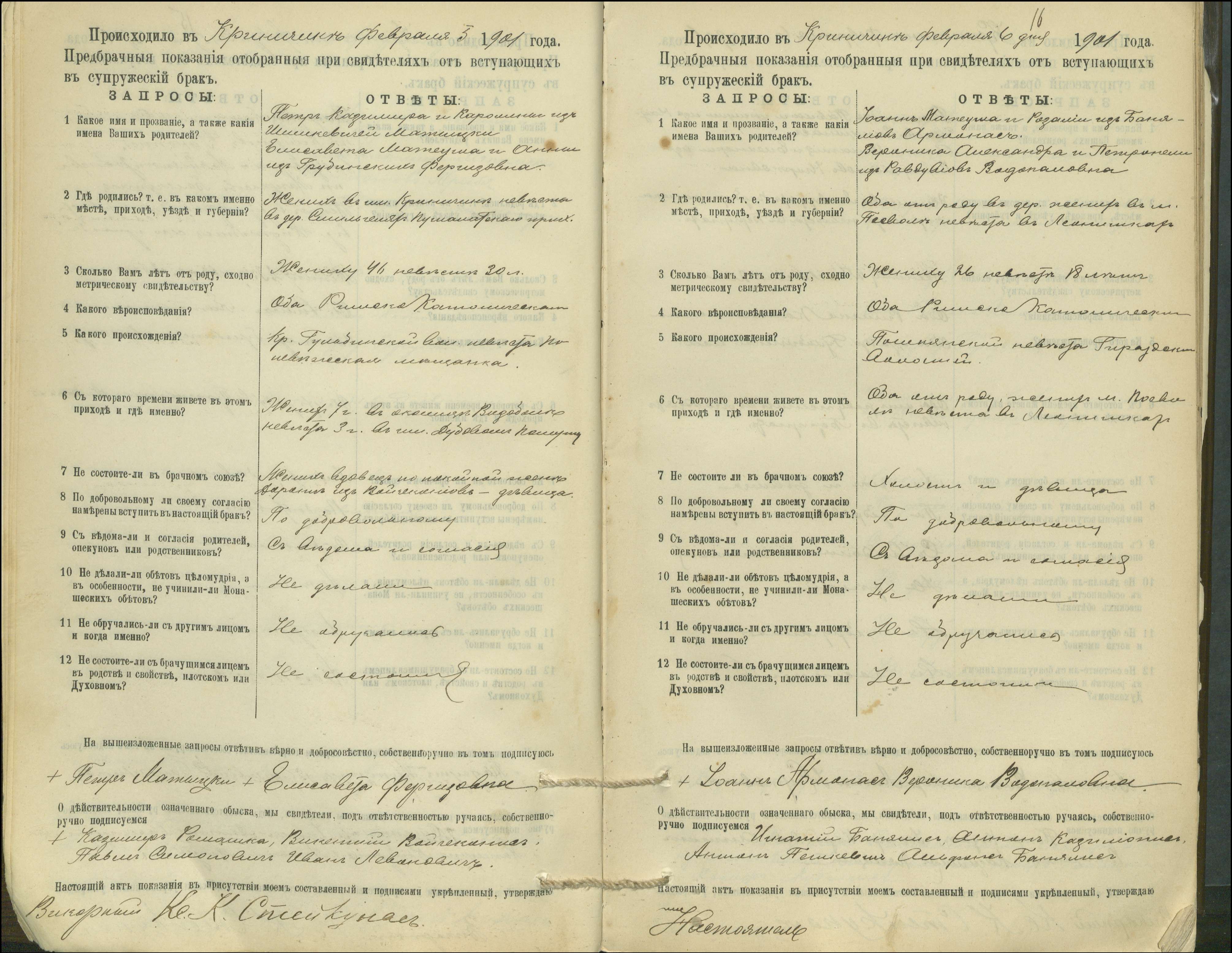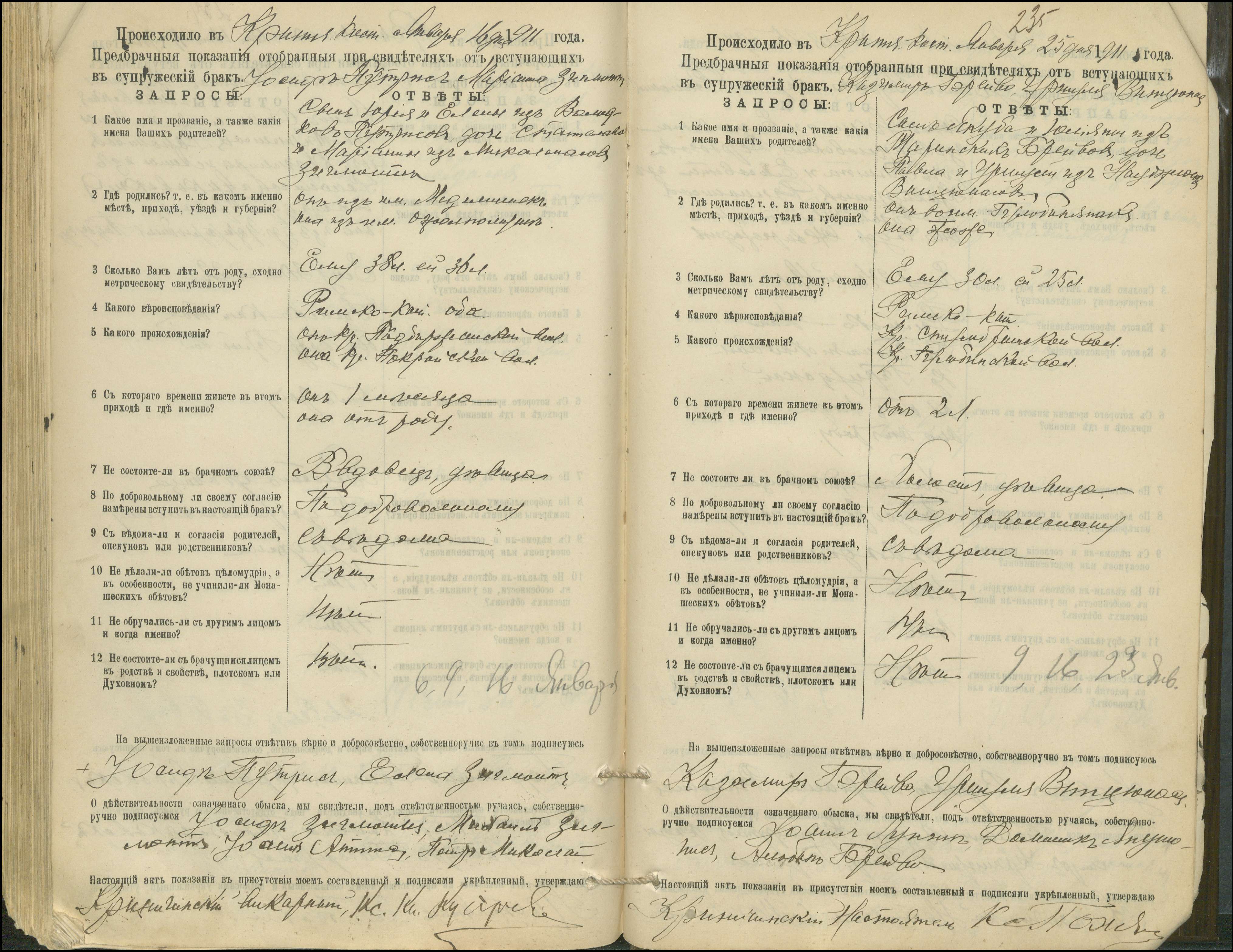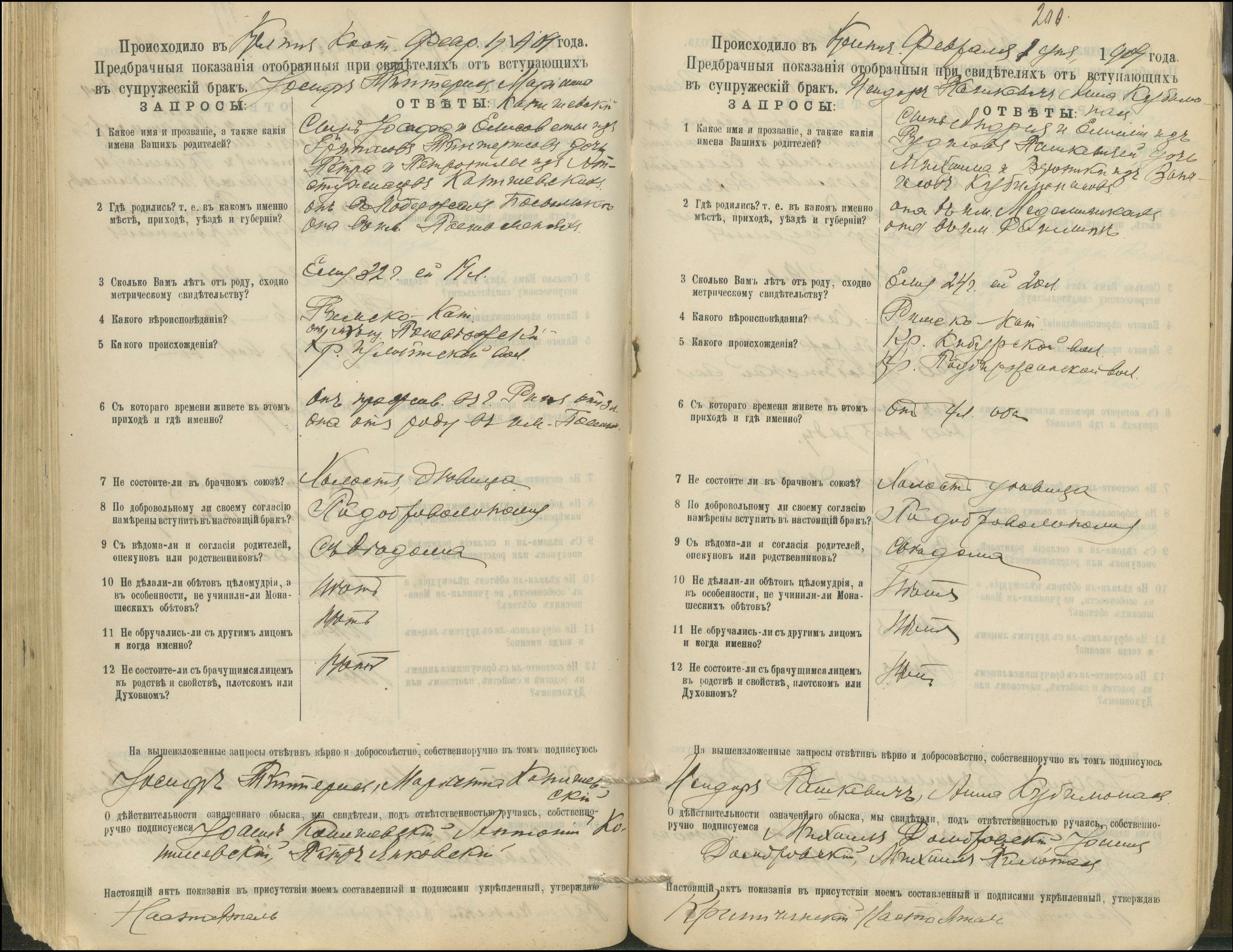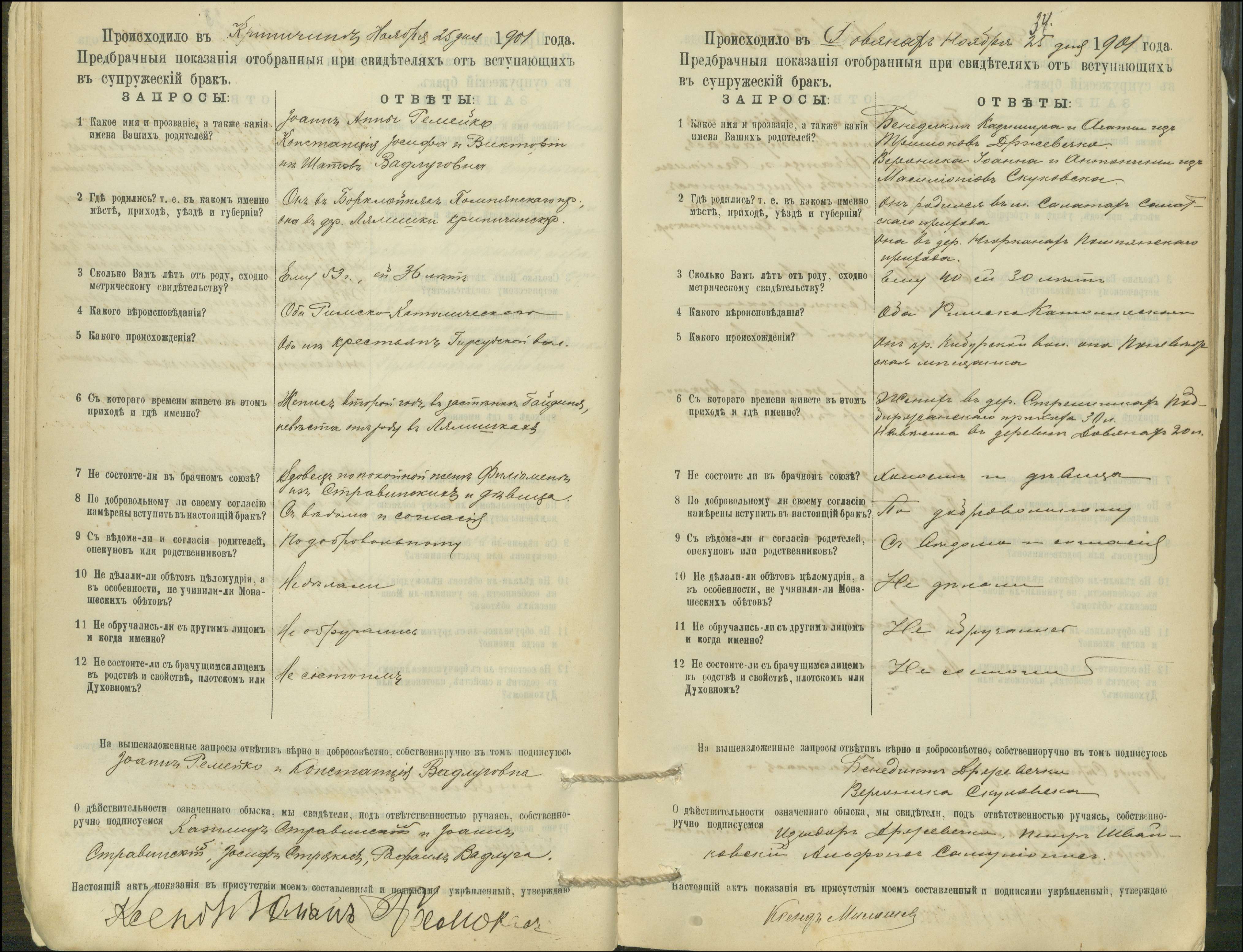 Krinčino Romos katalikų parapijos bažnyčios 1900–1911 metų priešjungtuvinės apklausos knyga