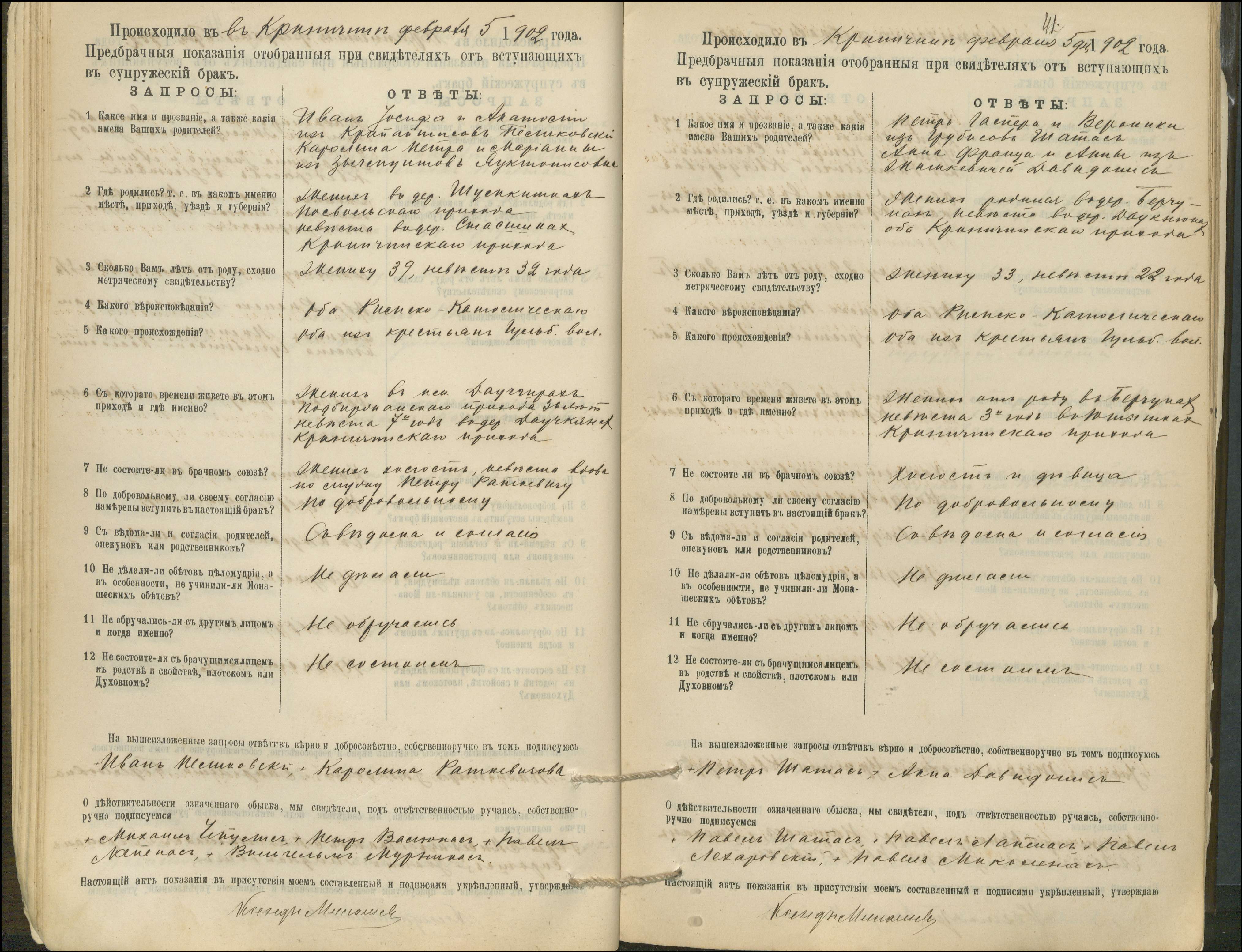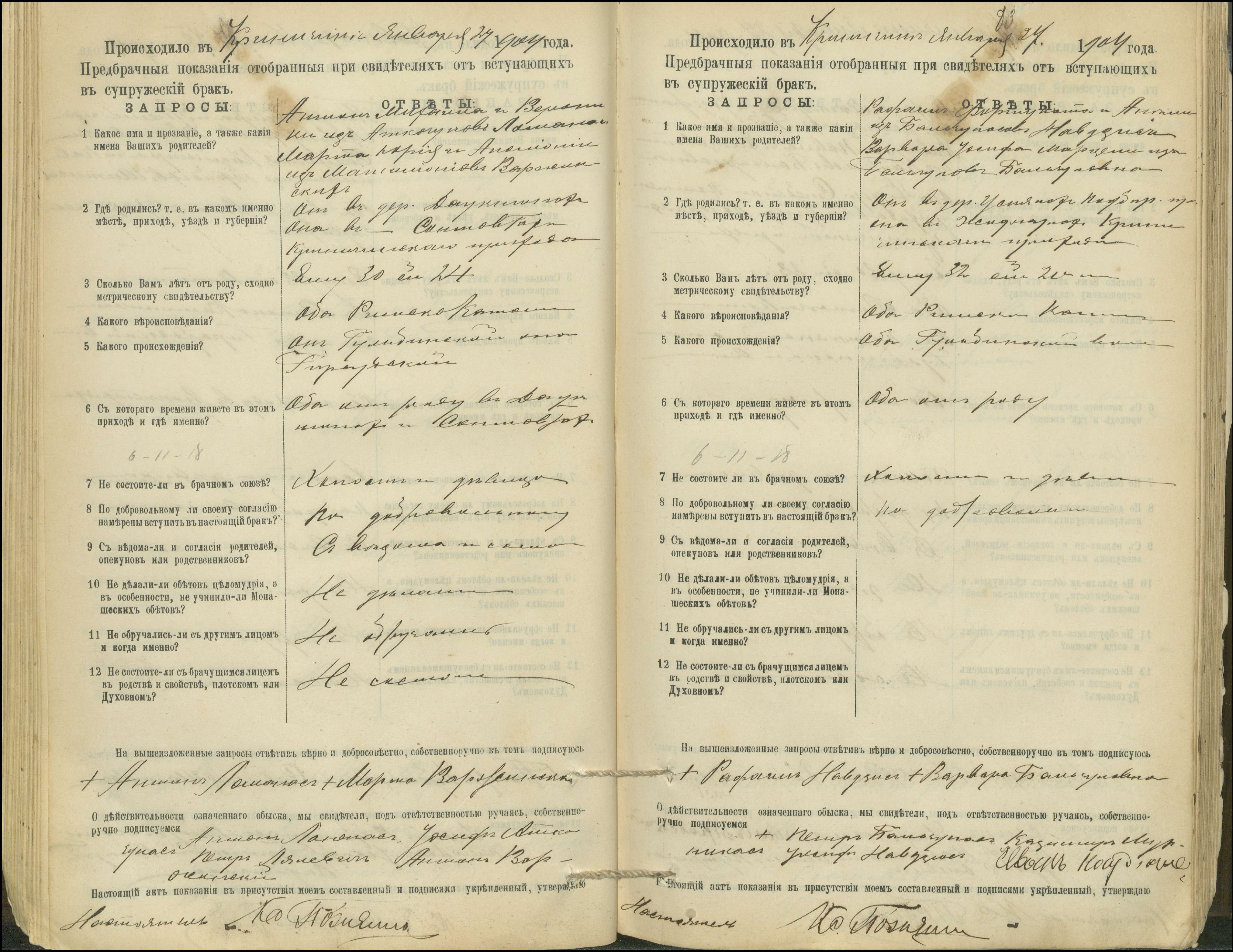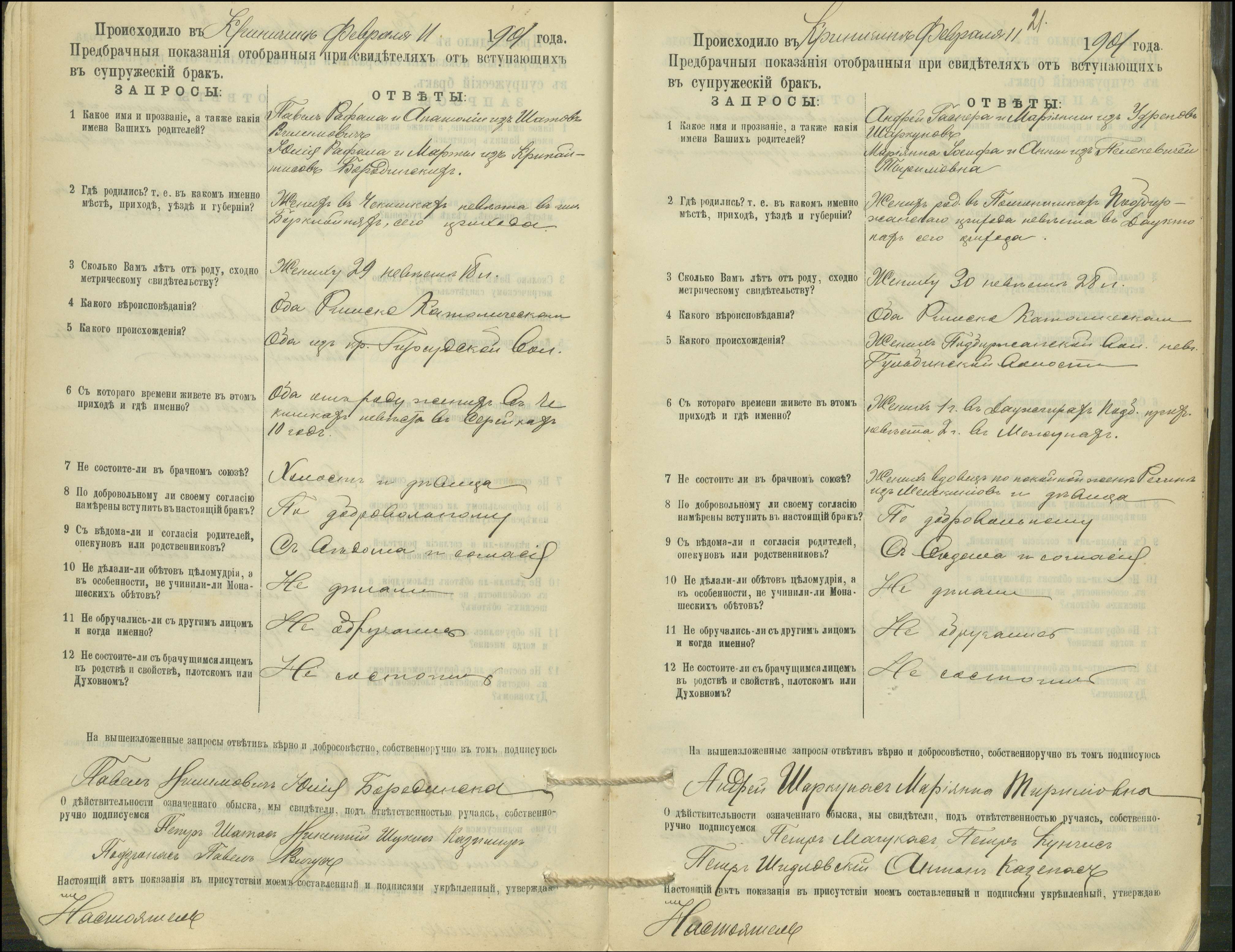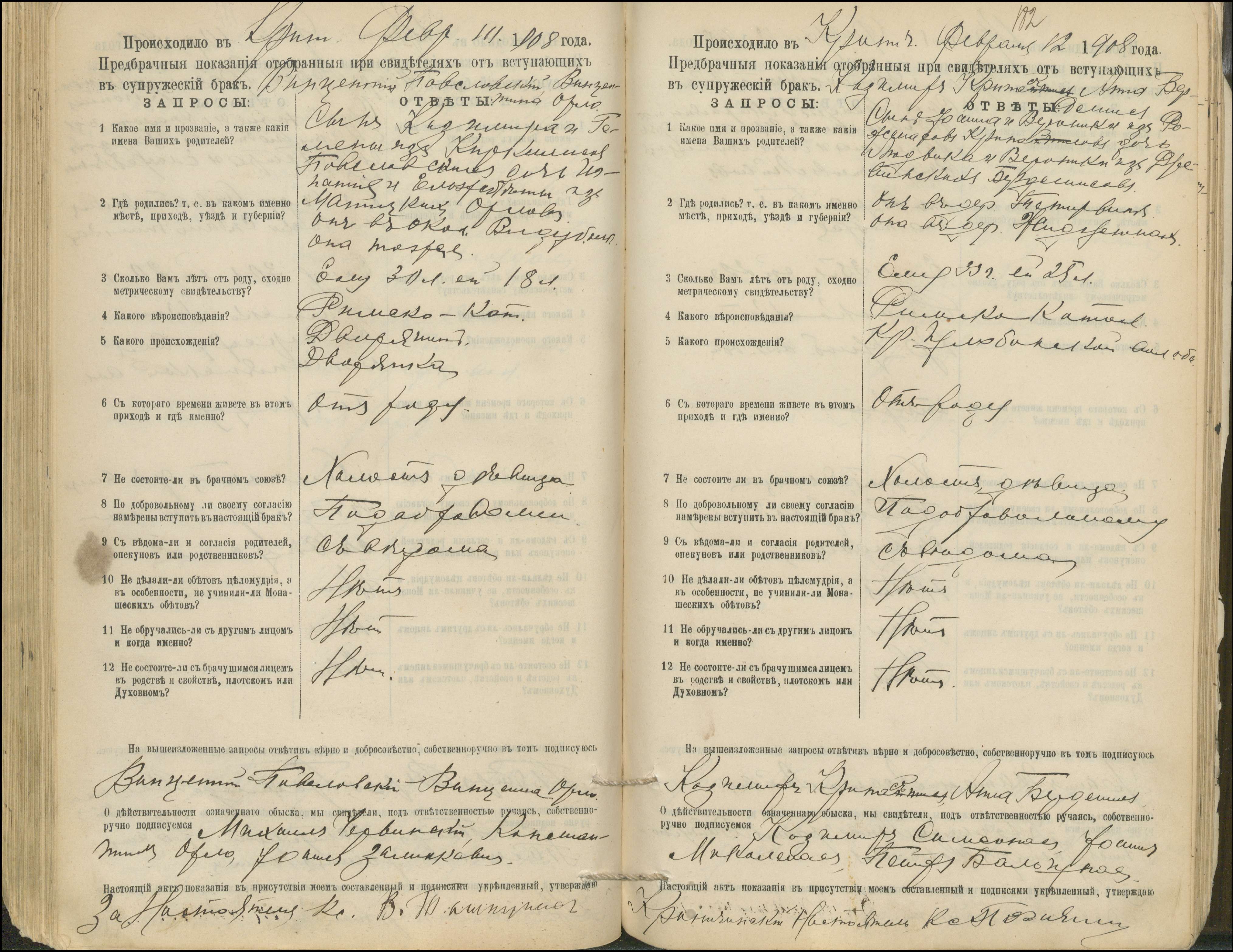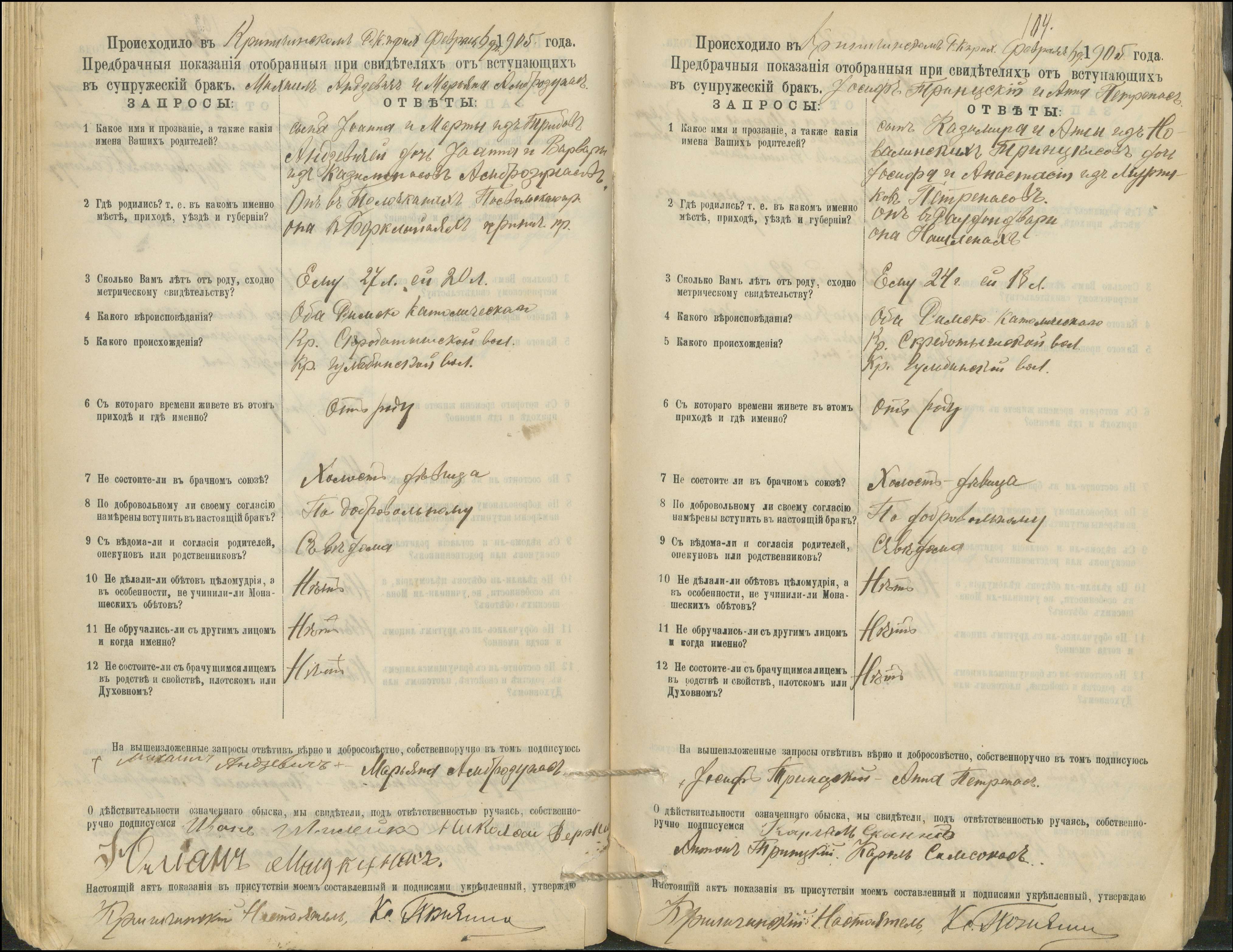 Krinčino Romos katalikų parapijos bažnyčios 1900–1911 metų priešjungtuvinės apklausos knyga