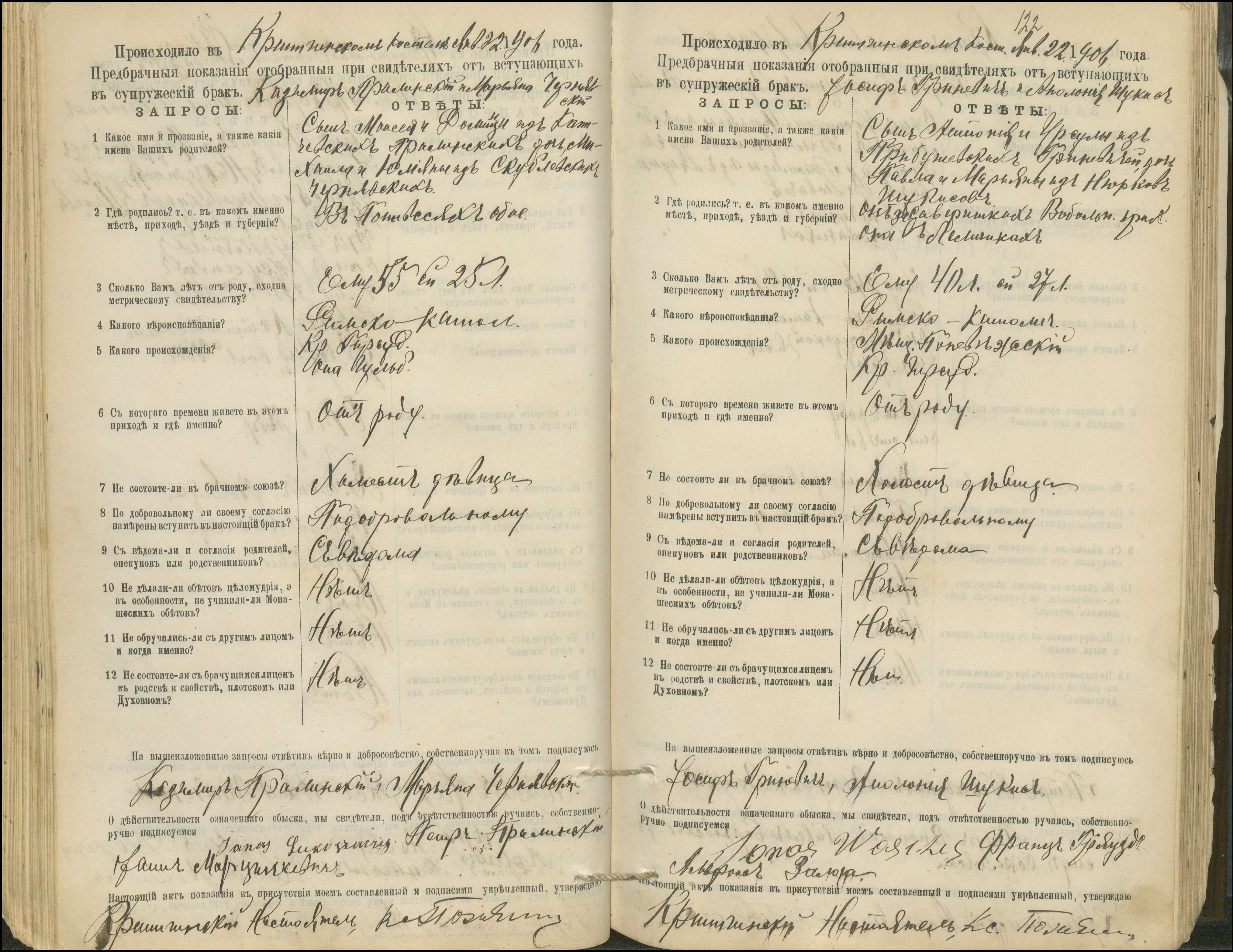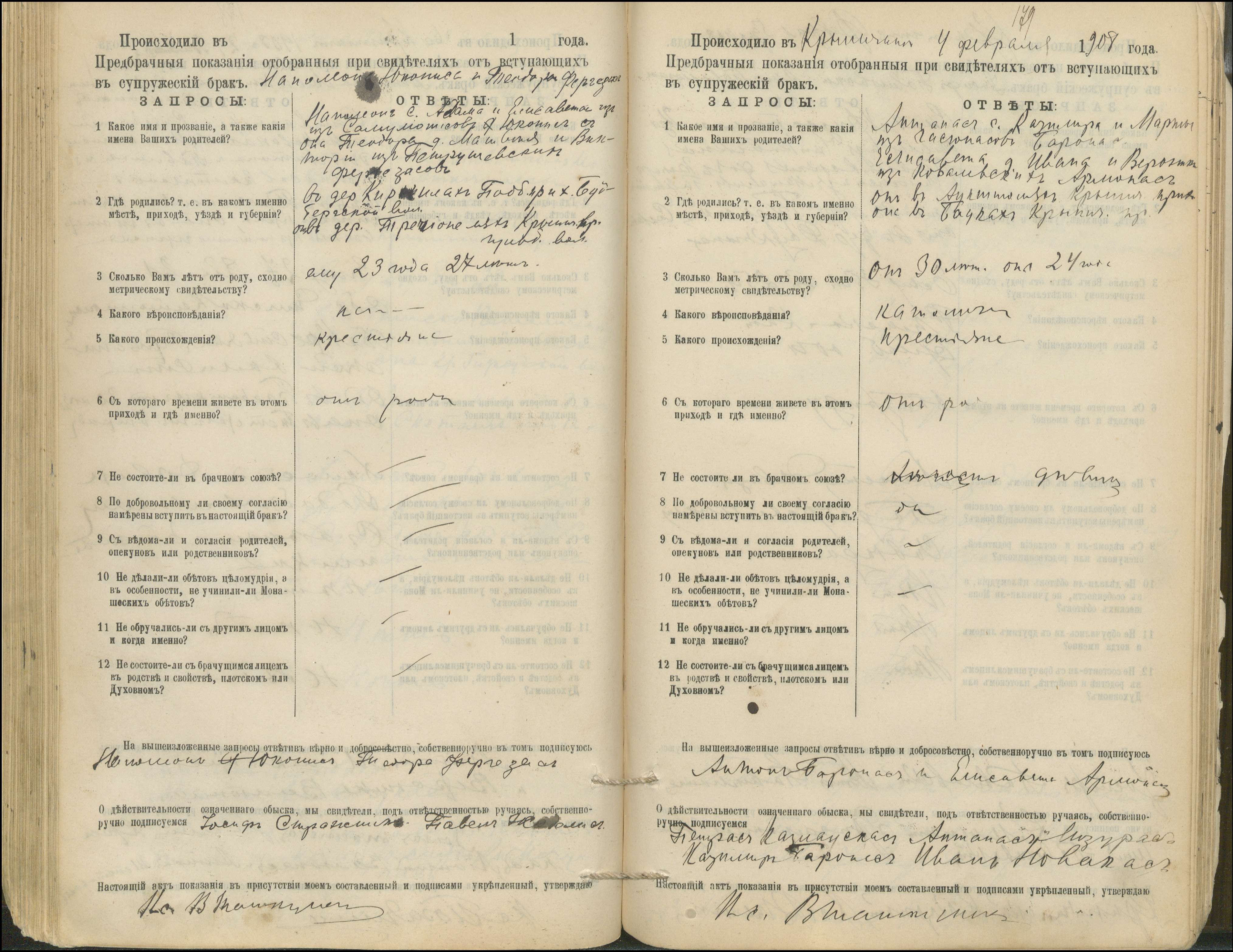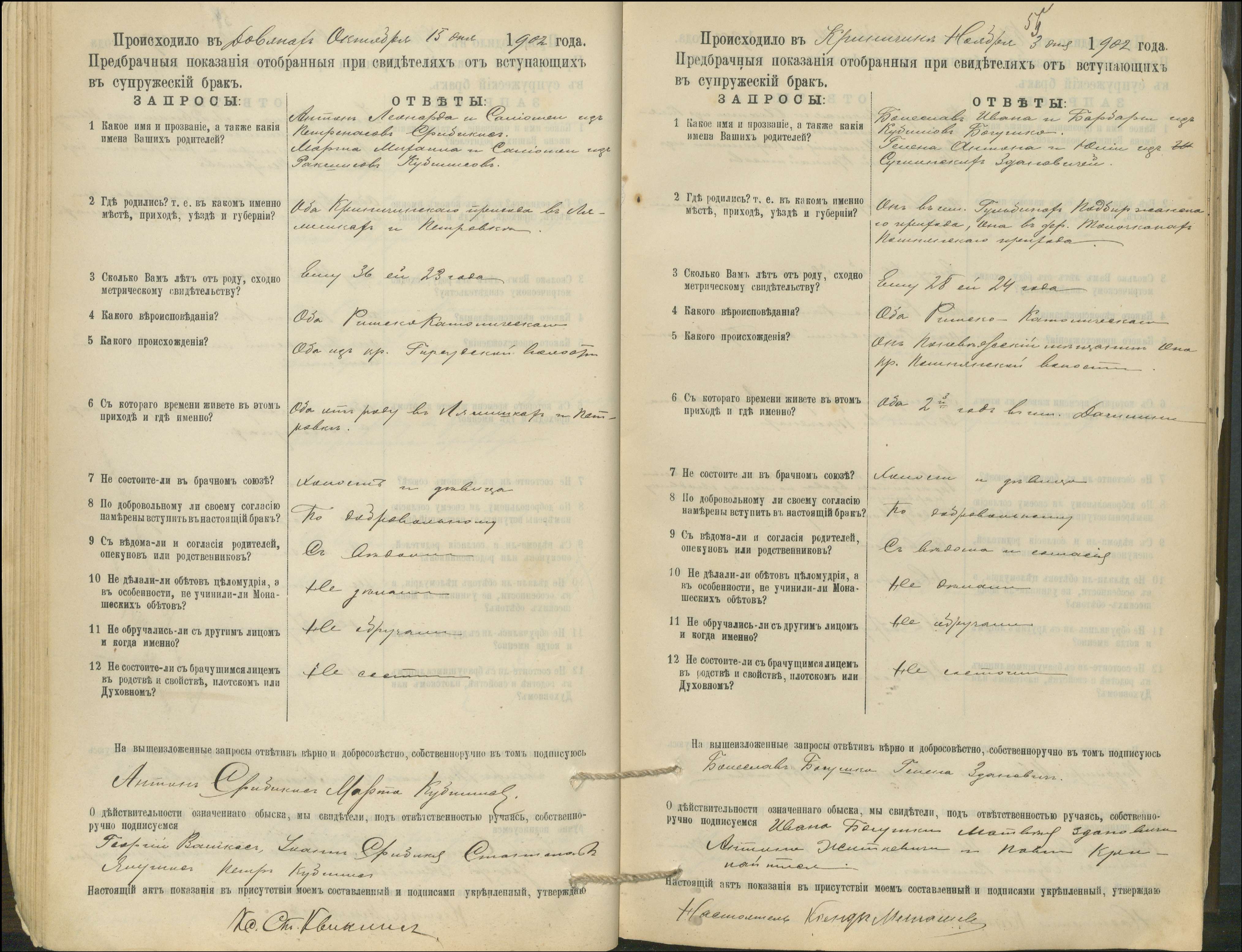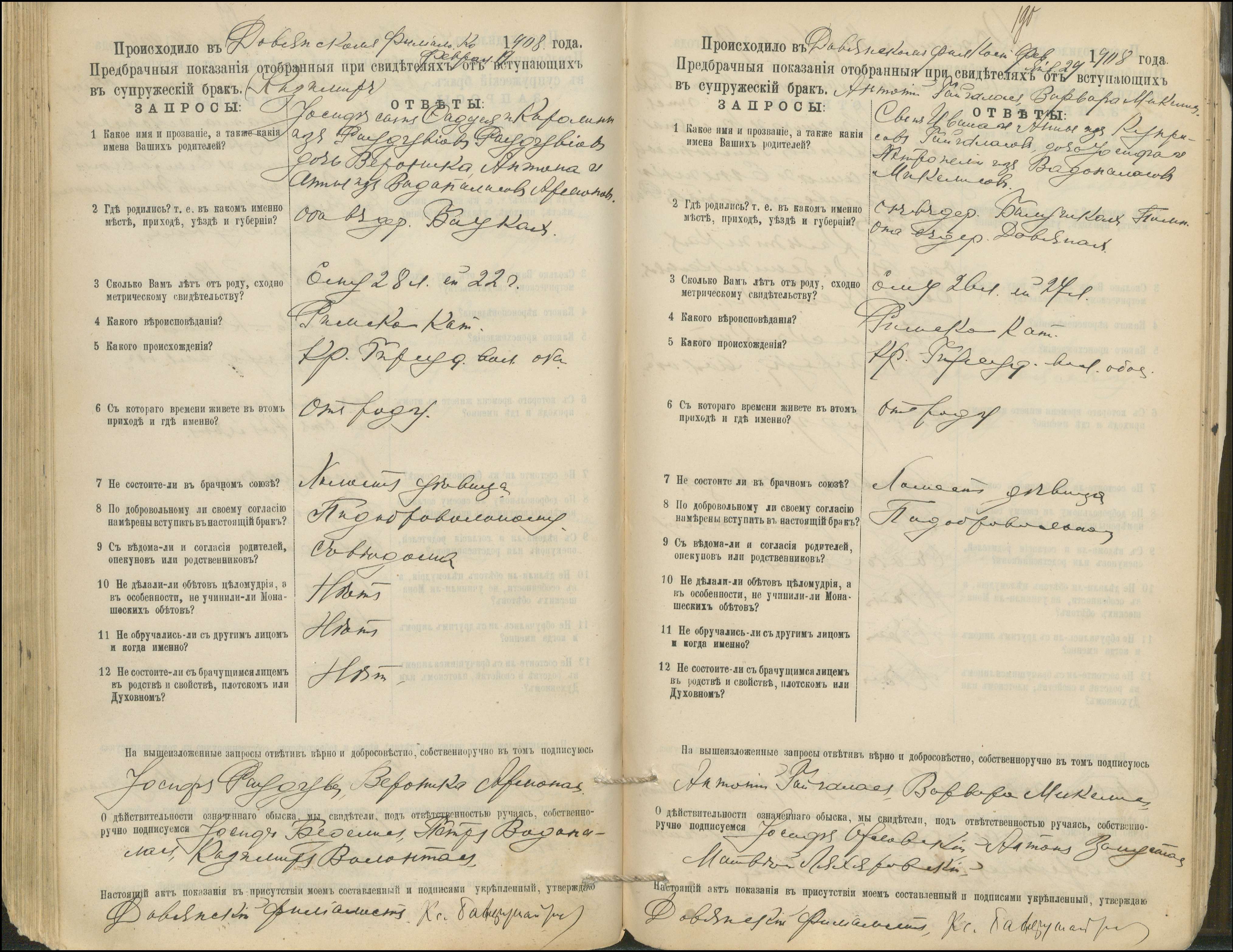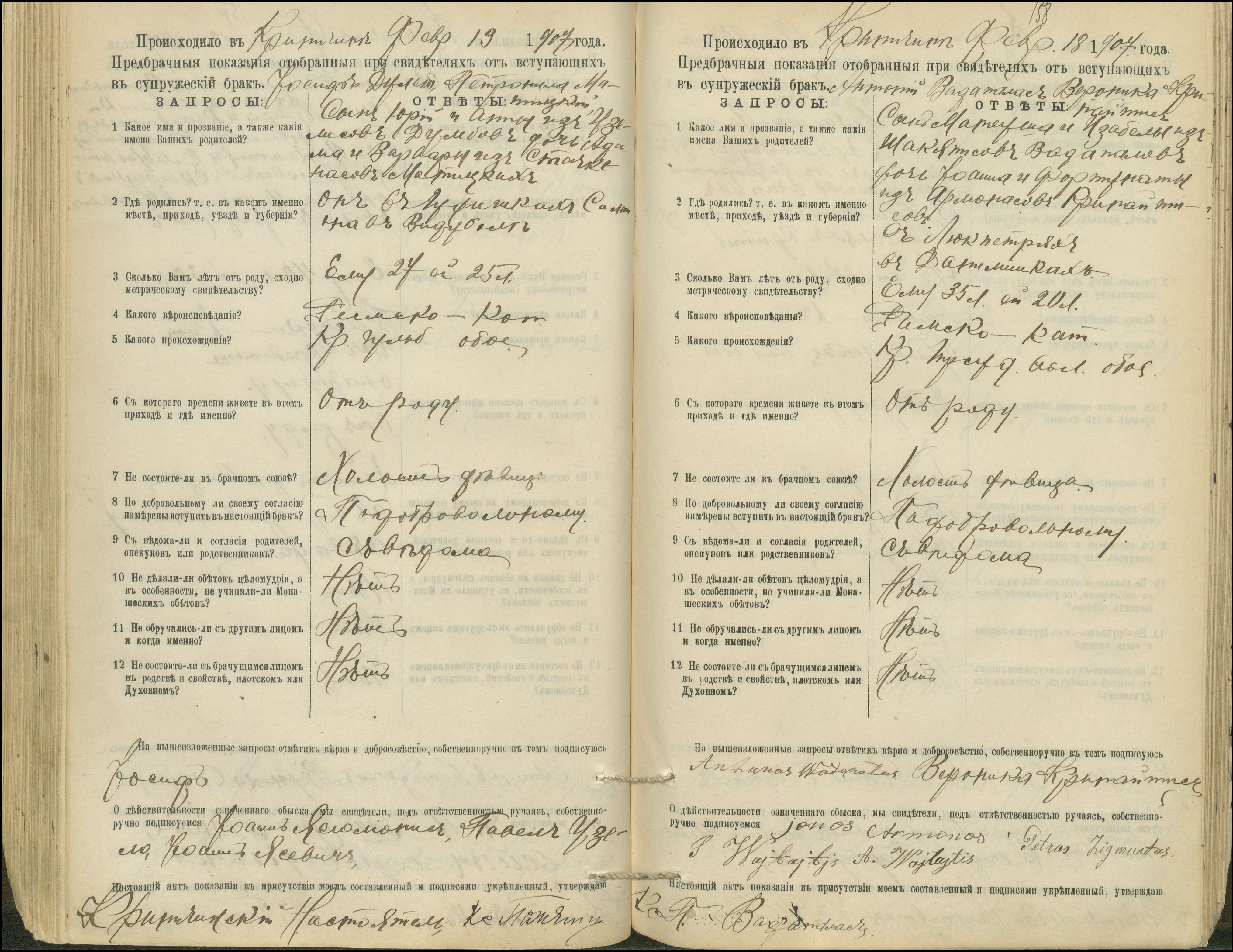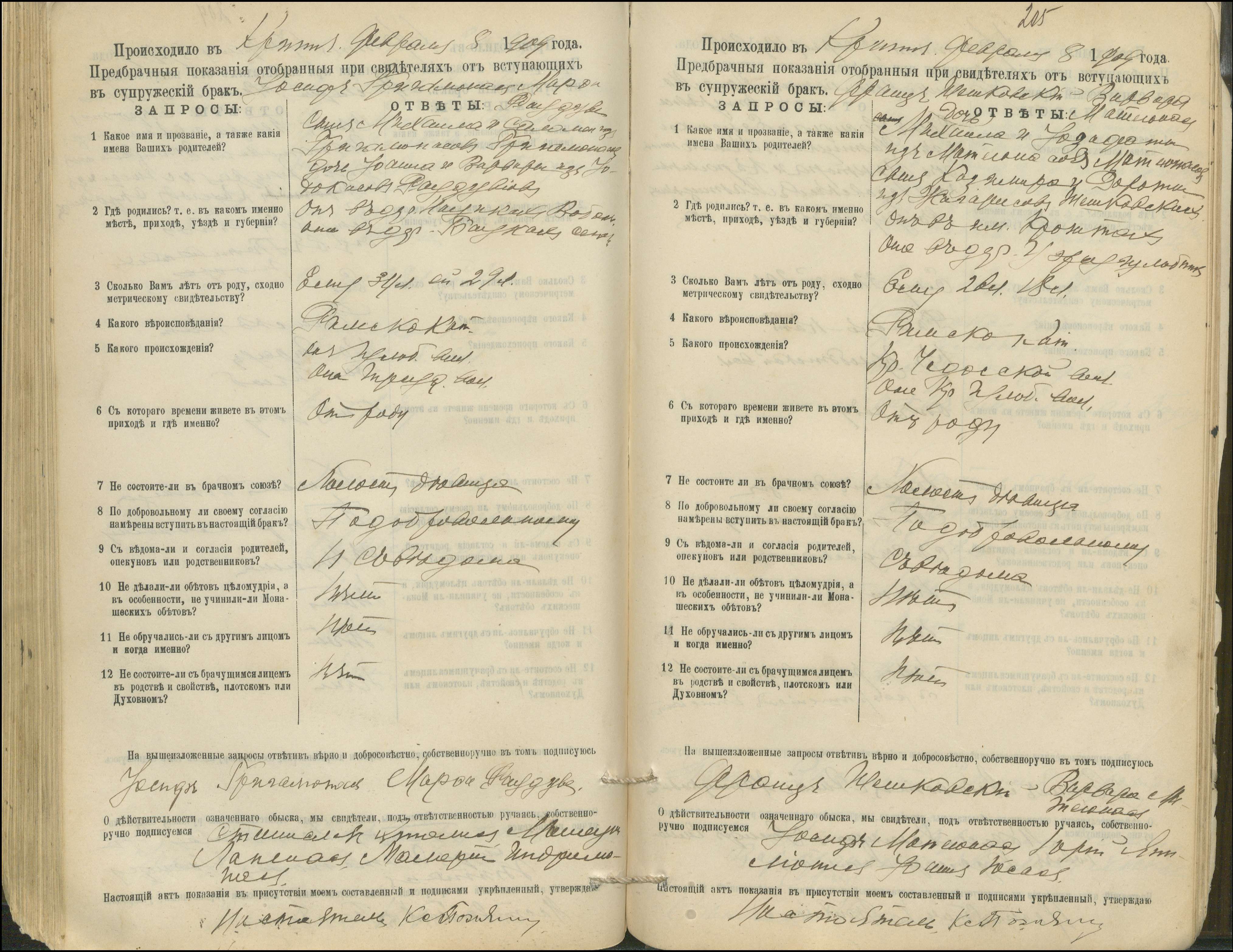 Krinčino Romos katalikų parapijos bažnyčios 1900–1911 metų priešjungtuvinės apklausos knyga