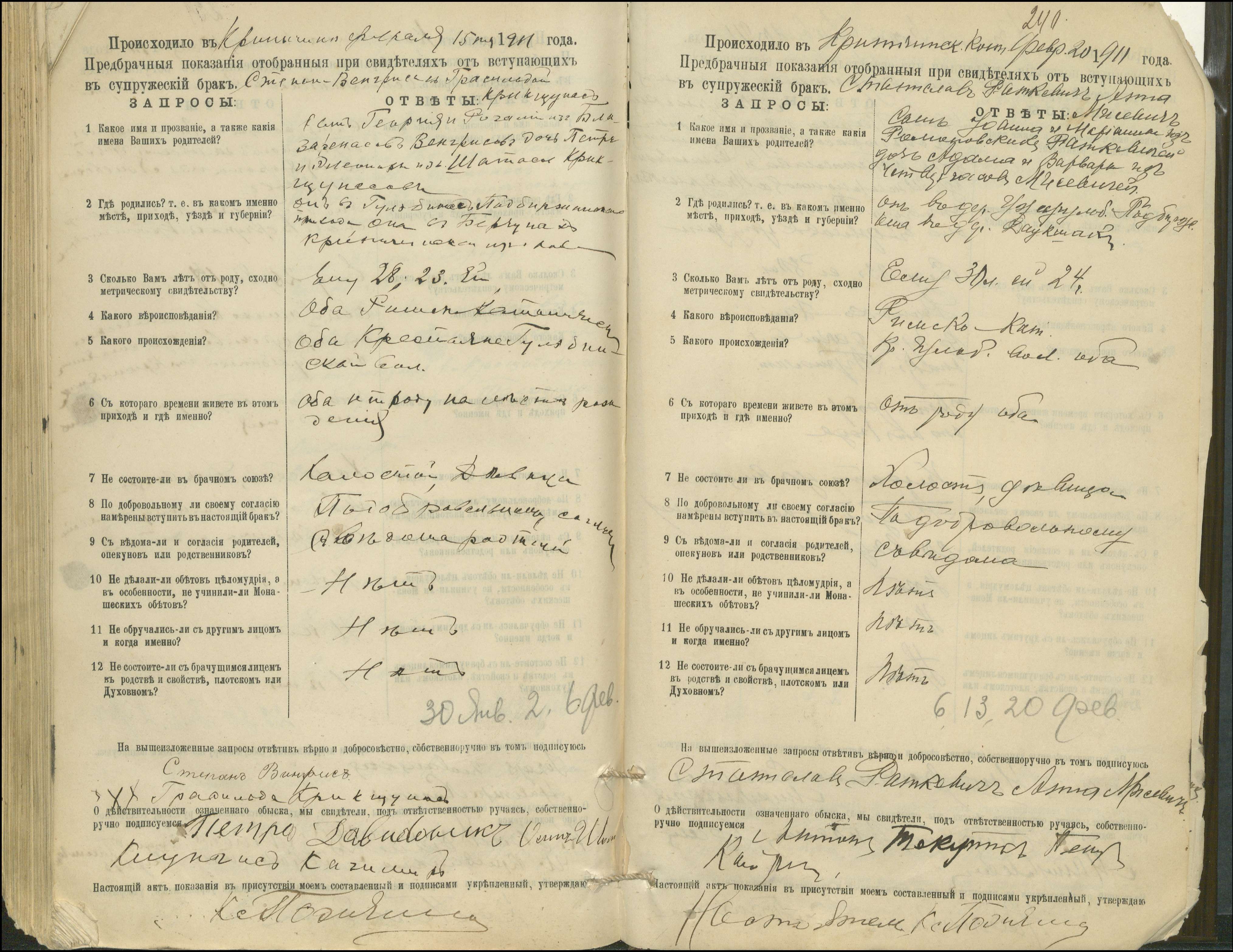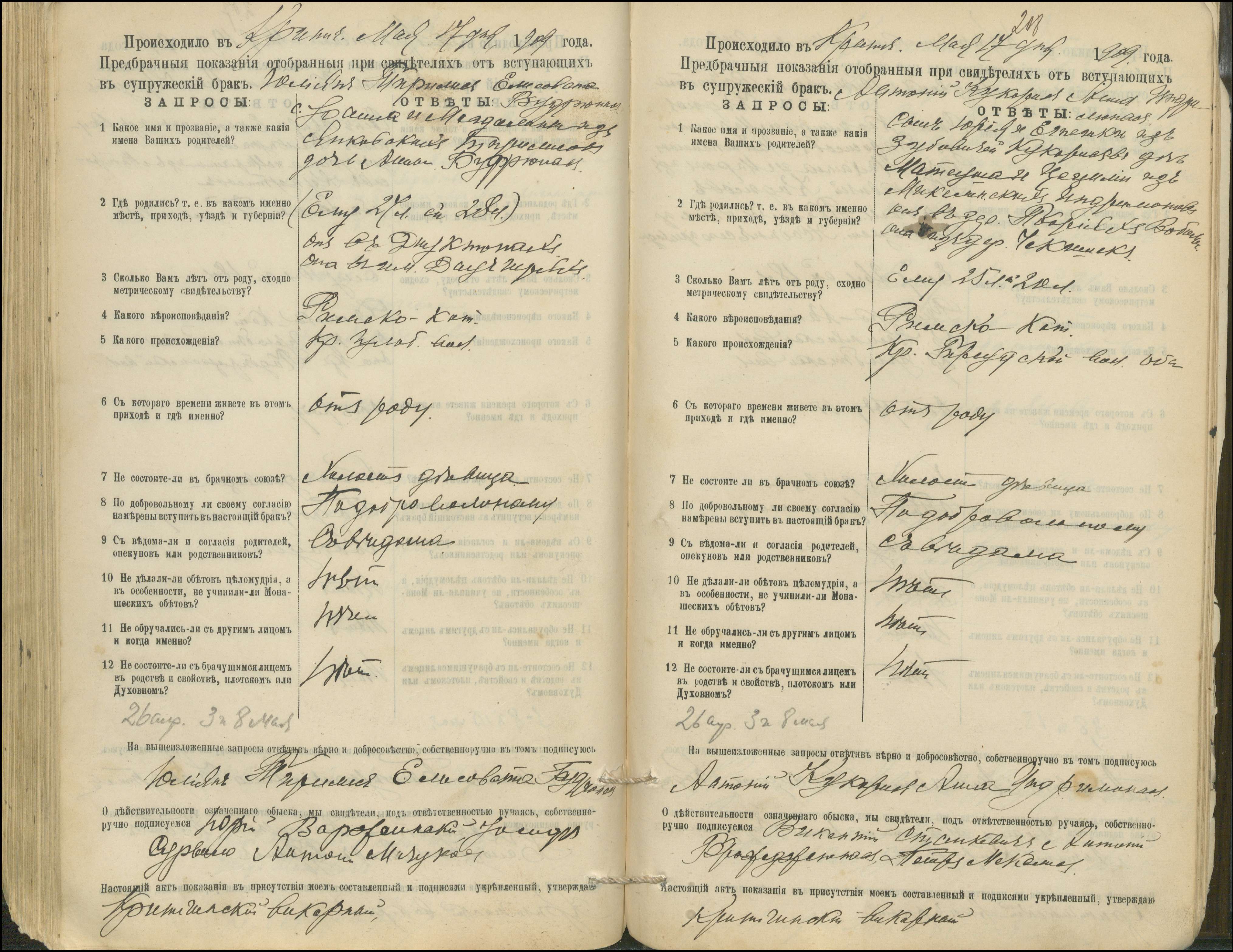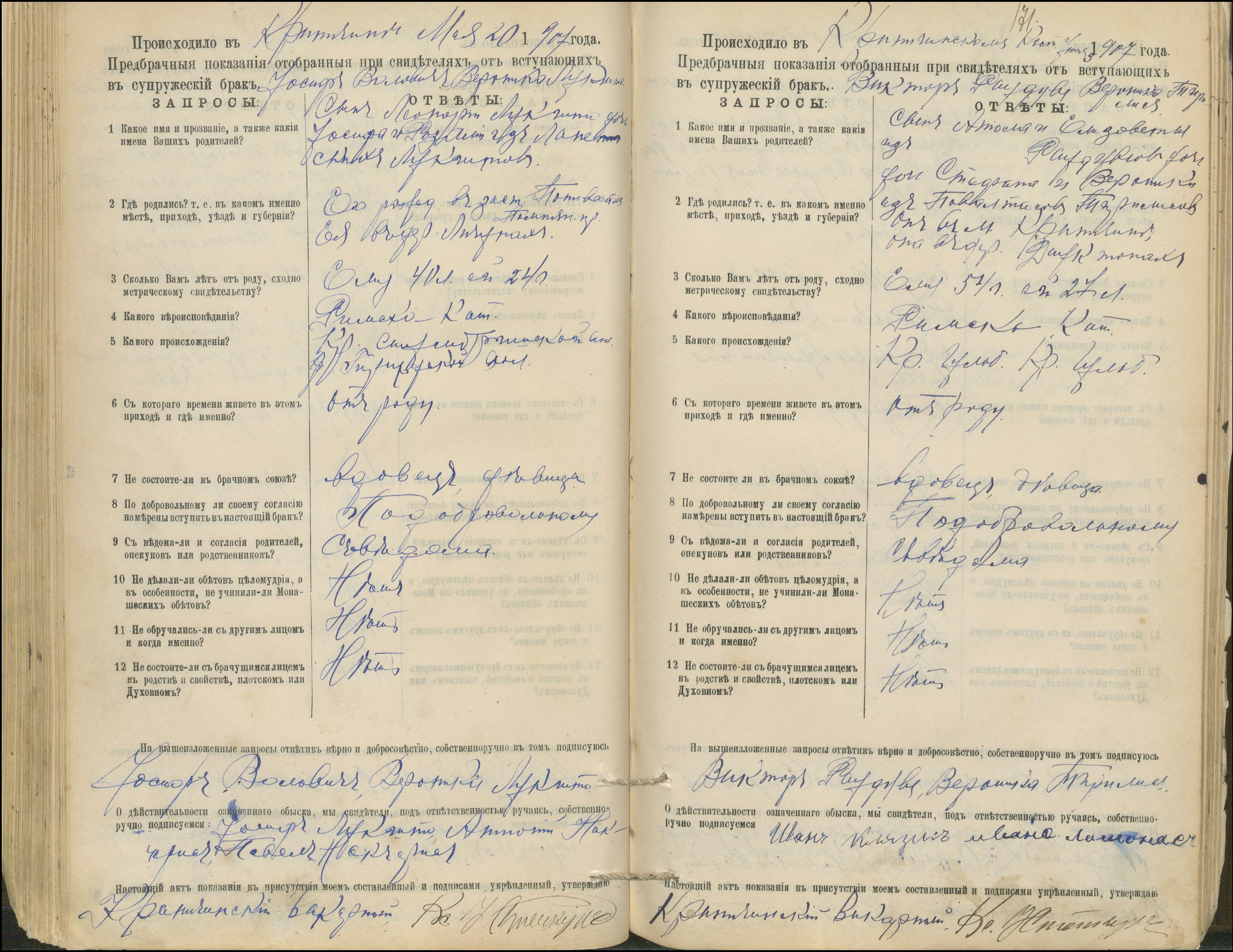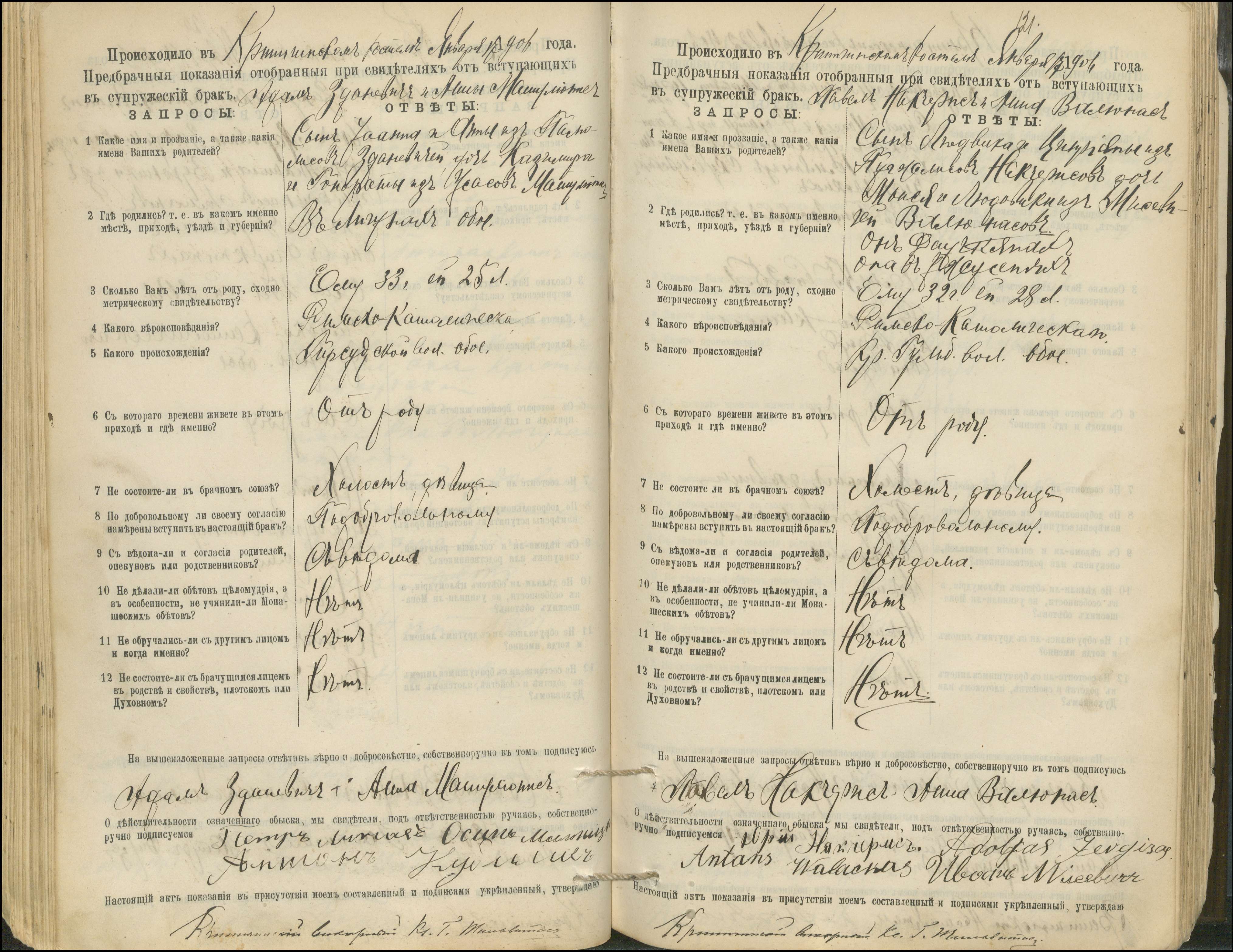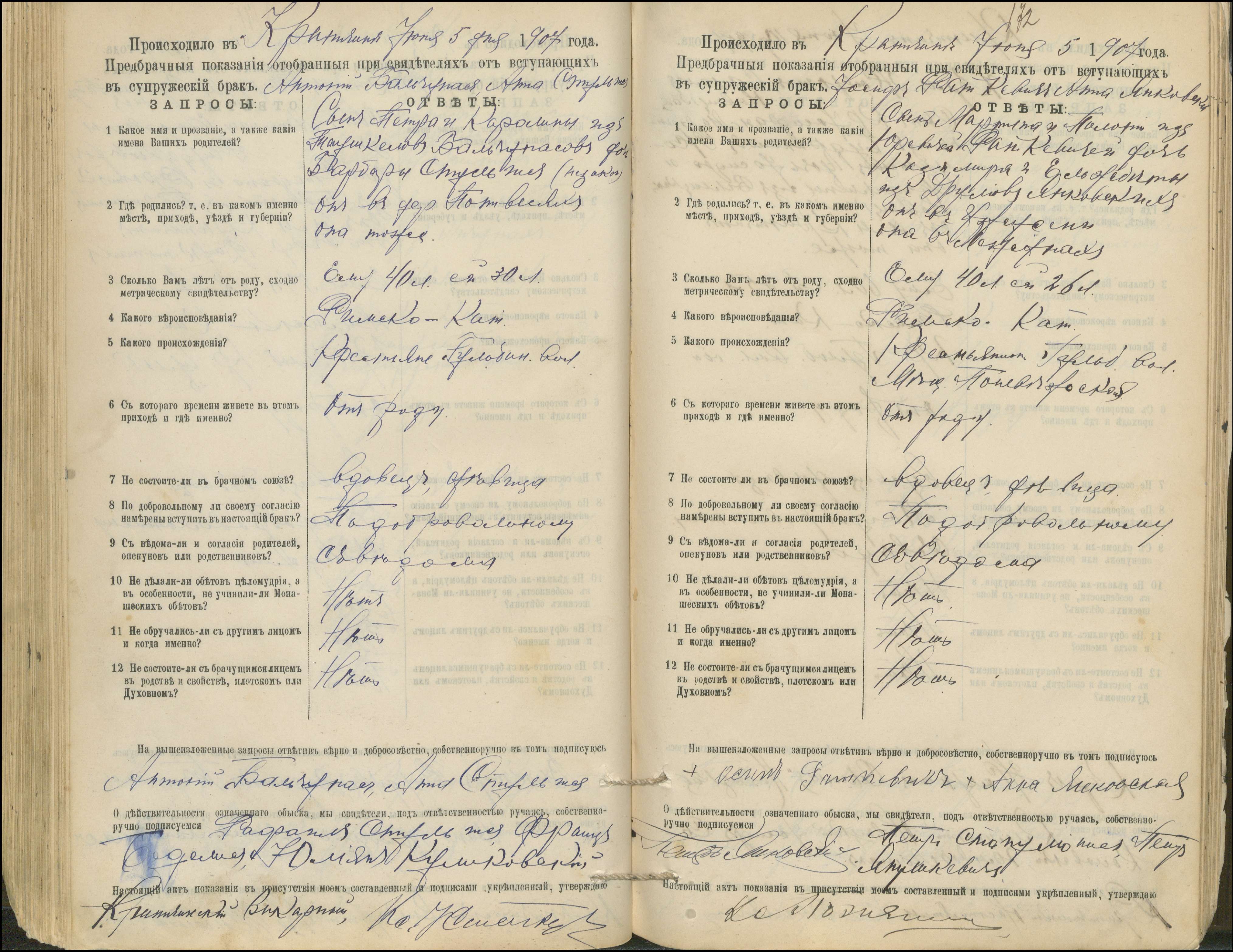 Krinčino Romos katalikų parapijos bažnyčios 1900–1911 metų priešjungtuvinės apklausos knyga