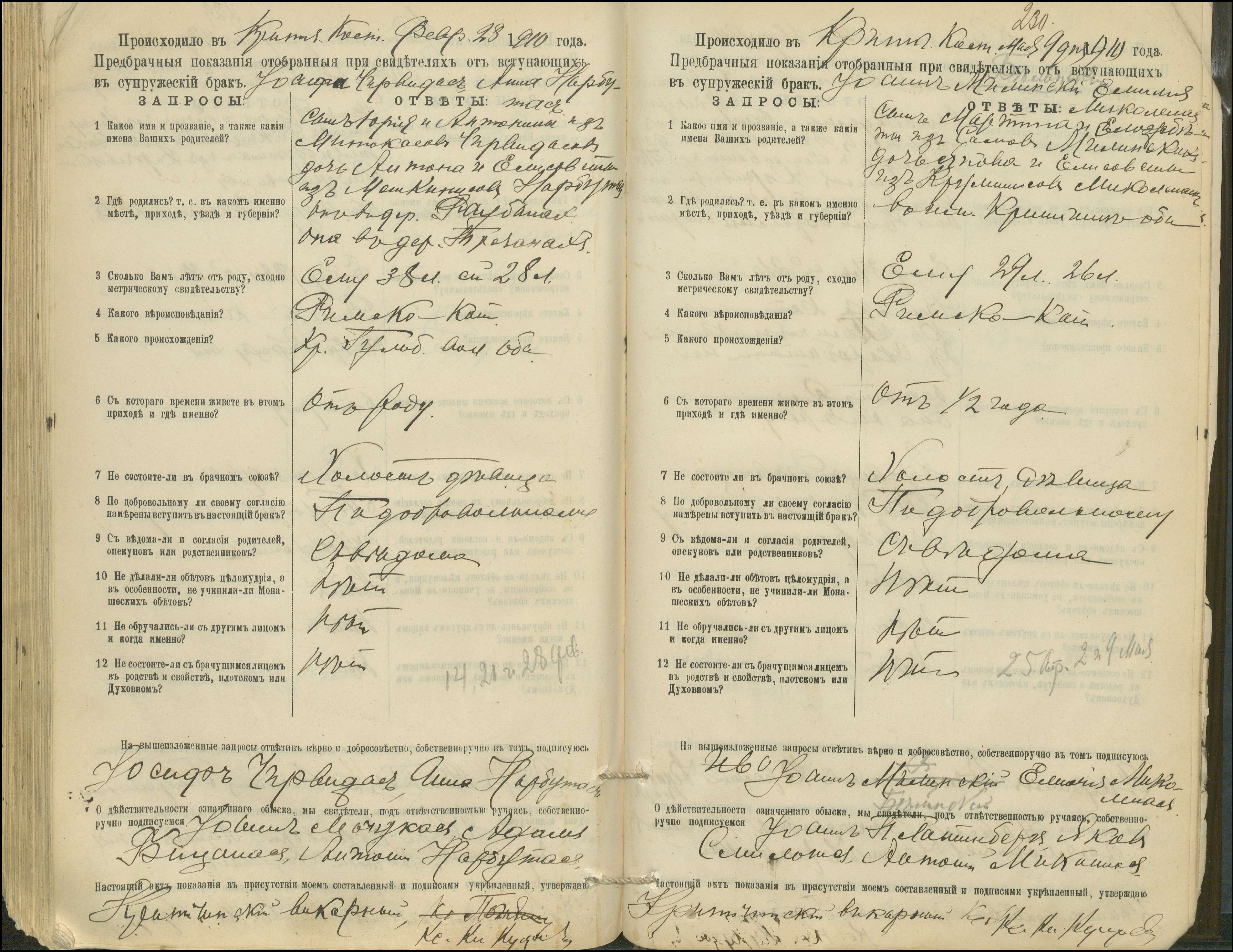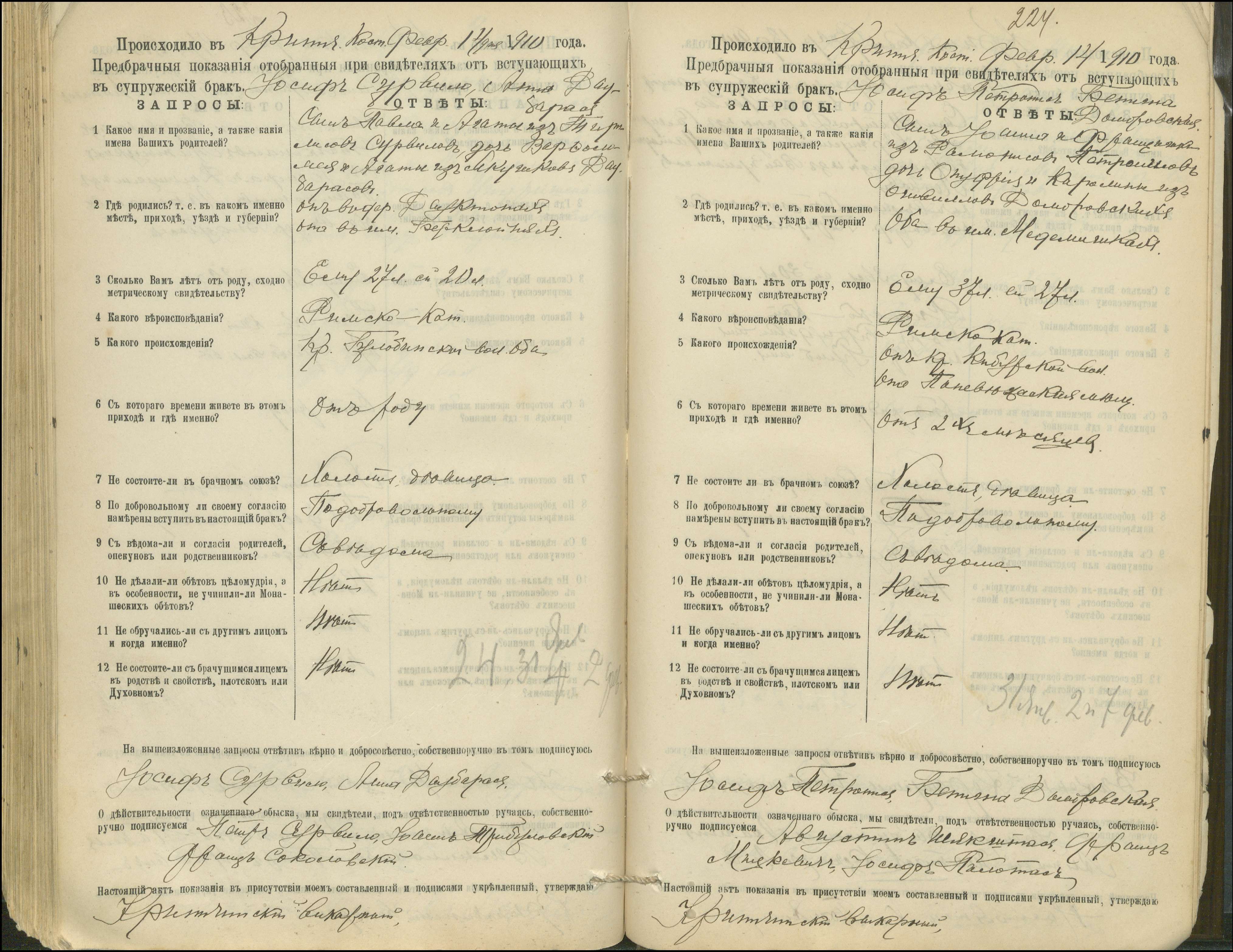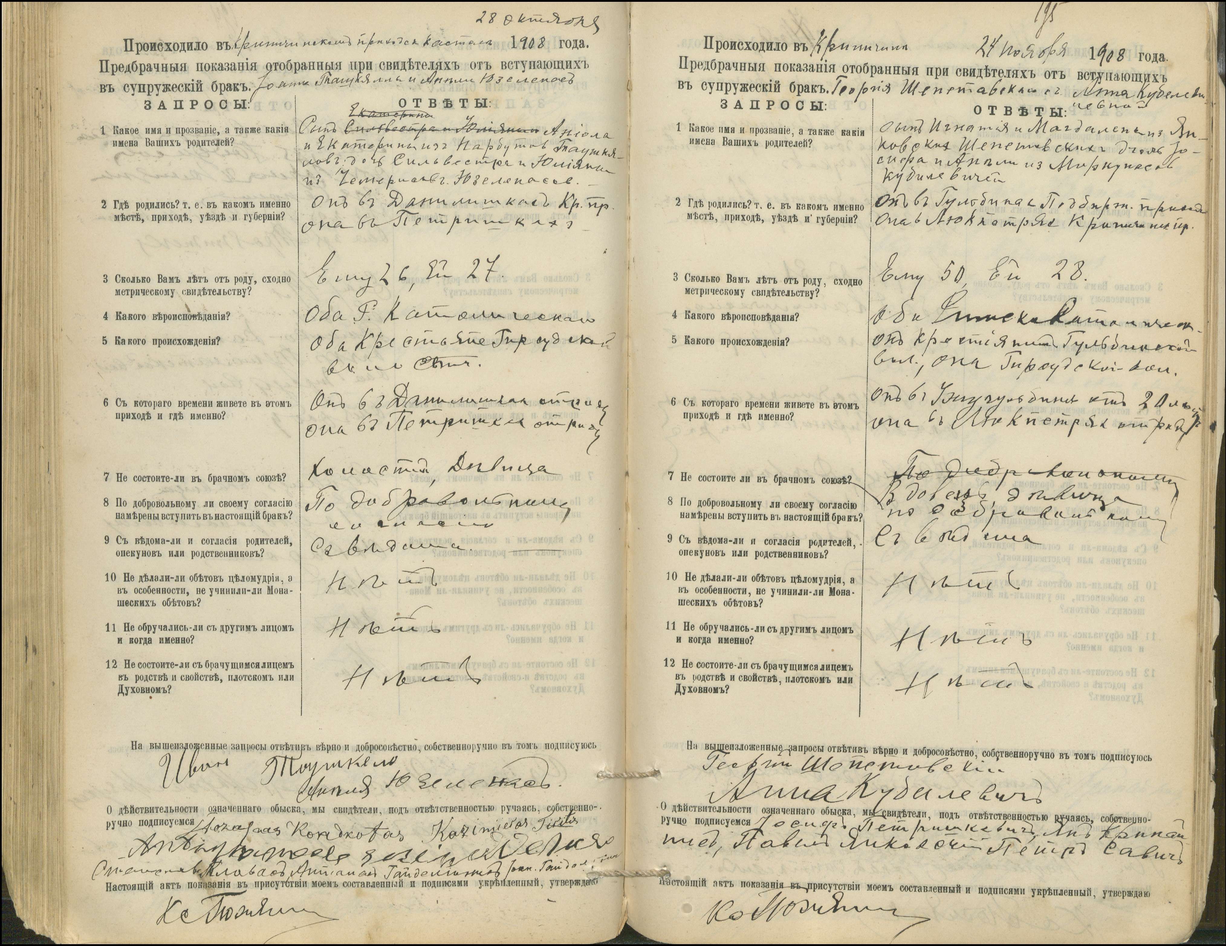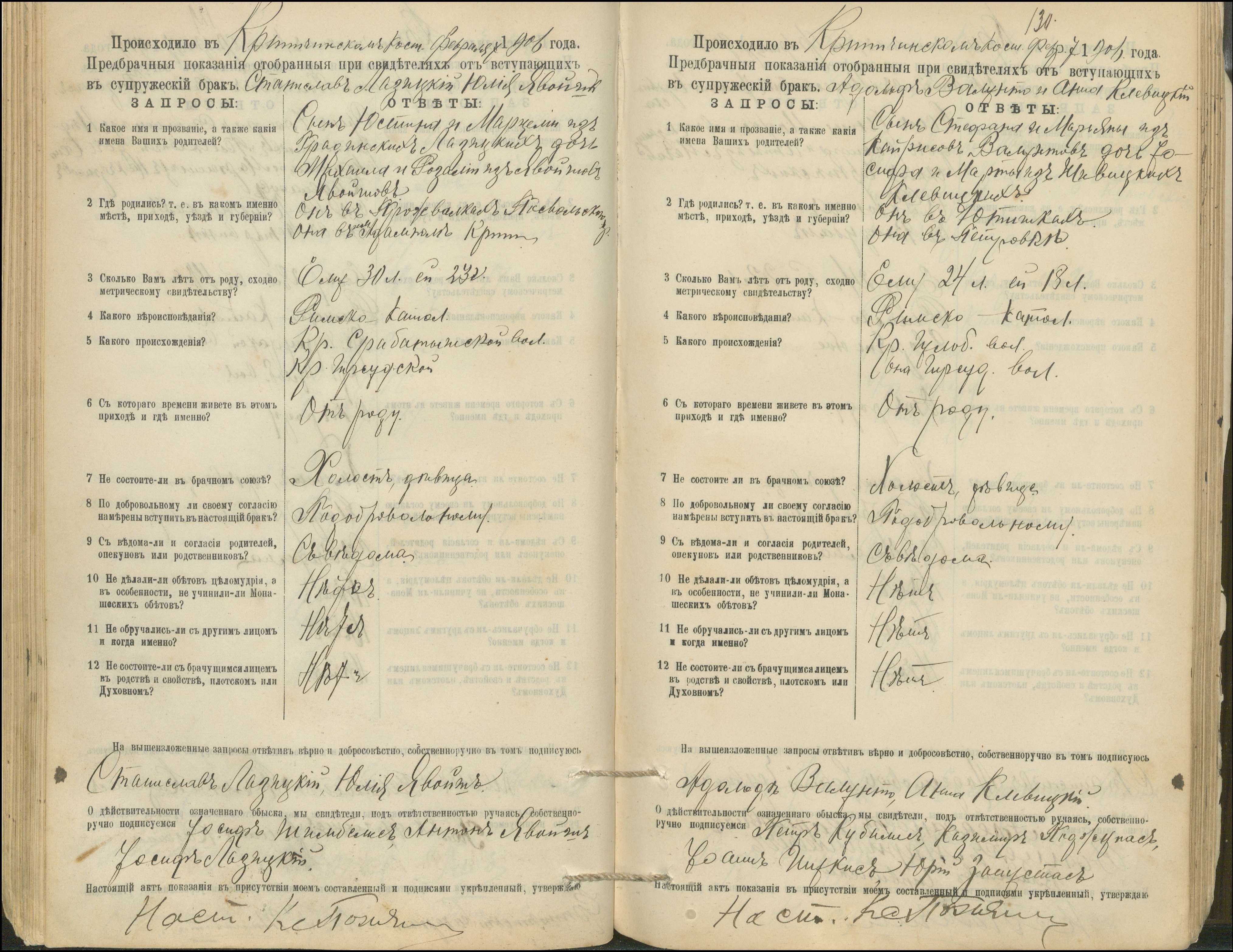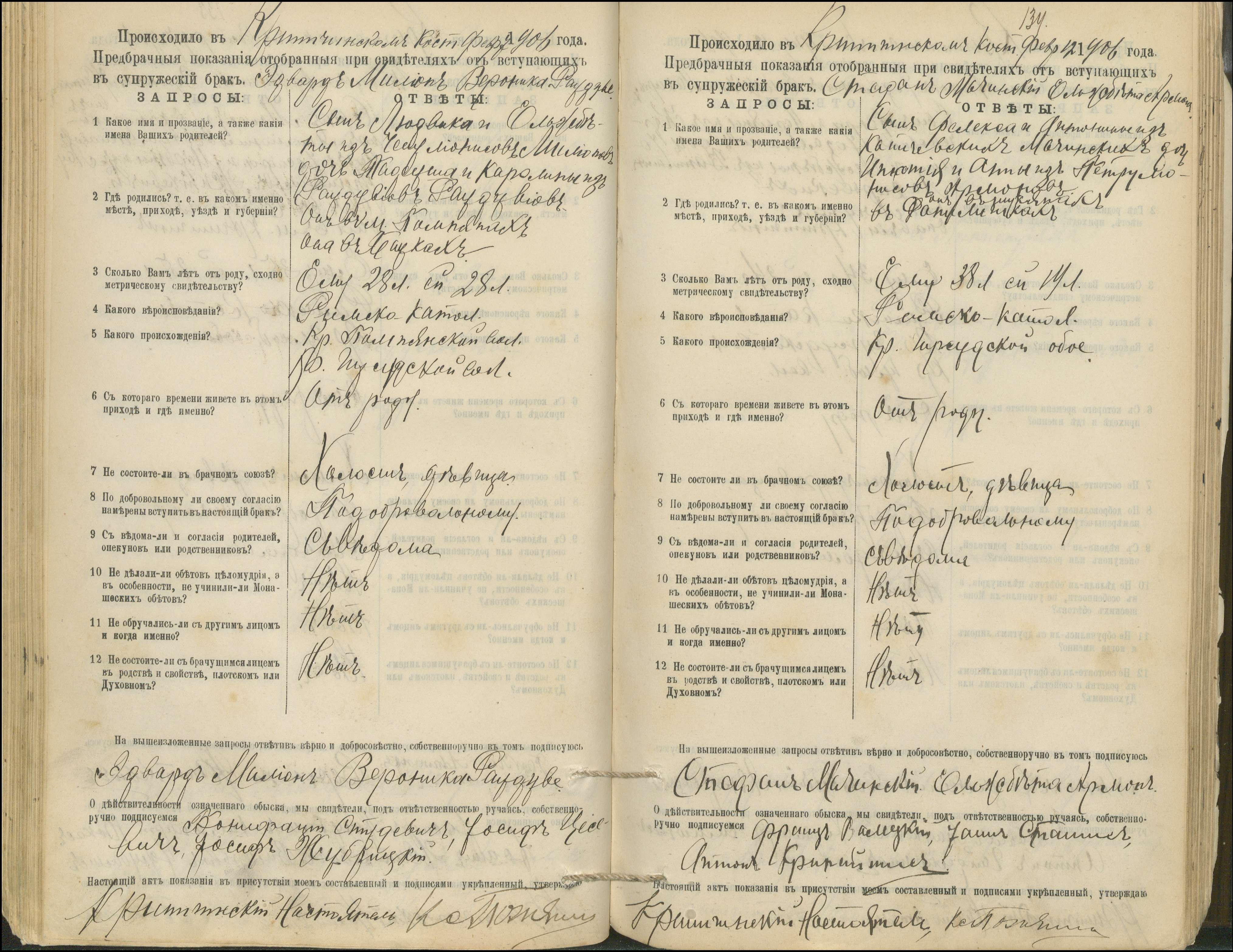 Krinčino Romos katalikų parapijos bažnyčios 1900–1911 metų priešjungtuvinės apklausos knyga