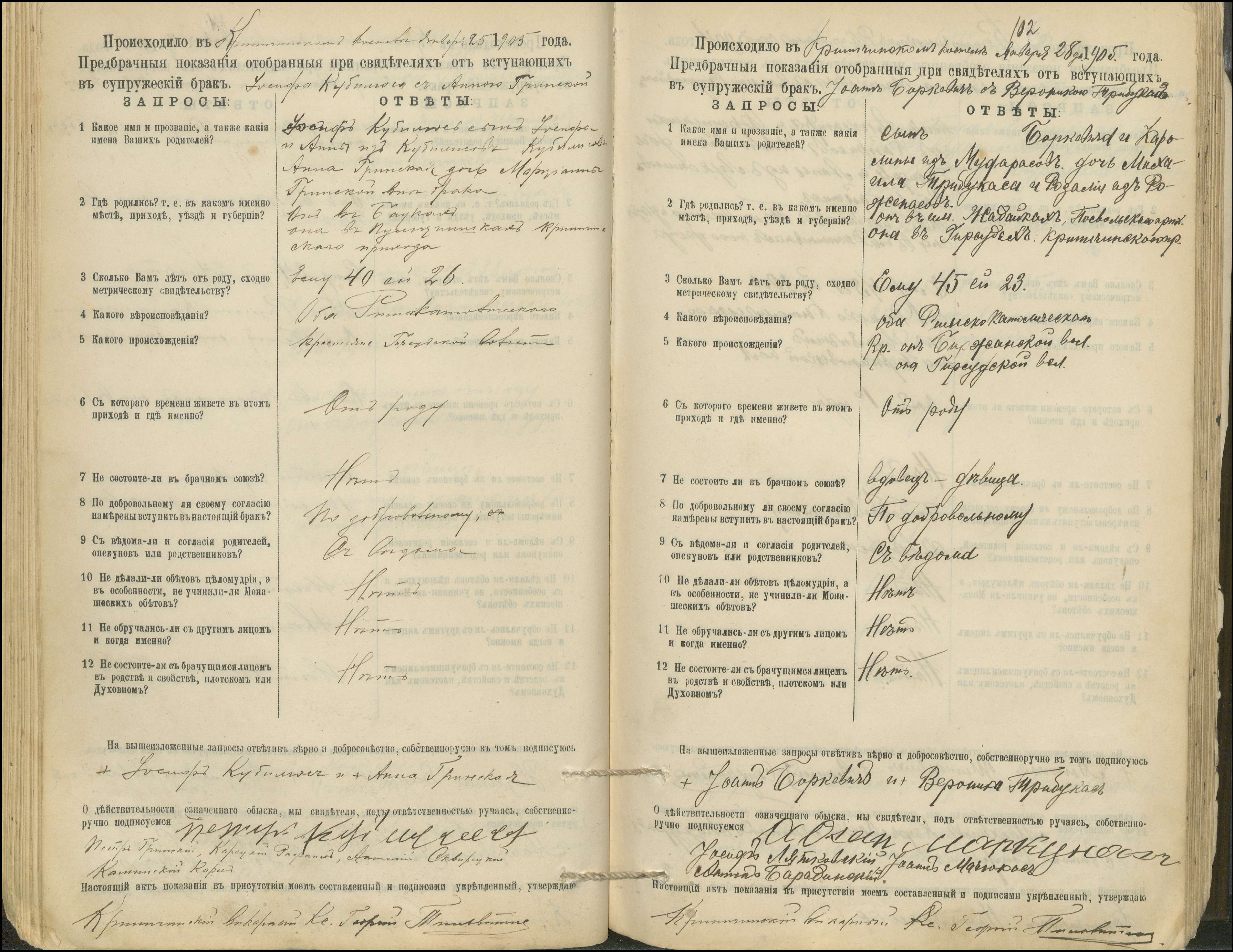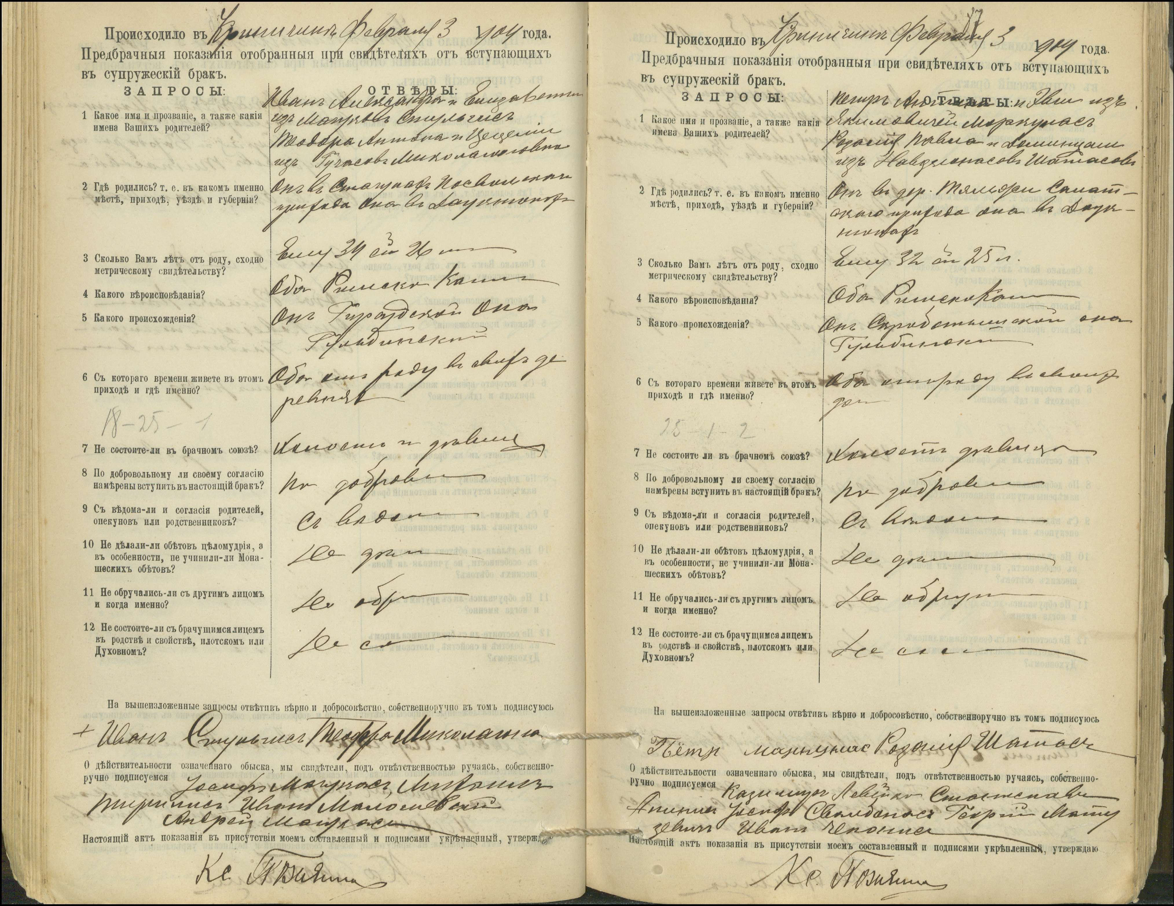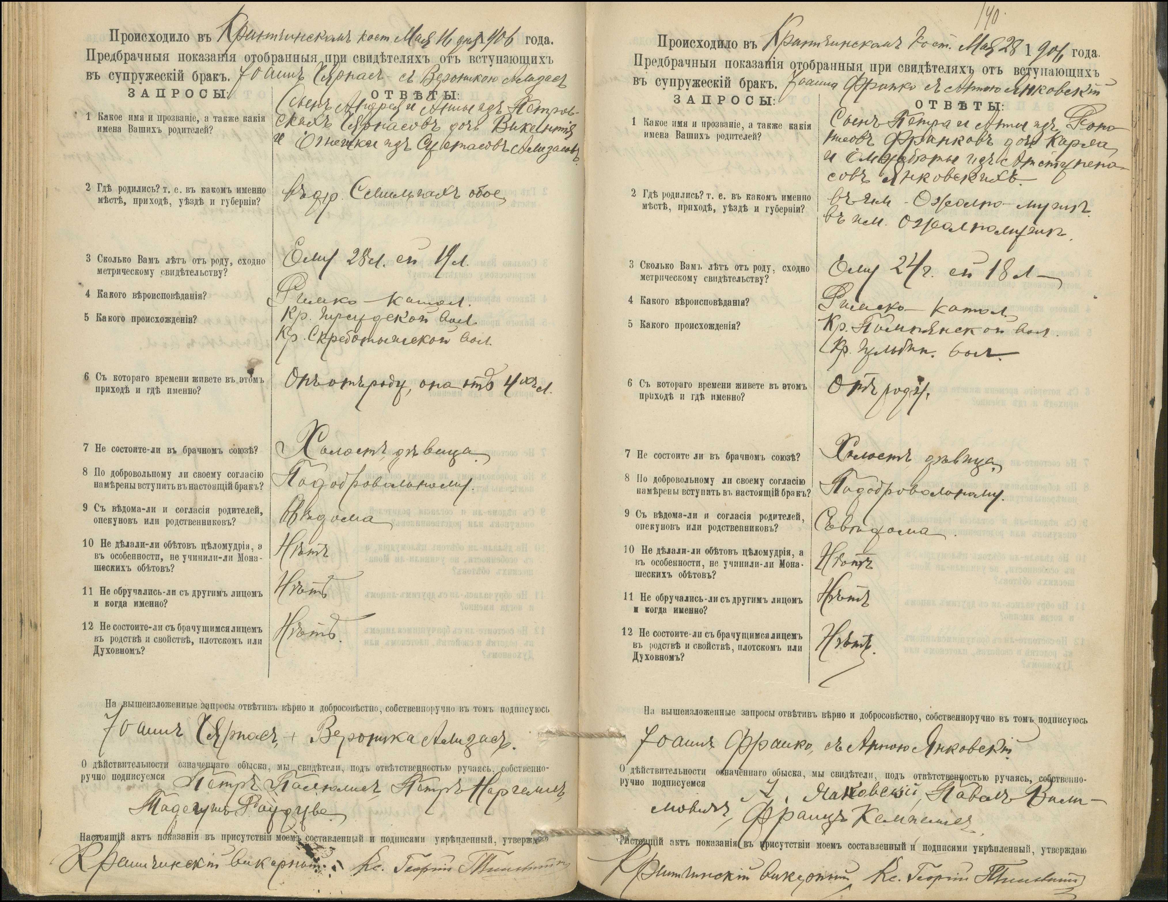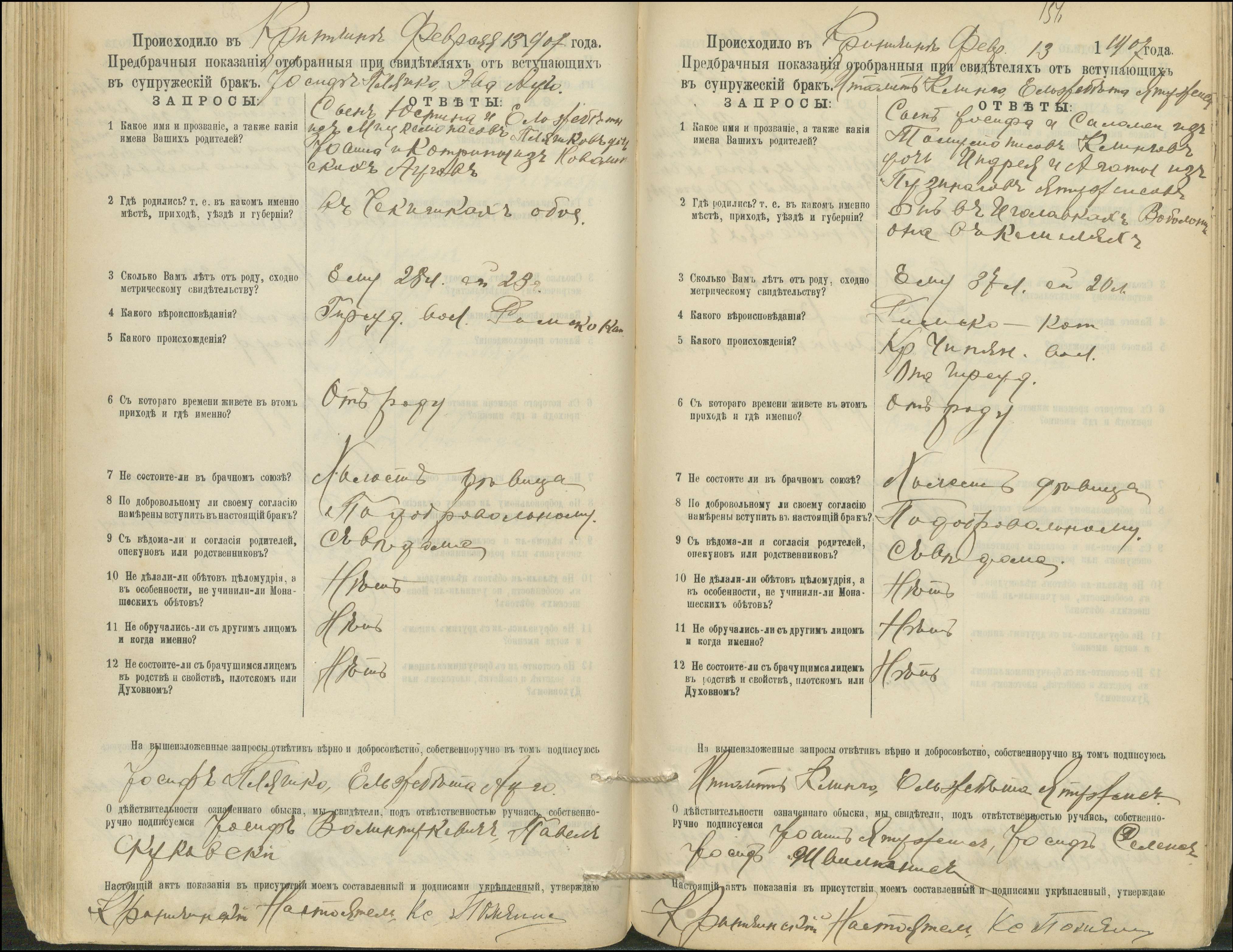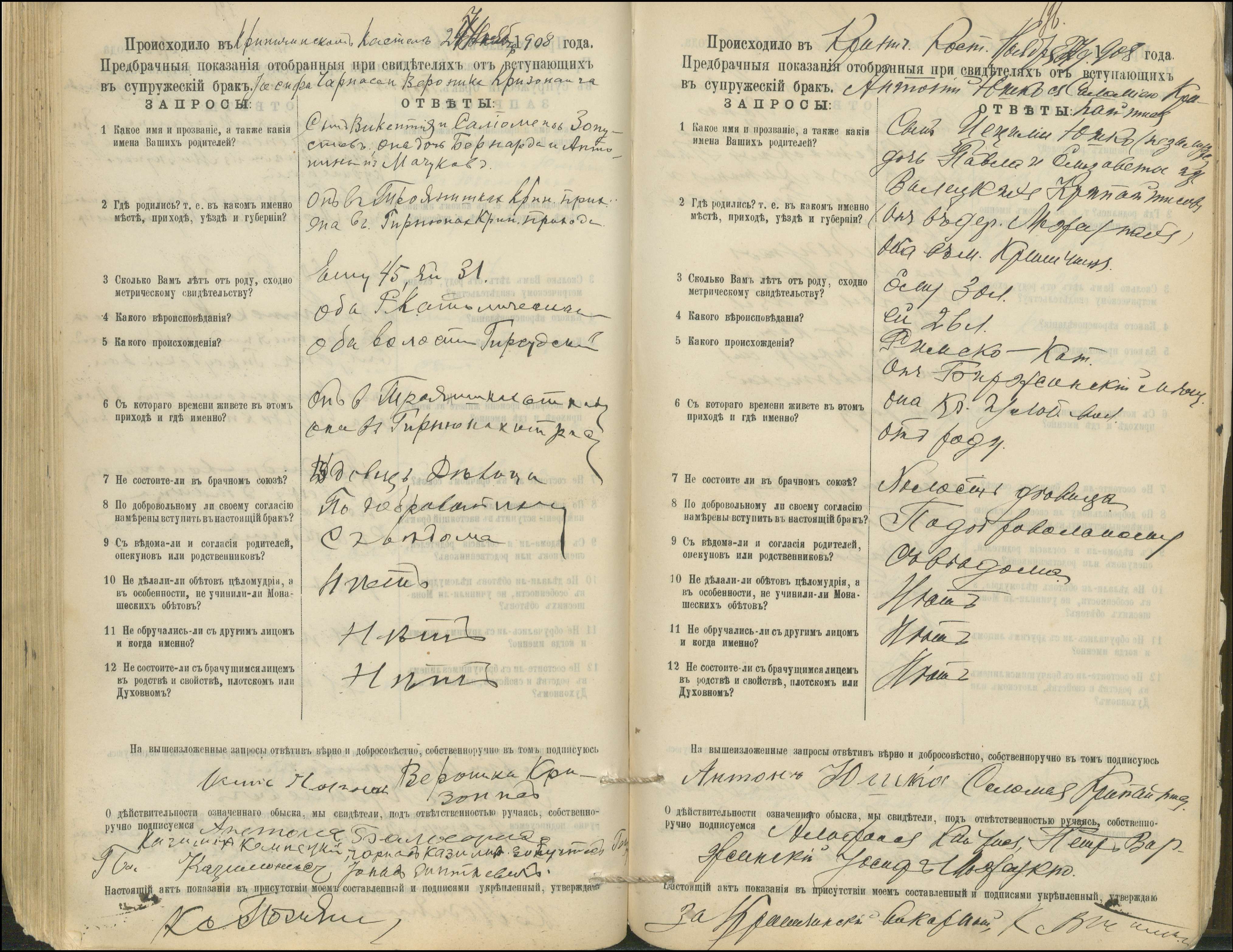 Krinčino Romos katalikų parapijos bažnyčios 1900–1911 metų priešjungtuvinės apklausos knyga