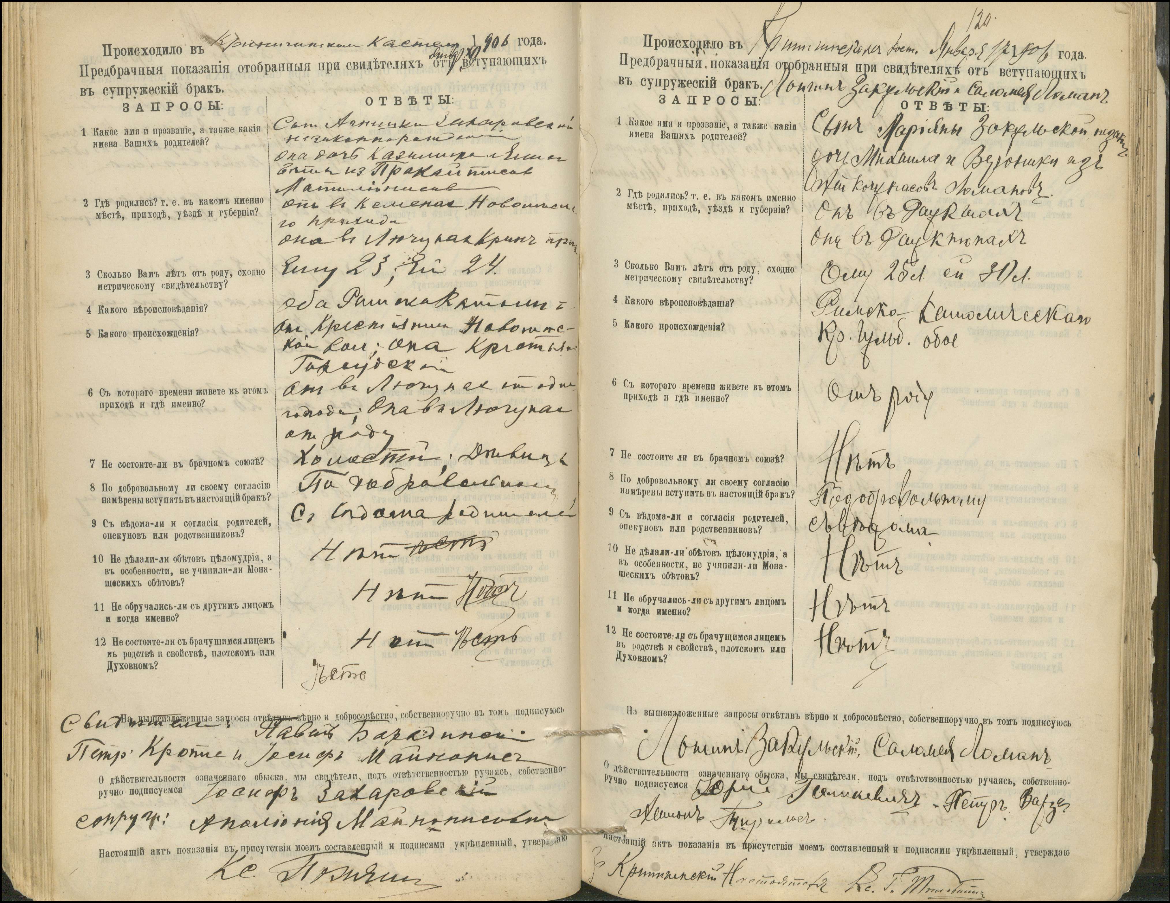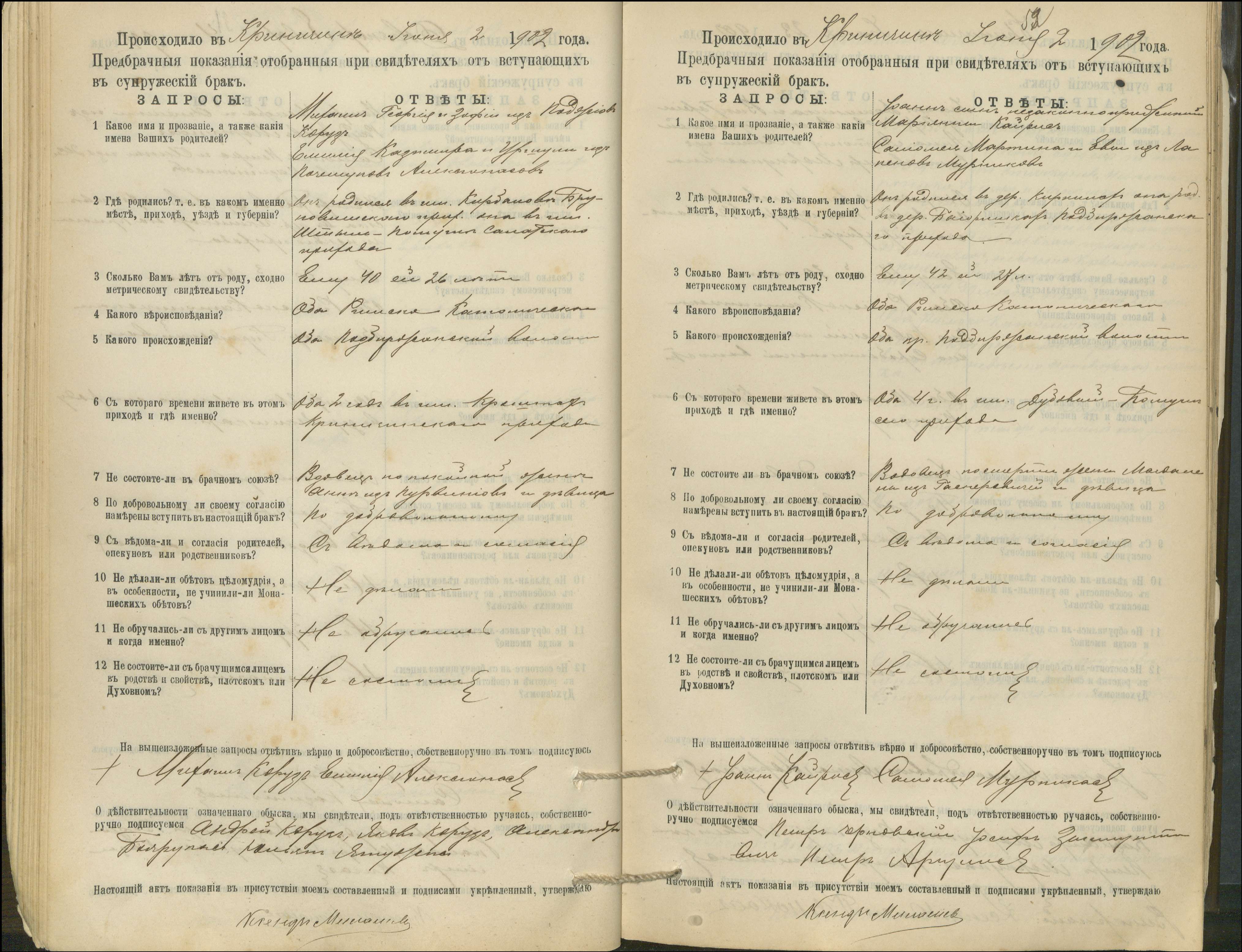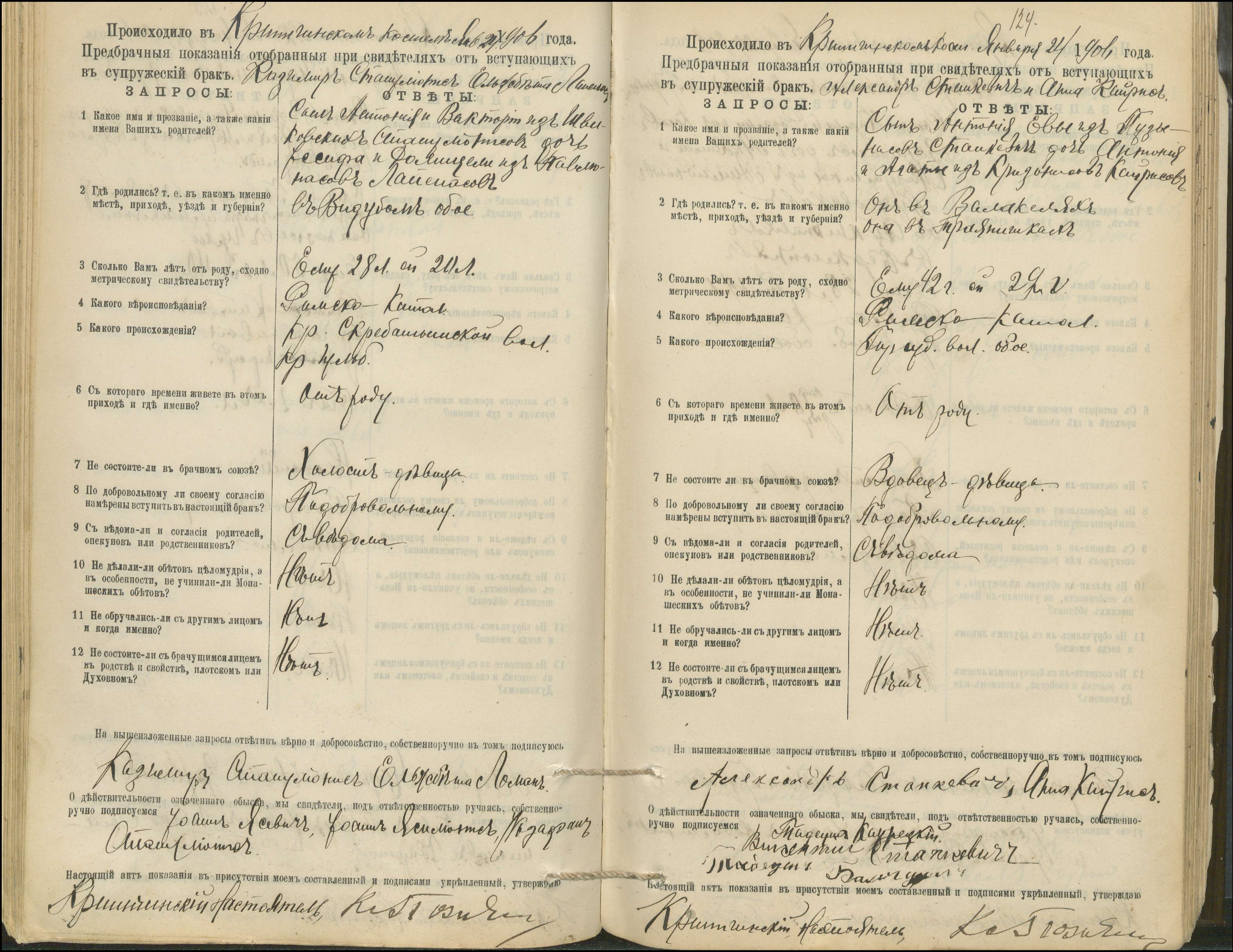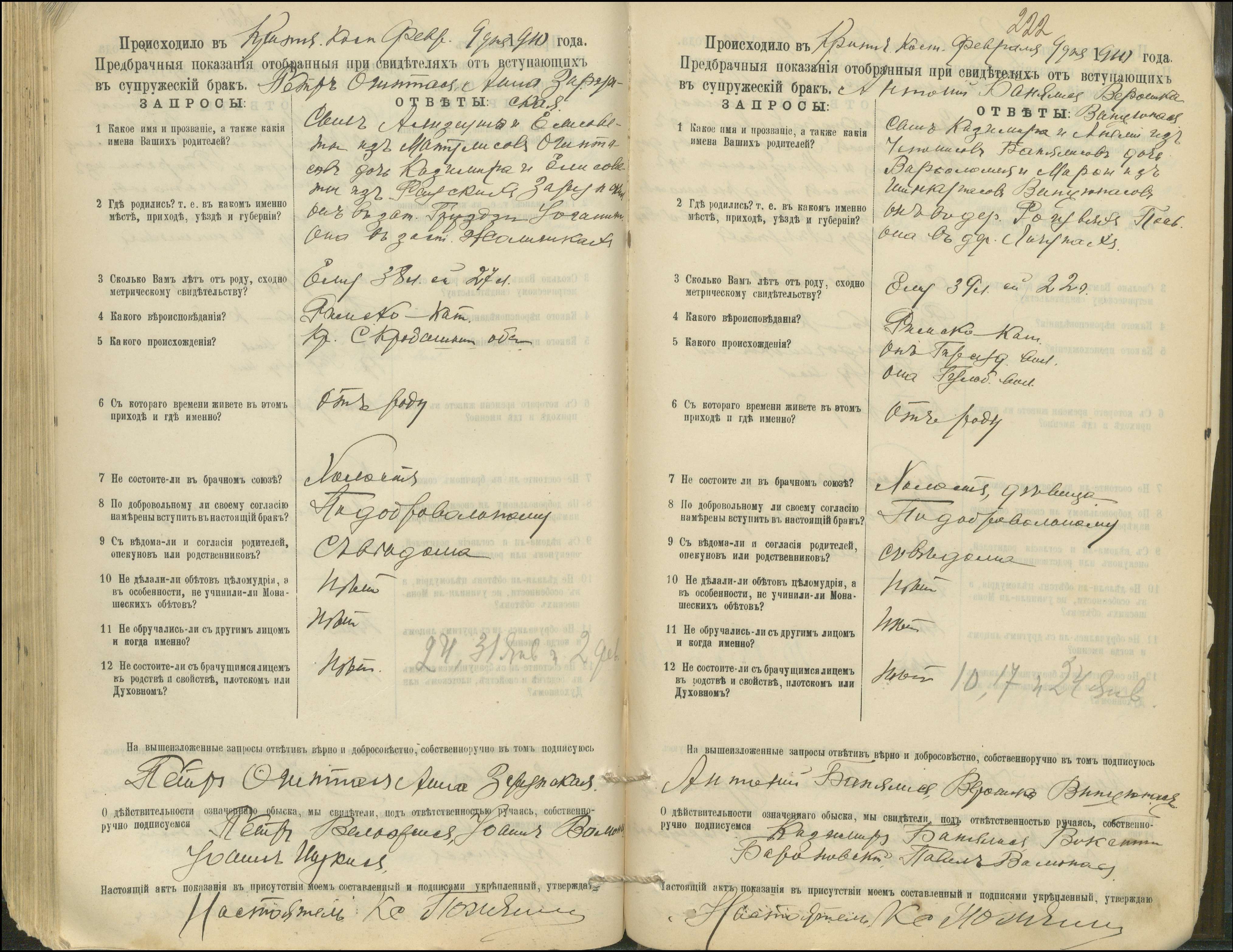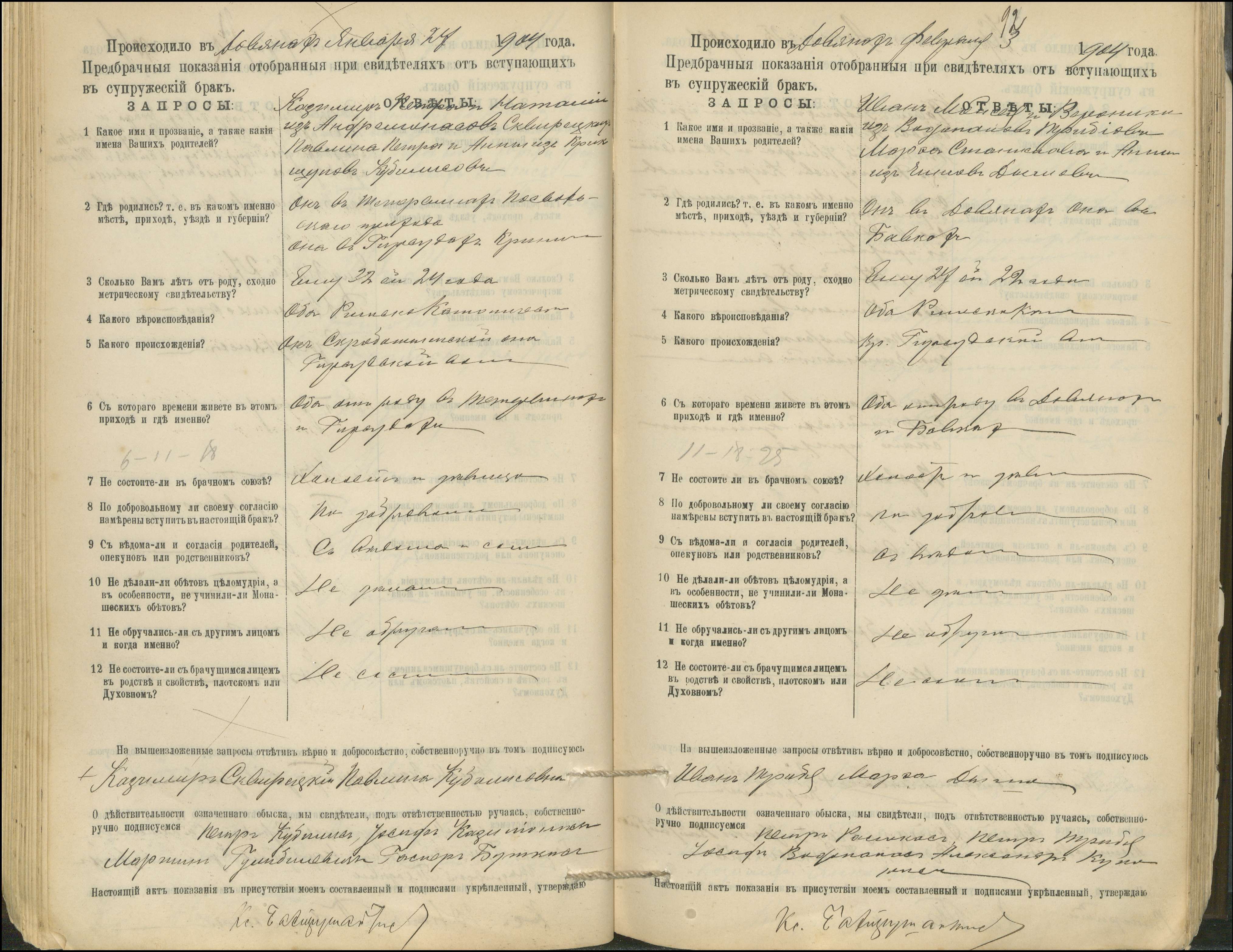 Krinčino Romos katalikų parapijos bažnyčios 1900–1911 metų priešjungtuvinės apklausos knyga