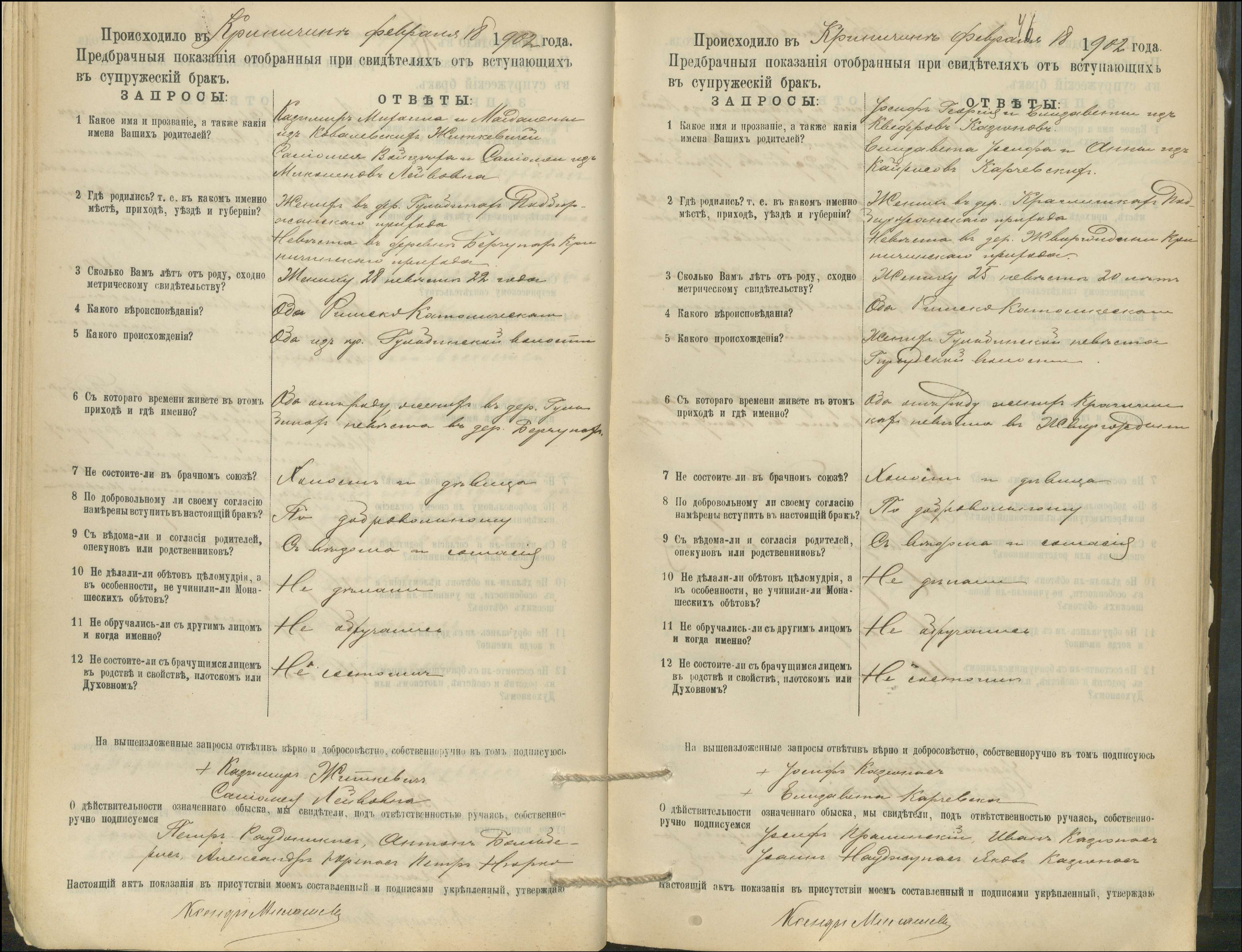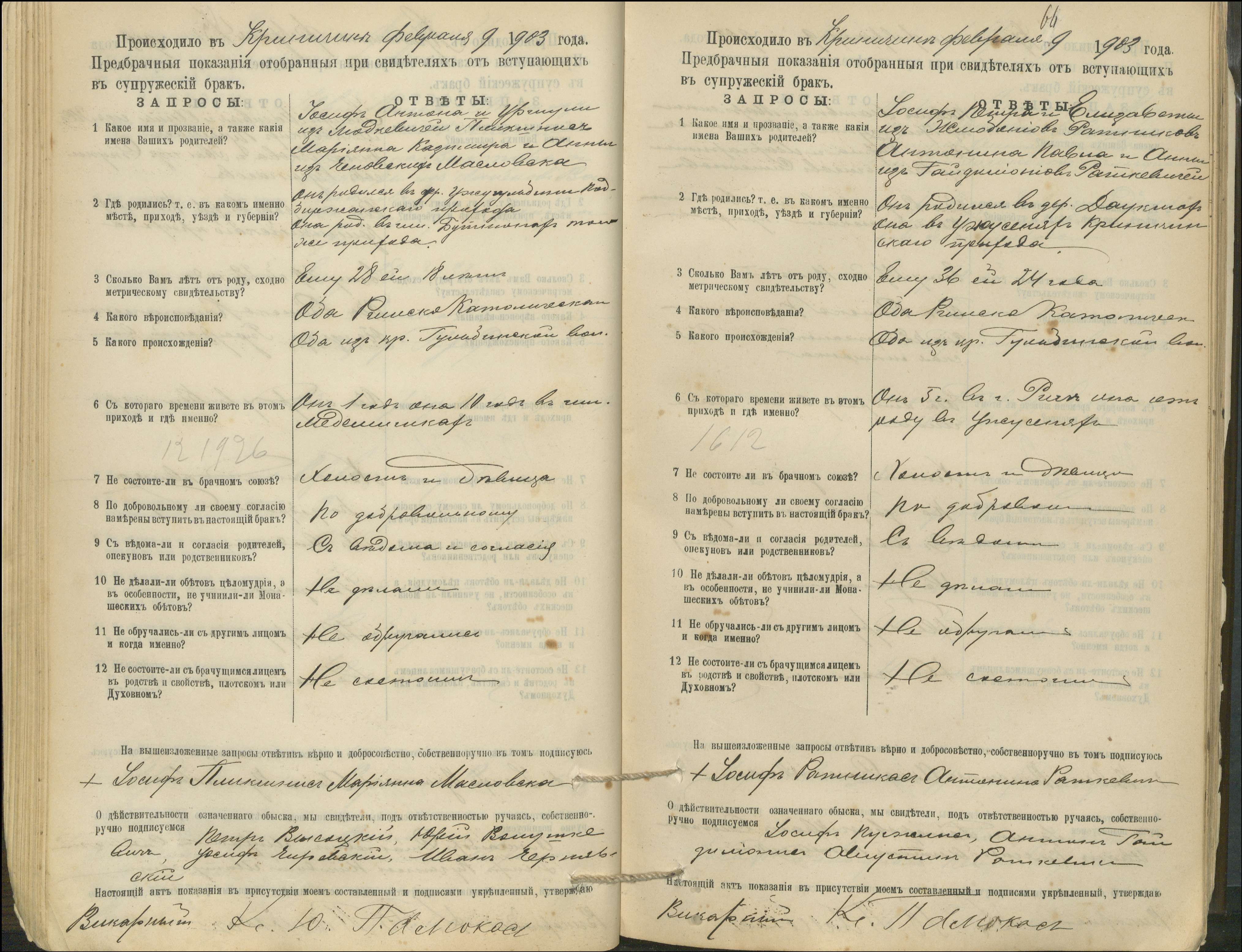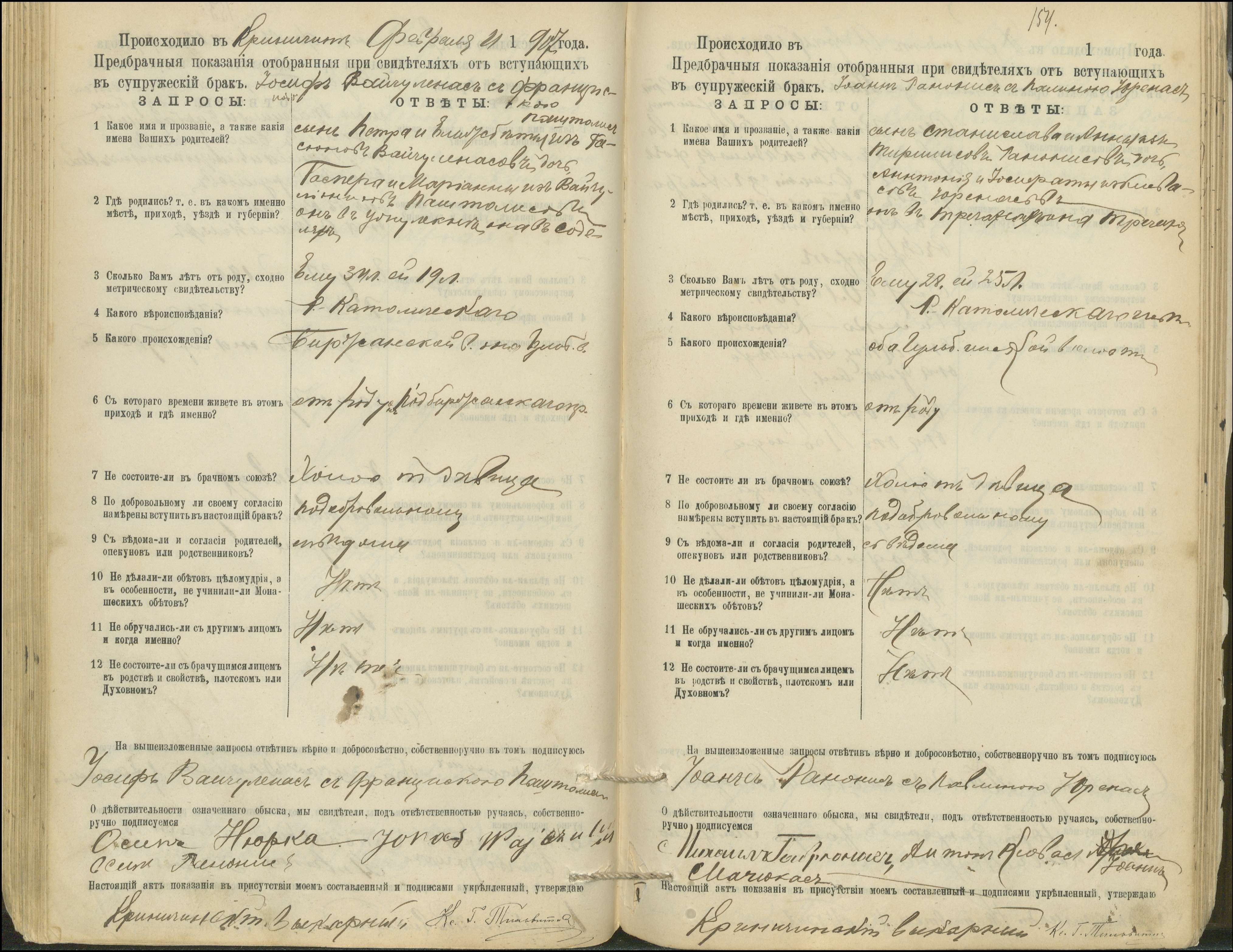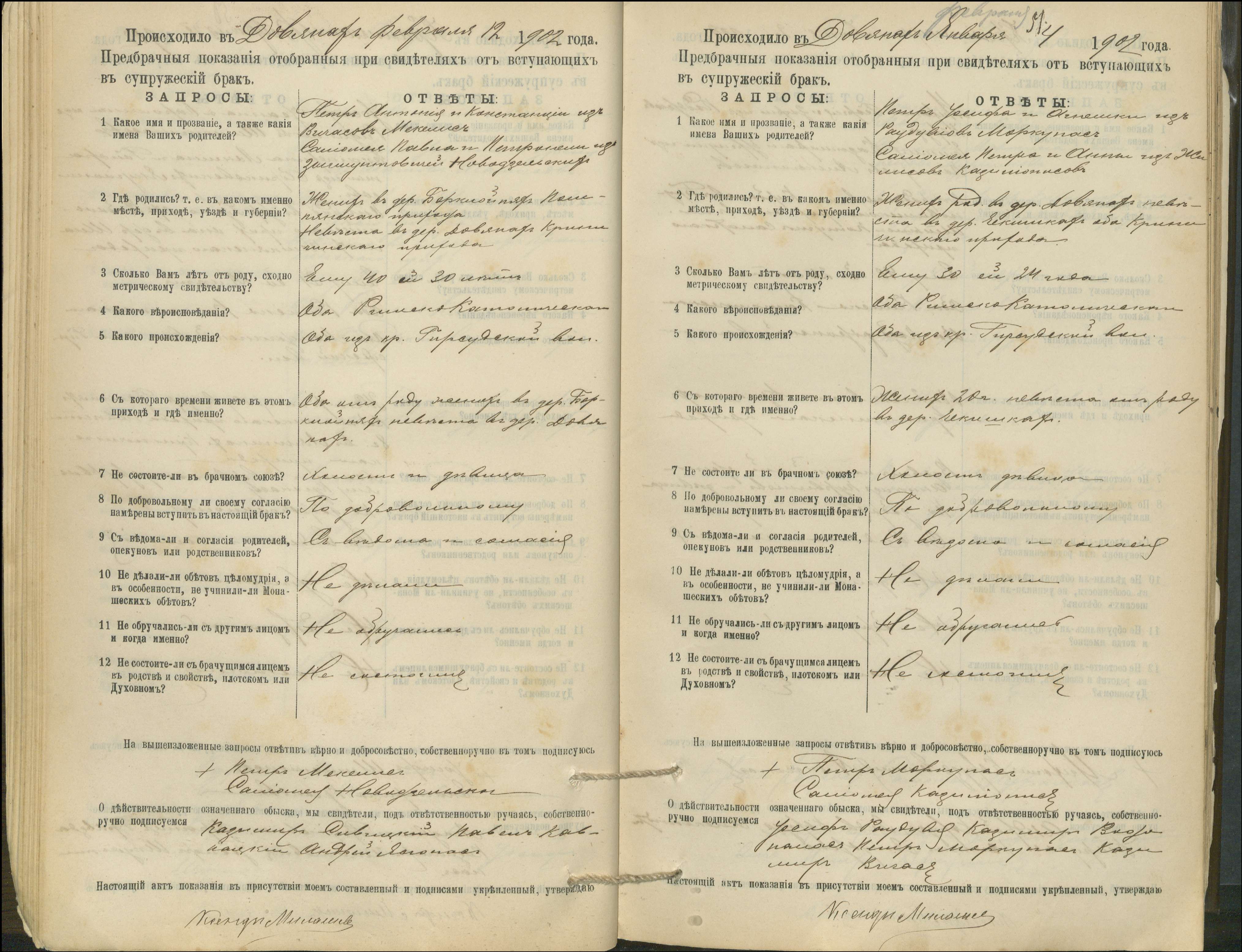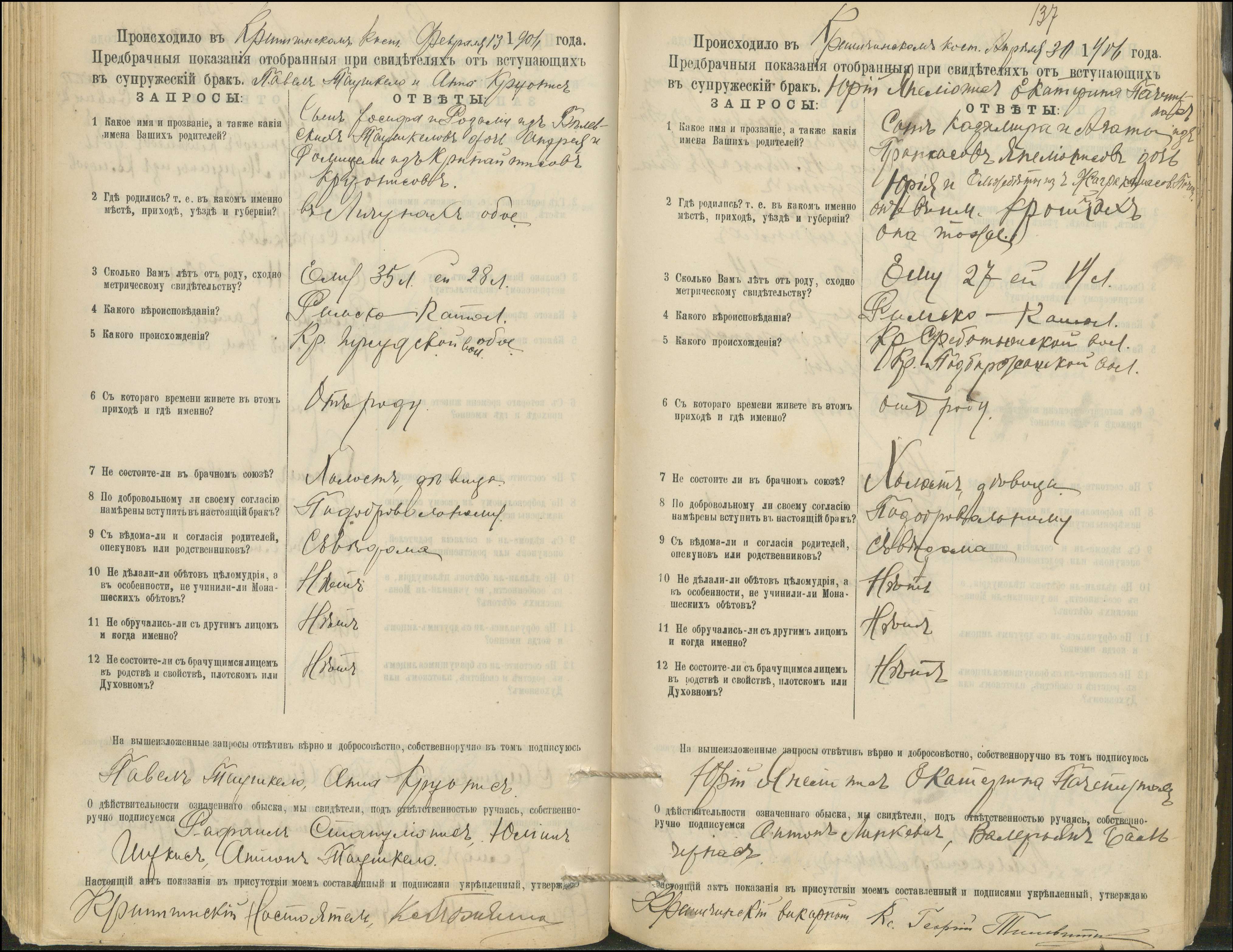 Krinčino Romos katalikų parapijos bažnyčios 1900–1911 metų priešjungtuvinės apklausos knyga