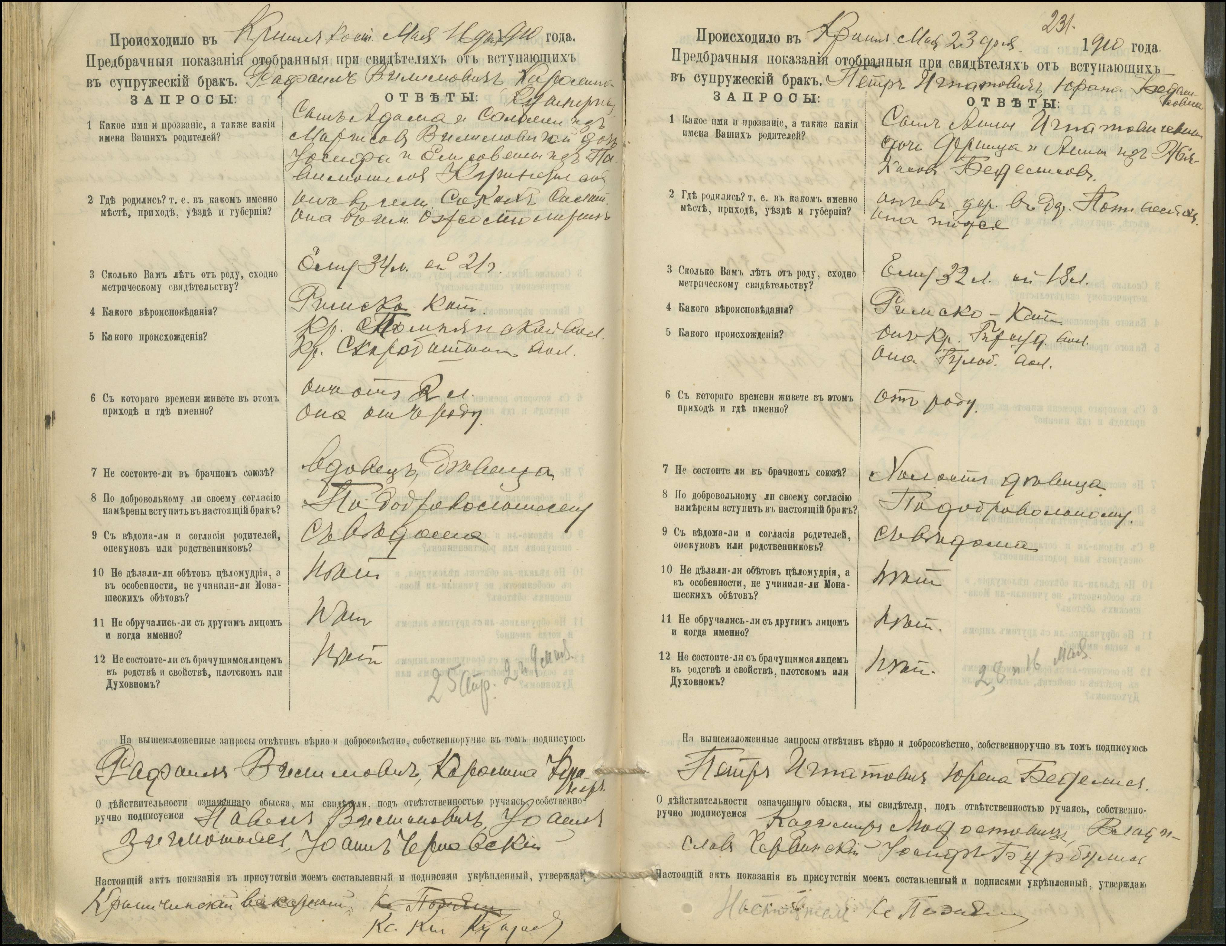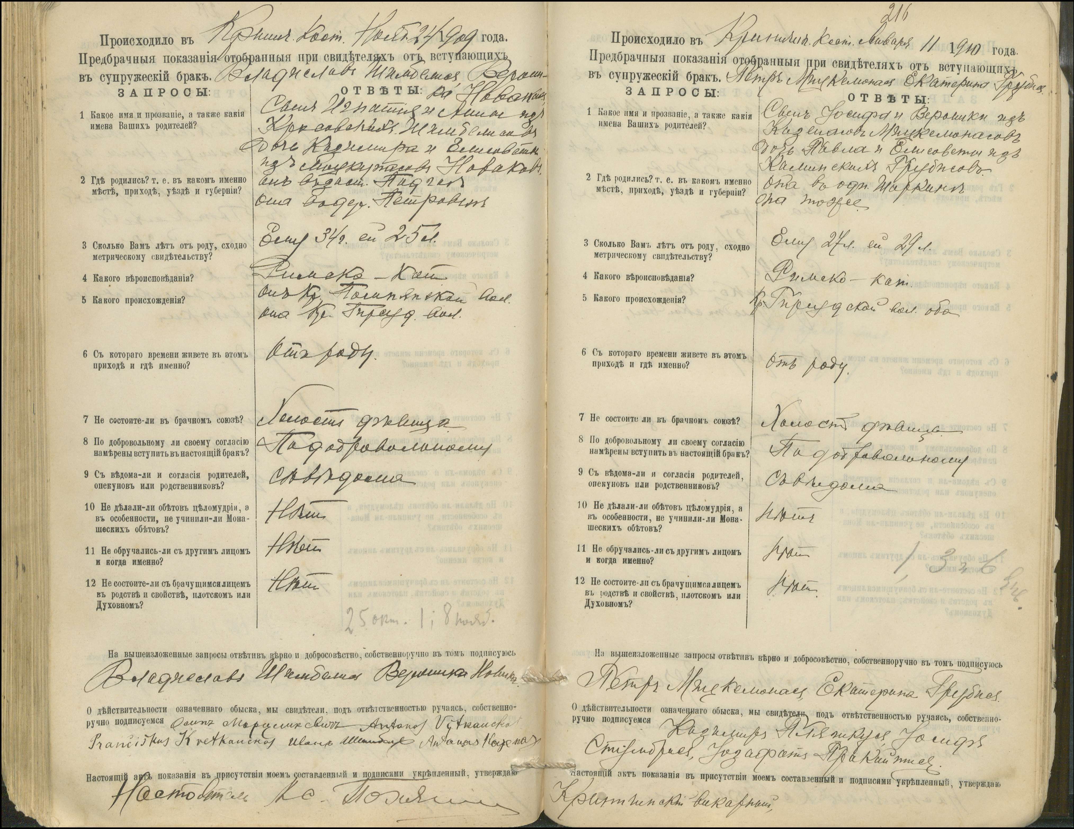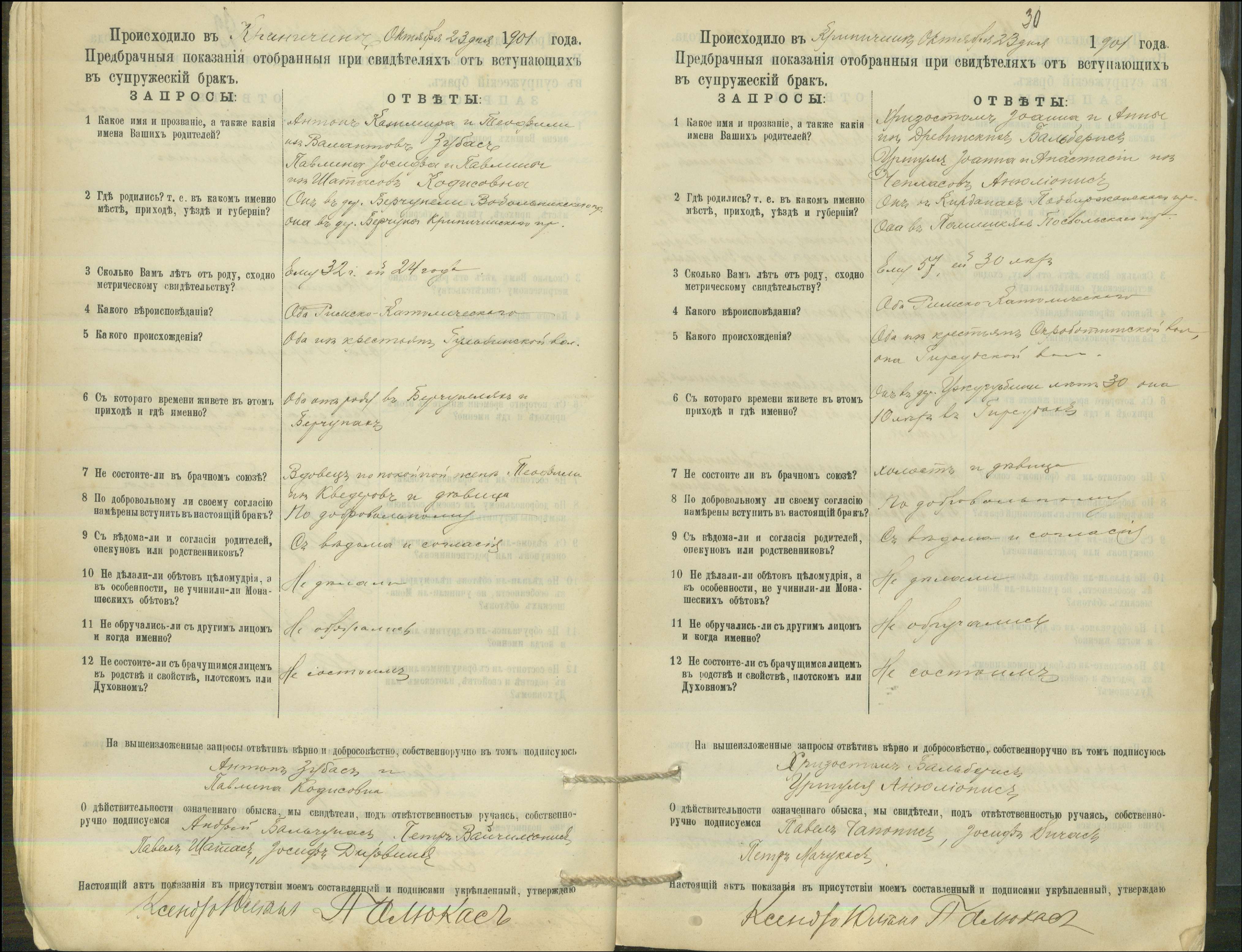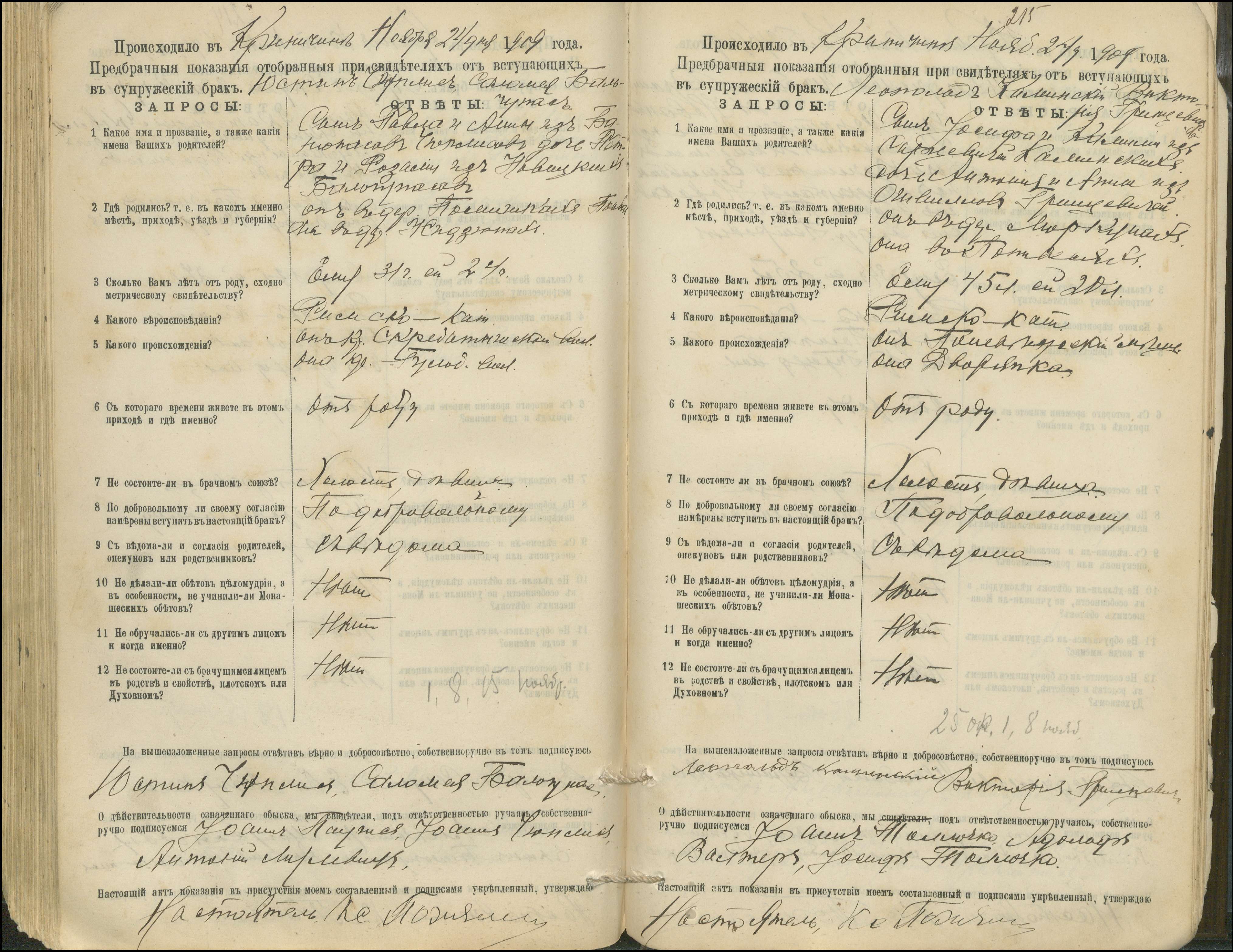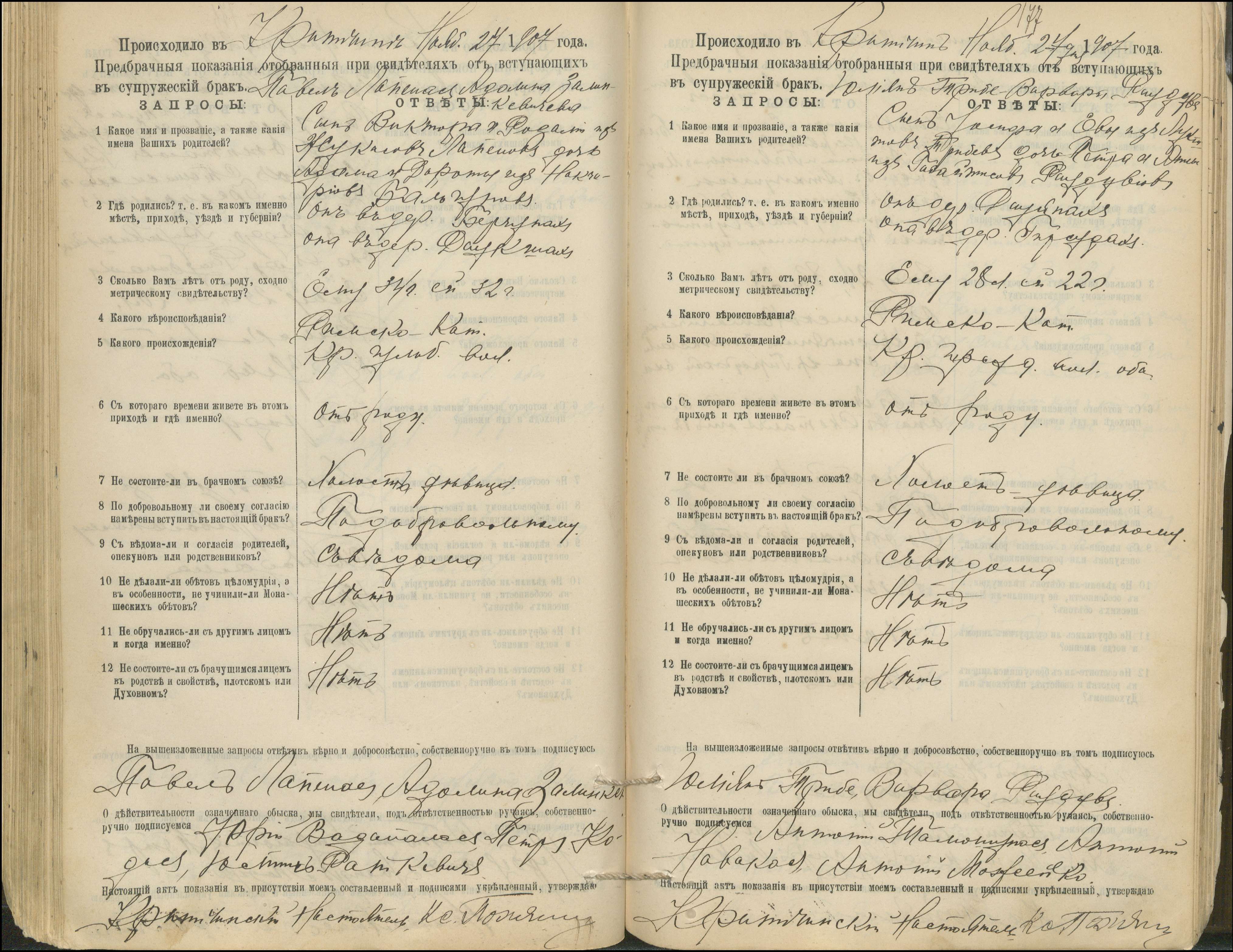Krinčino Romos katalikų parapijos bažnyčios 1900–1911 metų priešjungtuvinės apklausos knyga