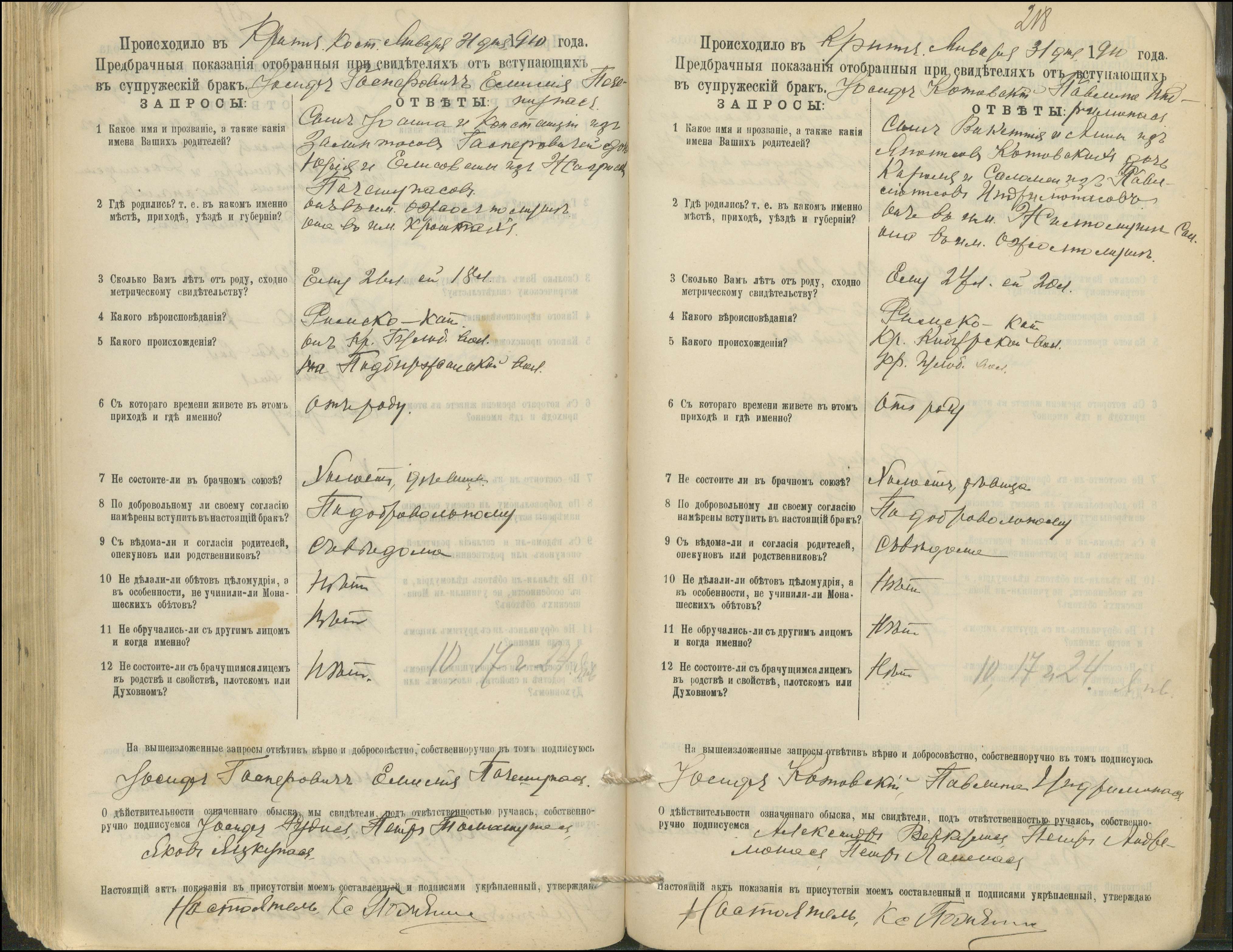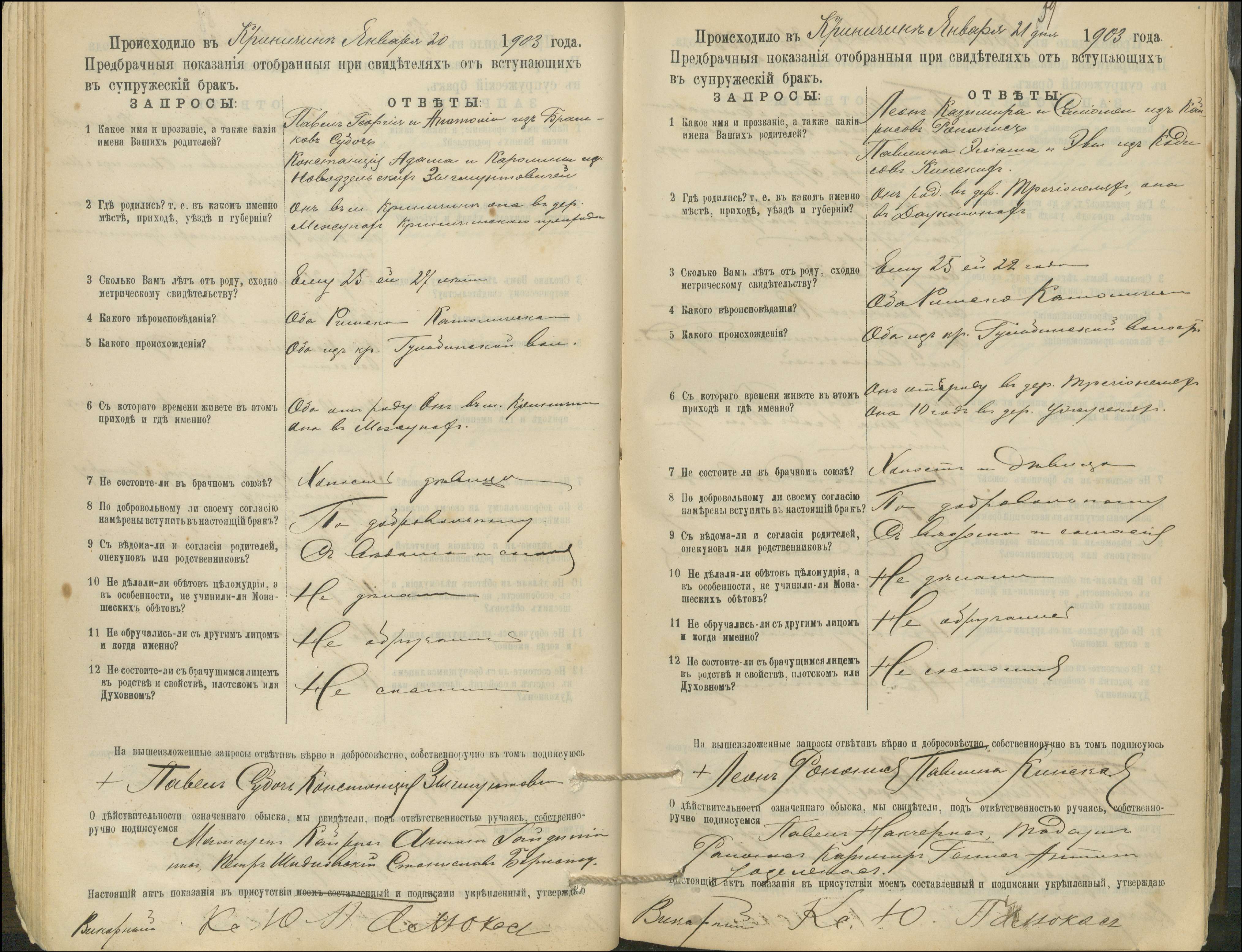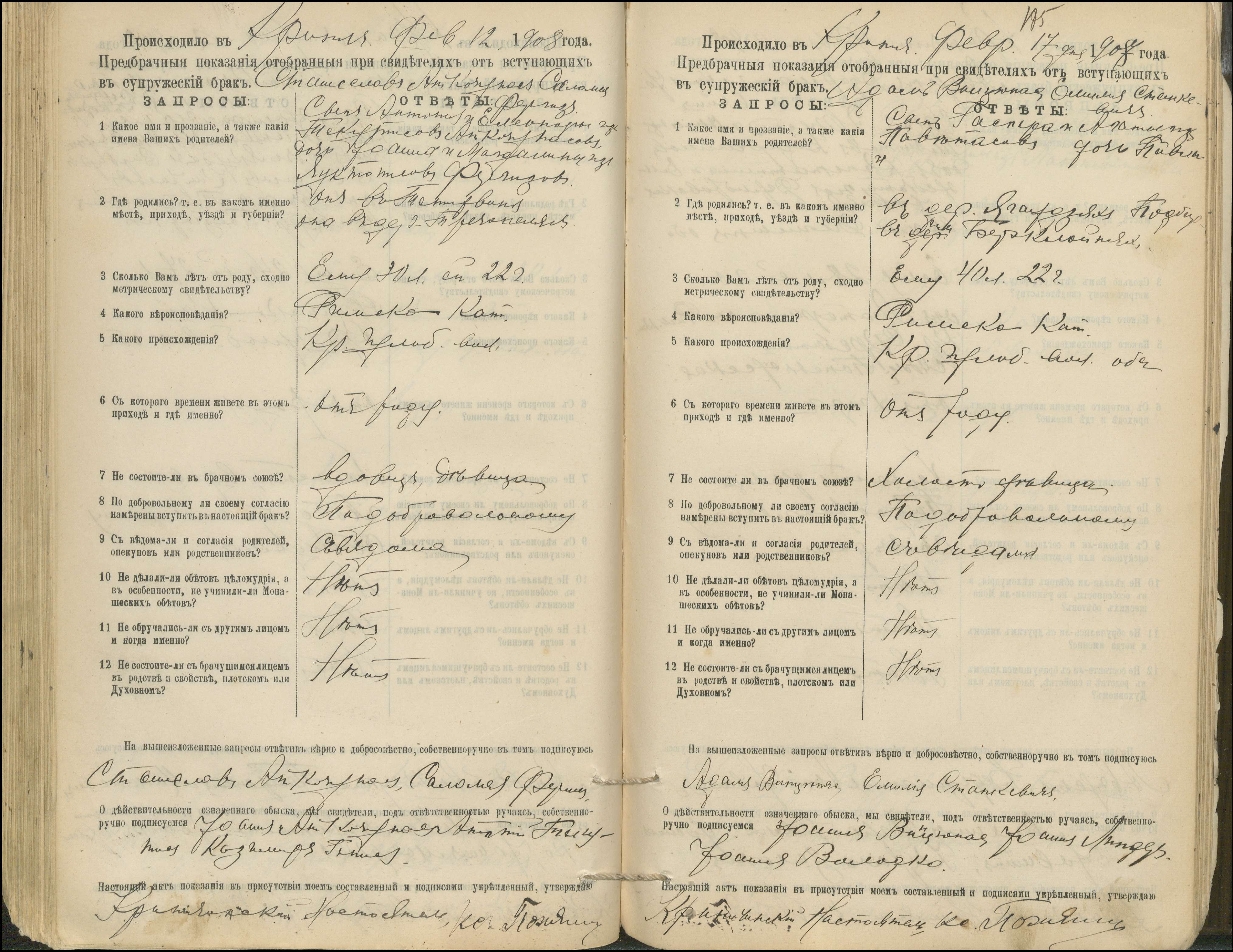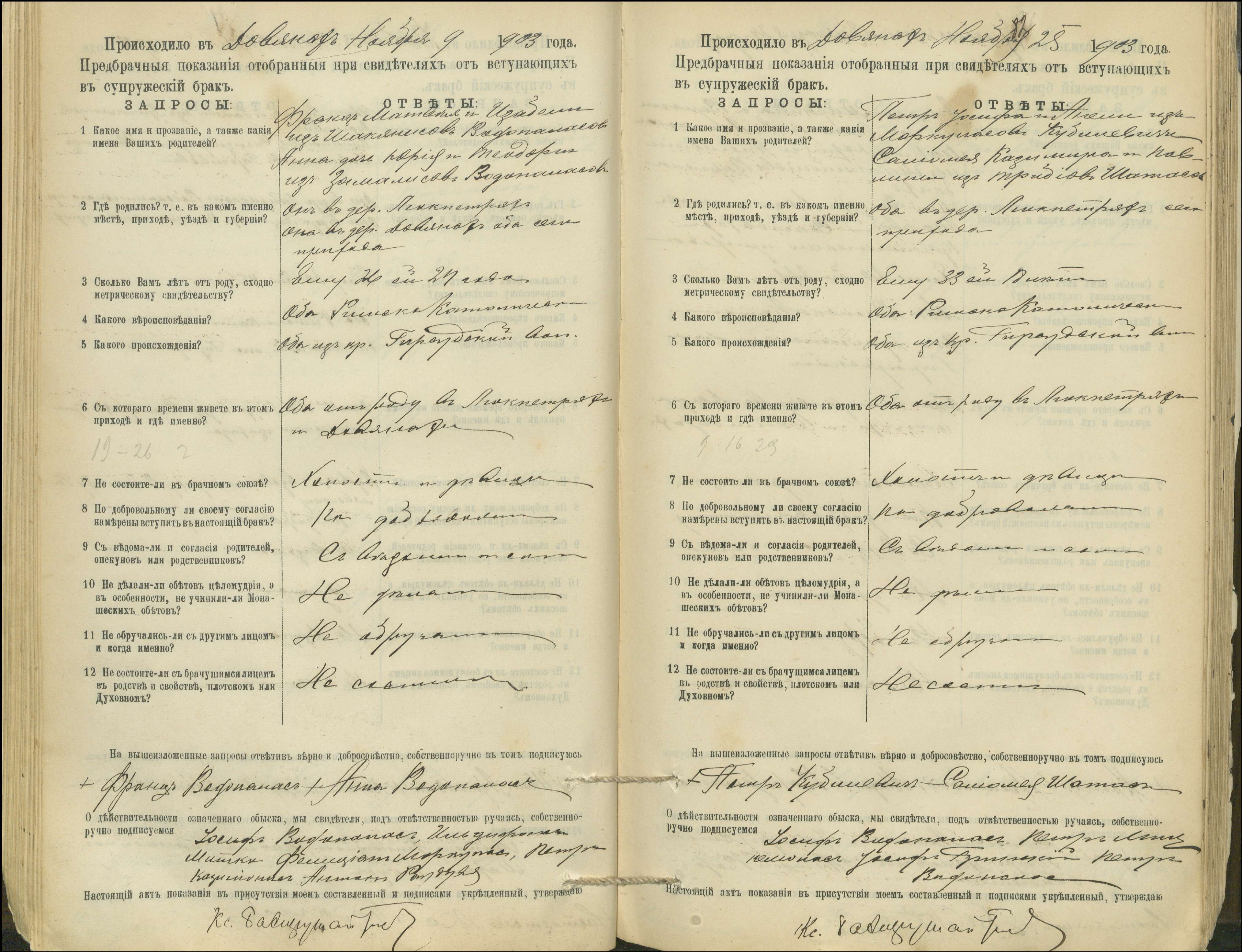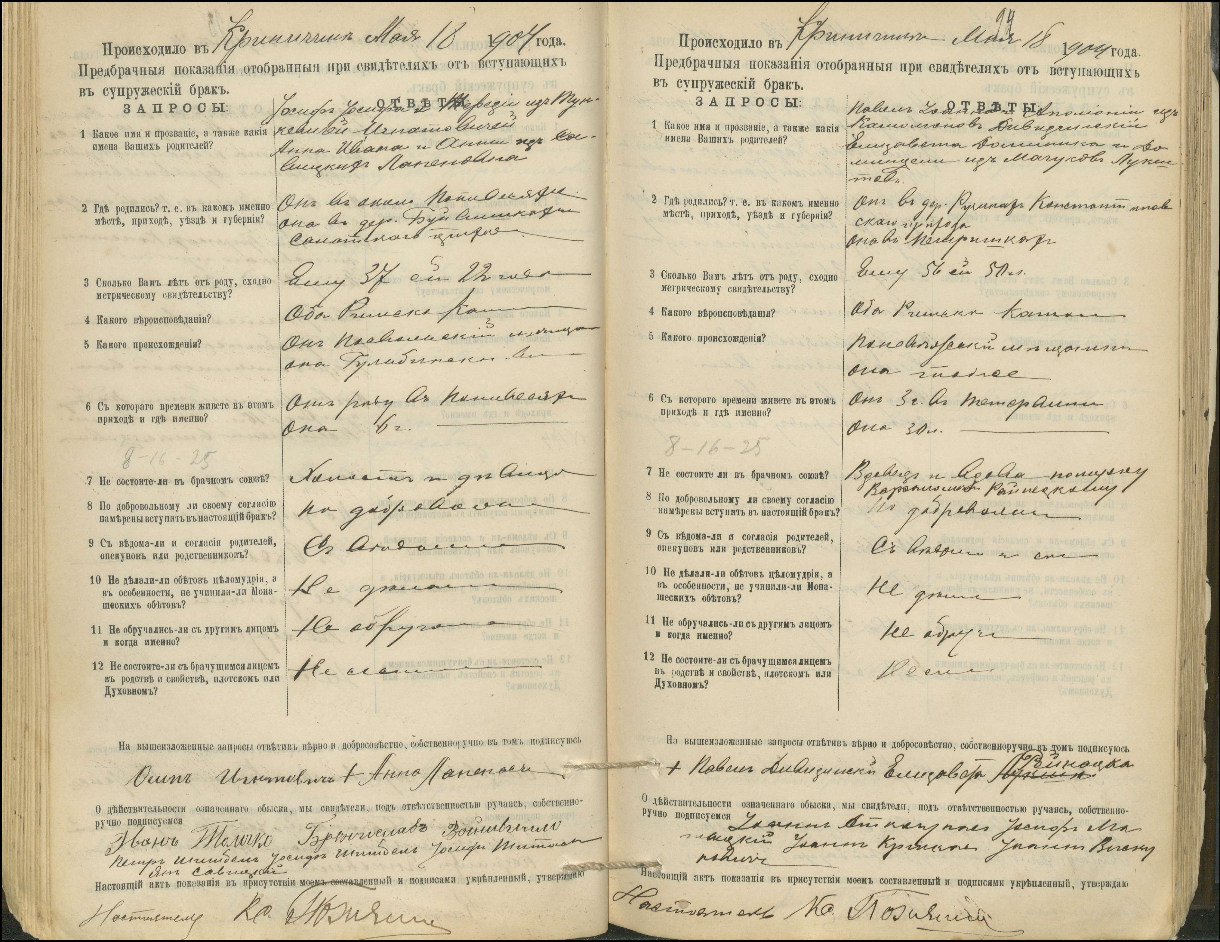 Krinčino Romos katalikų parapijos bažnyčios 1900–1911 metų priešjungtuvinės apklausos knyga