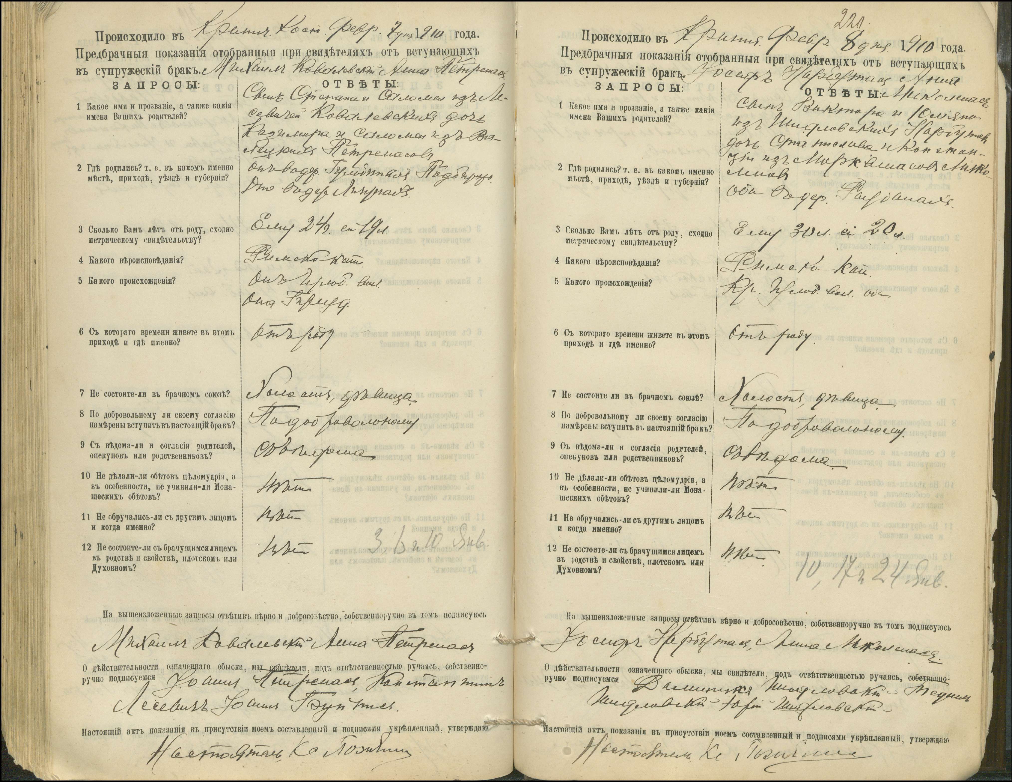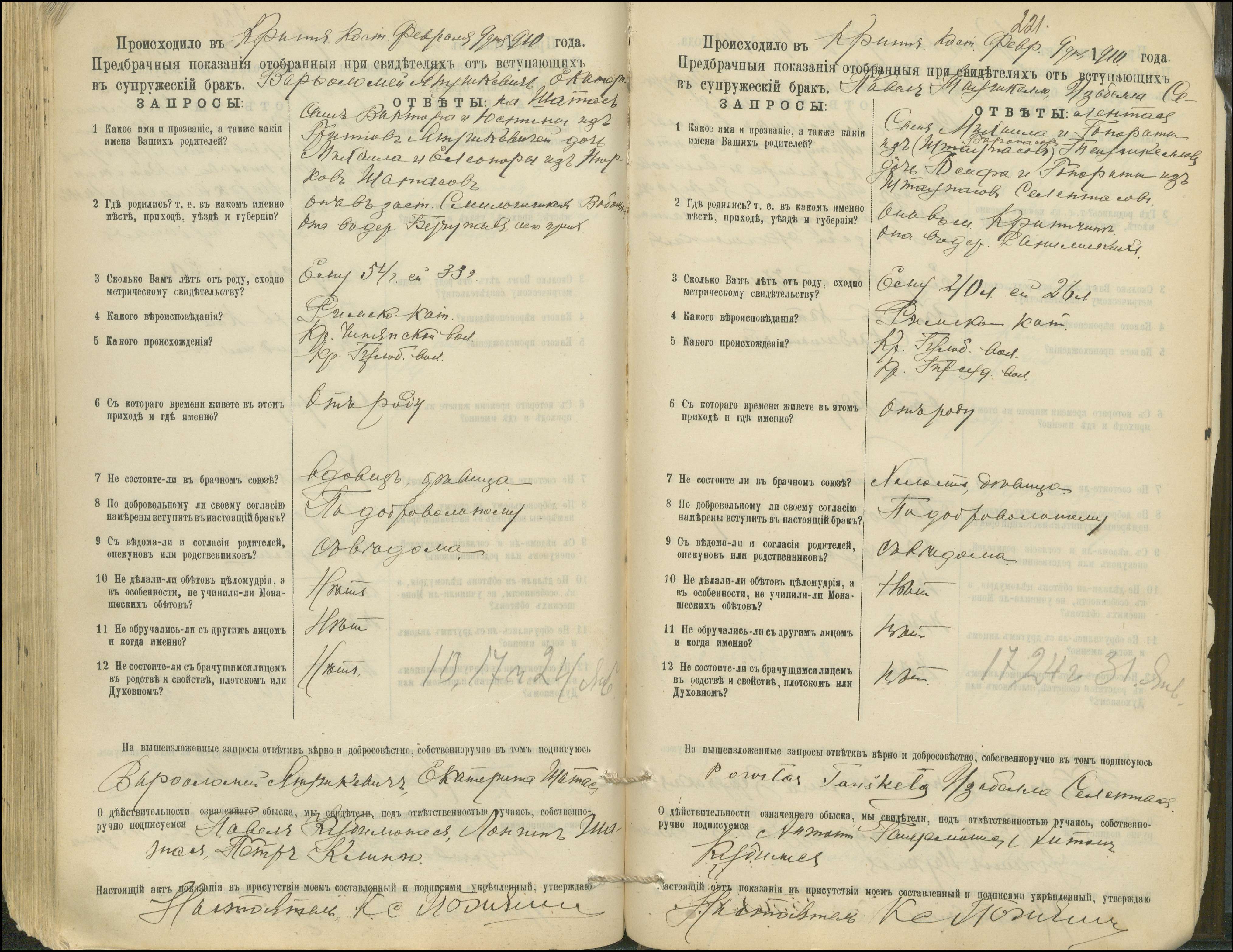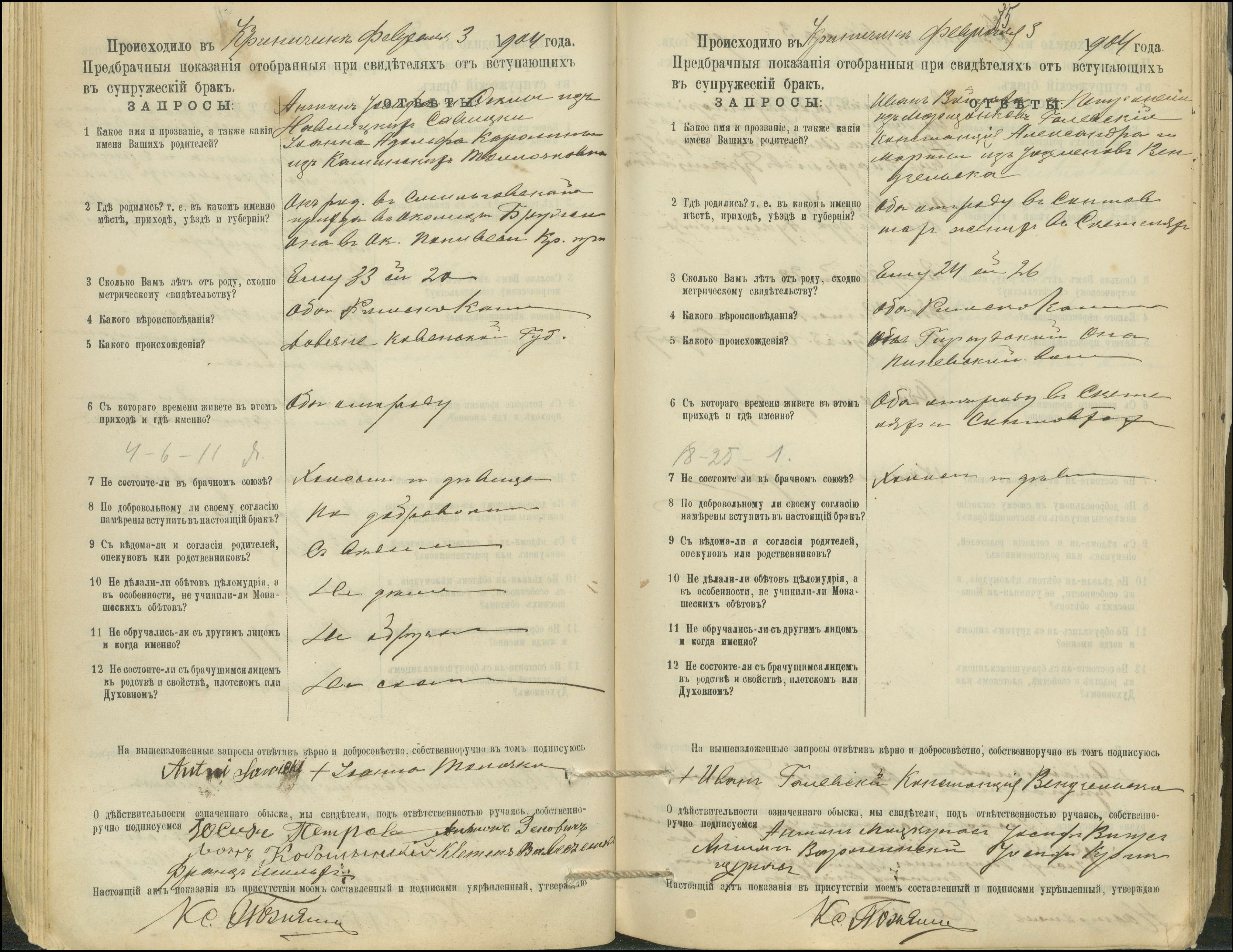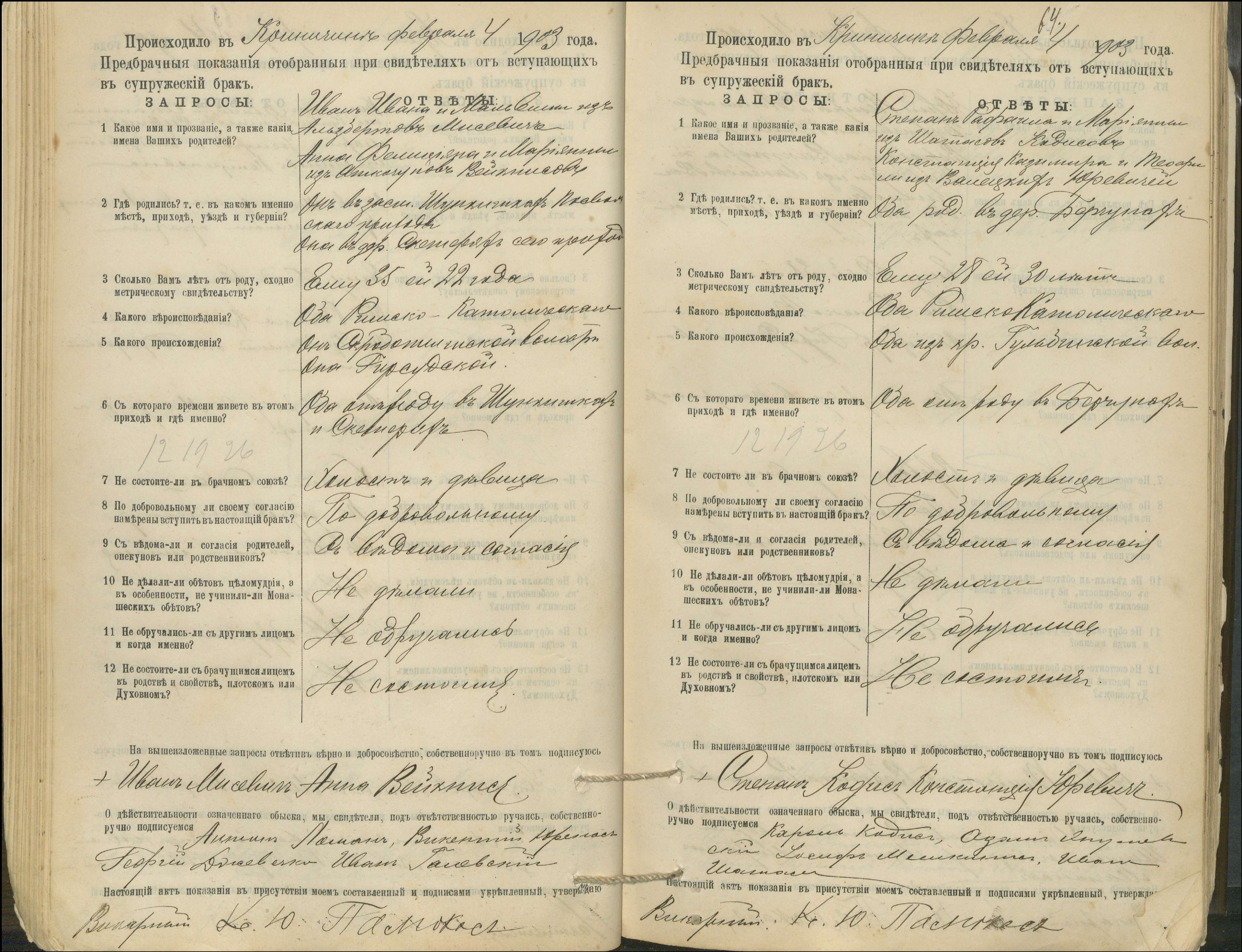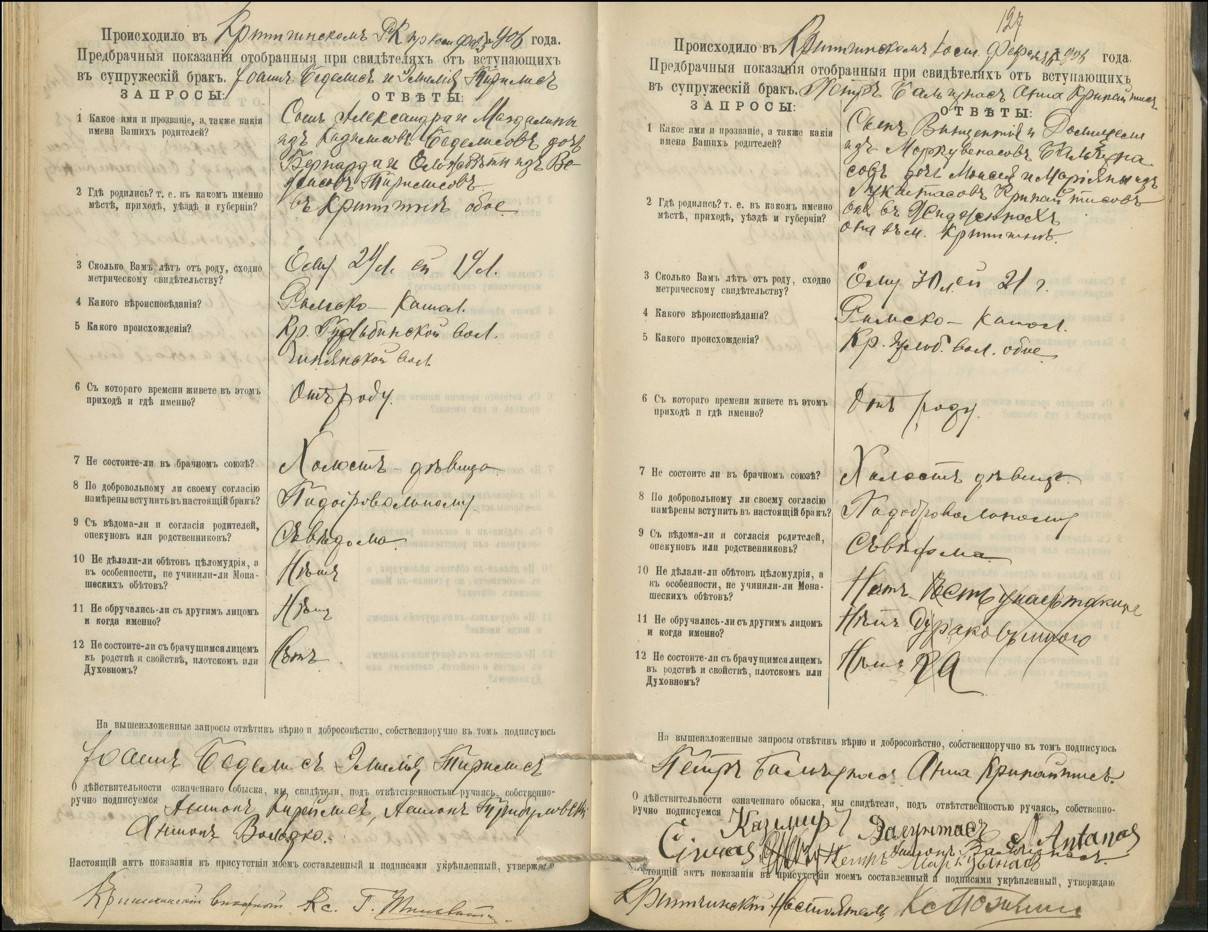 Krinčino Romos katalikų parapijos bažnyčios 1900–1911 metų priešjungtuvinės apklausos knyga
