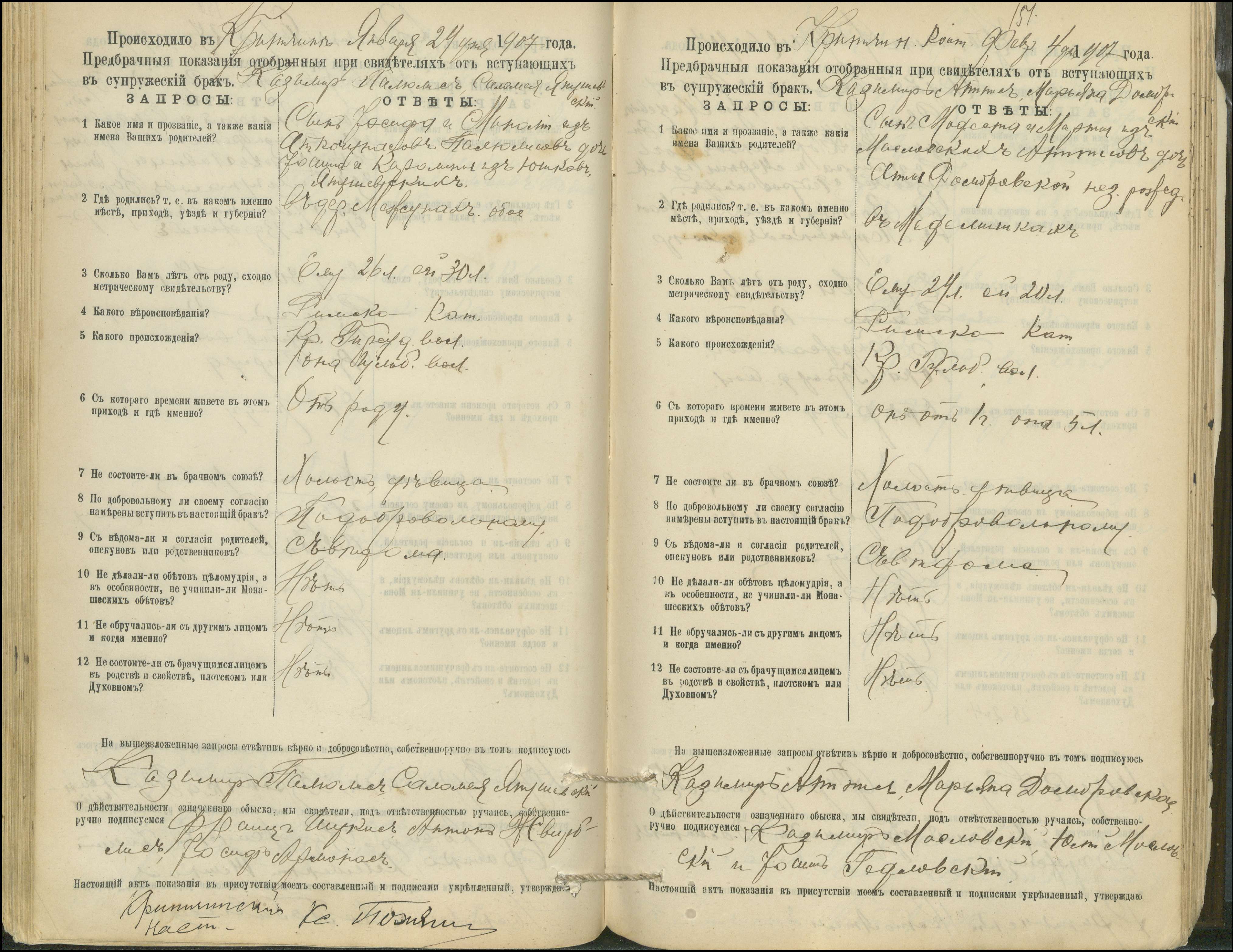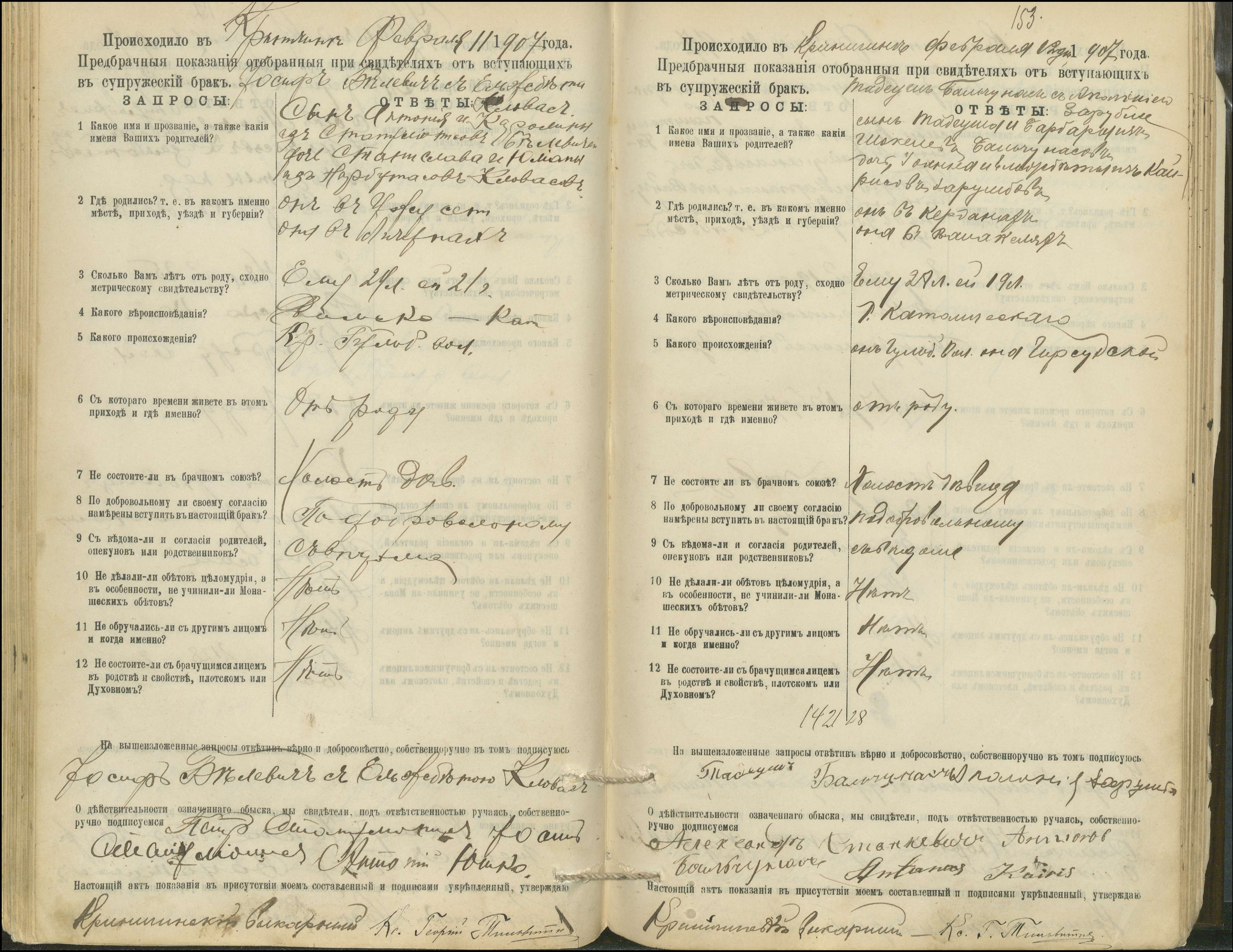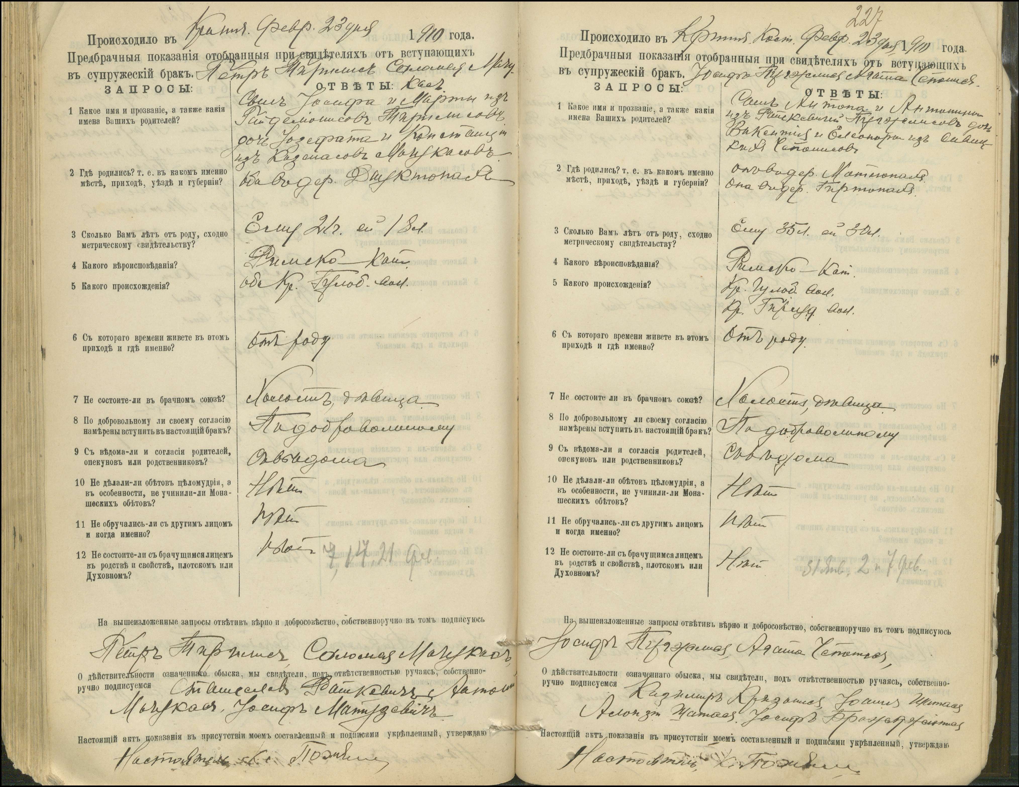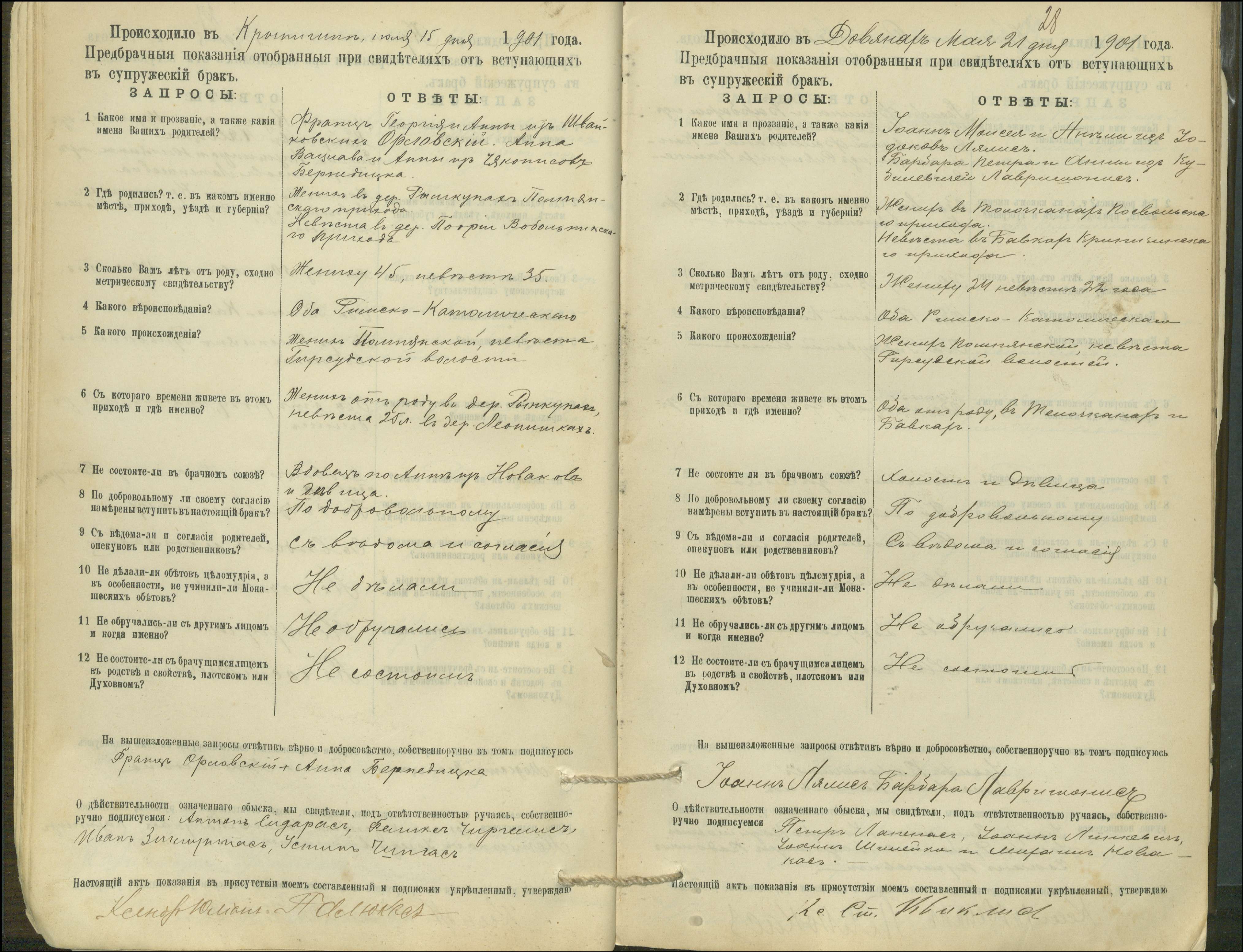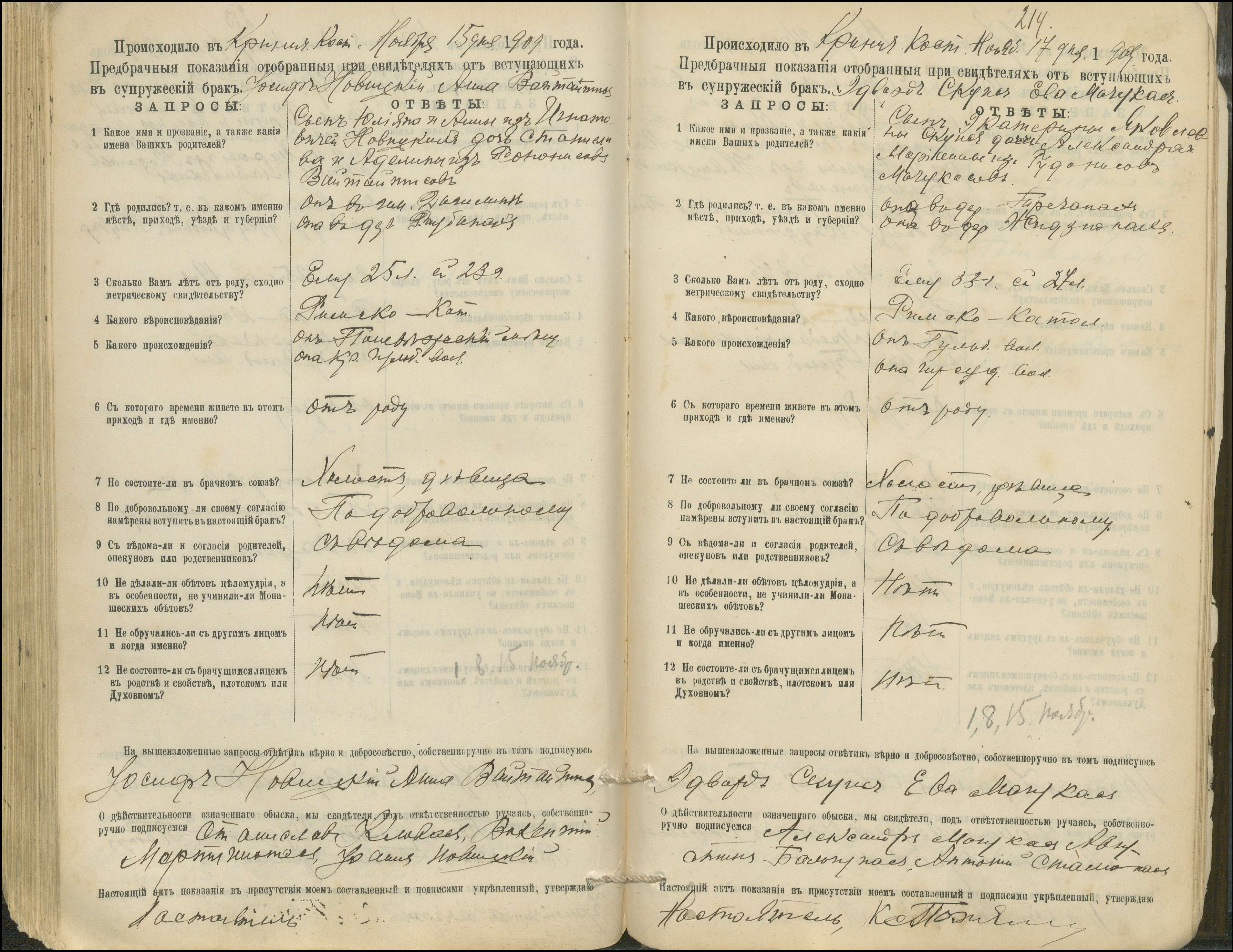 Krinčino Romos katalikų parapijos bažnyčios 1900–1911 metų priešjungtuvinės apklausos knyga