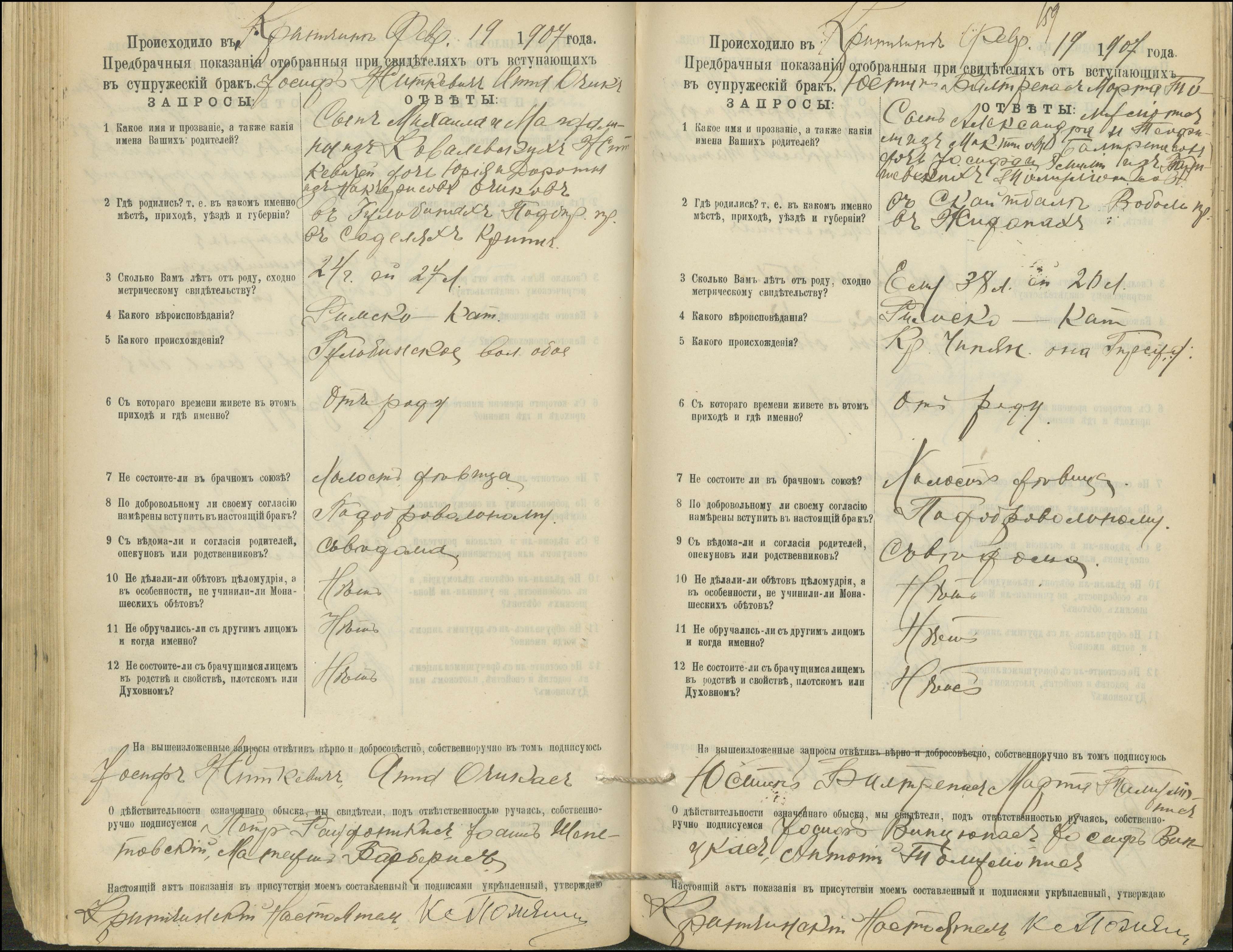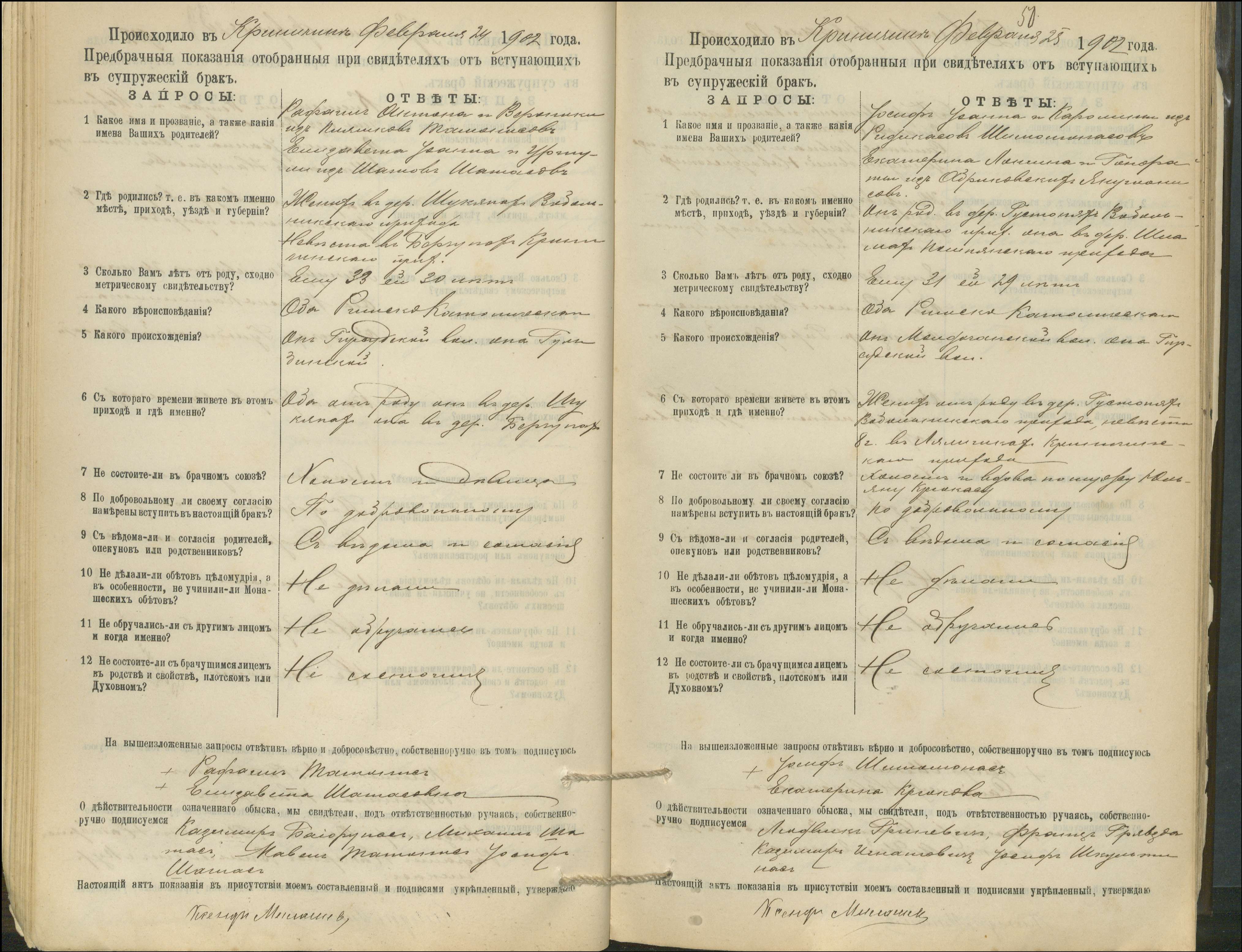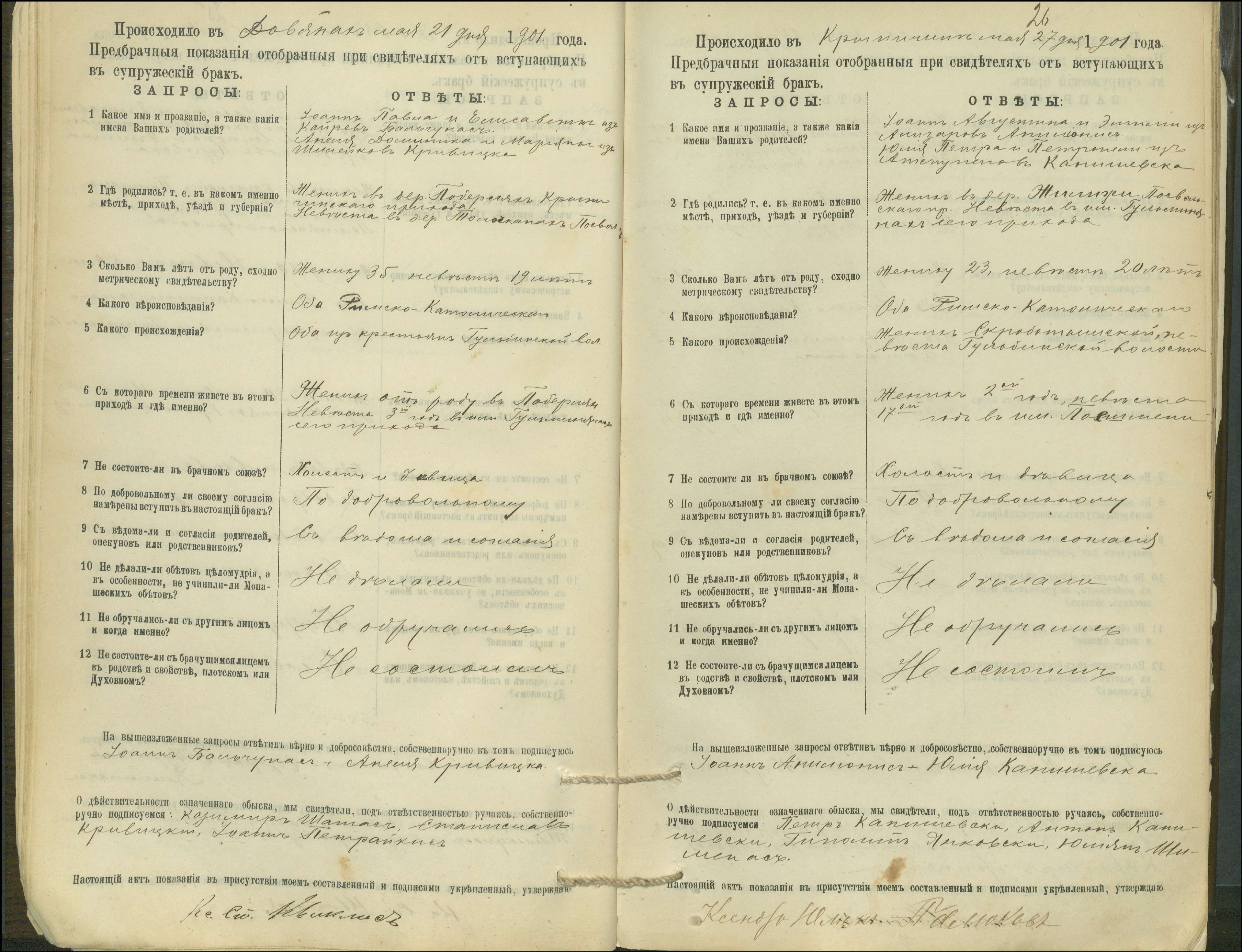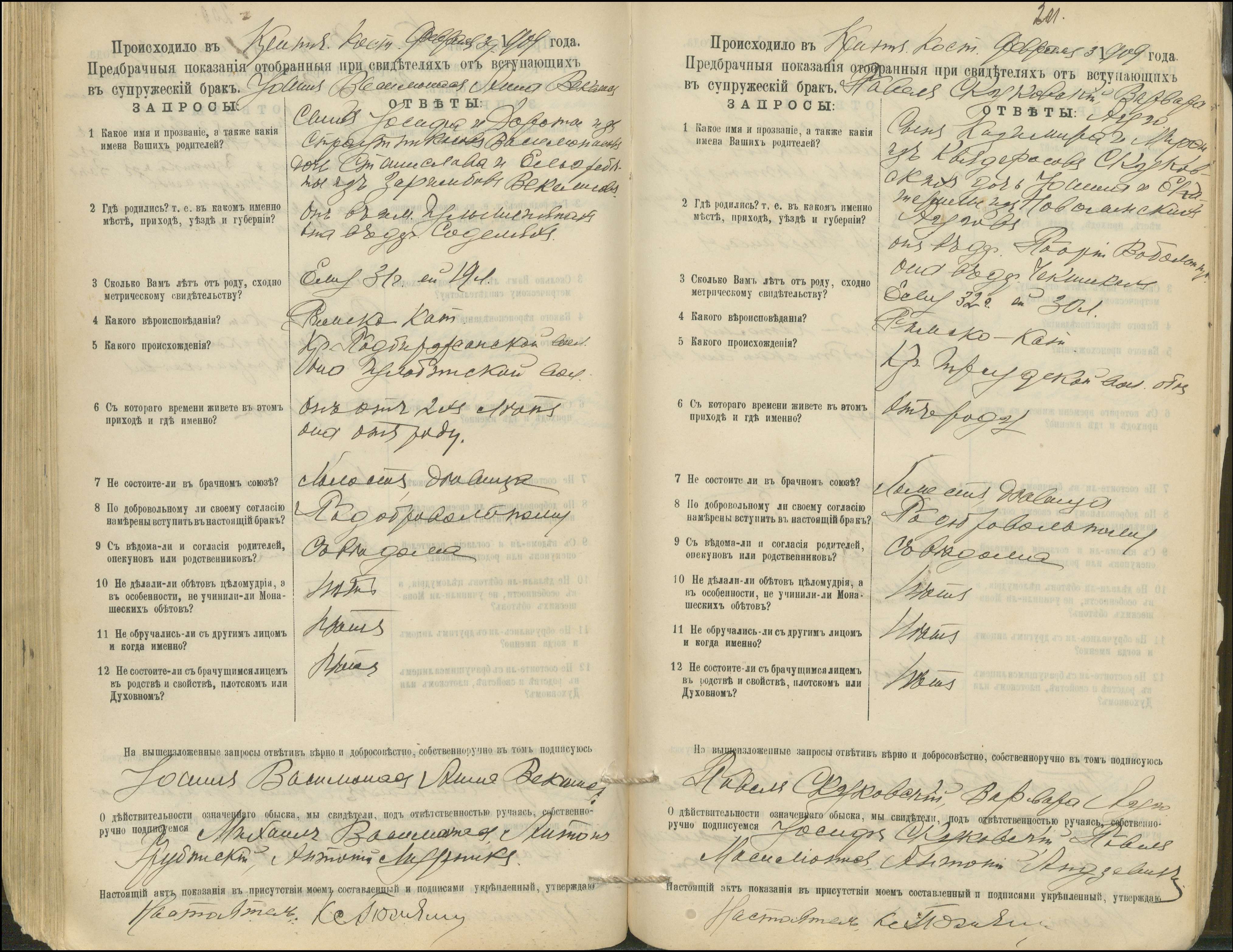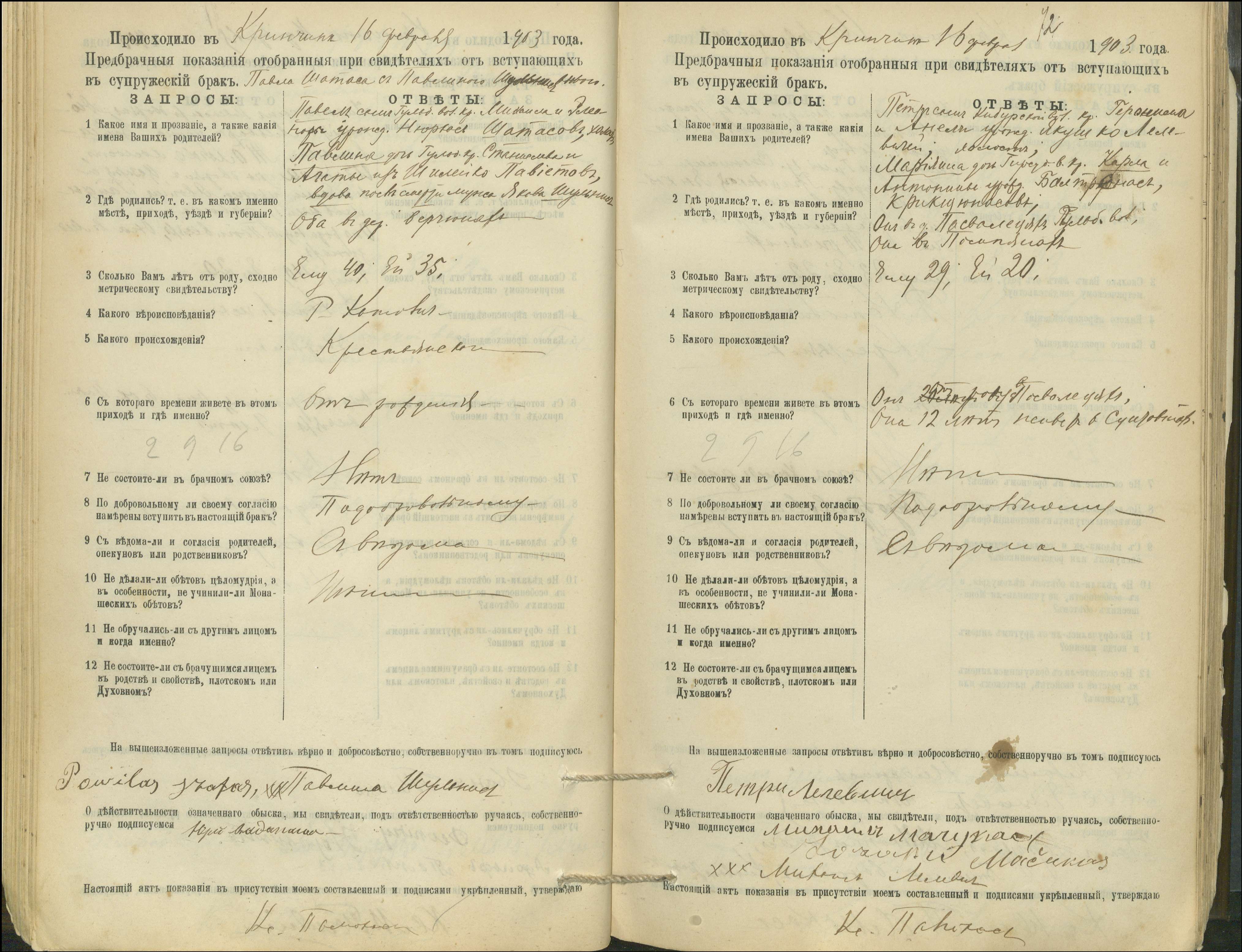 Krinčino Romos katalikų parapijos bažnyčios 1900–1911 metų priešjungtuvinės apklausos knyga