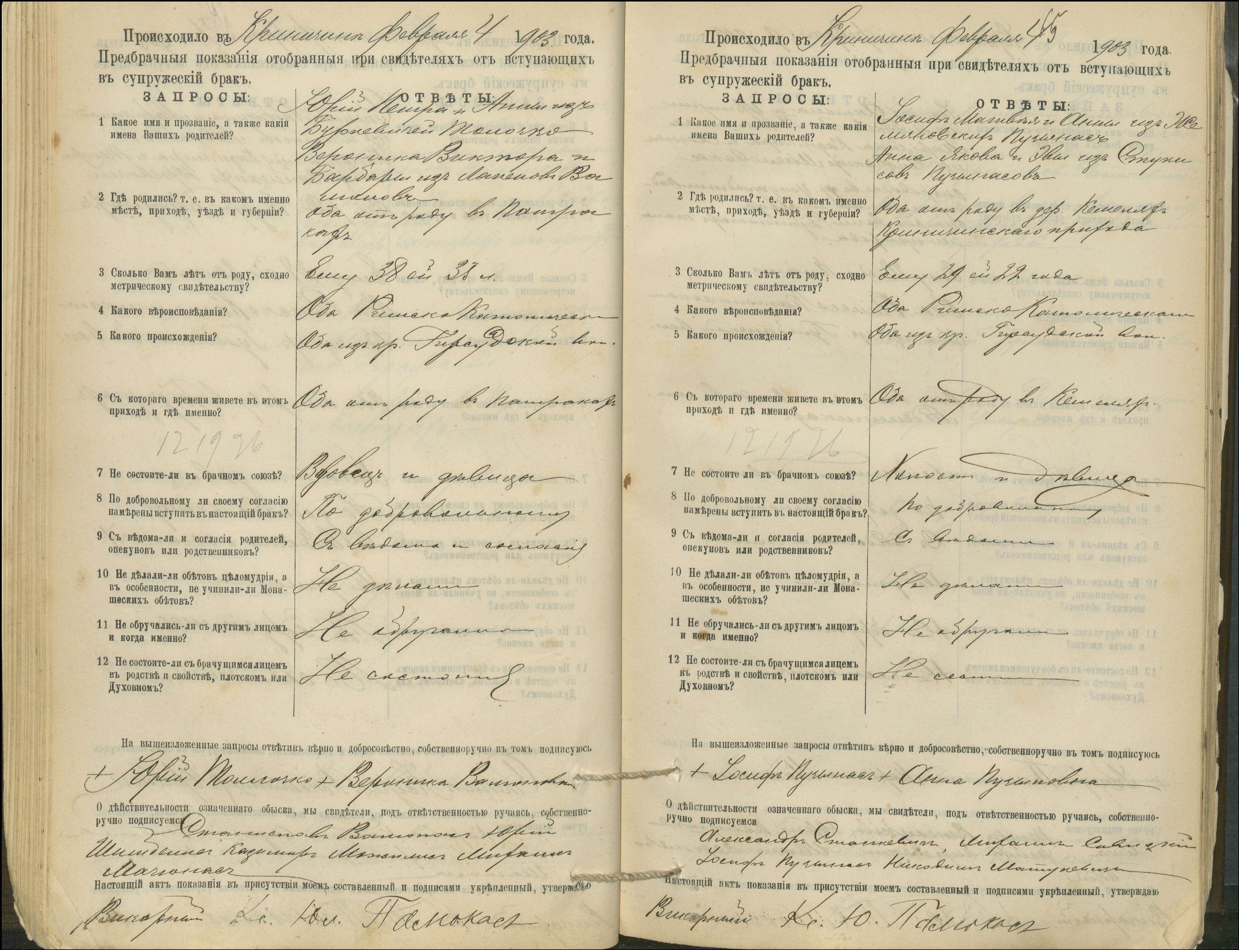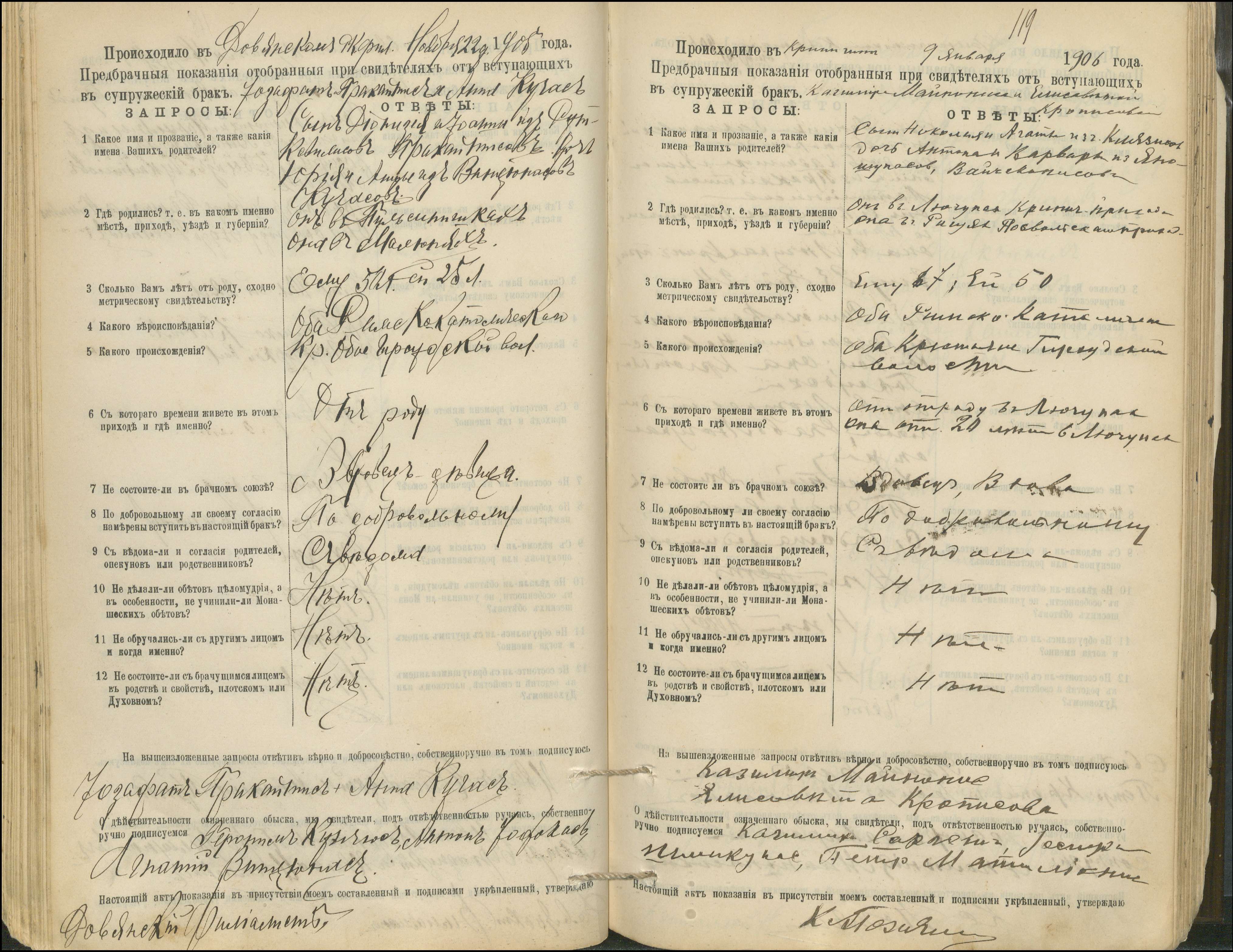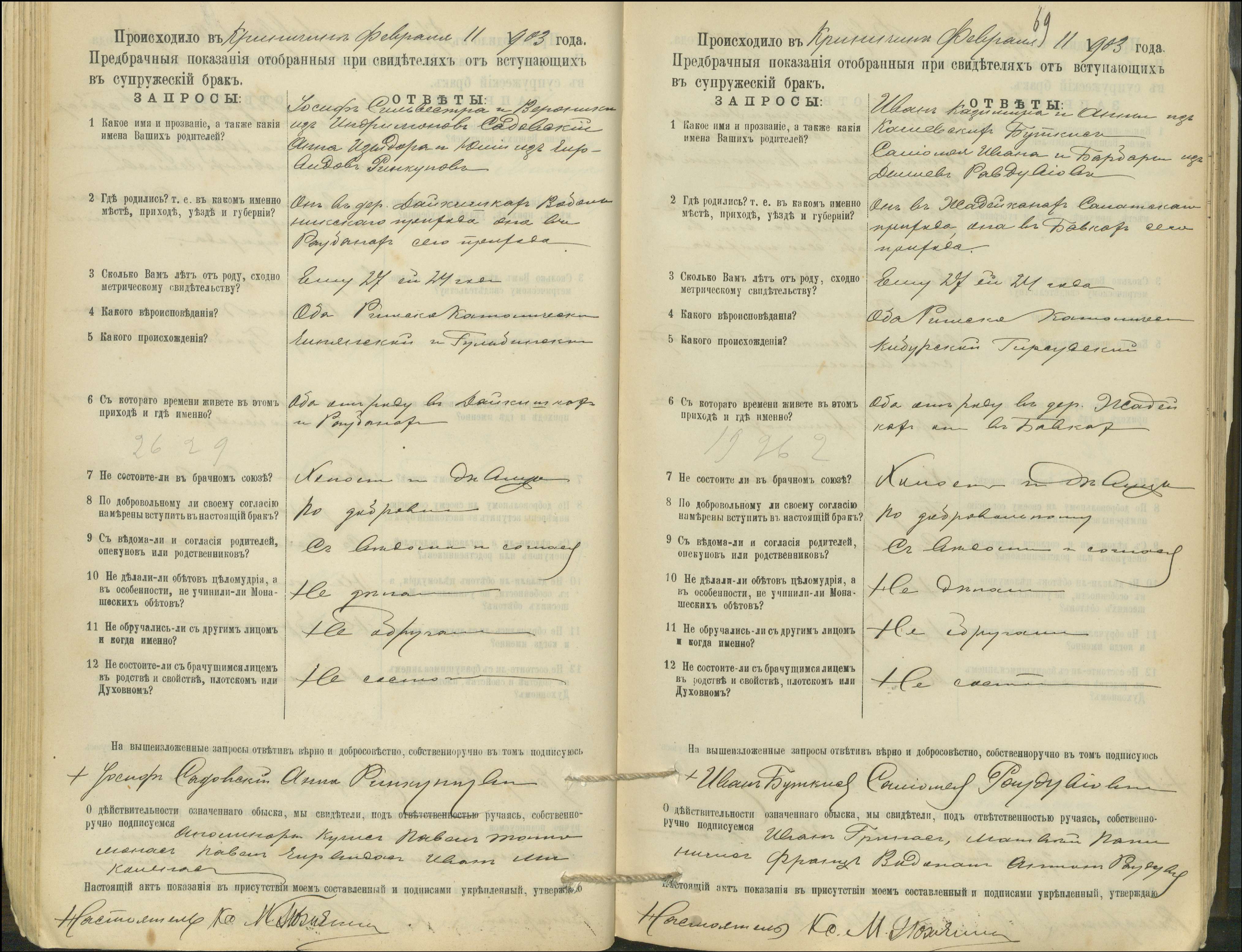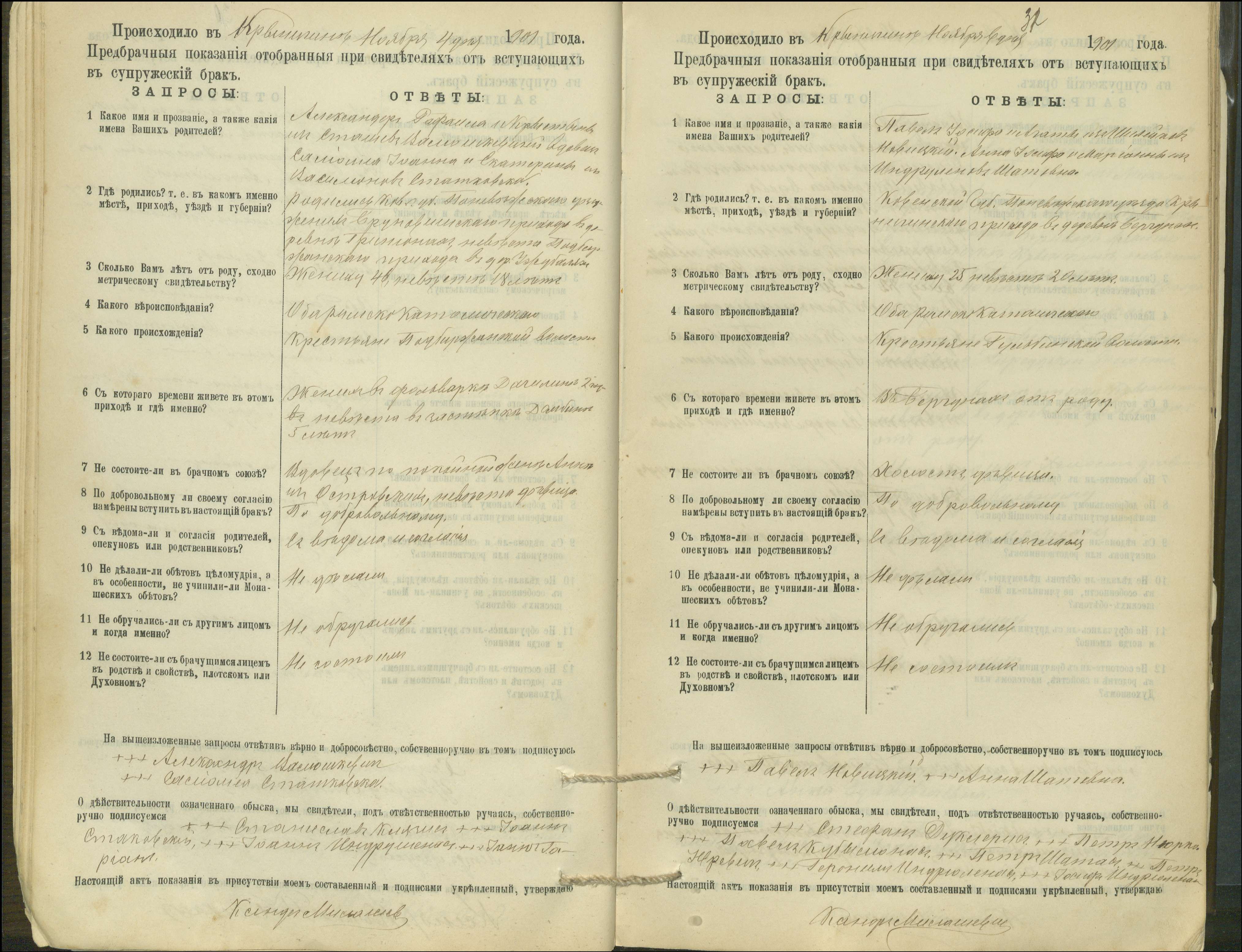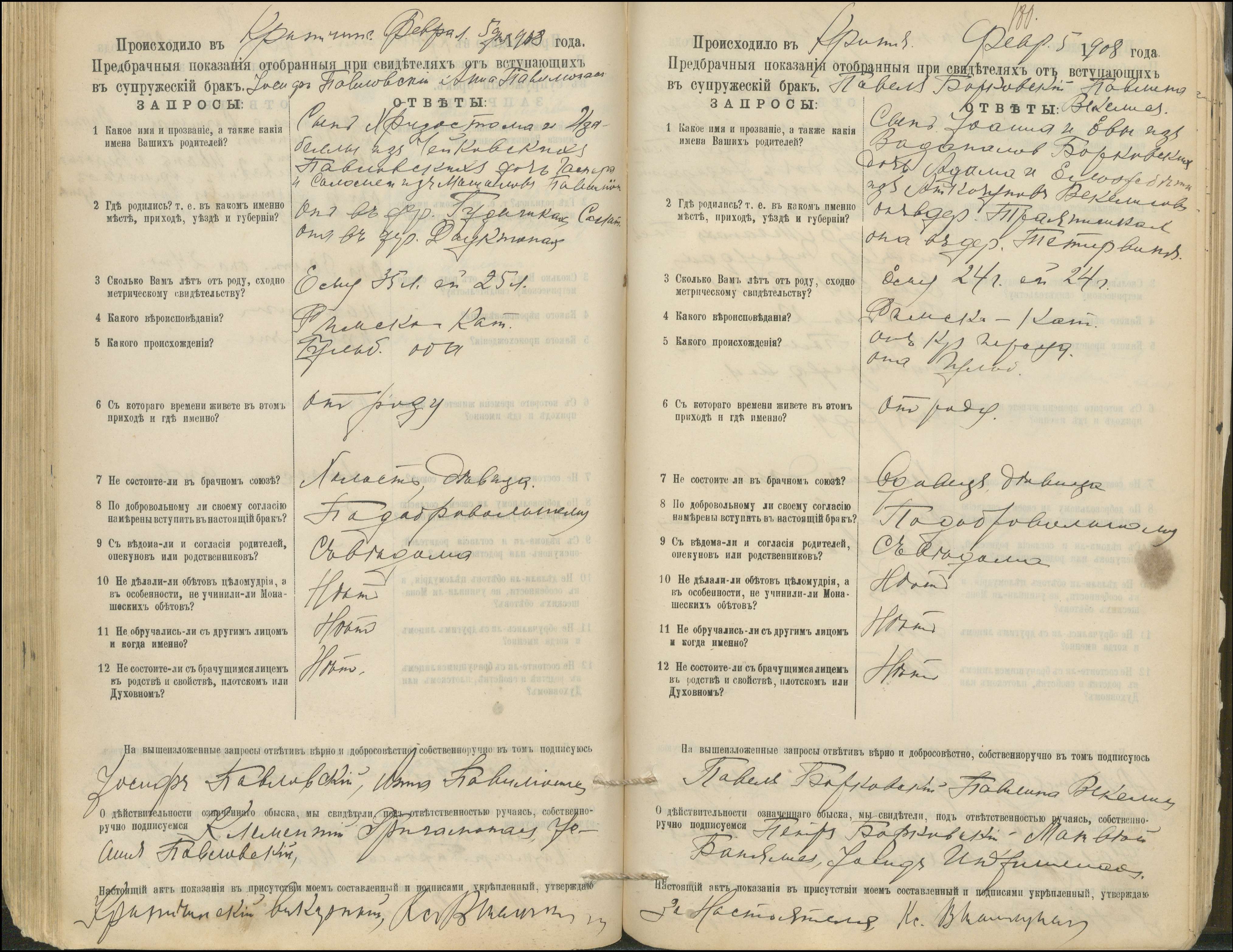 Krinčino Romos katalikų parapijos bažnyčios 1900–1911 metų priešjungtuvinės apklausos knyga