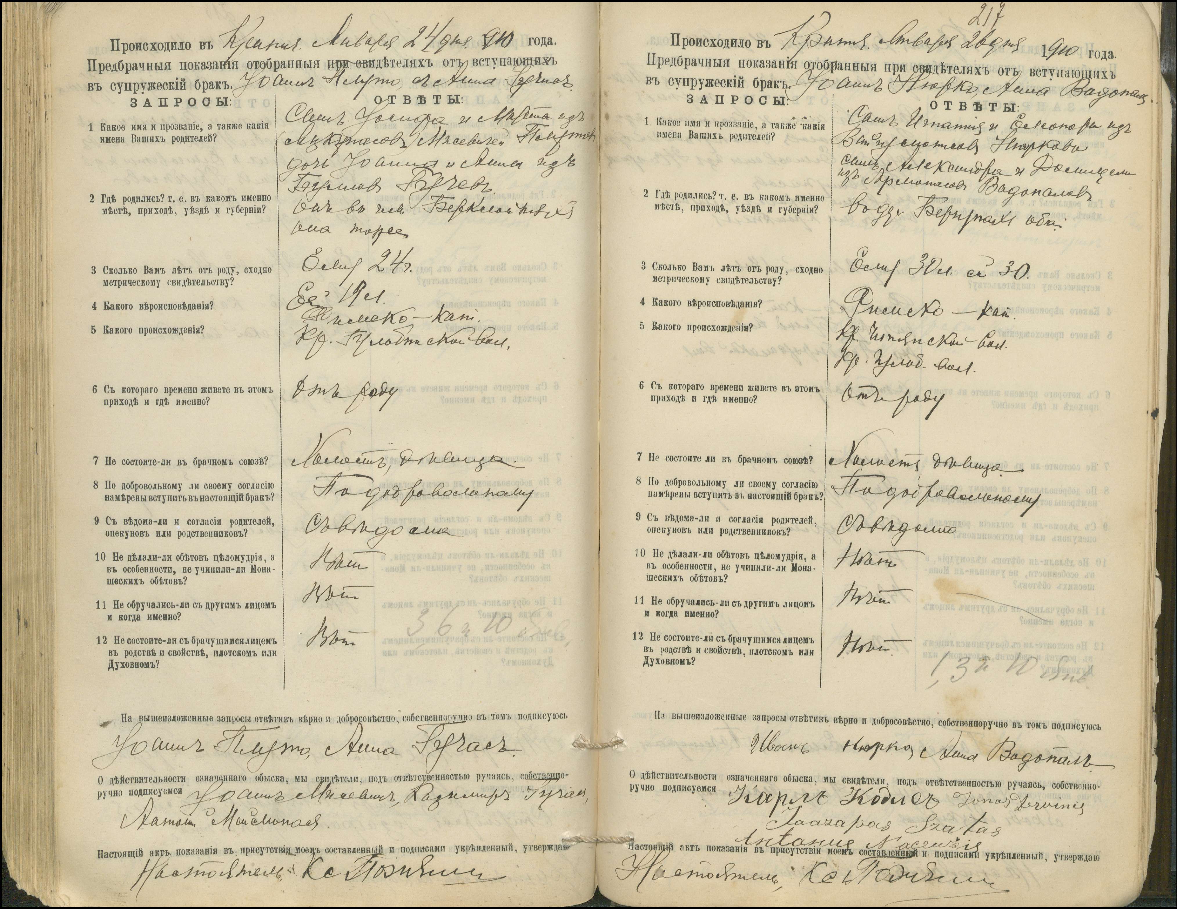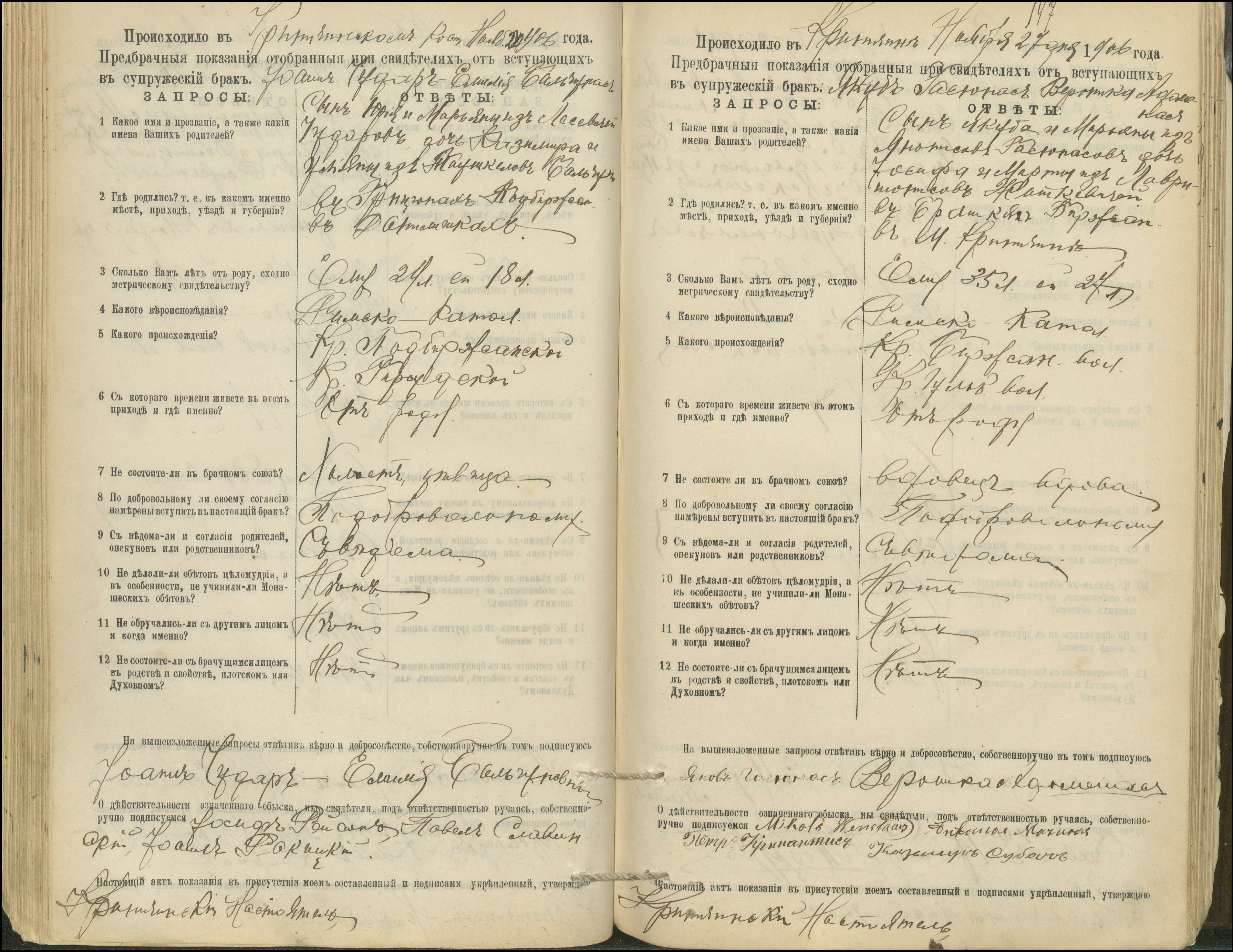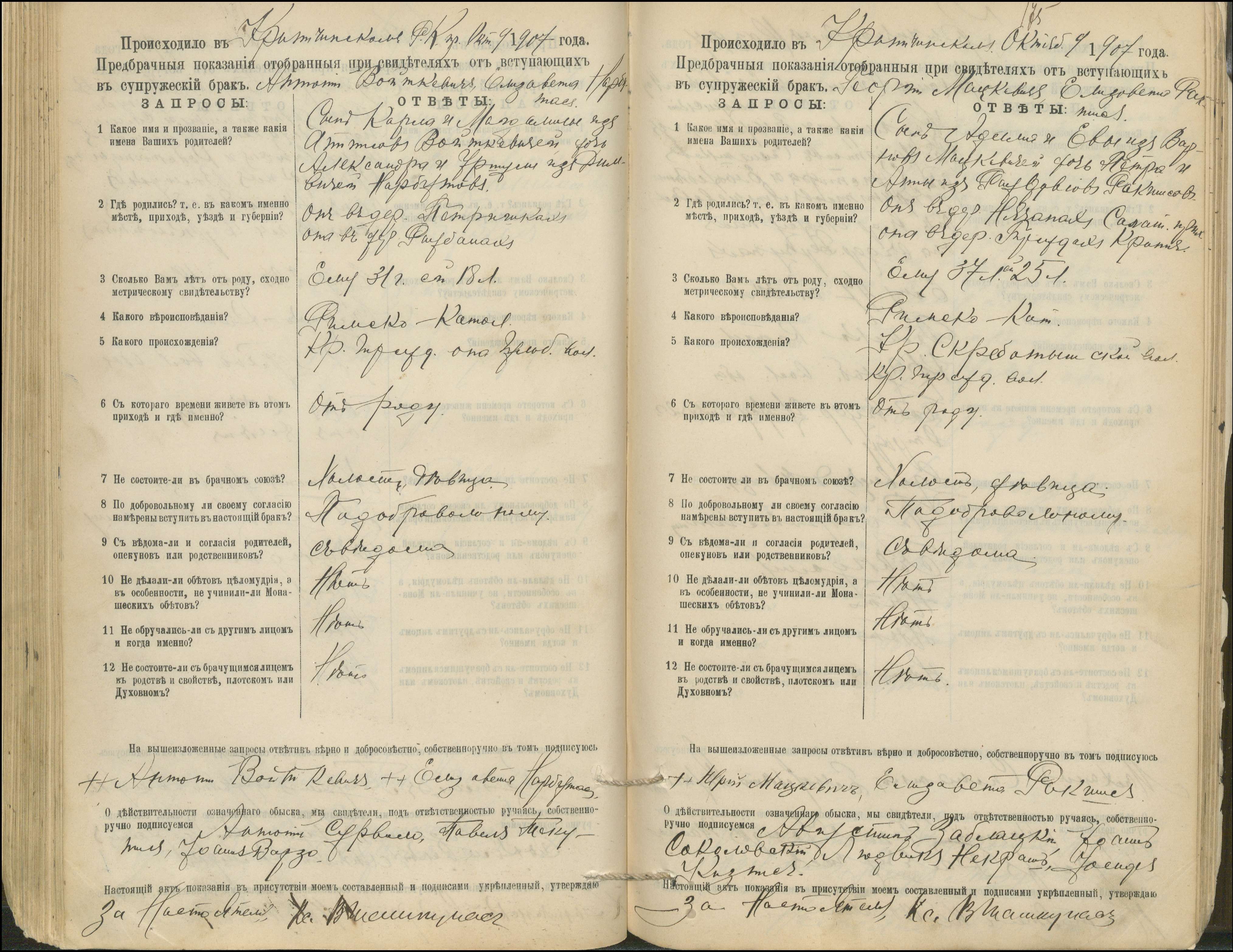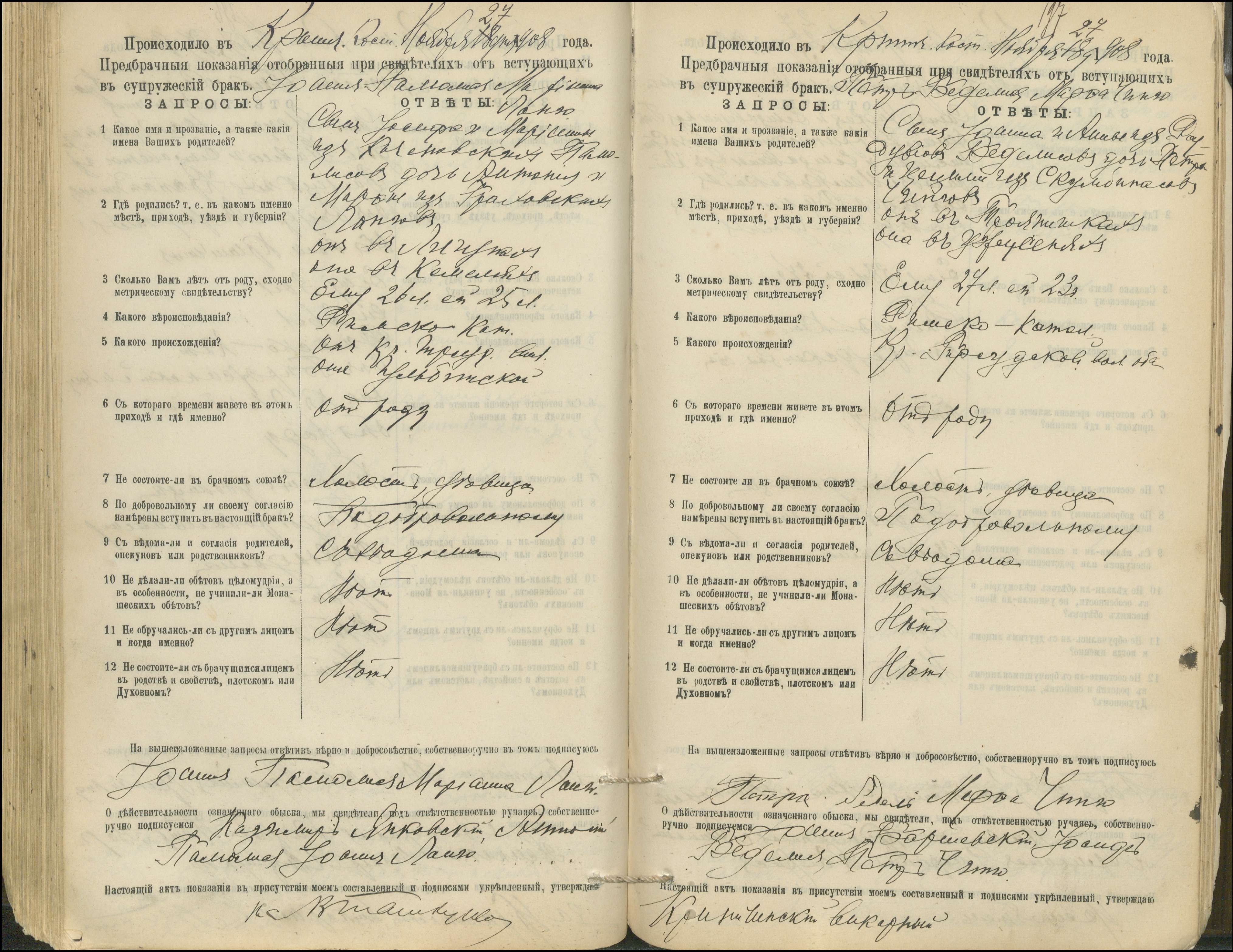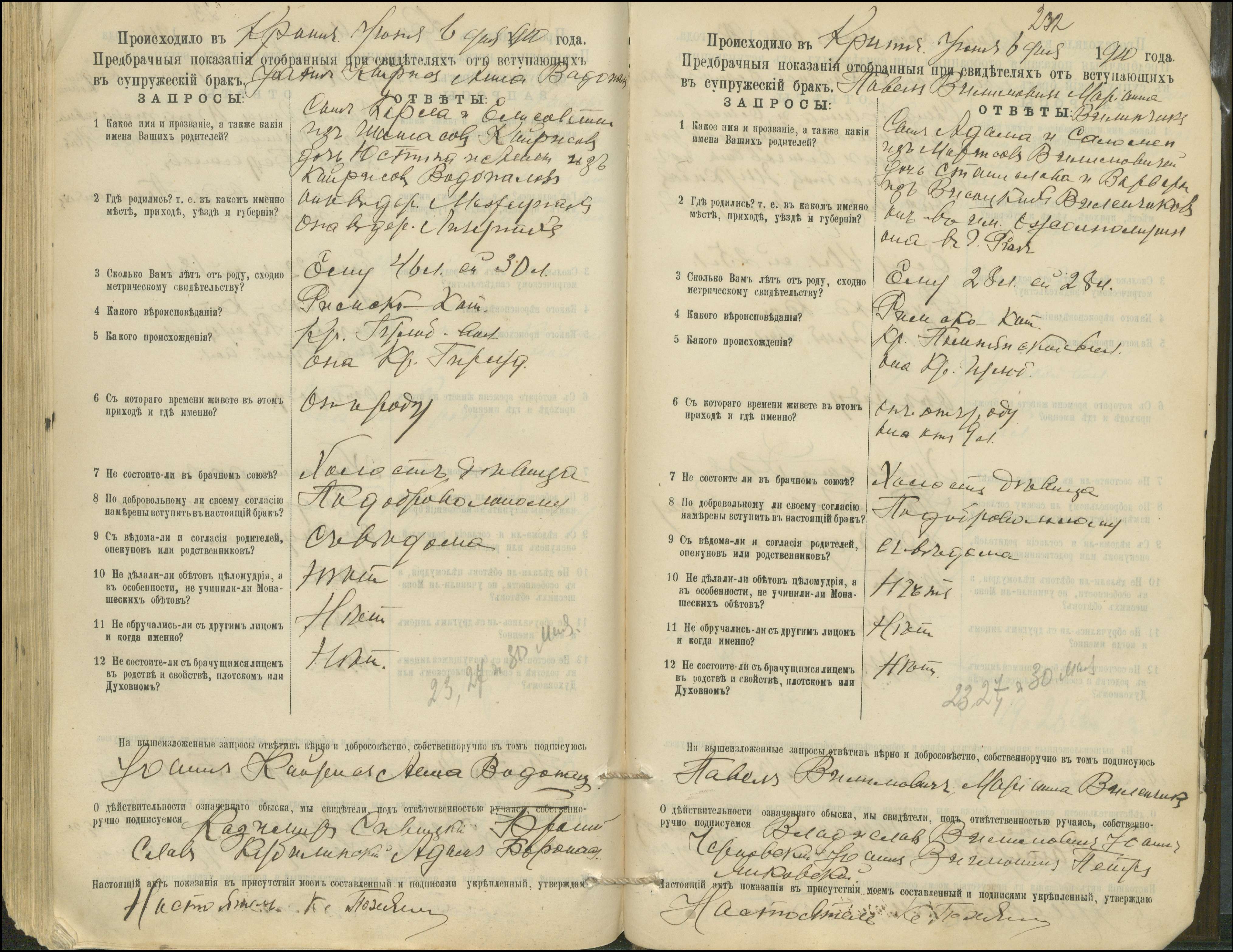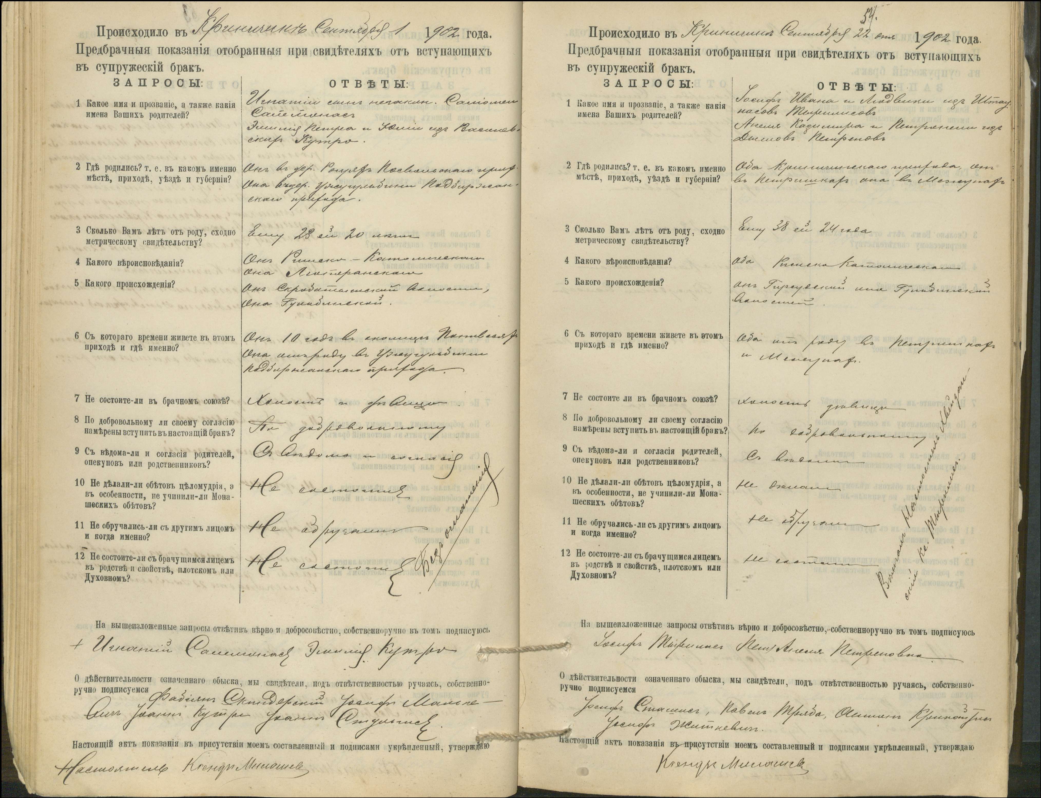 Krinčino Romos katalikų parapijos bažnyčios 1900–1911 metų priešjungtuvinės apklausos knyga
