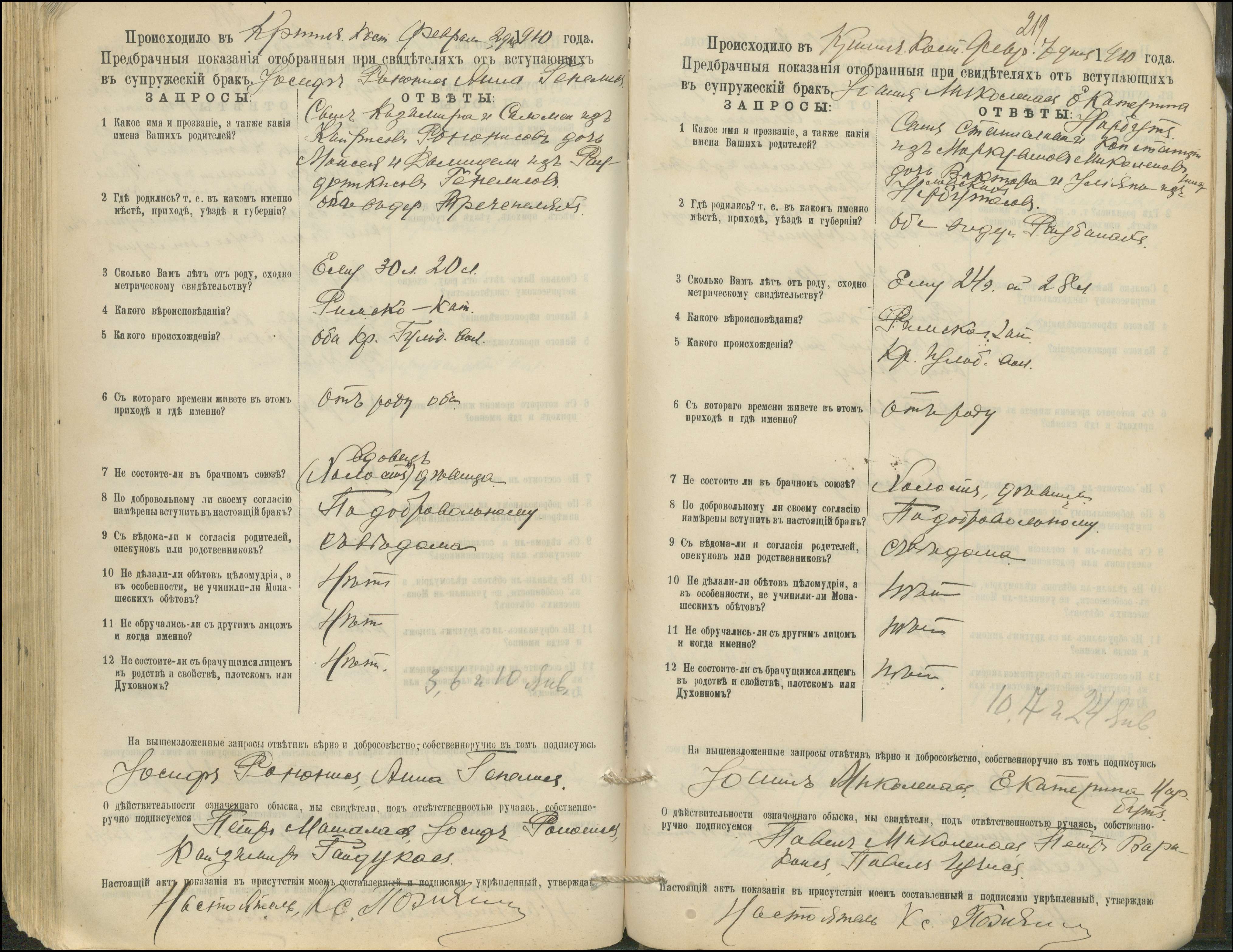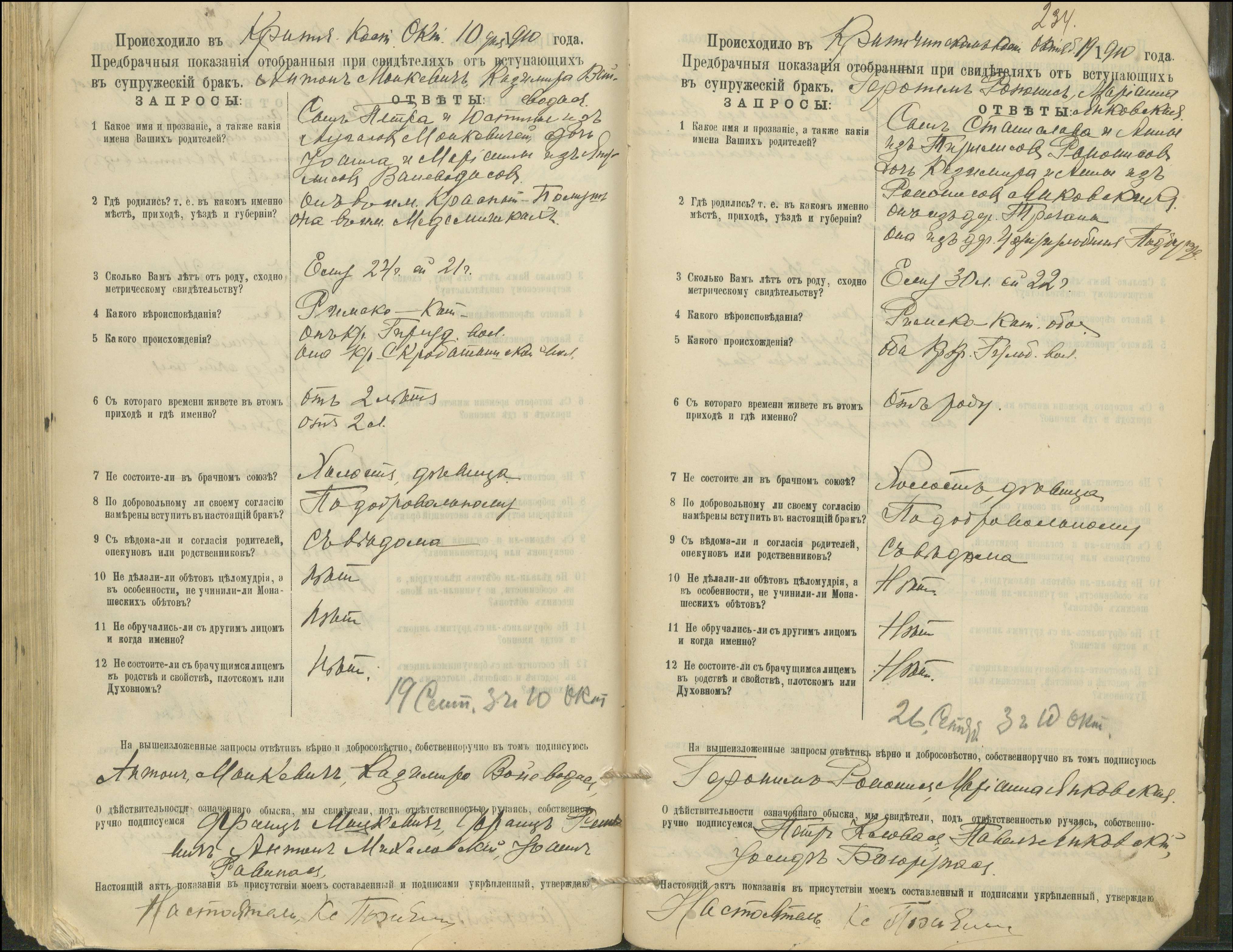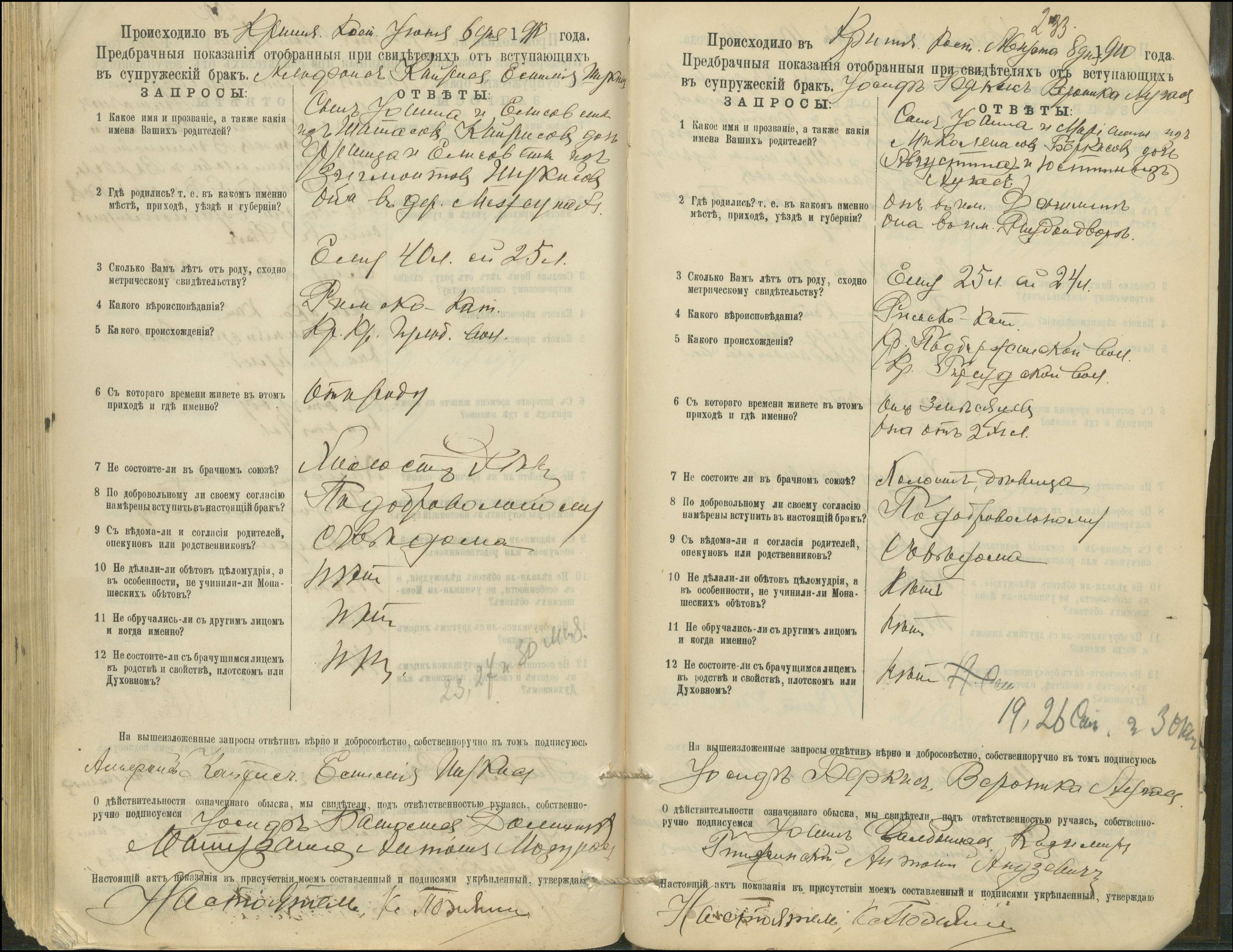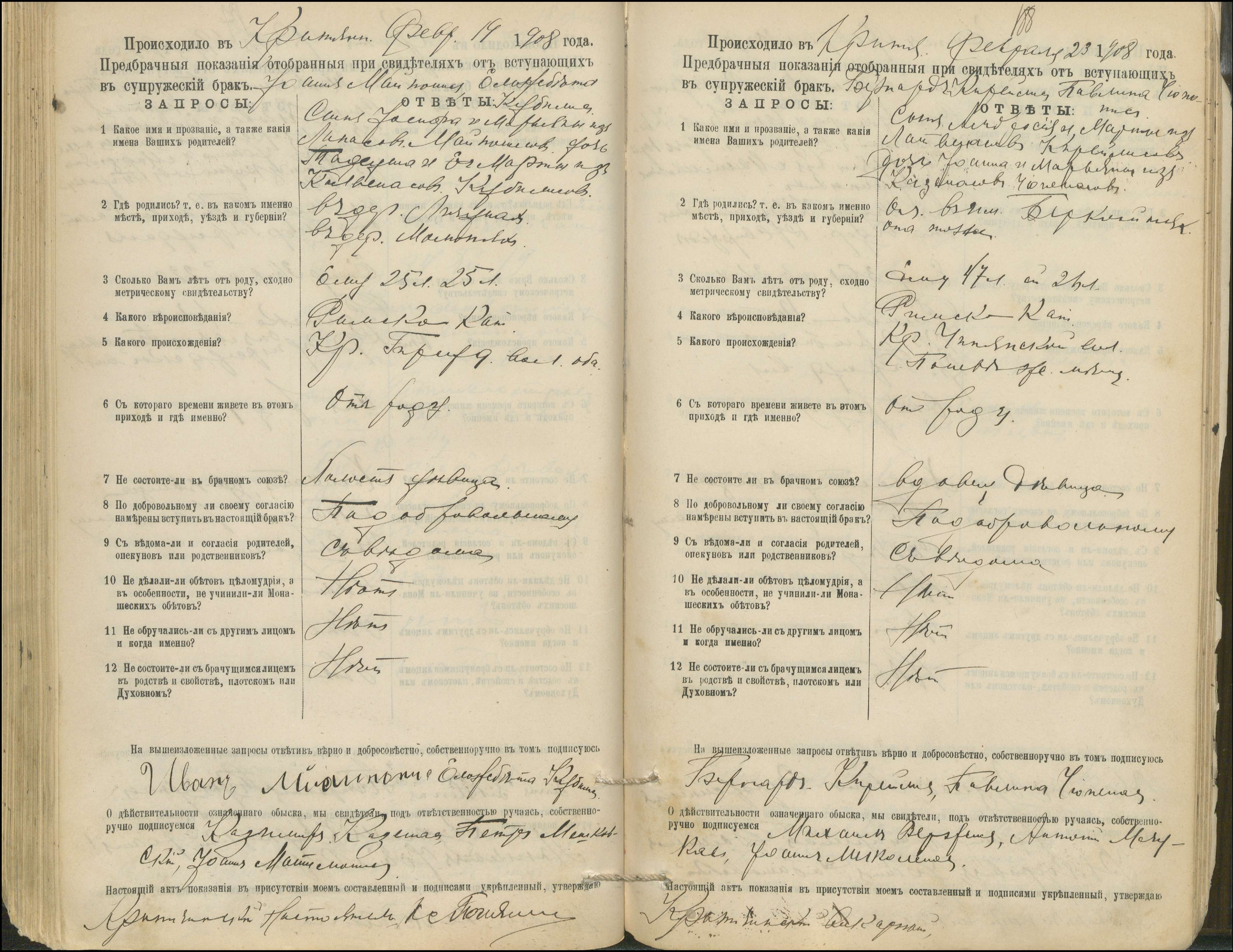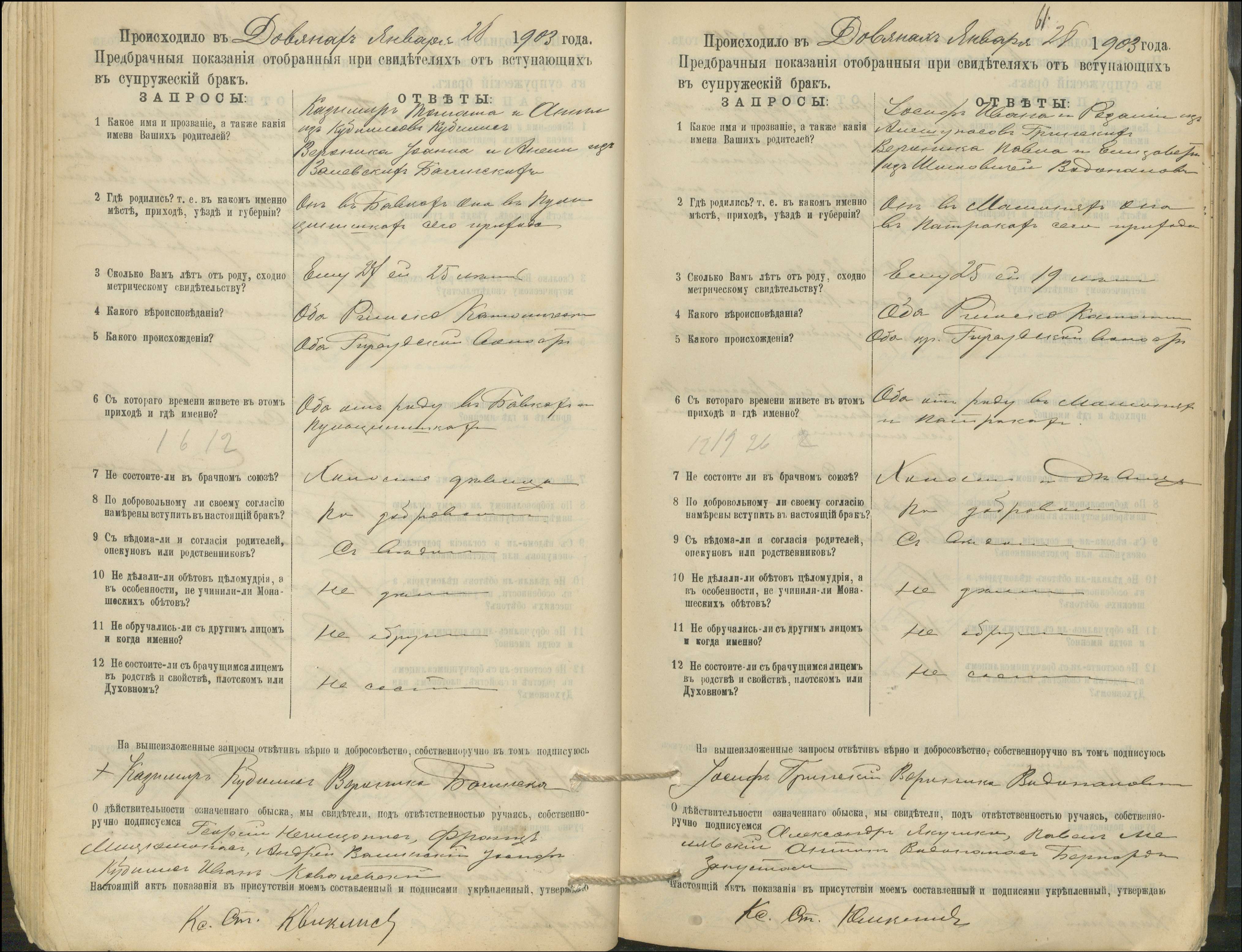 Krinčino Romos katalikų parapijos bažnyčios 1900–1911 metų priešjungtuvinės apklausos knyga