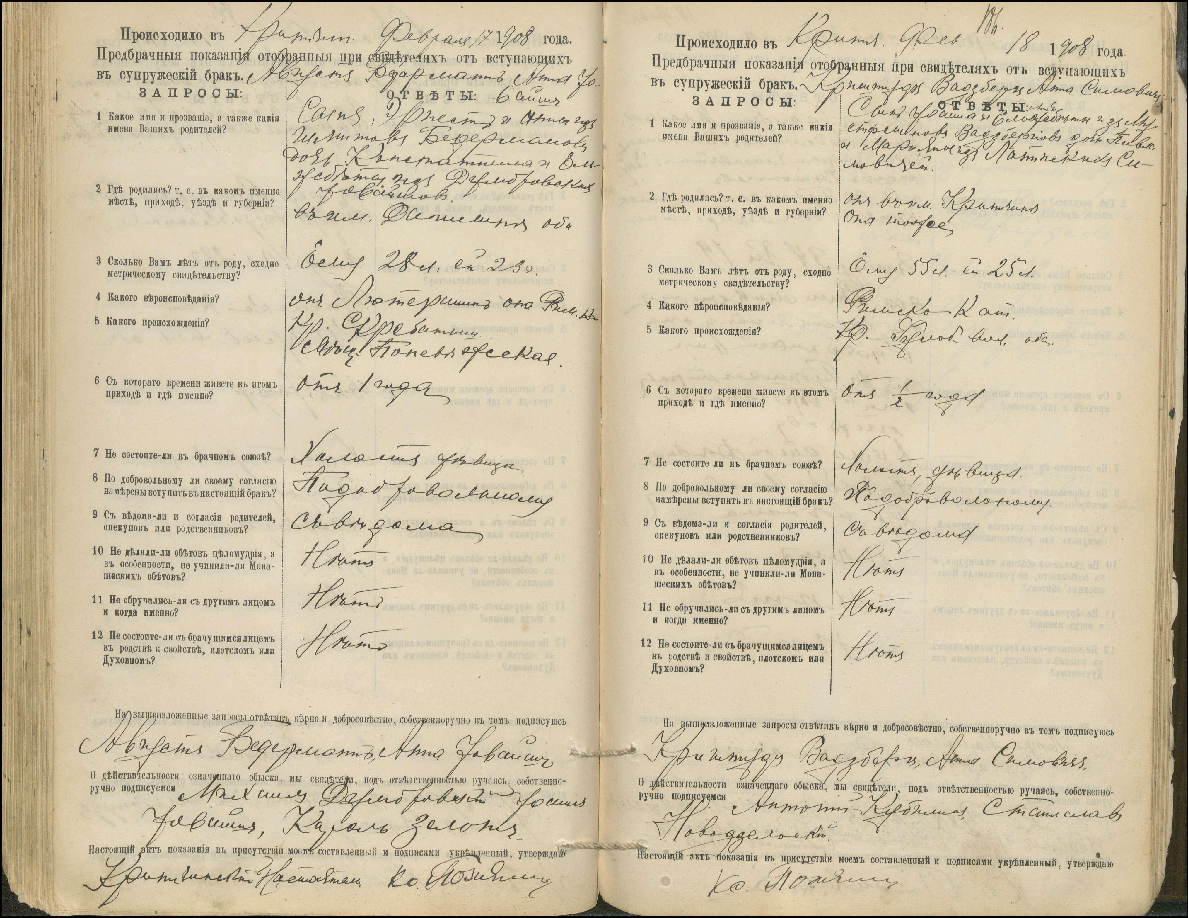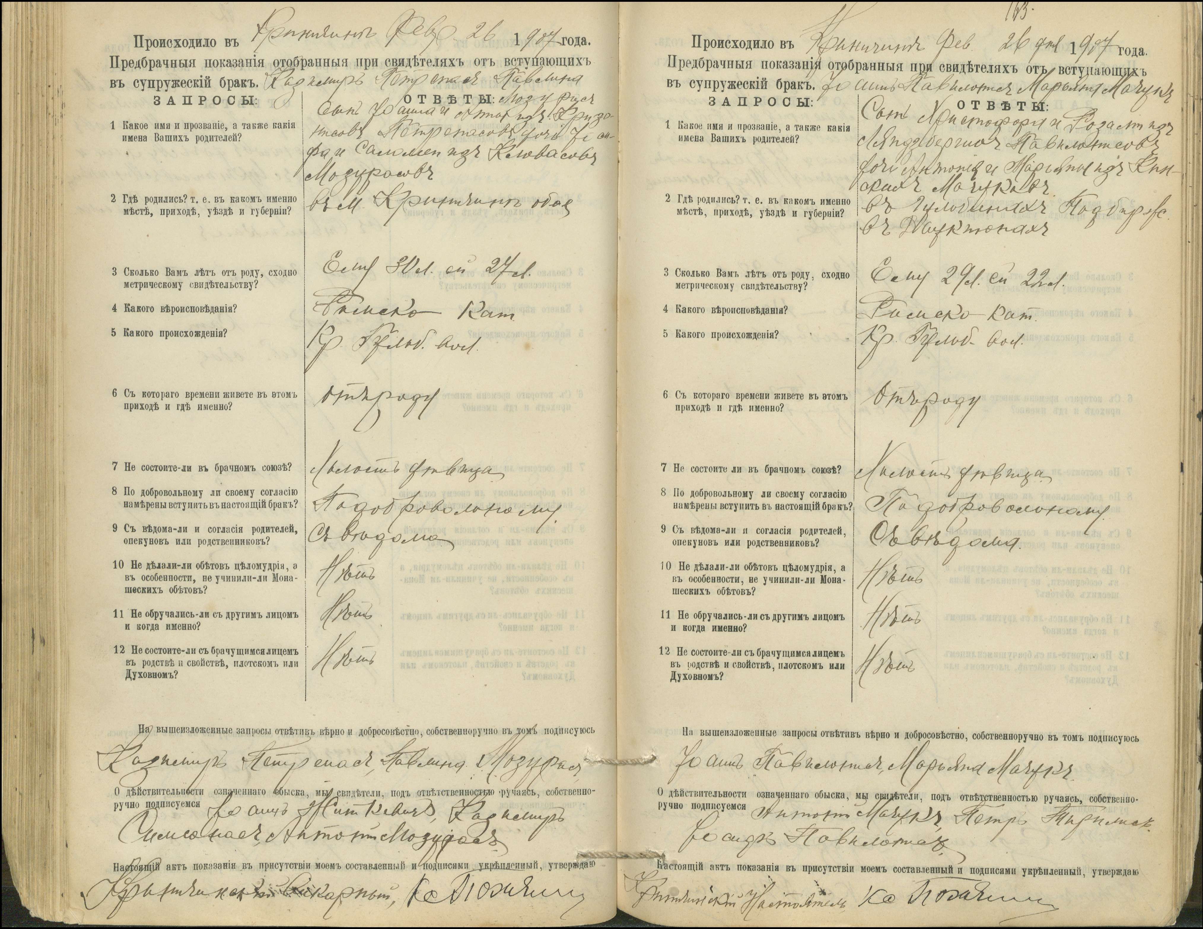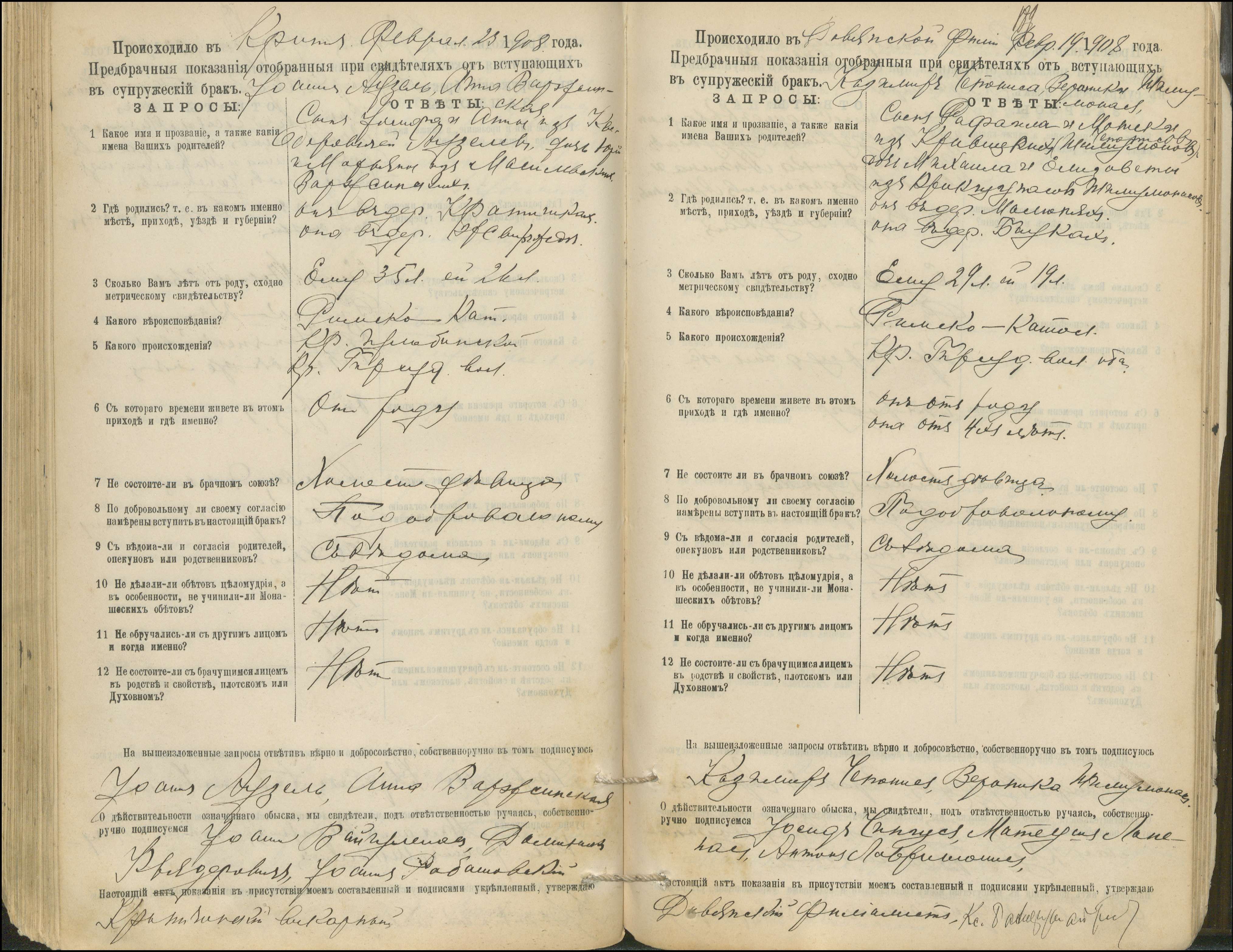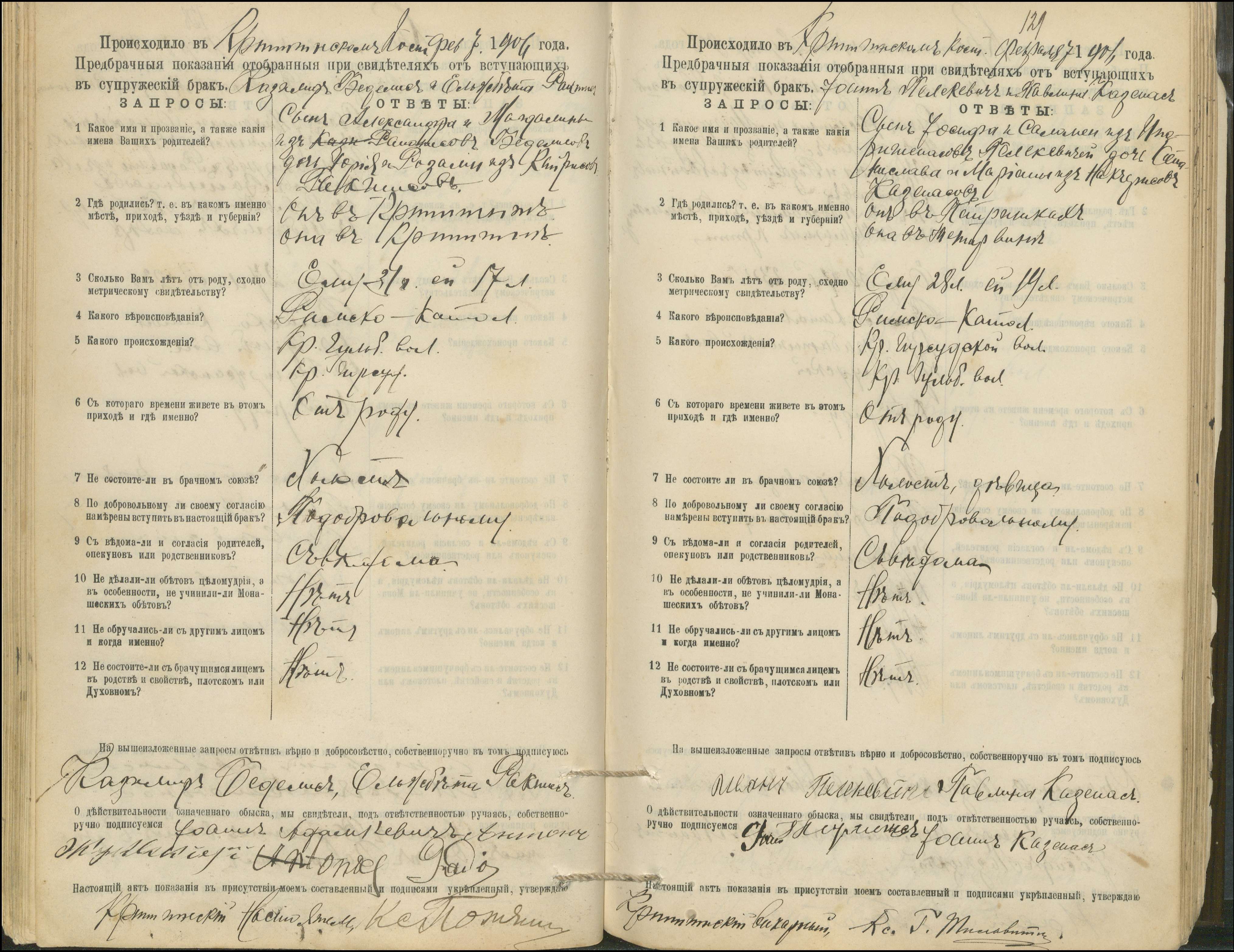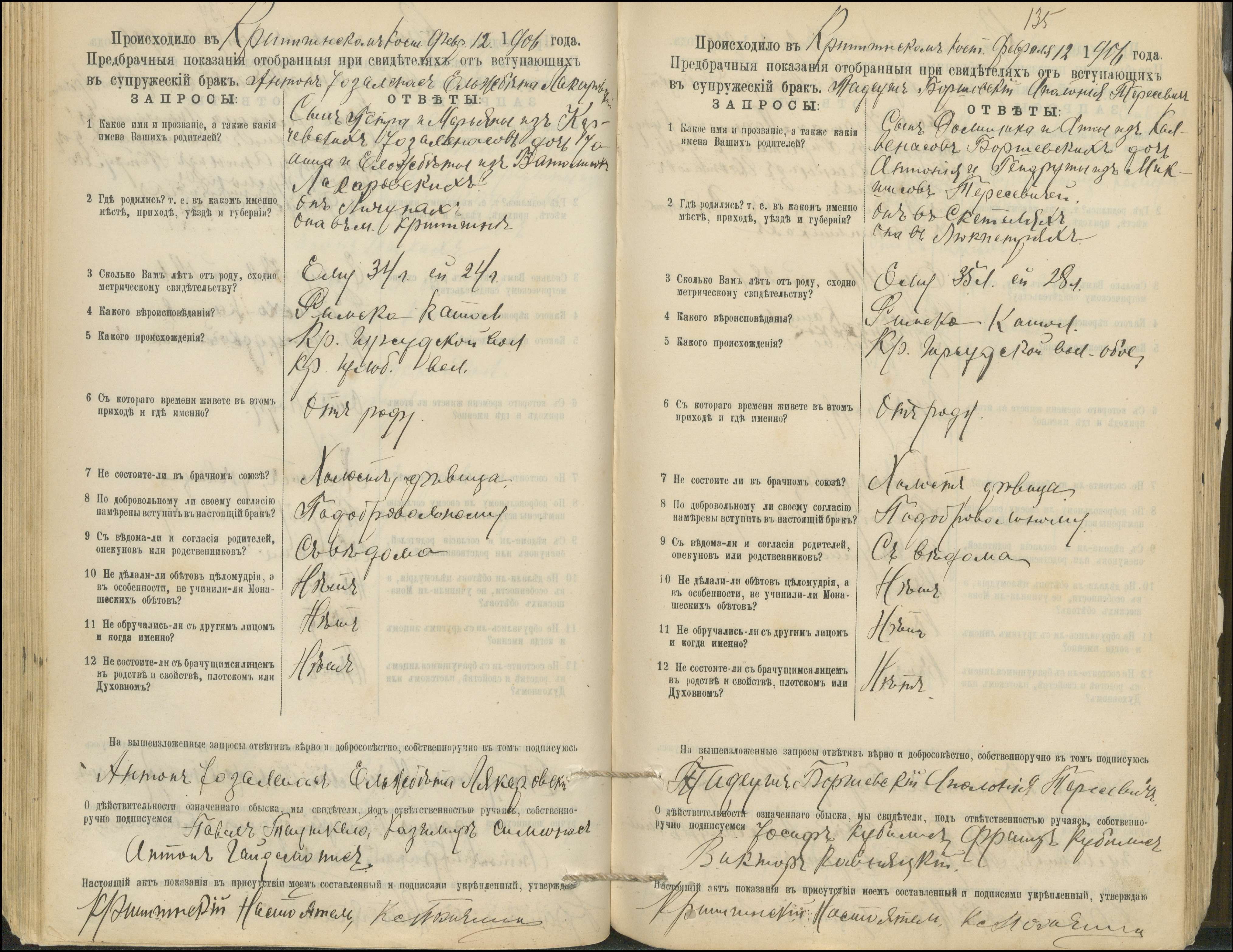 Krinčino Romos katalikų parapijos bažnyčios 1900–1911 metų priešjungtuvinės apklausos knyga