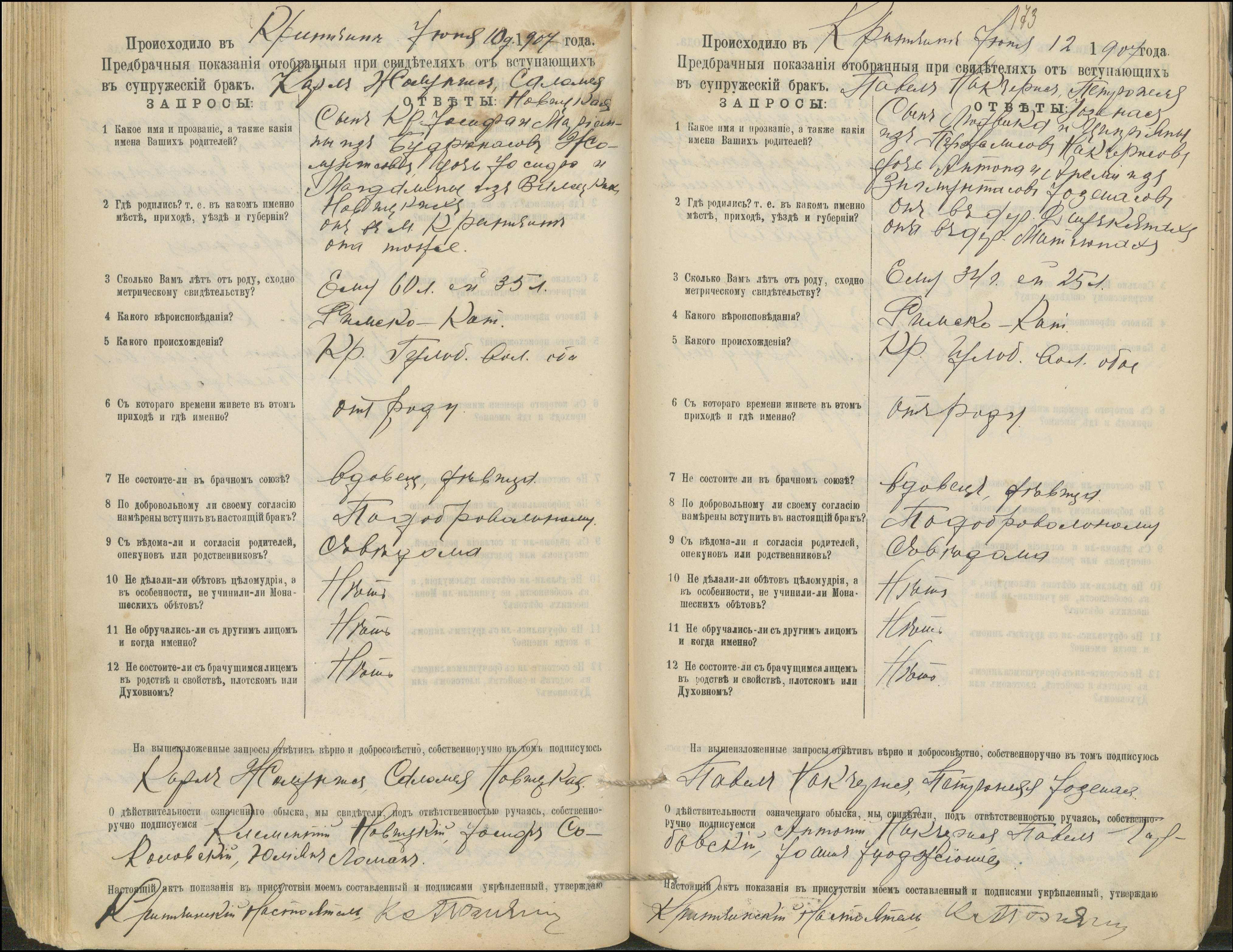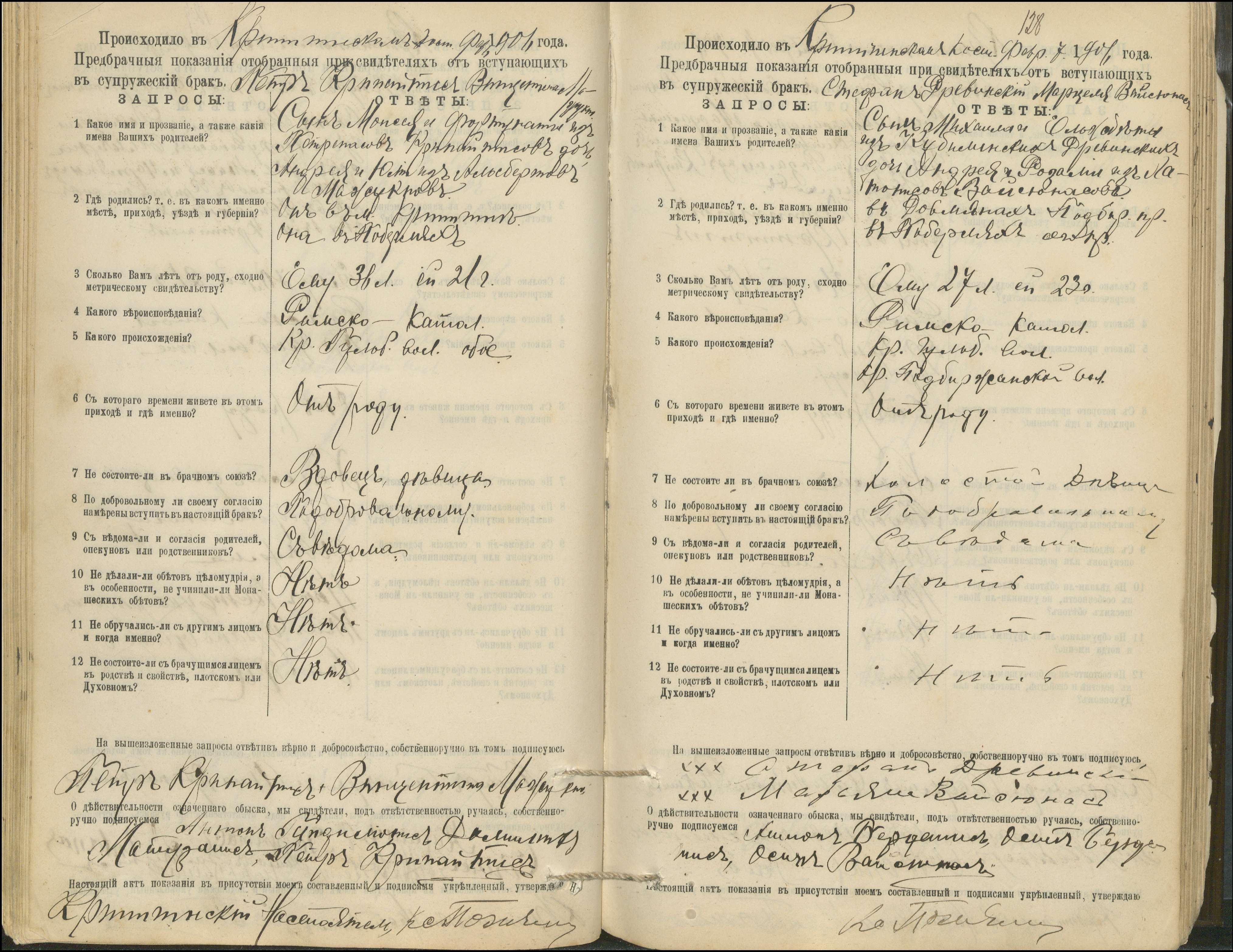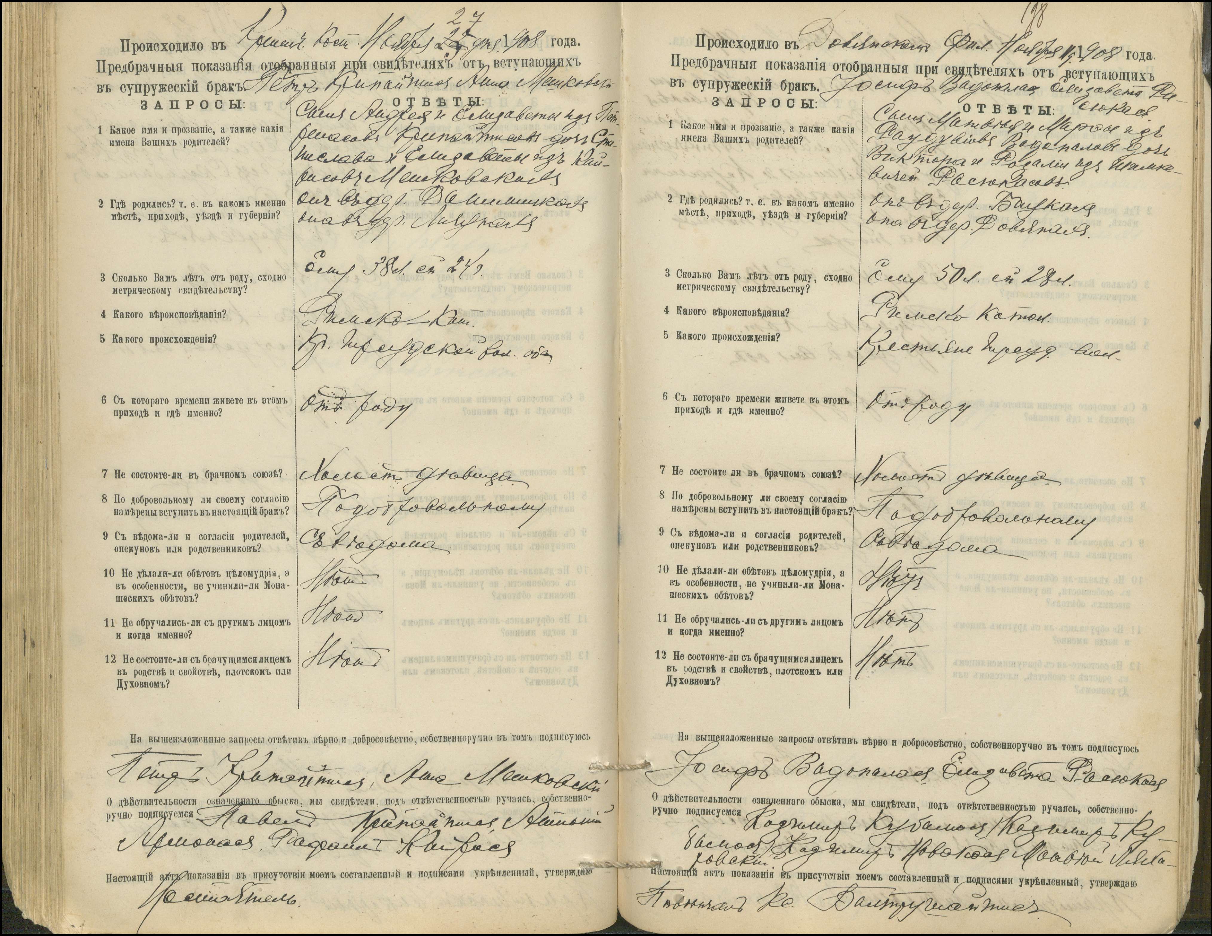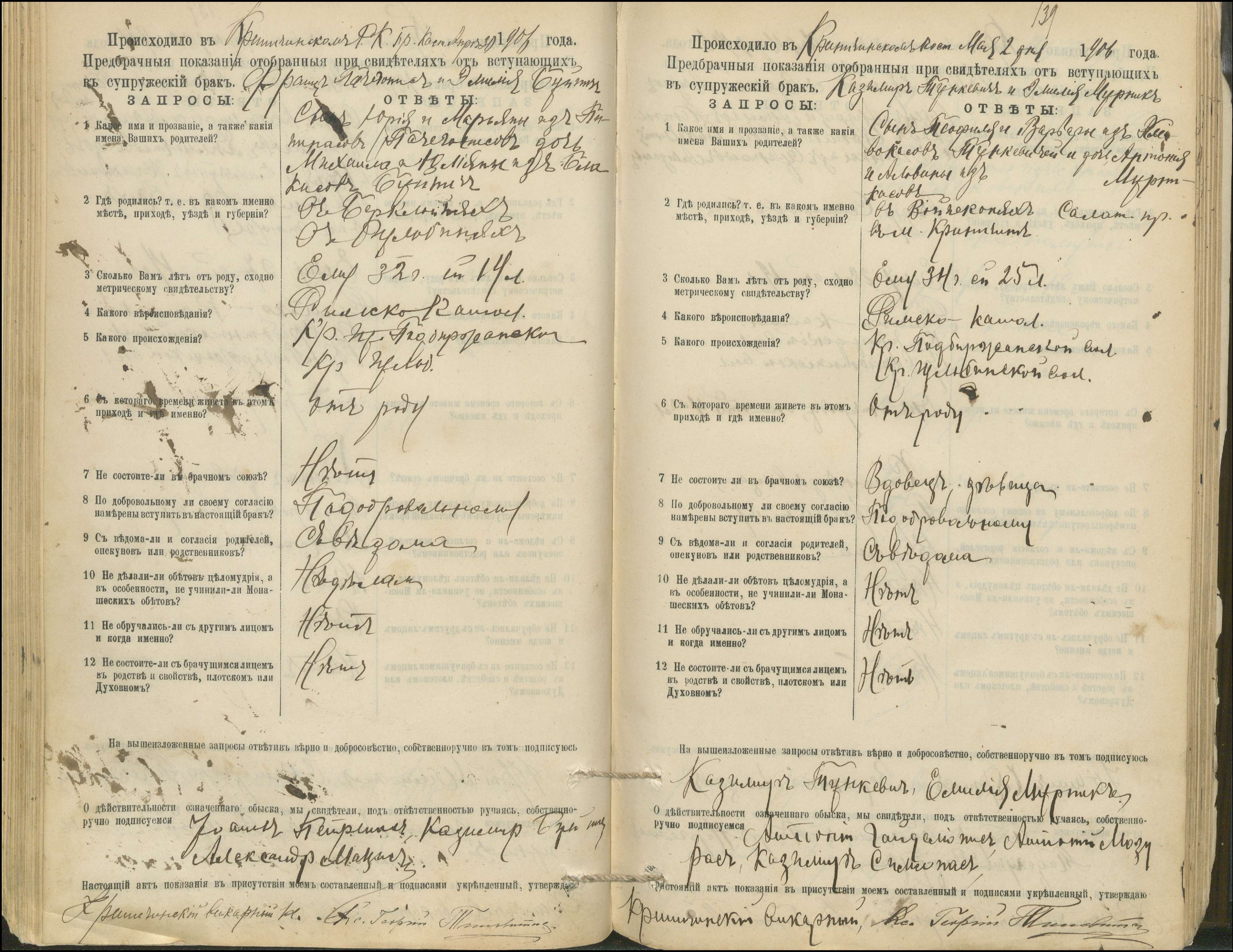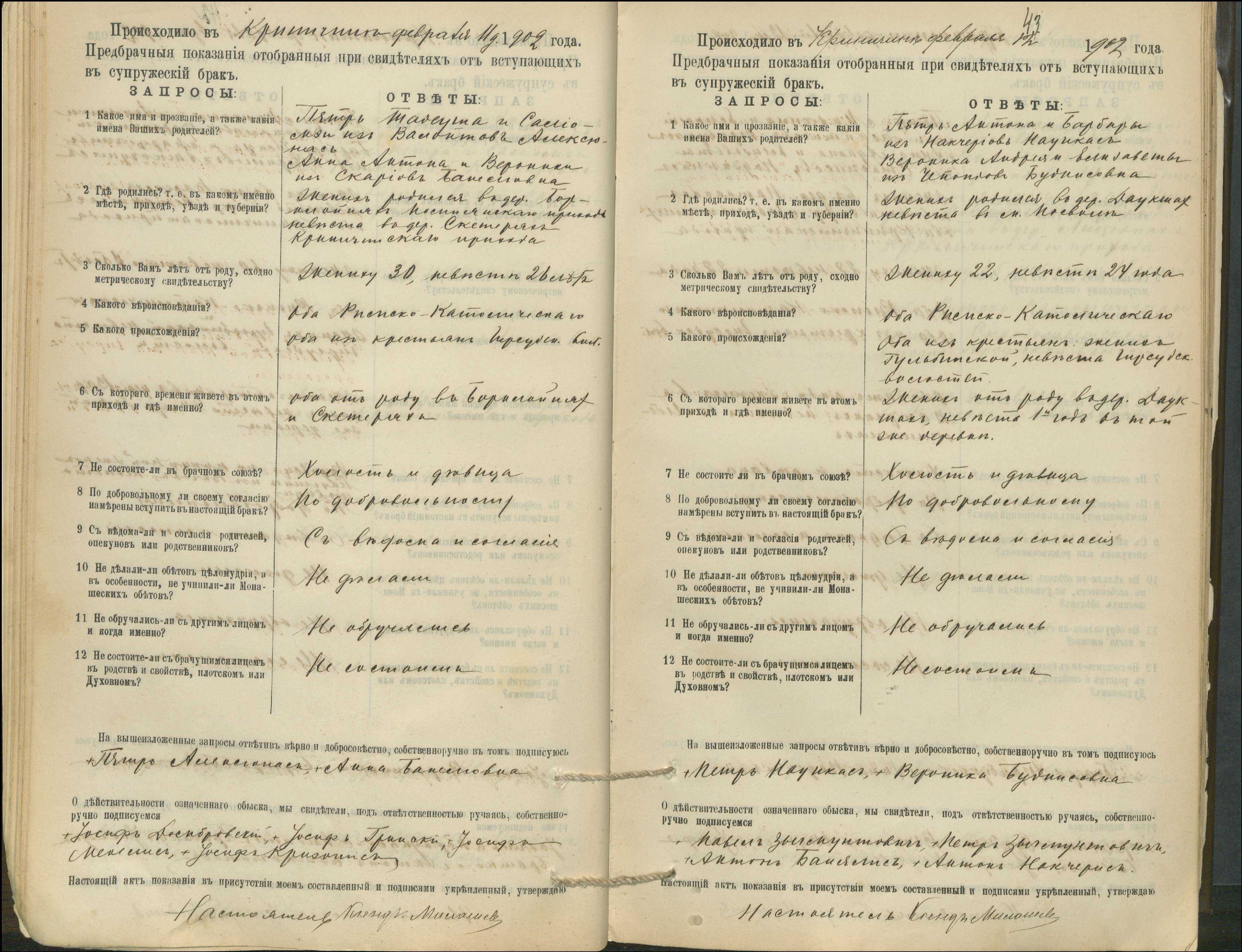 Krinčino Romos katalikų parapijos bažnyčios 1900–1911 metų priešjungtuvinės apklausos knyga