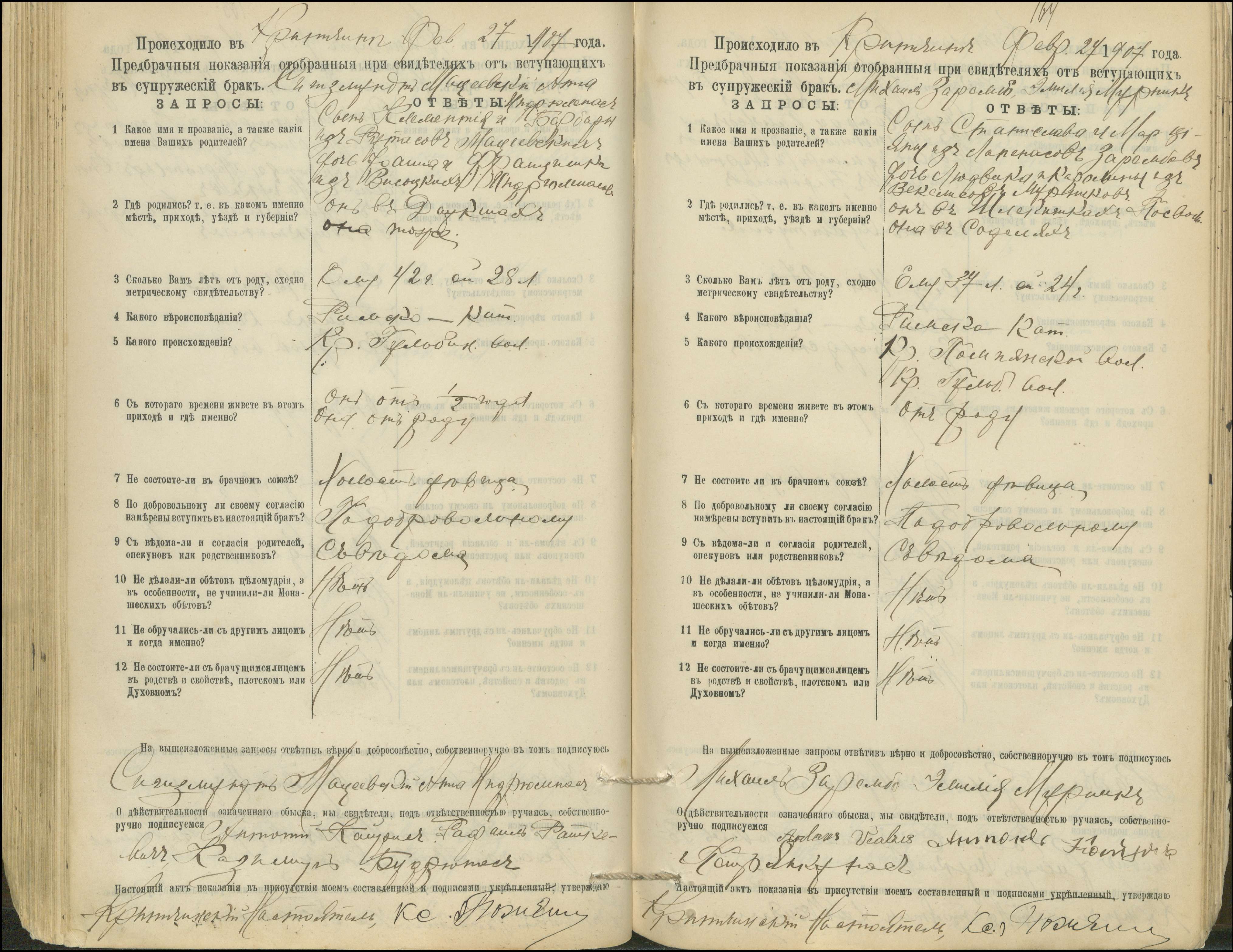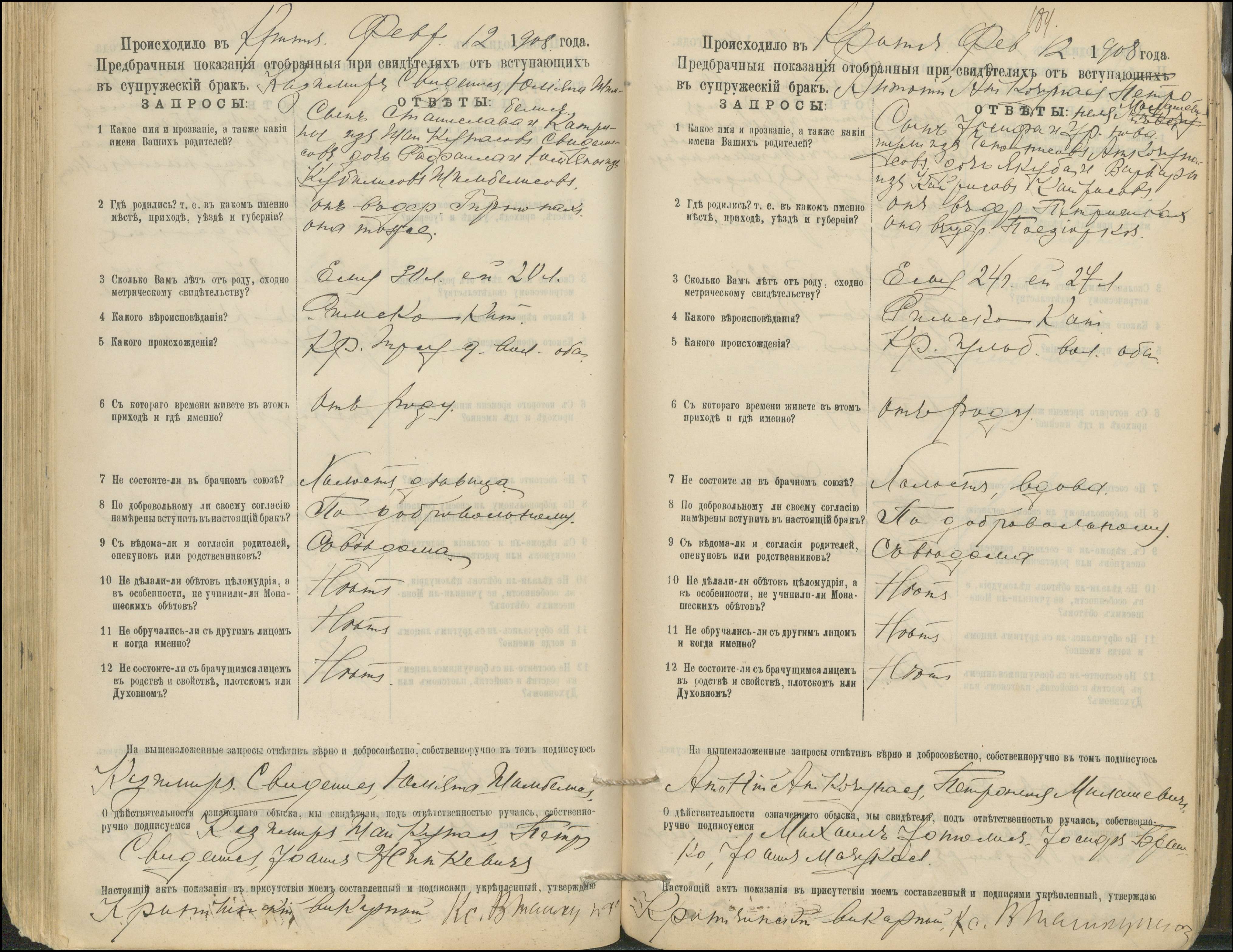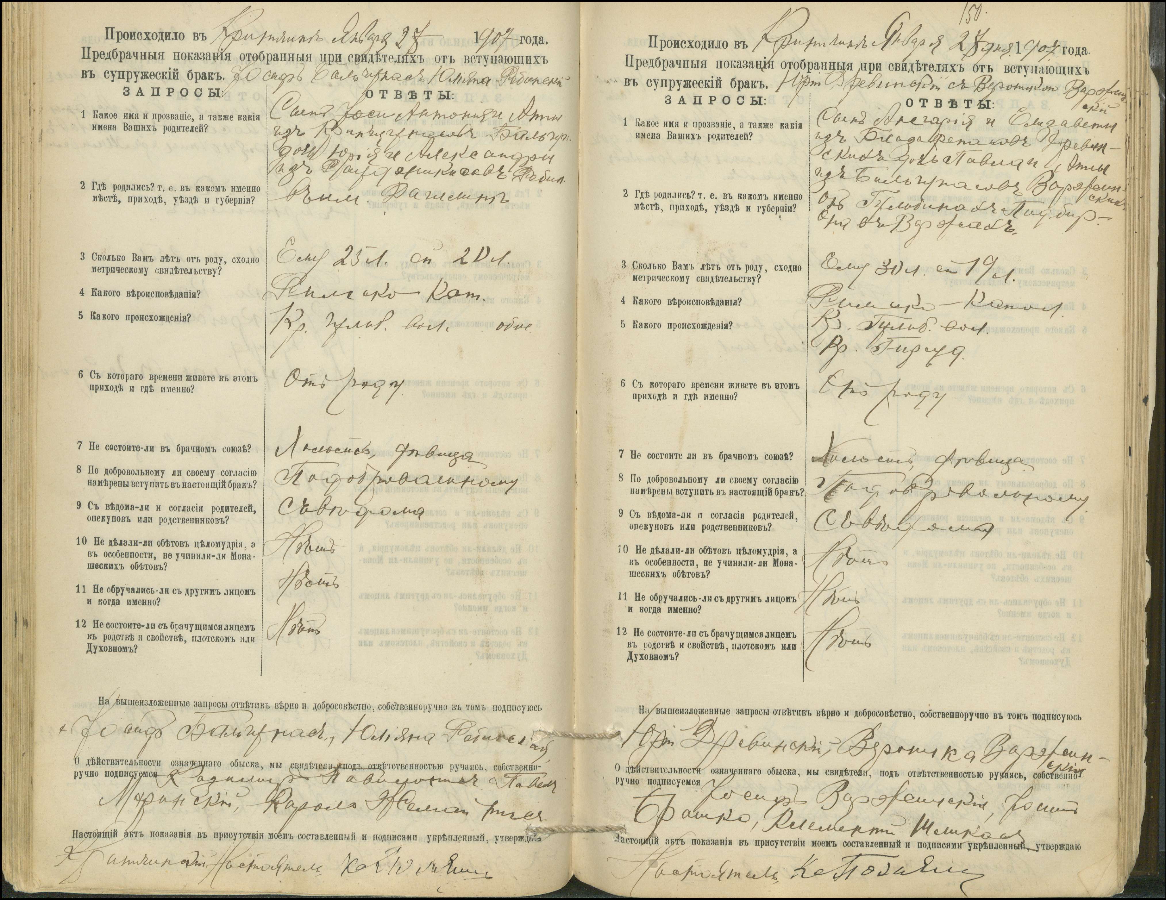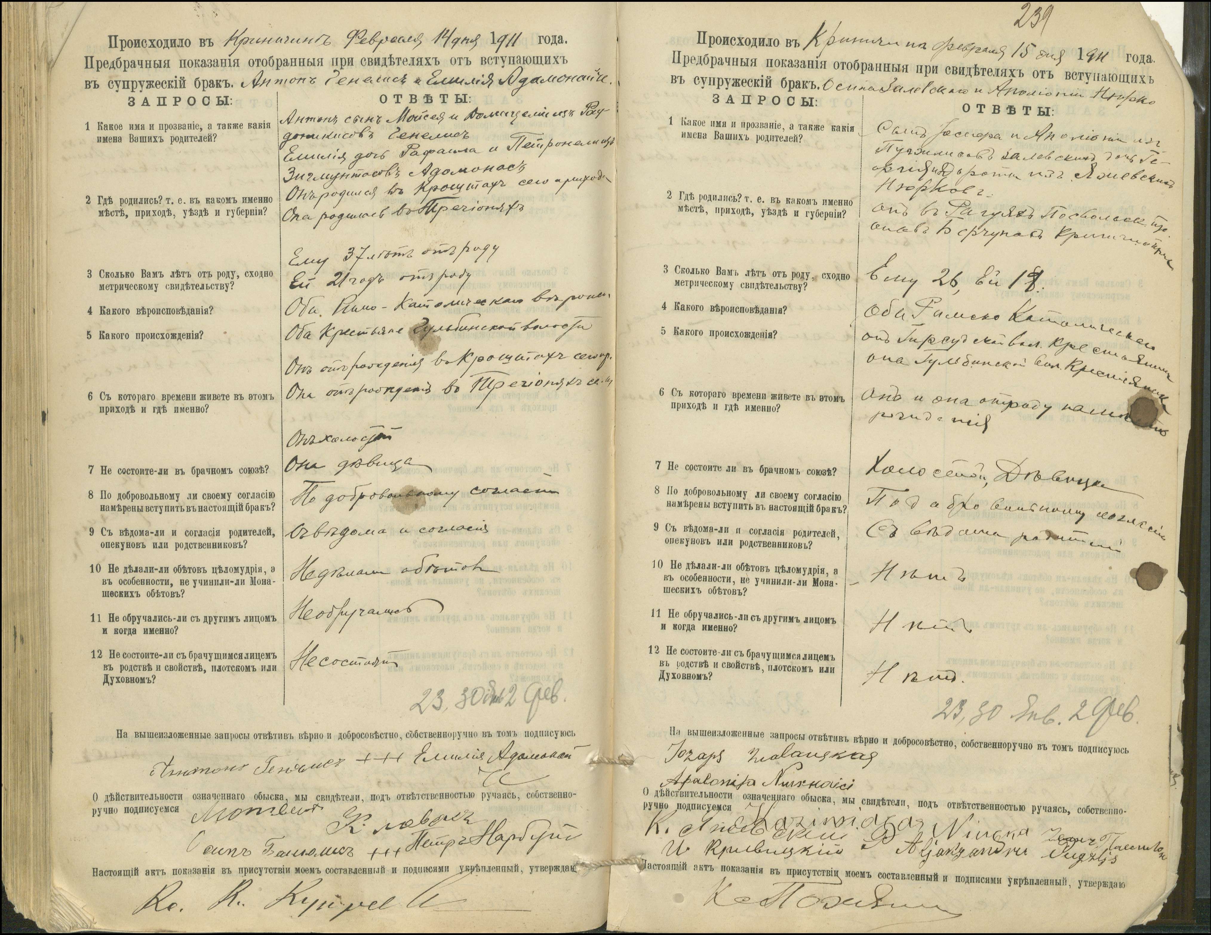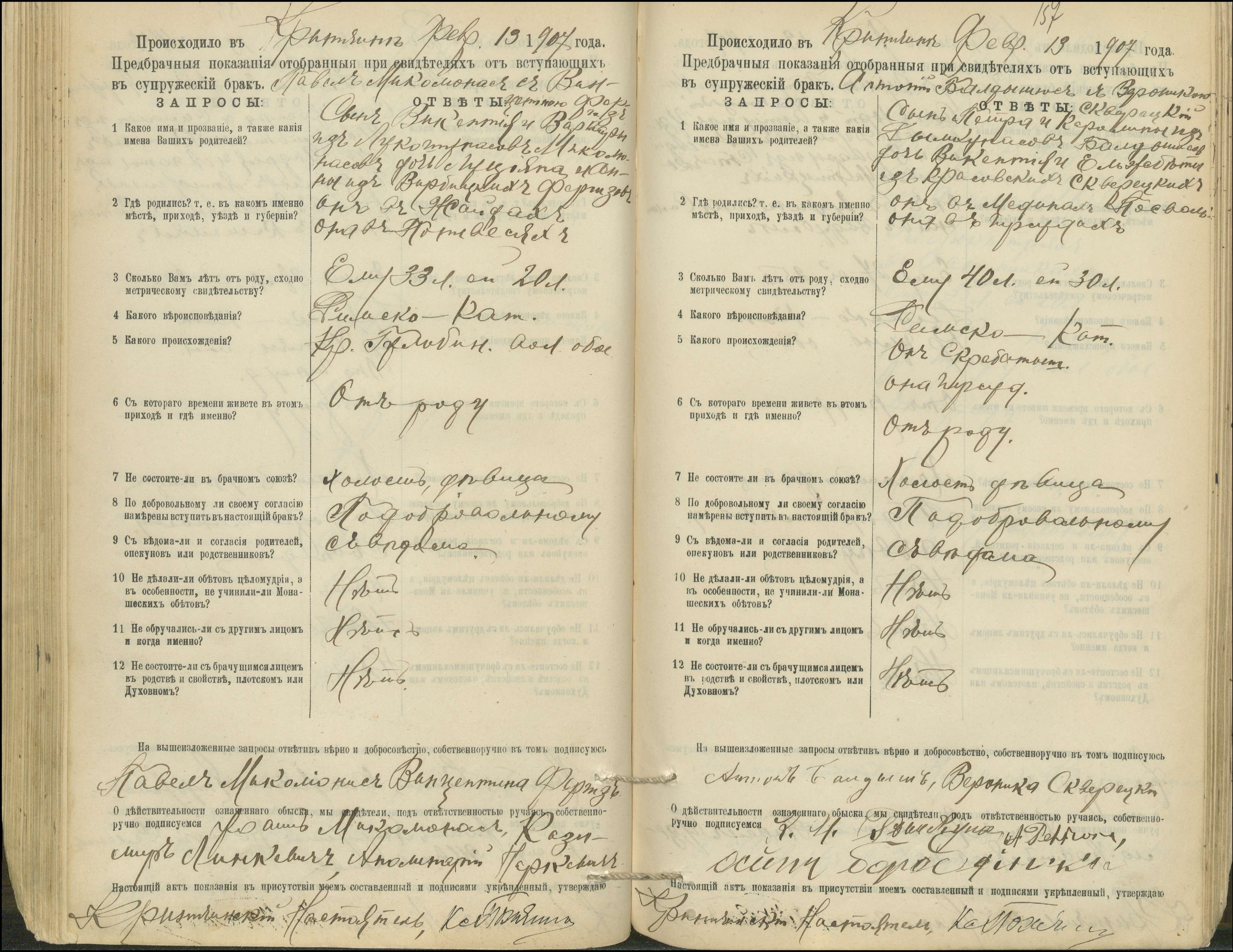 Krinčino Romos katalikų parapijos bažnyčios 1900–1911 metų priešjungtuvinės apklausos knyga