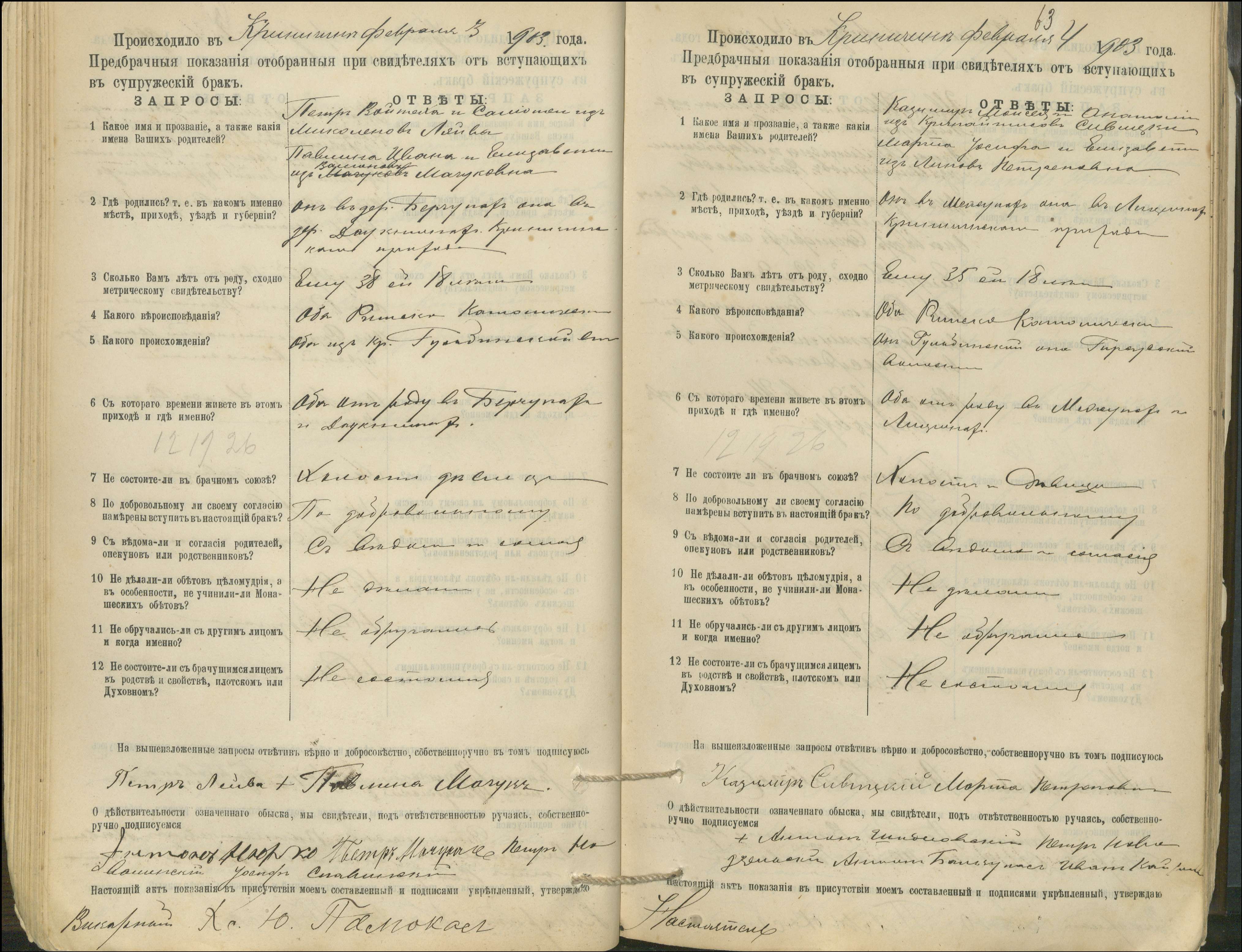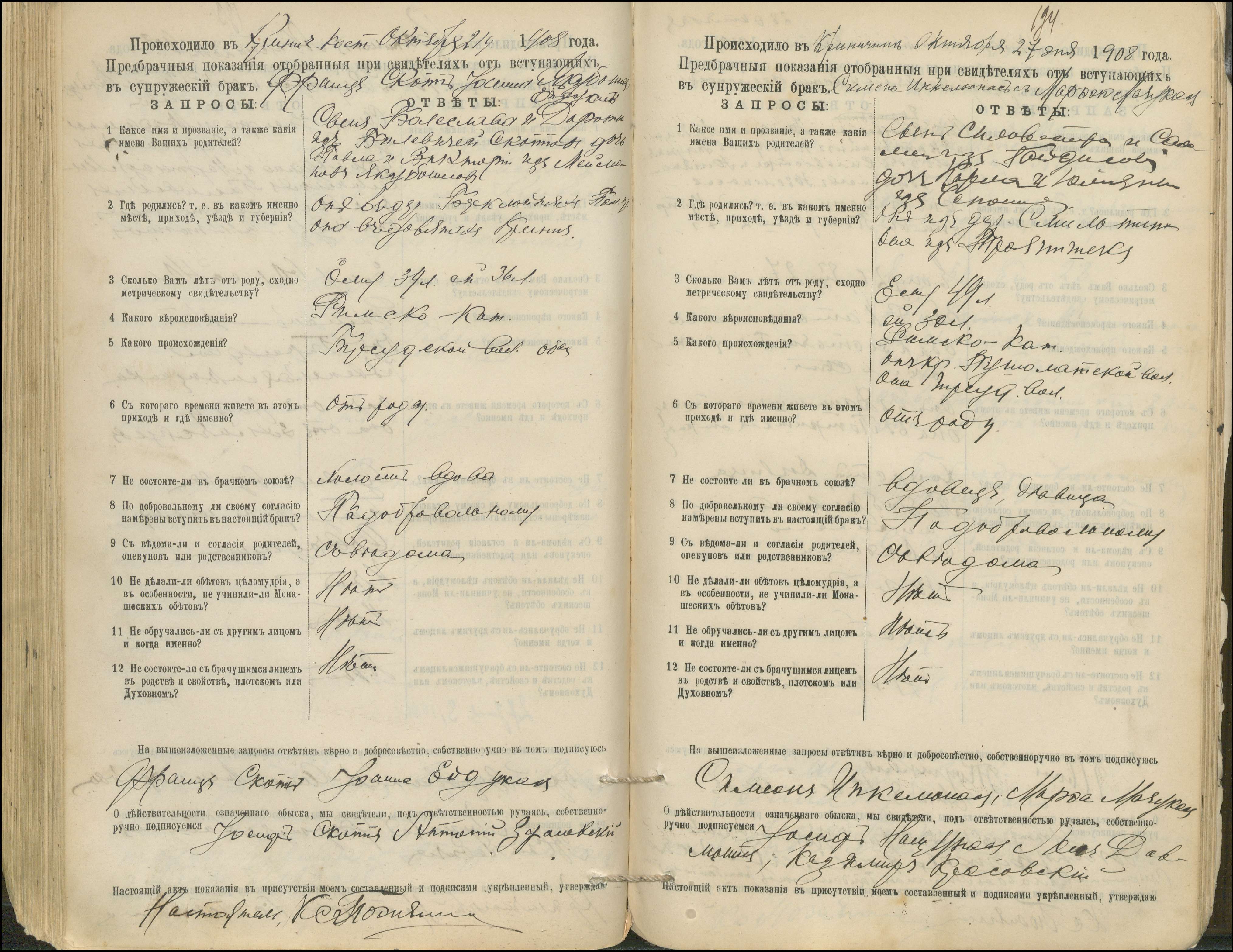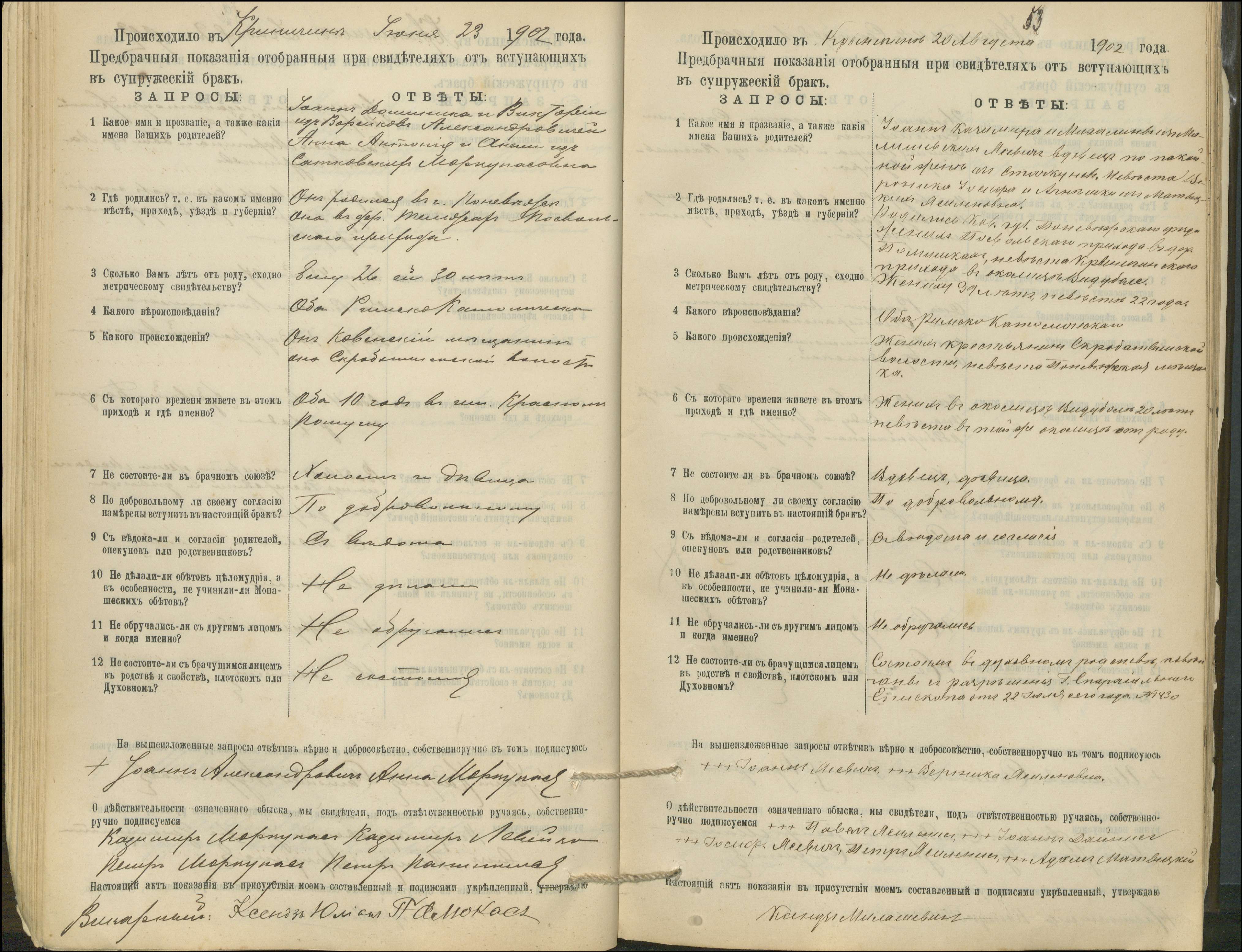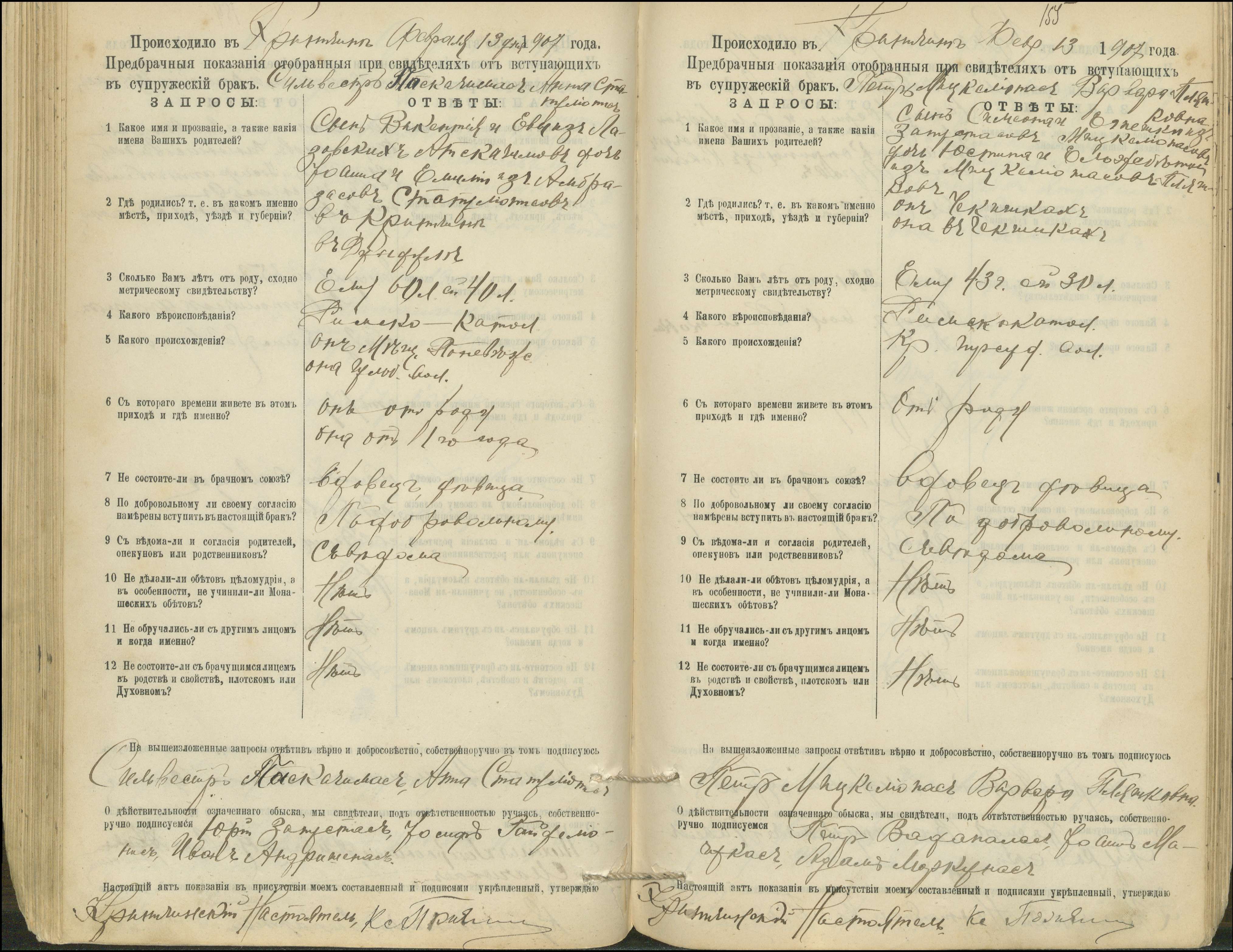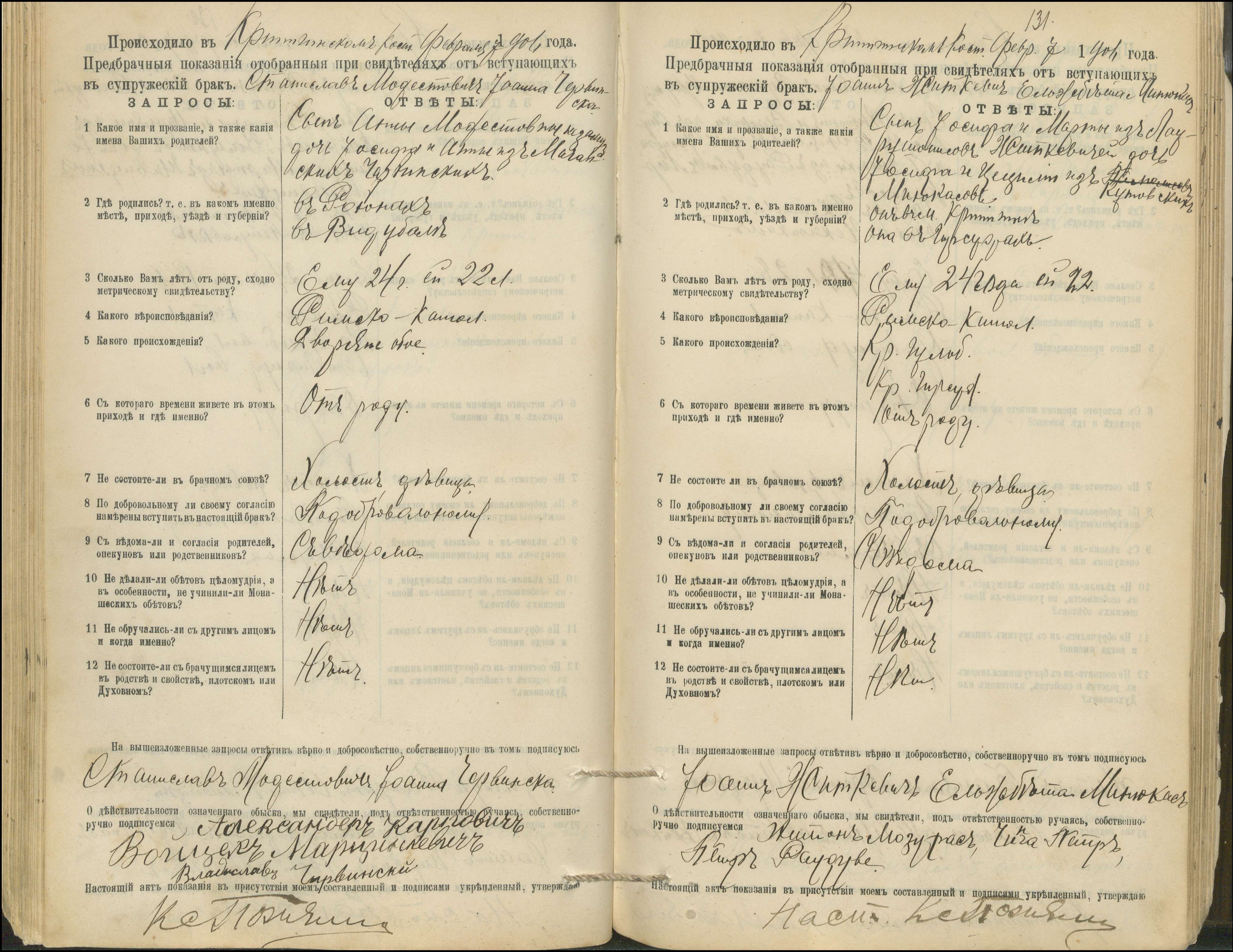 Krinčino Romos katalikų parapijos bažnyčios 1900–1911 metų priešjungtuvinės apklausos knyga
