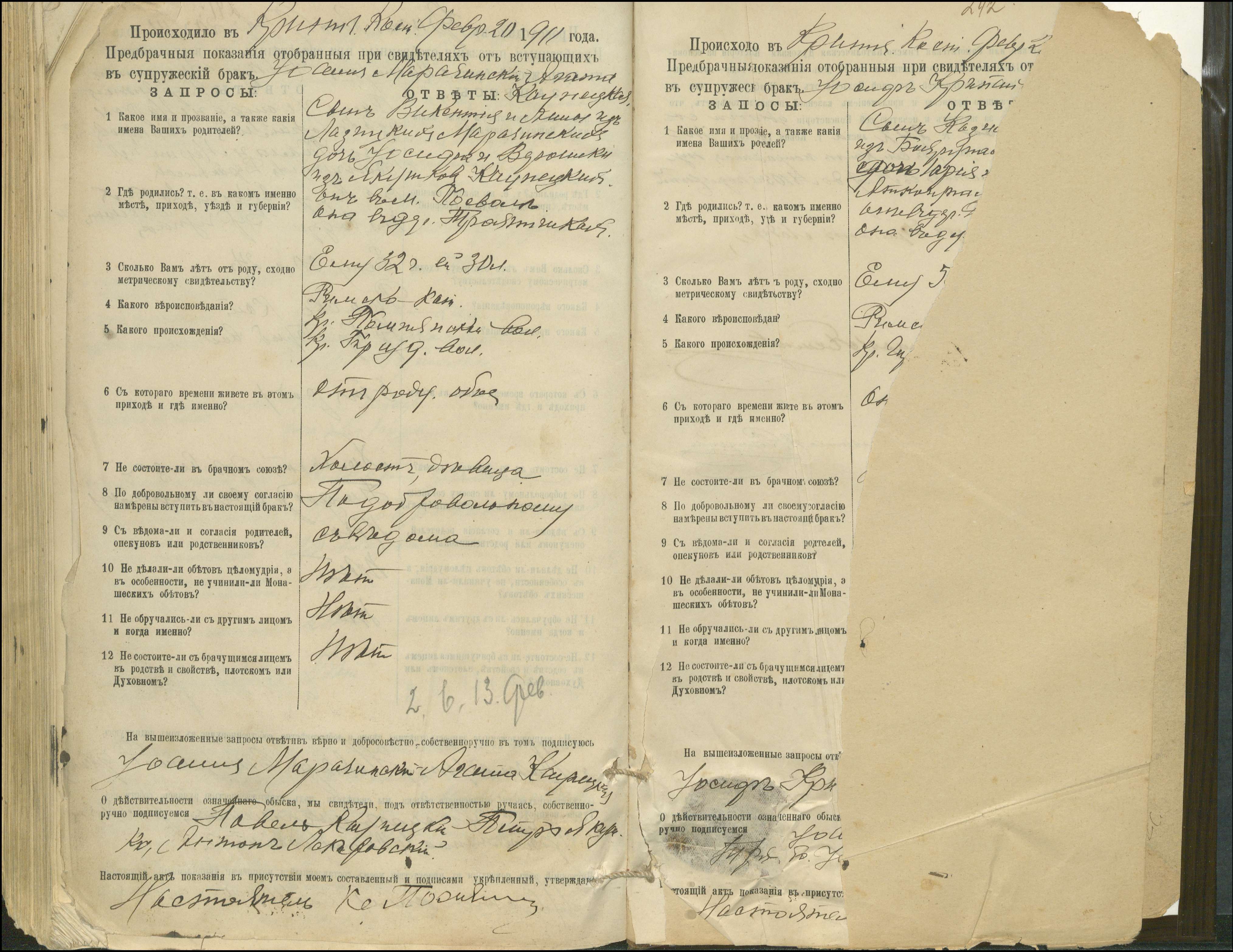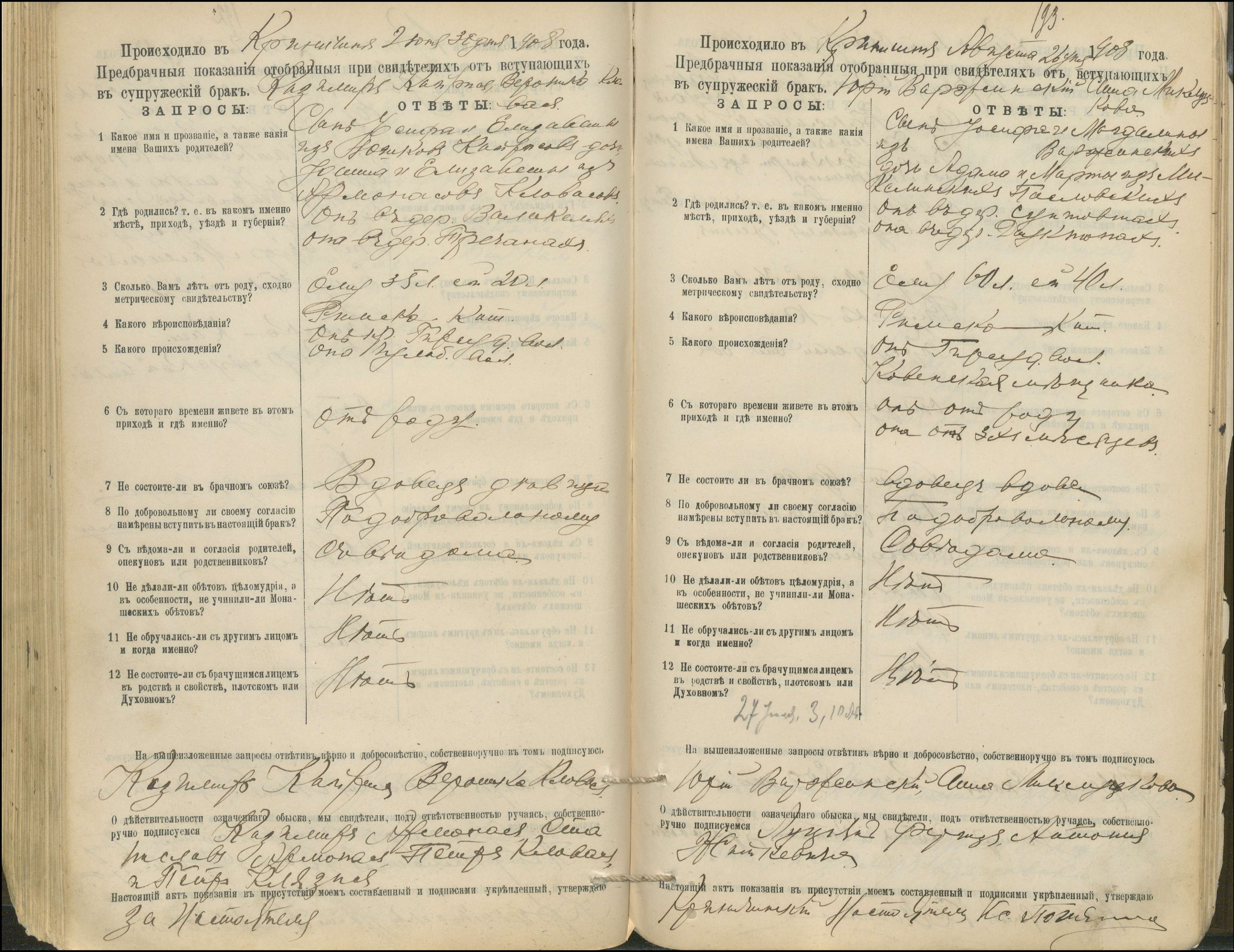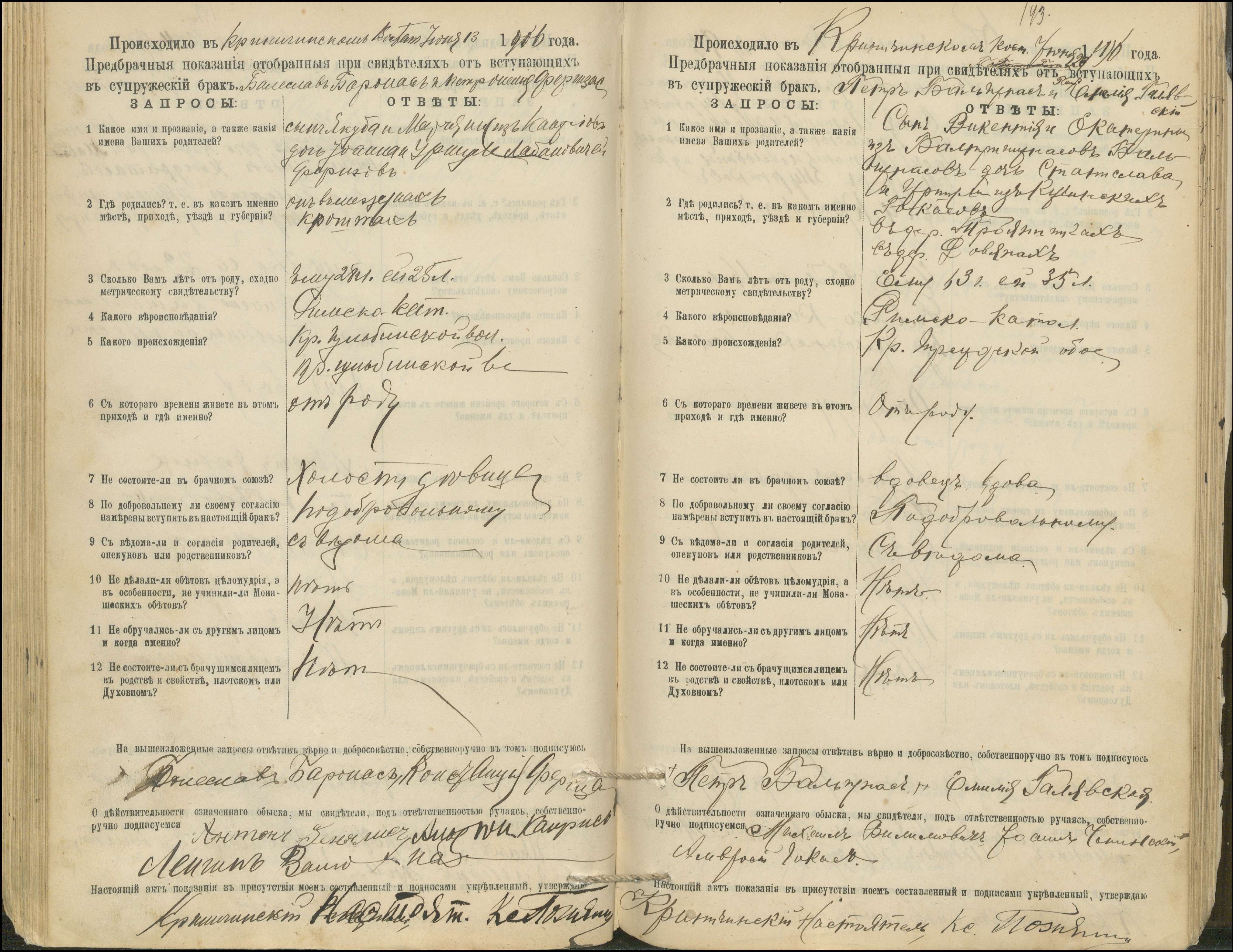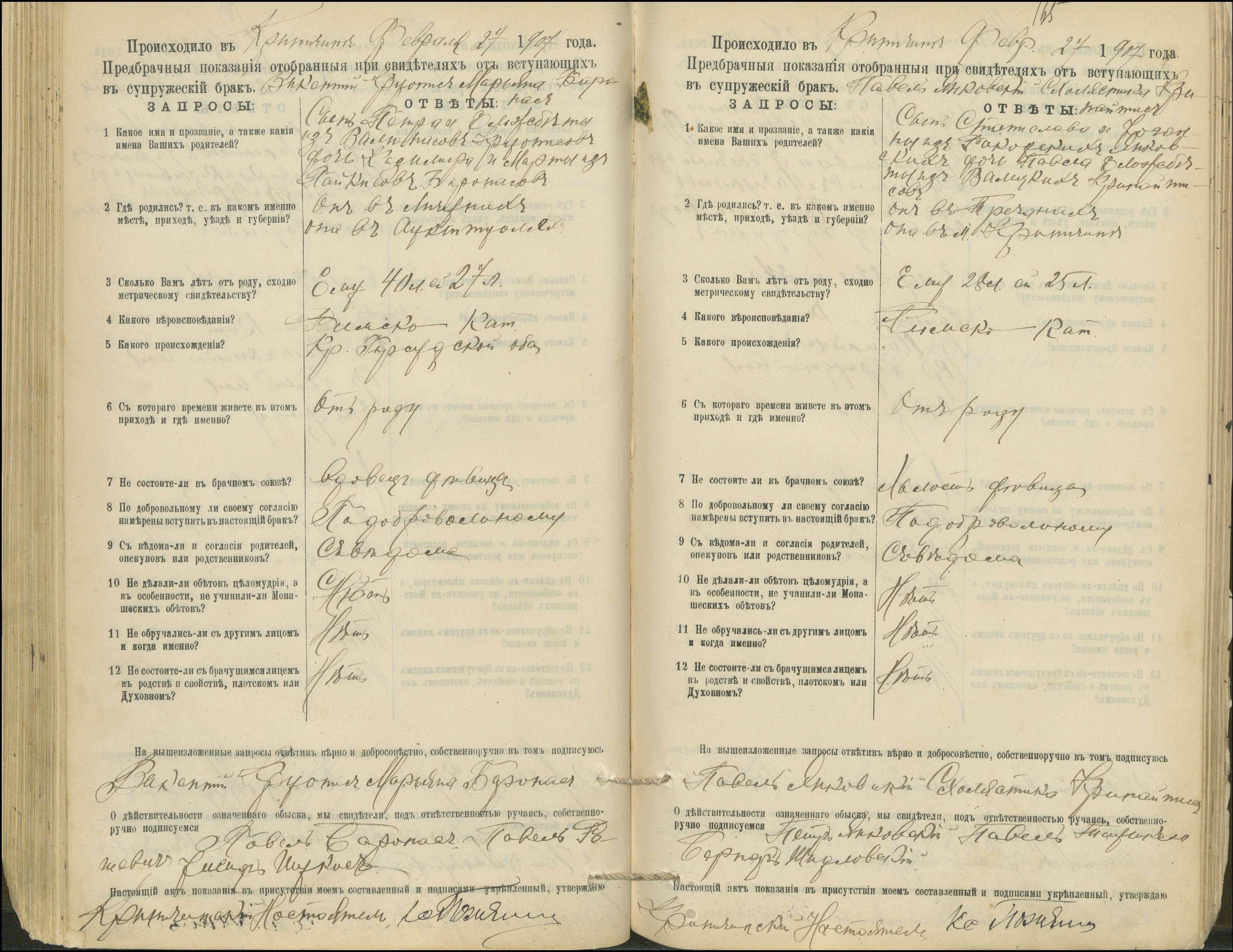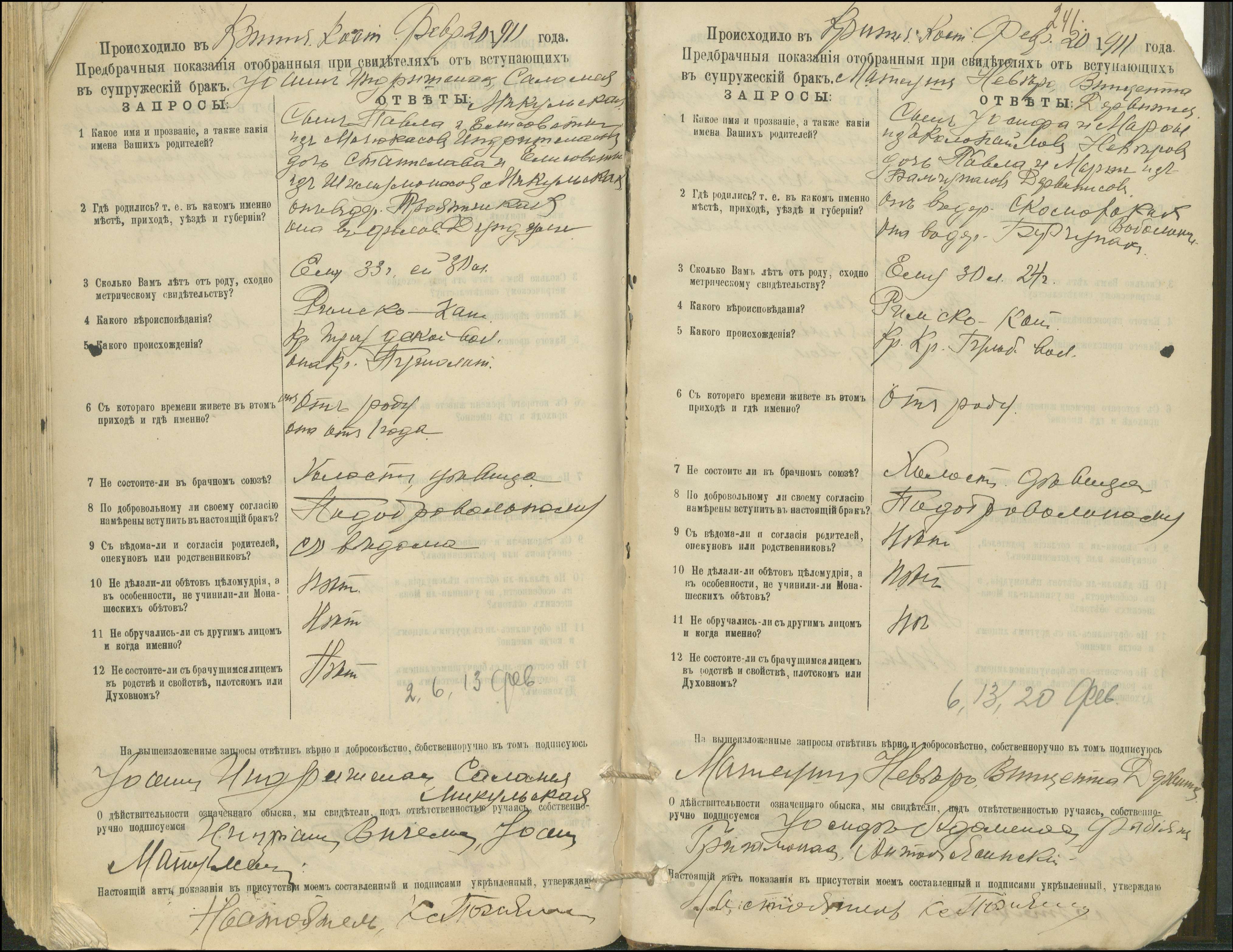 Krinčino Romos katalikų parapijos bažnyčios 1900–1911 metų priešjungtuvinės apklausos knyga