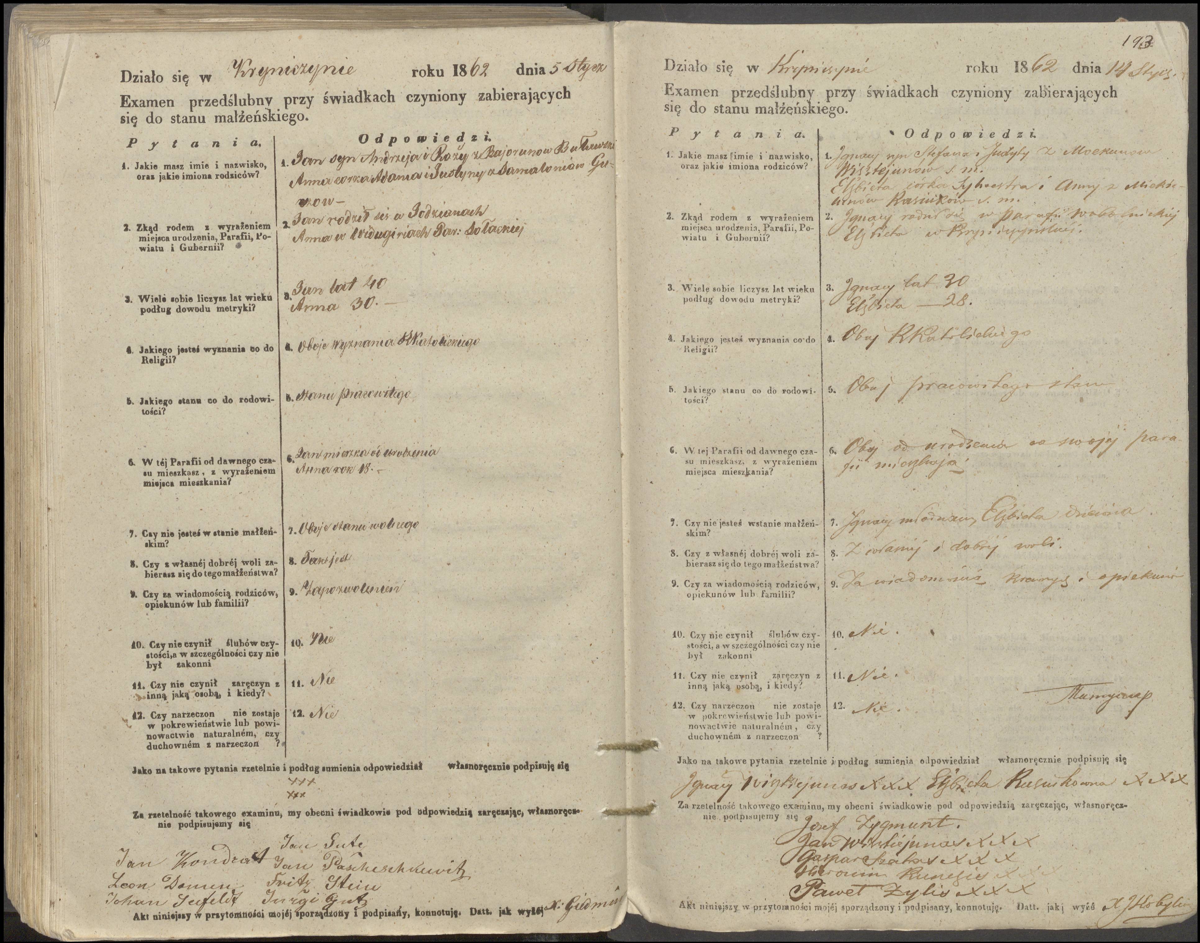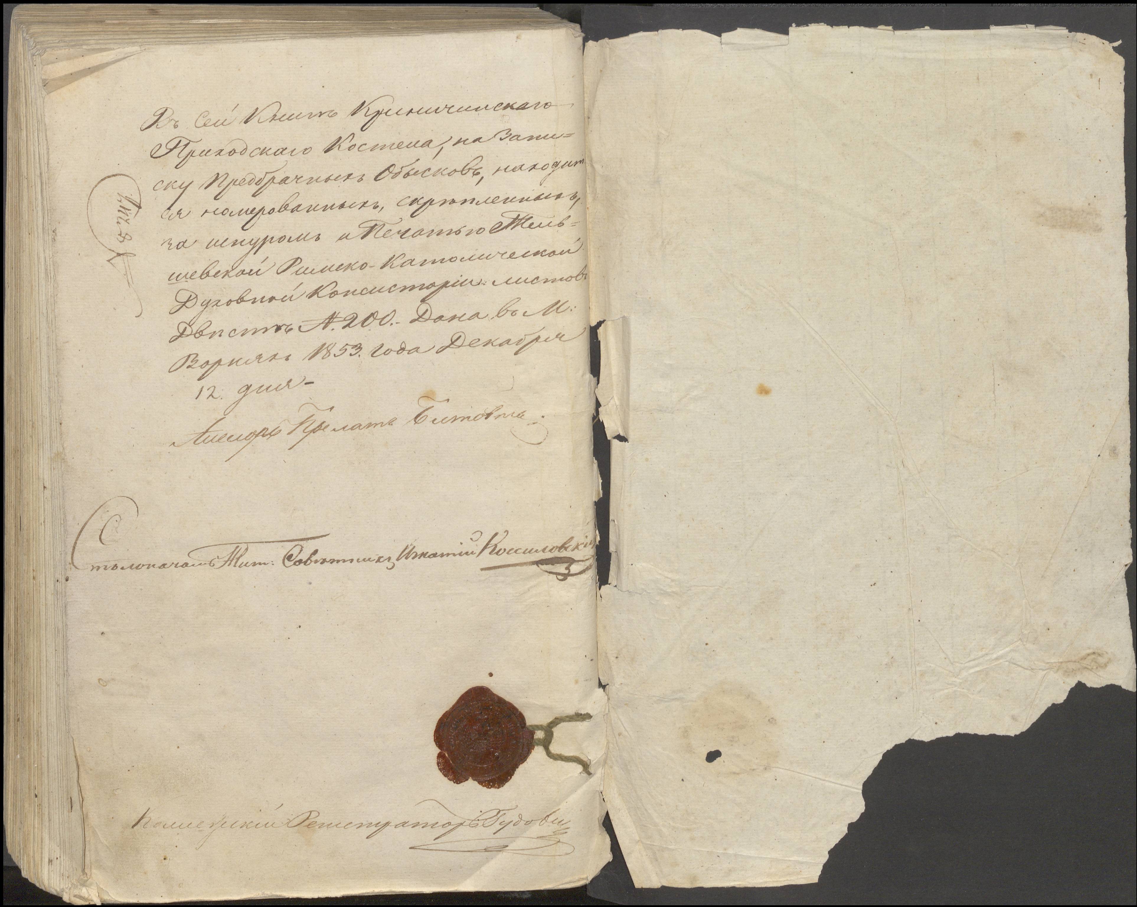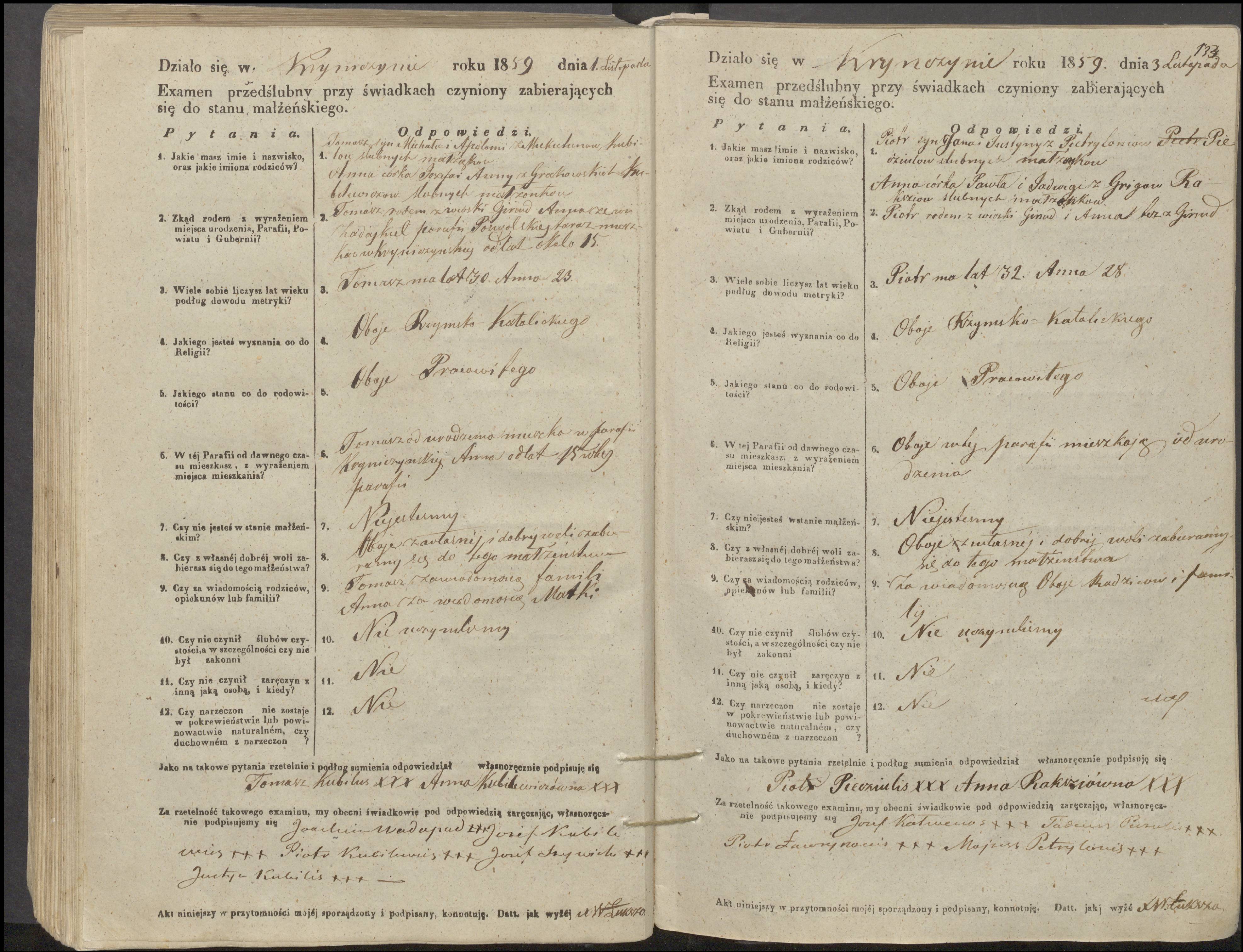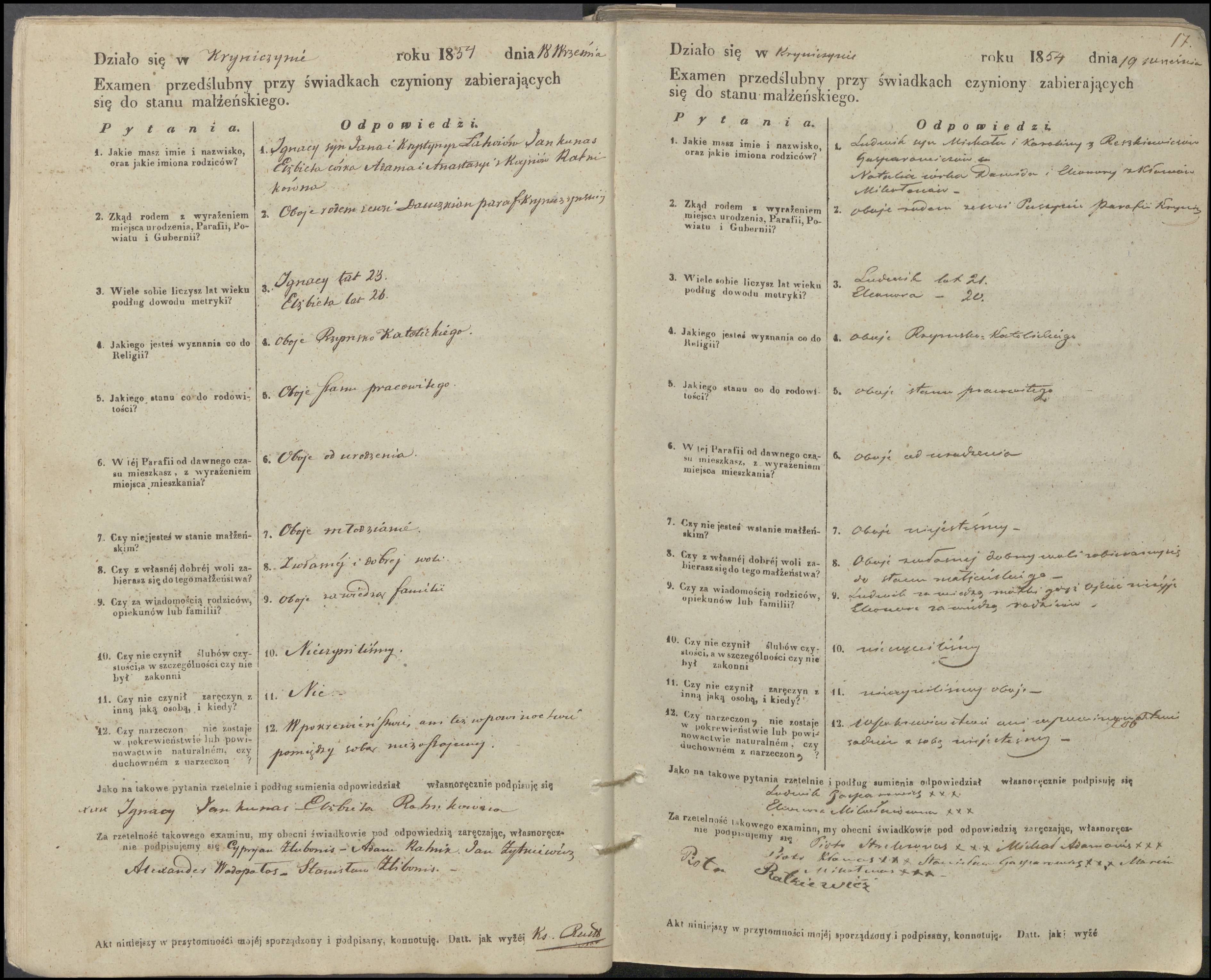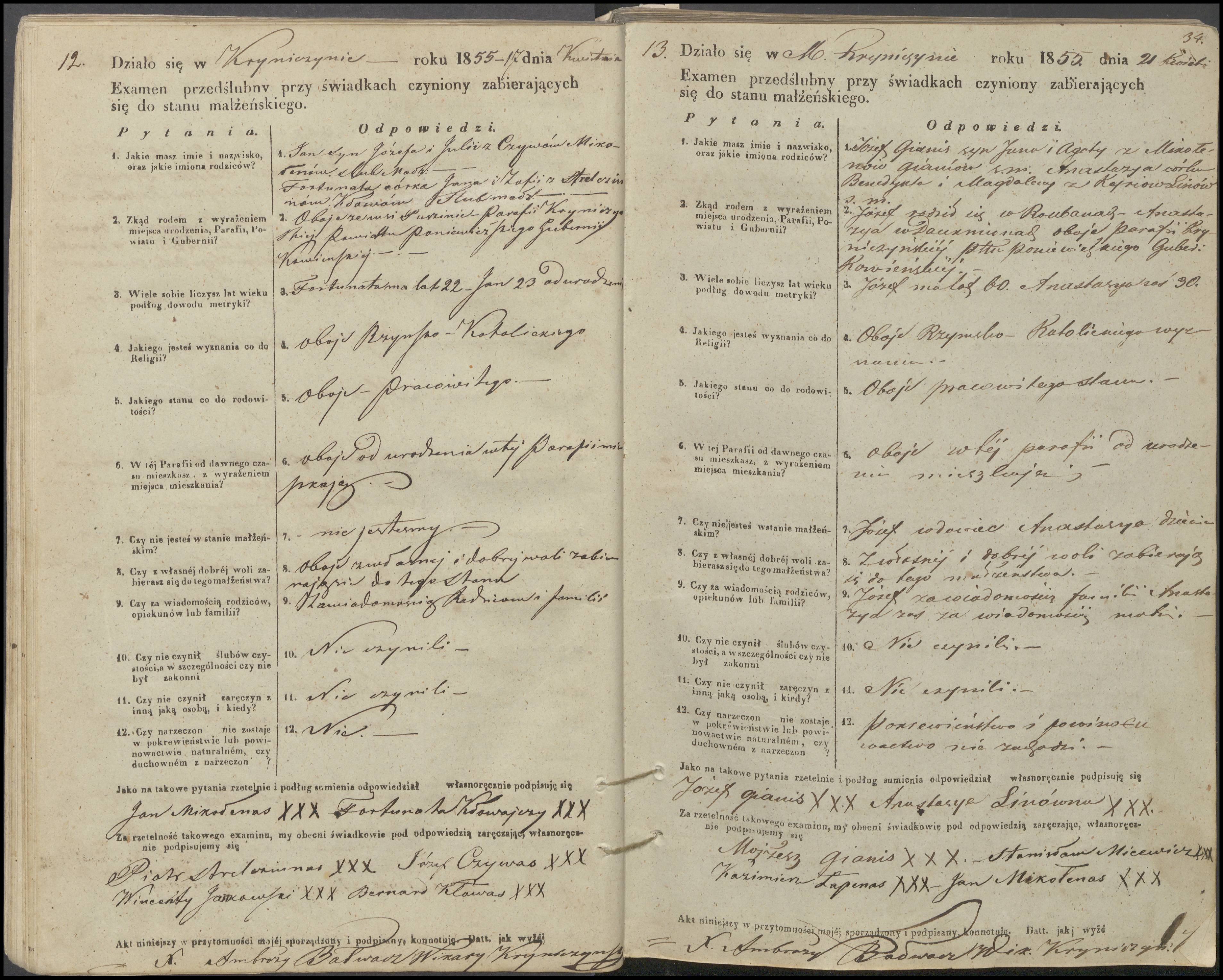 Krinčino Romos katalikų parapijos bažnyčios 1853–1862 metų priešjungtuvinės apklausos knyga
