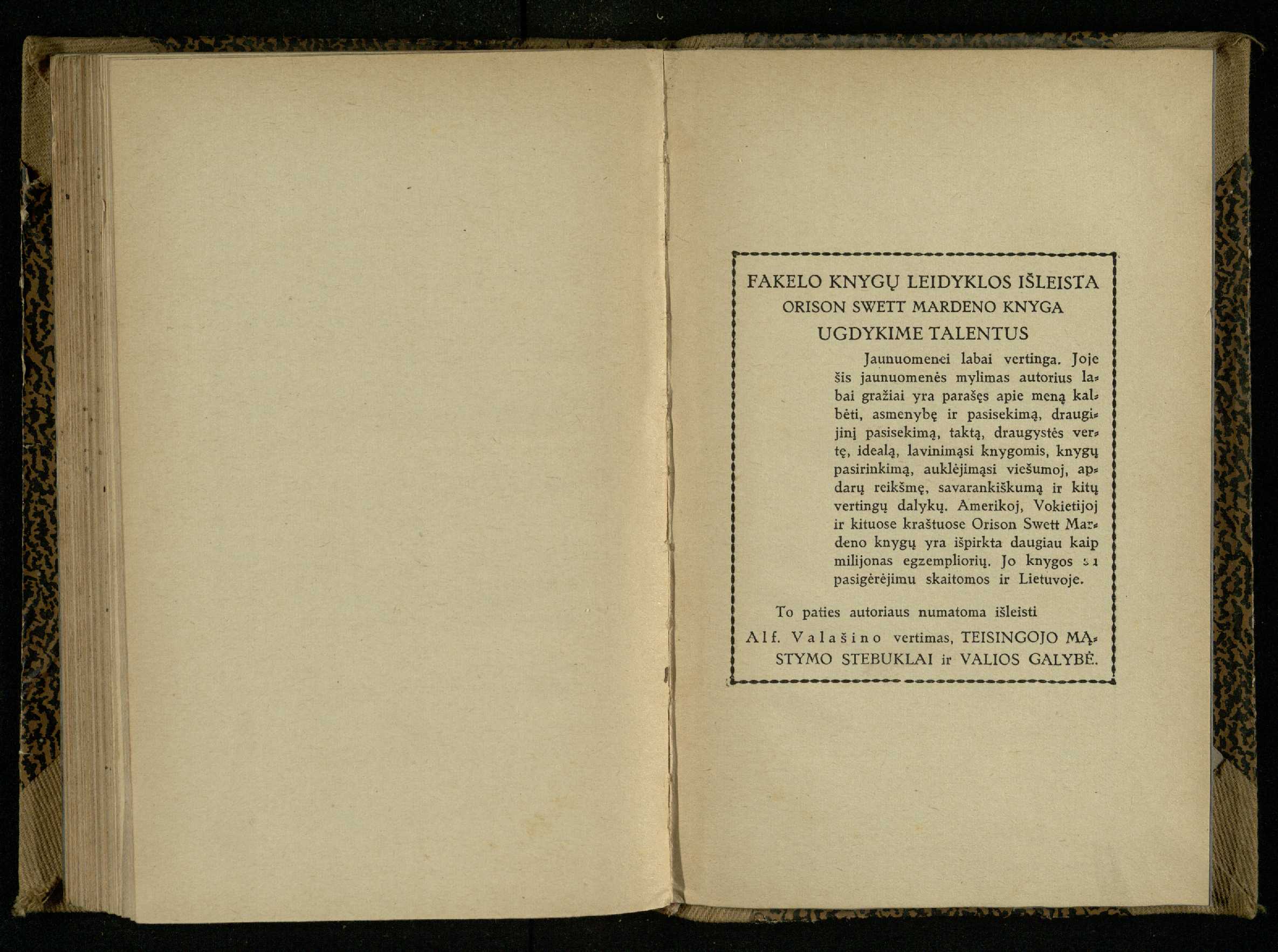 Minties galybė / Orison Swett Marden. – Kaunas: Fakelo leidinys, 1937. – 149, [2] p.