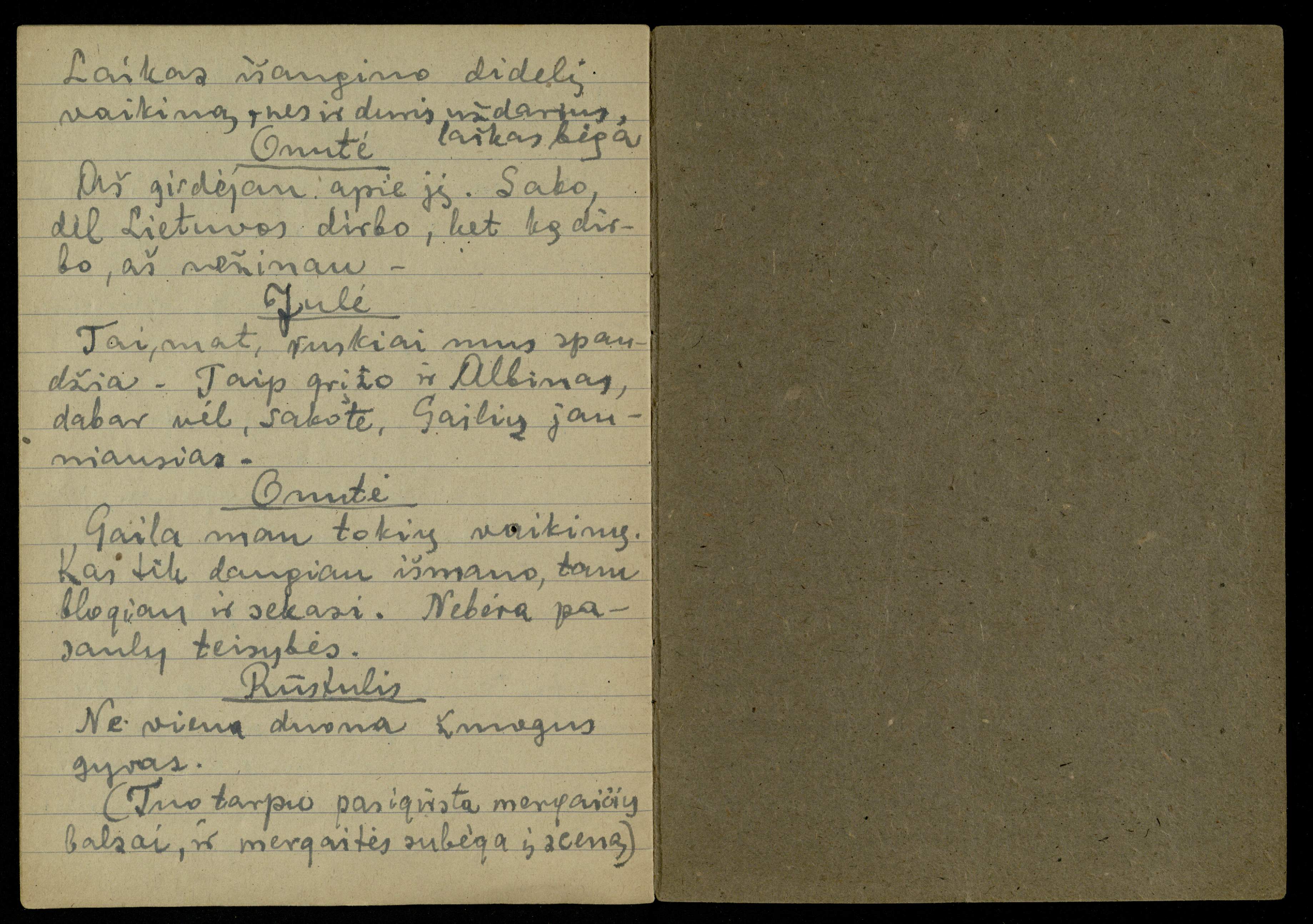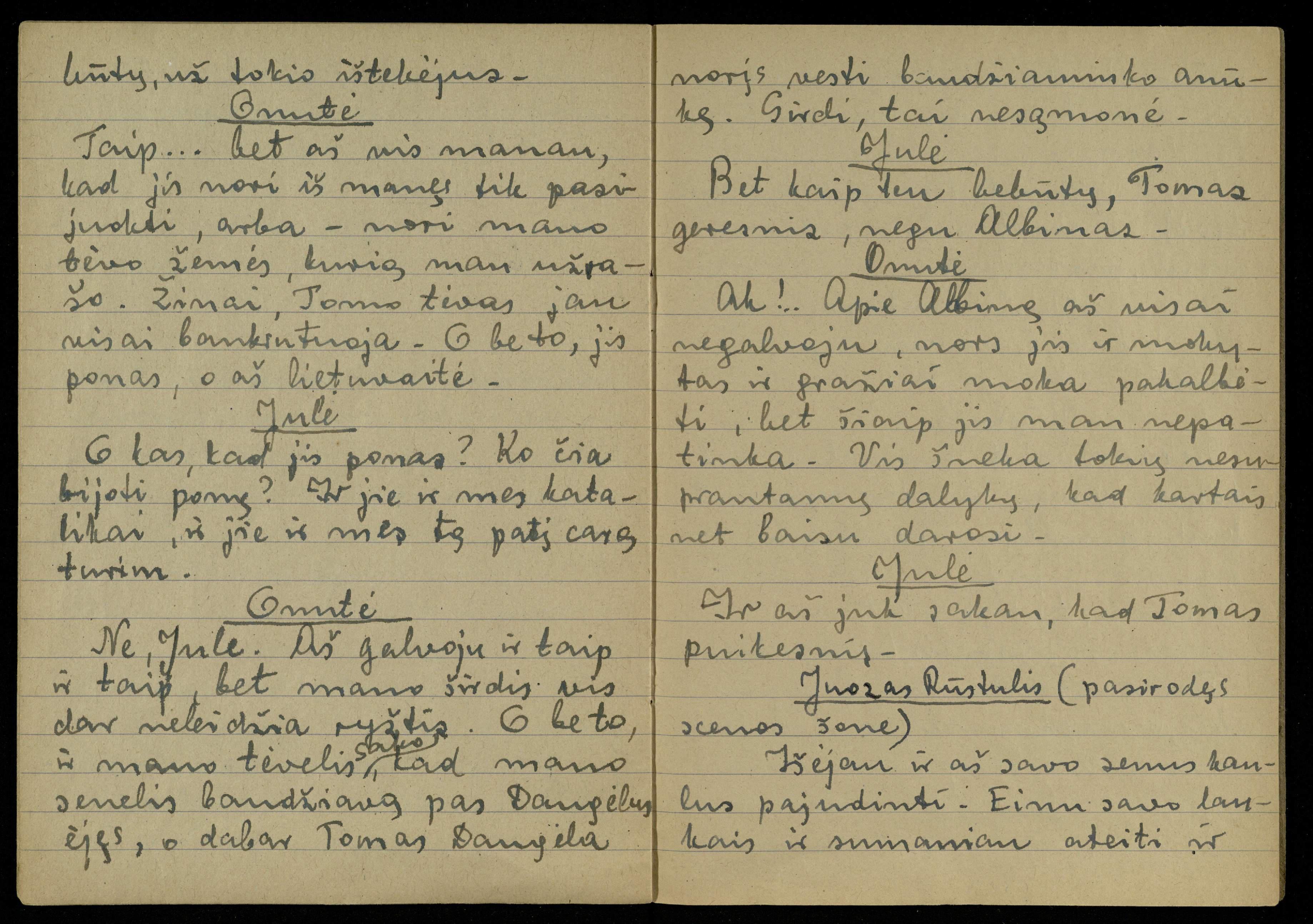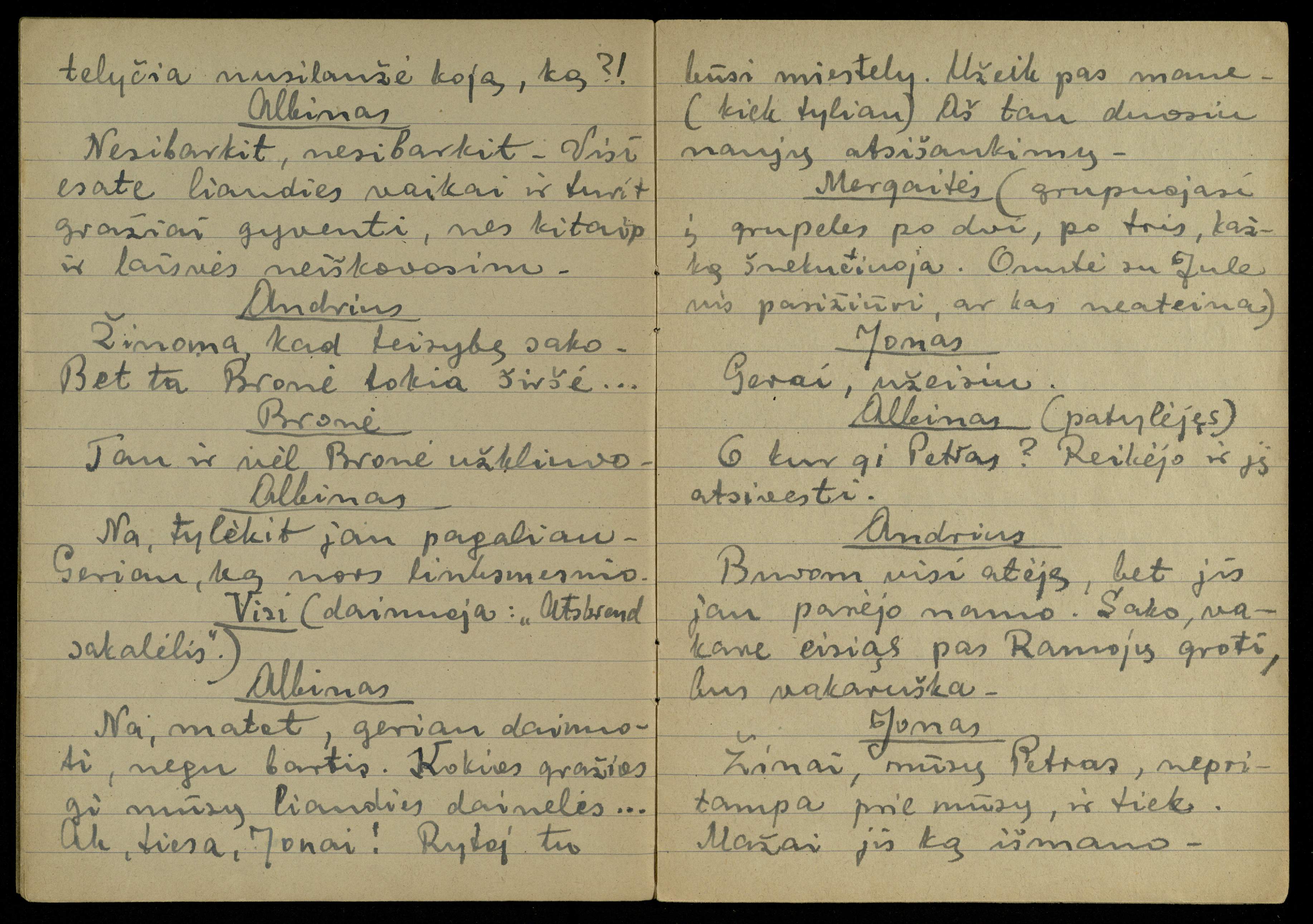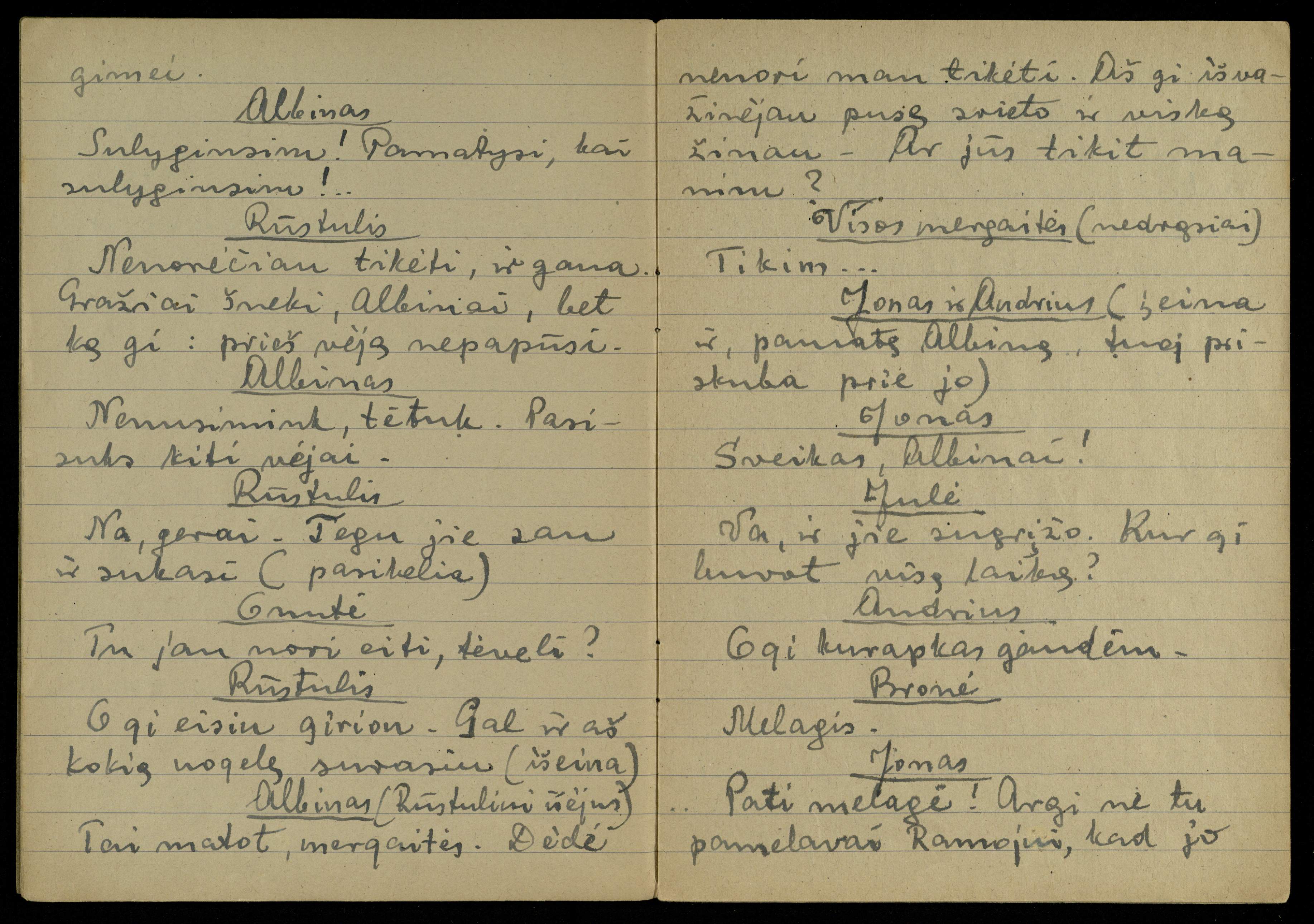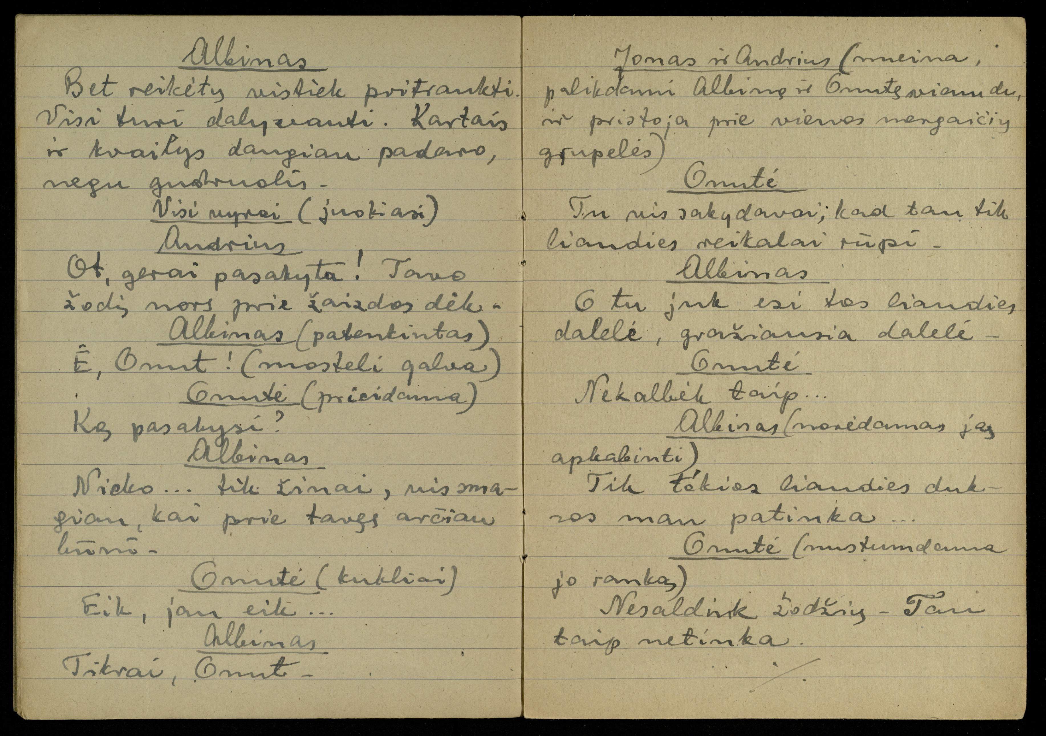 Scenos veikalas, 2 sąsiuviniai. Kraštiečio rašytojo, „Tėviškės žiburių“ redaktoriaus Česlovo Senkevičiaus dovana gimtajam Pasvalio kraštui.
