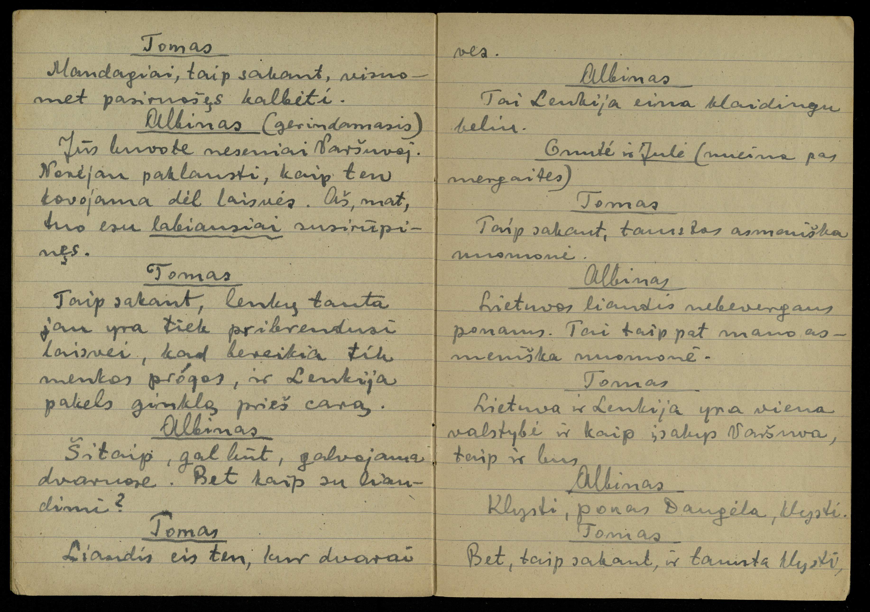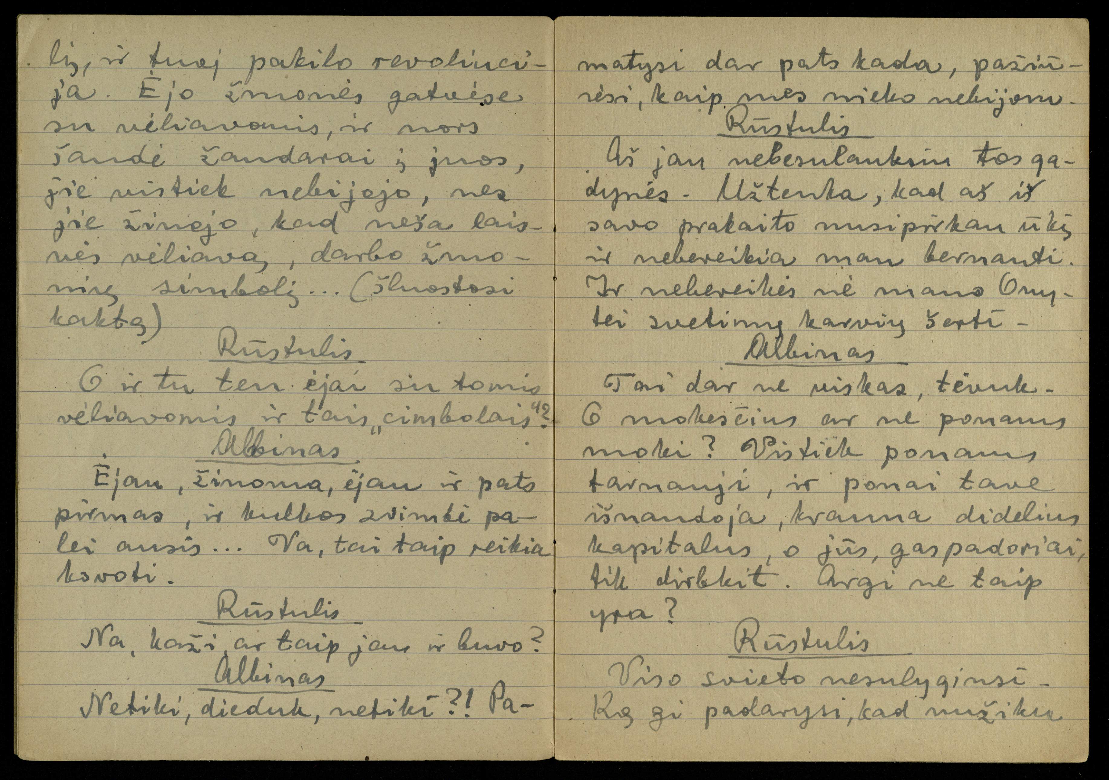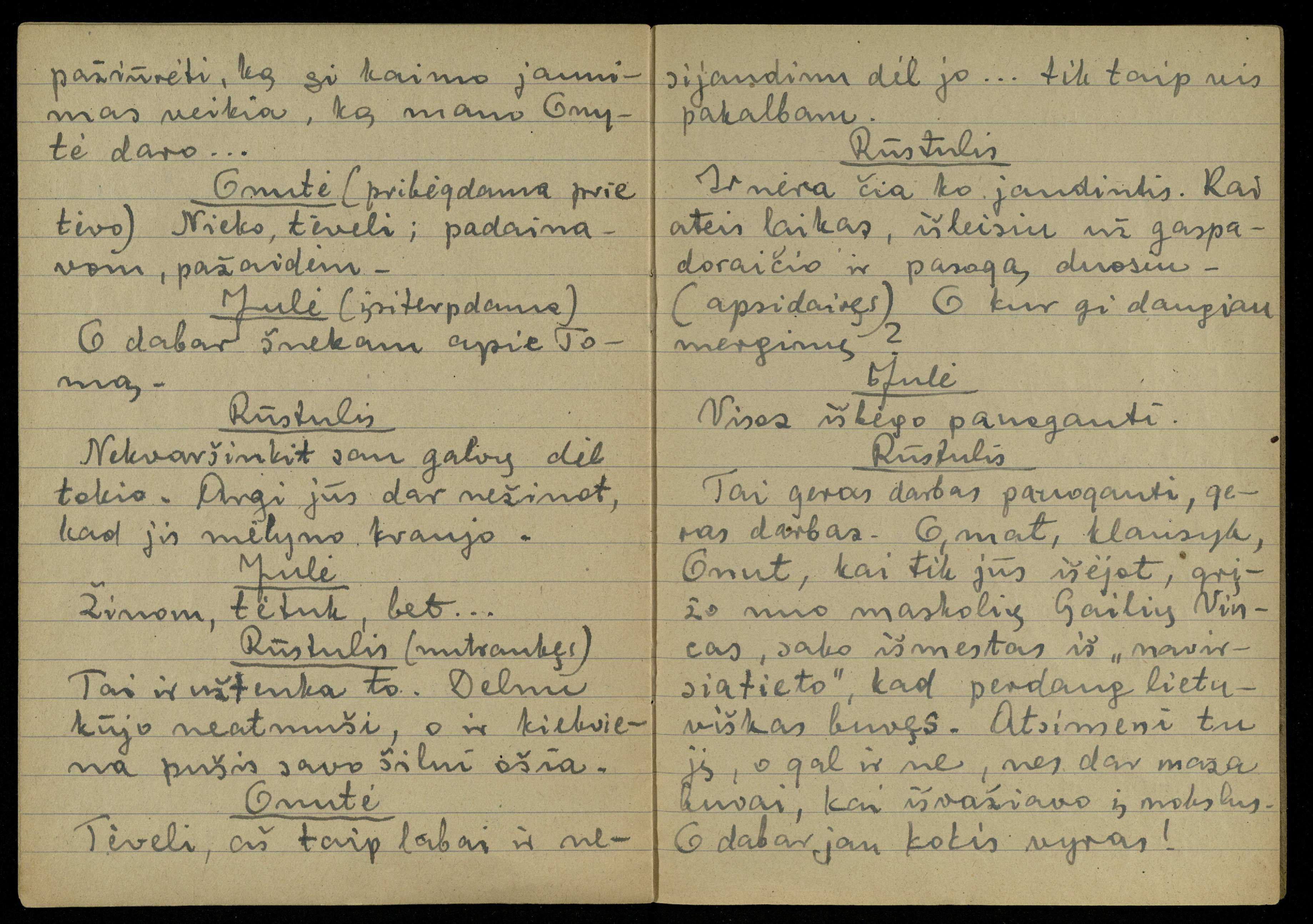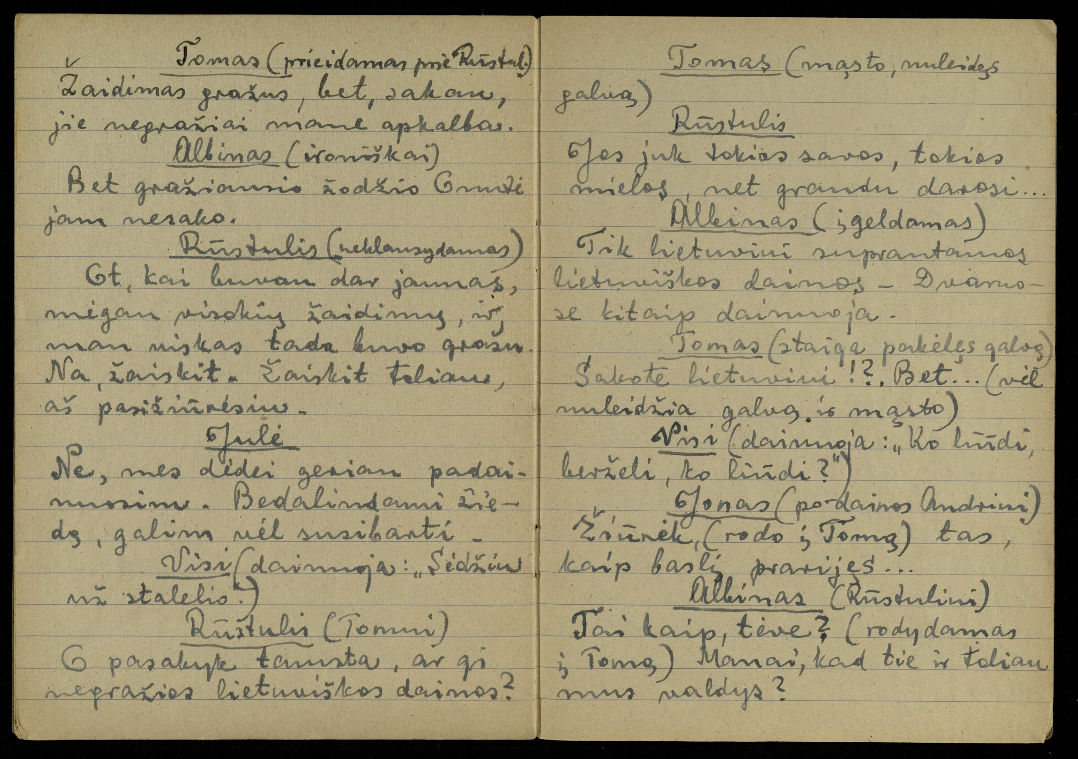 Scenos veikalas, 2 sąsiuviniai. Kraštiečio rašytojo, „Tėviškės žiburių“ redaktoriaus Česlovo Senkevičiaus dovana gimtajam Pasvalio kraštui.