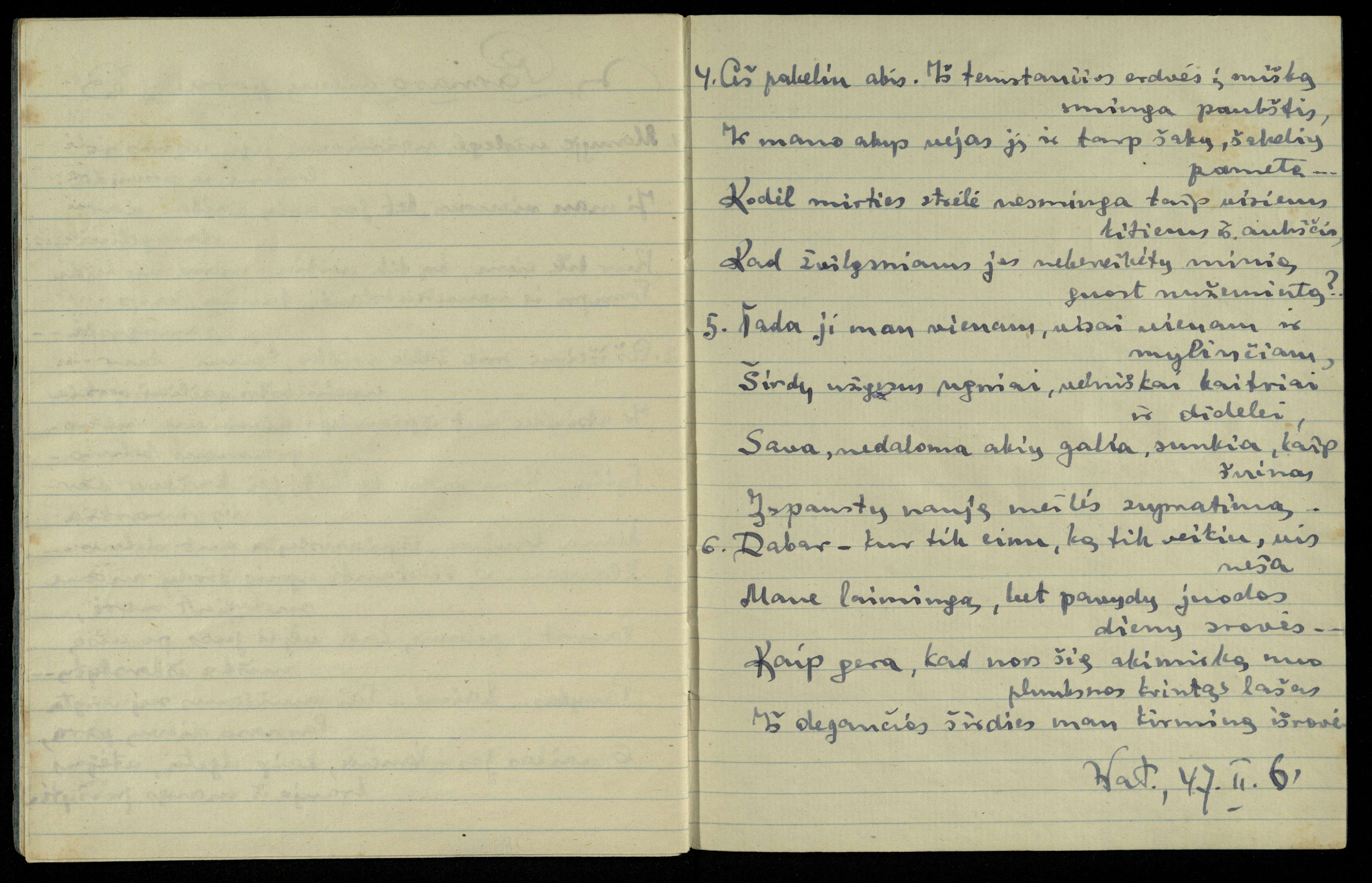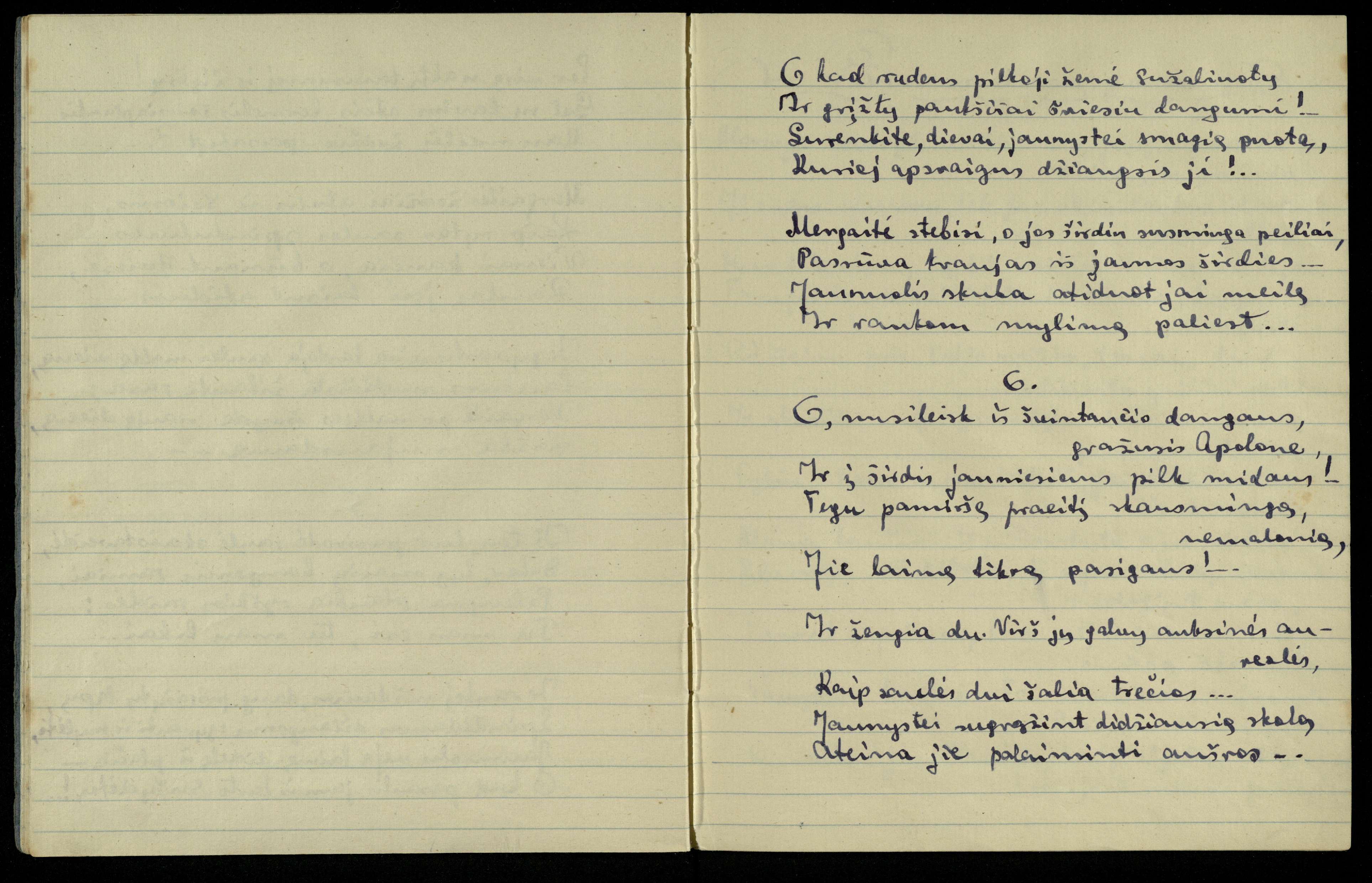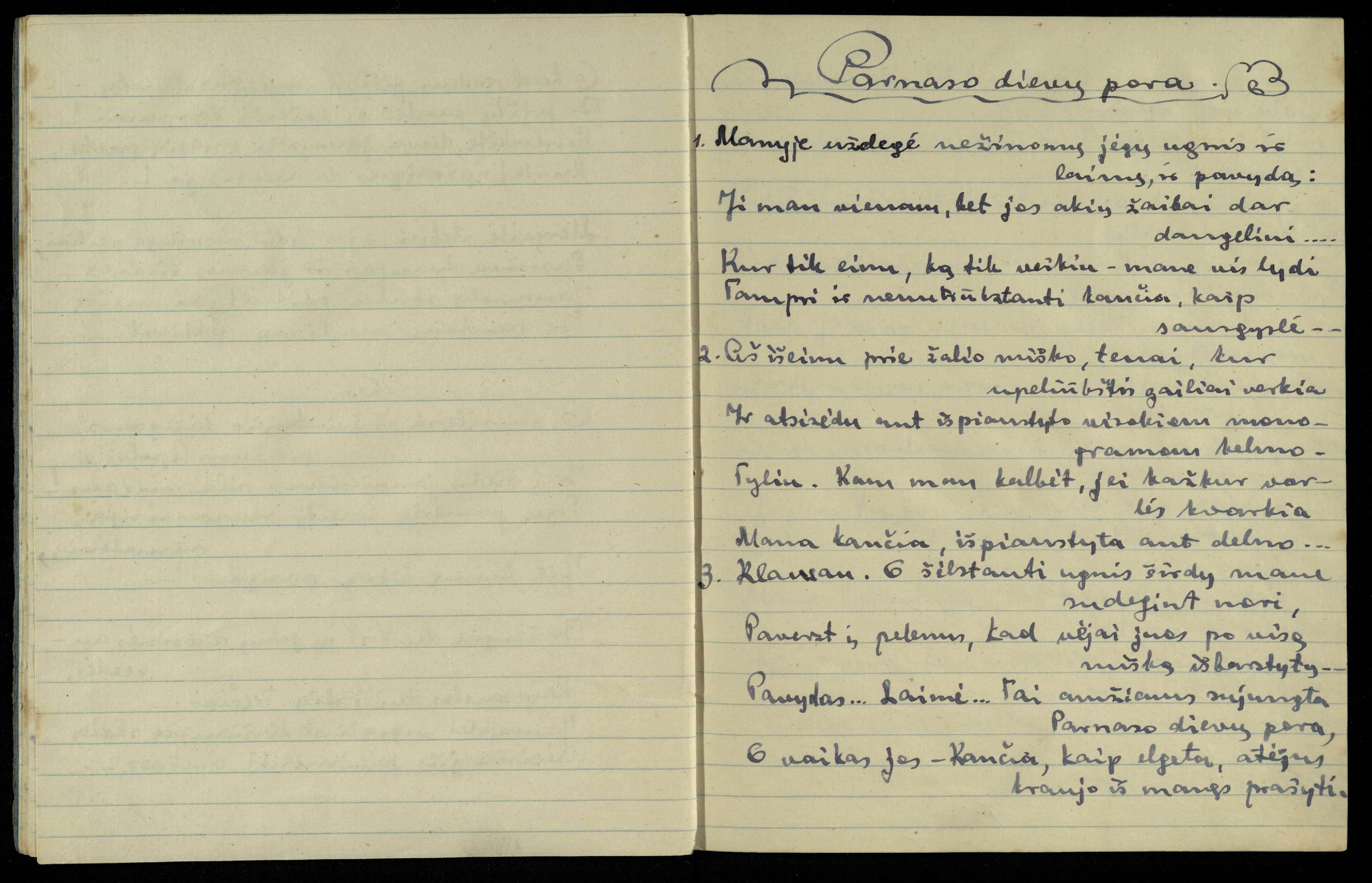 Eilėraščiai sąsiuvinyje: „Vėlinių eisena“, „Išsipildymas“, „Parnaso dievų pora“.