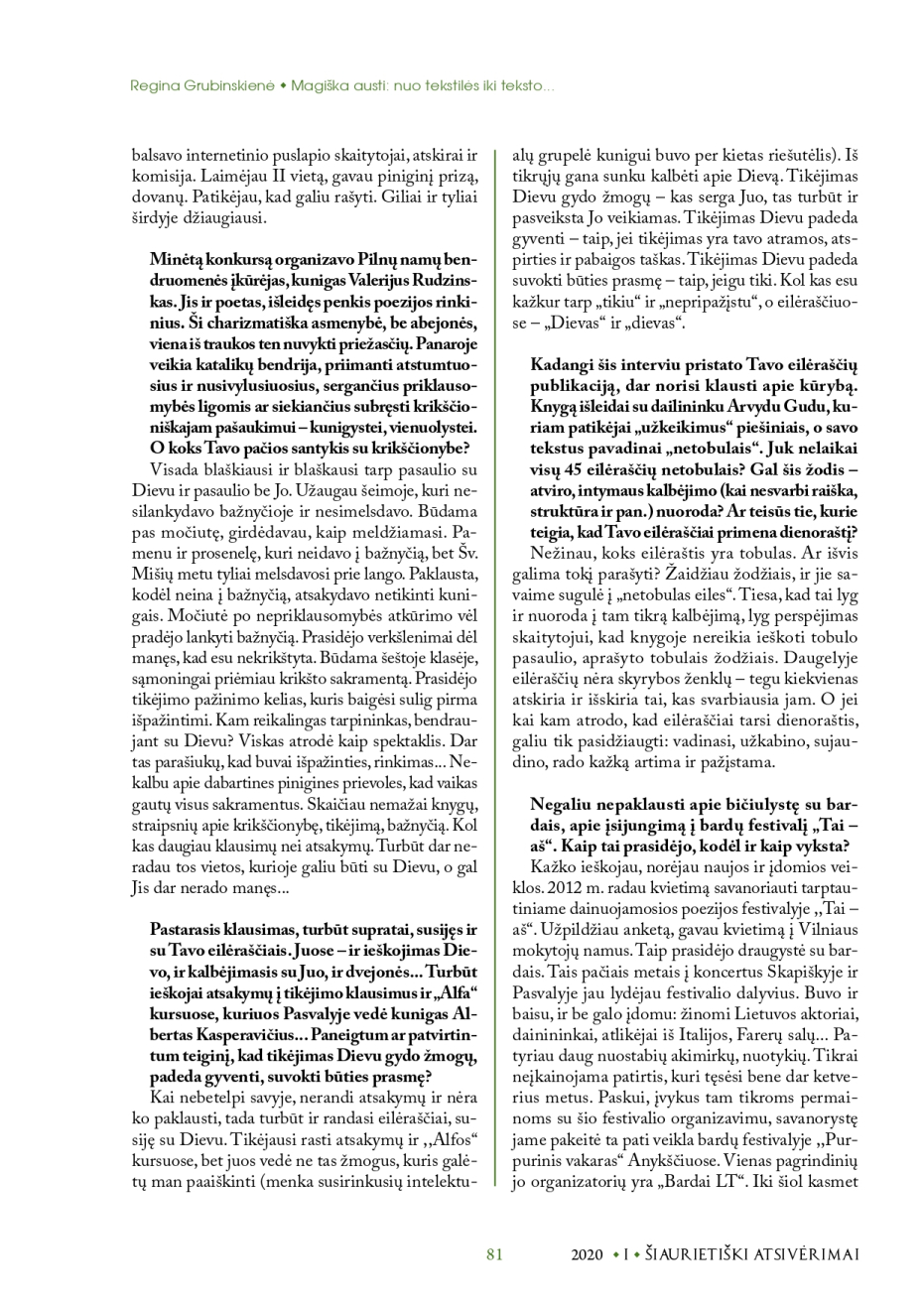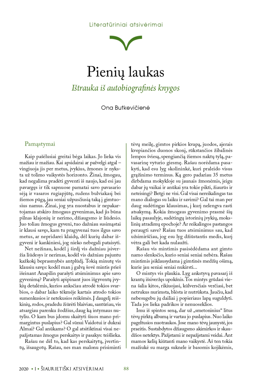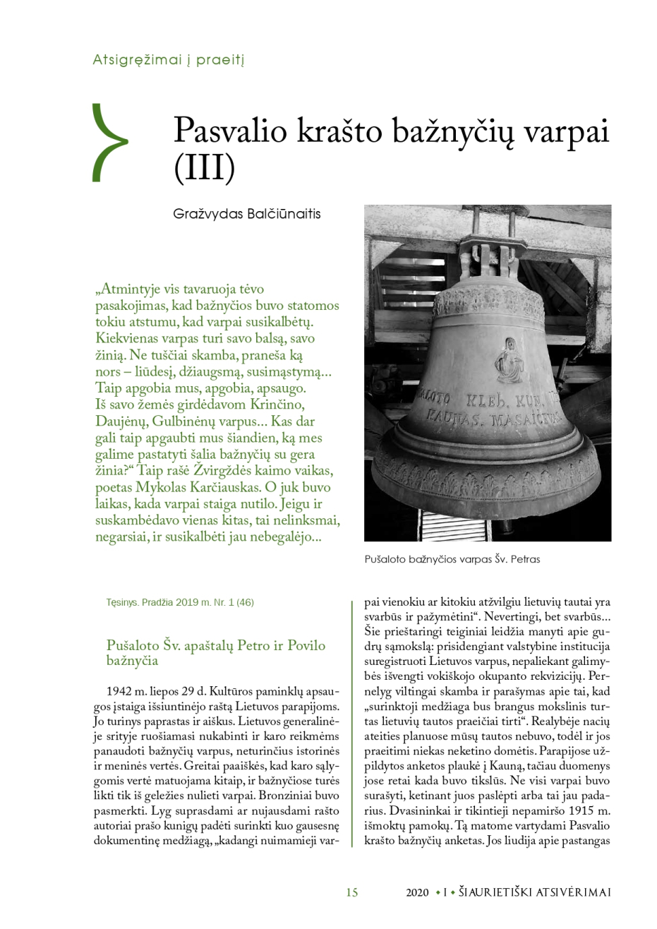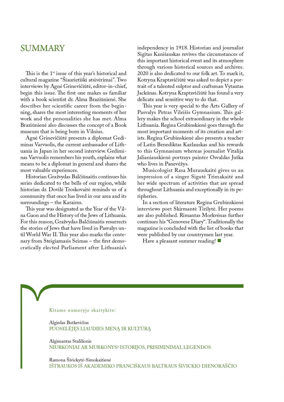 Šiaurietiški atsivėrimai : Pasvalio krašto istorijos ir kultūros žurnalas 2020, nr. 1 (48)