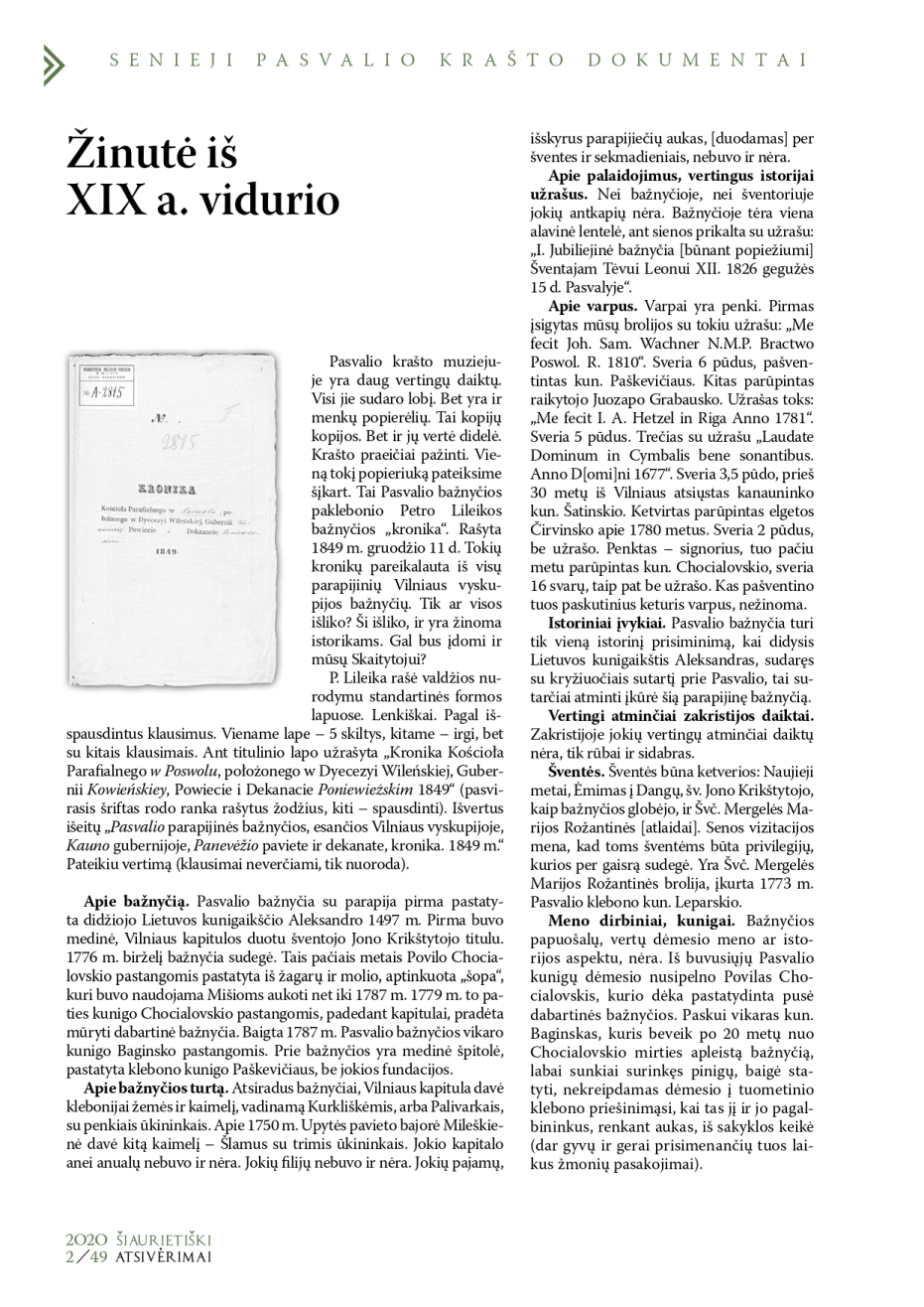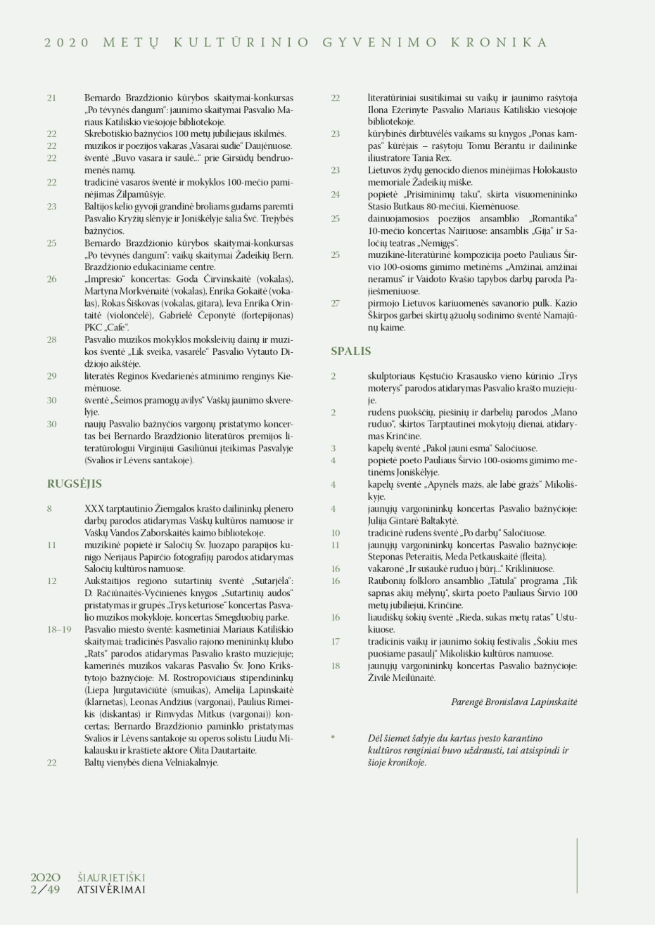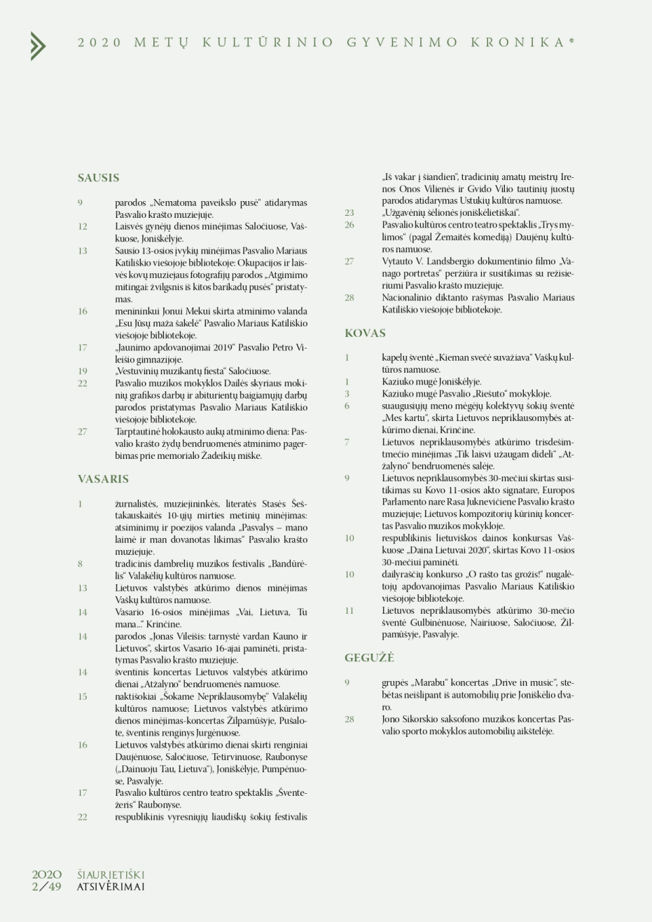 Šiaurietiški atsivėrimai : Pasvalio krašto istorijos ir kultūros žurnalas 2020, nr. 2 (49)