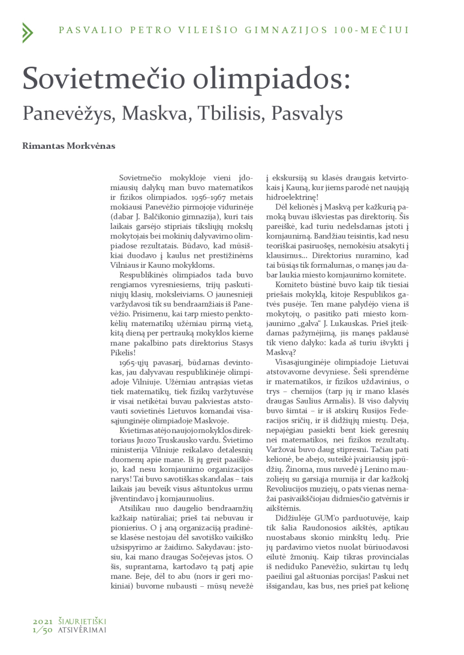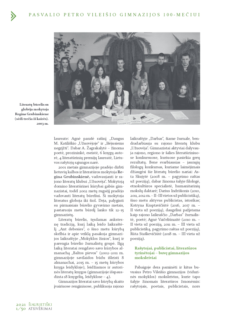 Šiaurietiški atsivėrimai : Pasvalio krašto istorijos ir kultūros žurnalas 2021, nr. 1 (50)