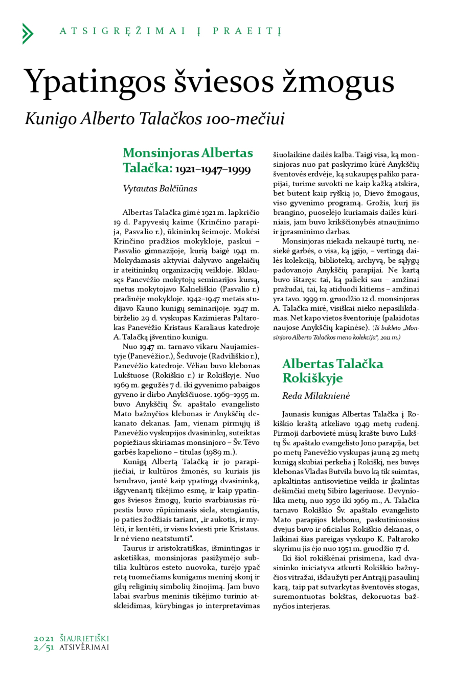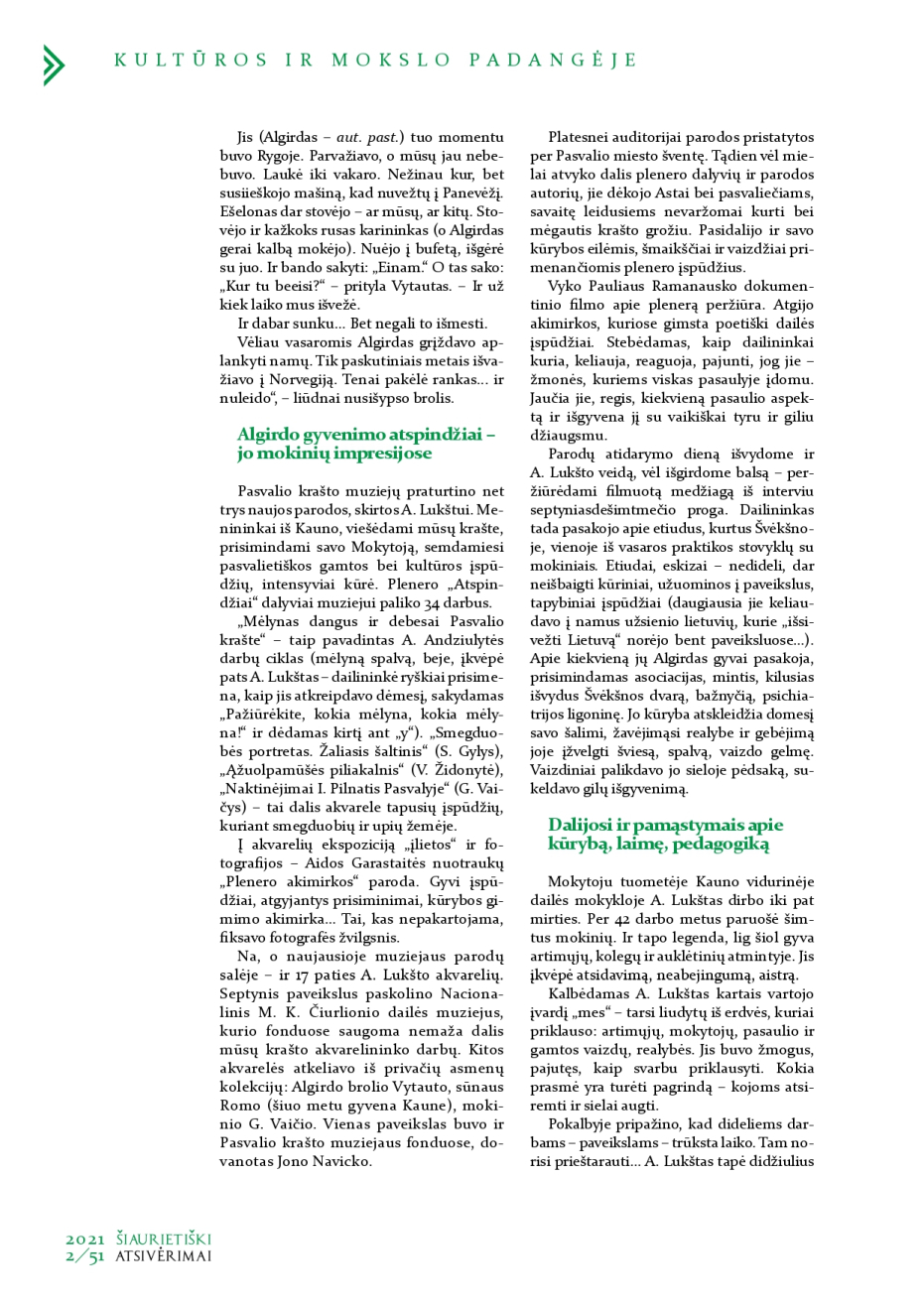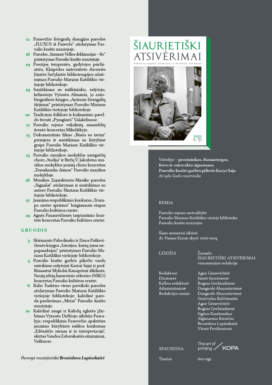 Šiaurietiški atsivėrimai : Pasvalio krašto istorijos ir kultūros žurnalas 2021, nr. 2 (51)