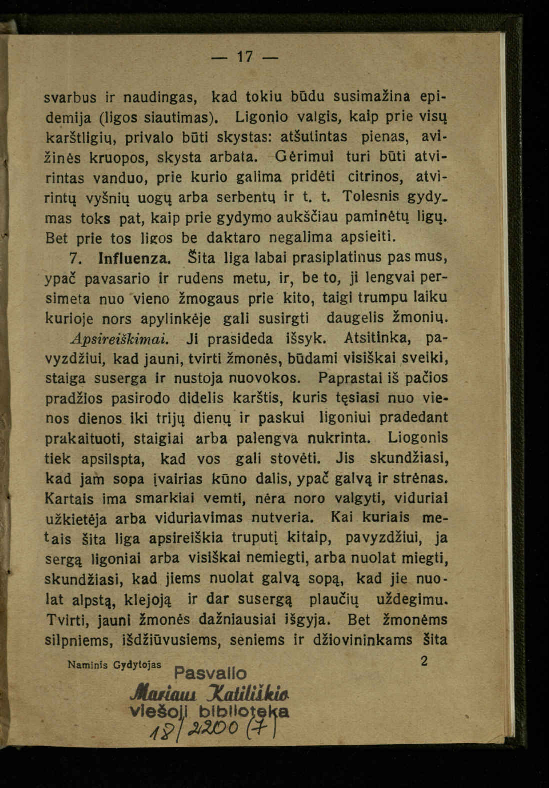 Naminis gydytojas: trumpas paprasčiausių ligų aprašymas ir jų gydymas / d-ras A. Vileišis. – 2-asis patais. leid. – Kaunas: „Švyturio“ b-vės leidinys, 1924. – 143 p.